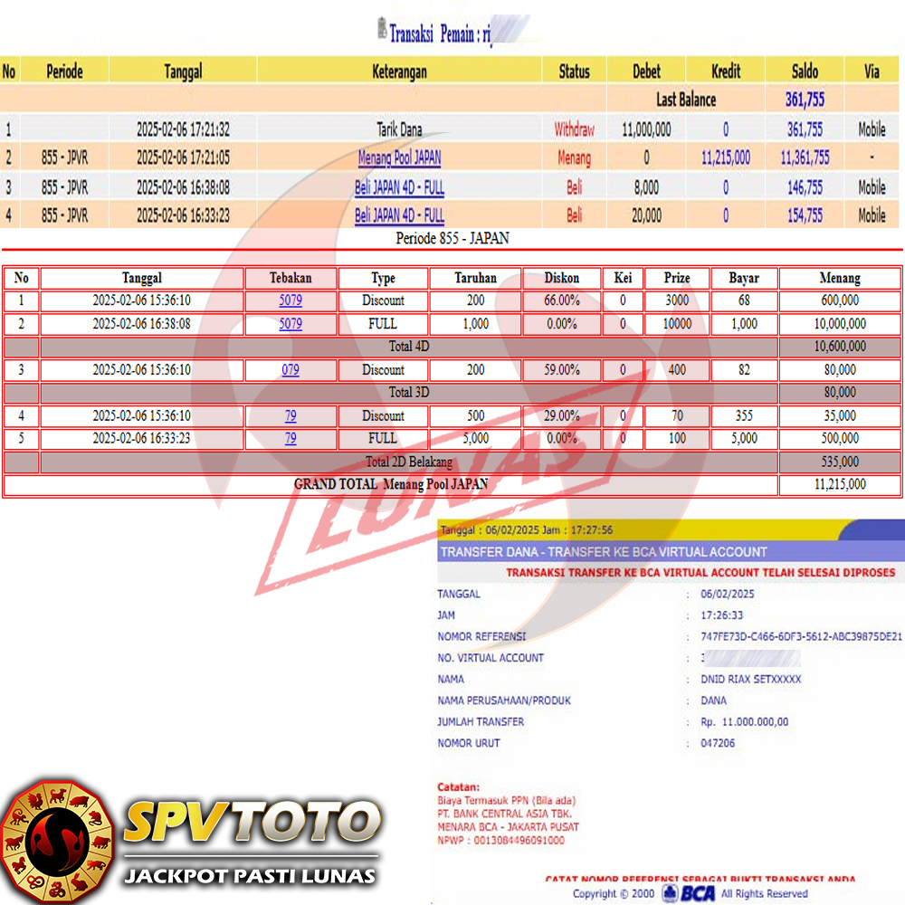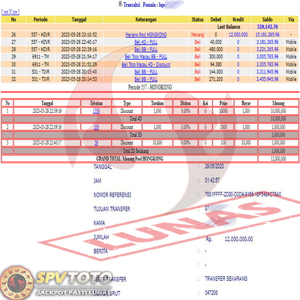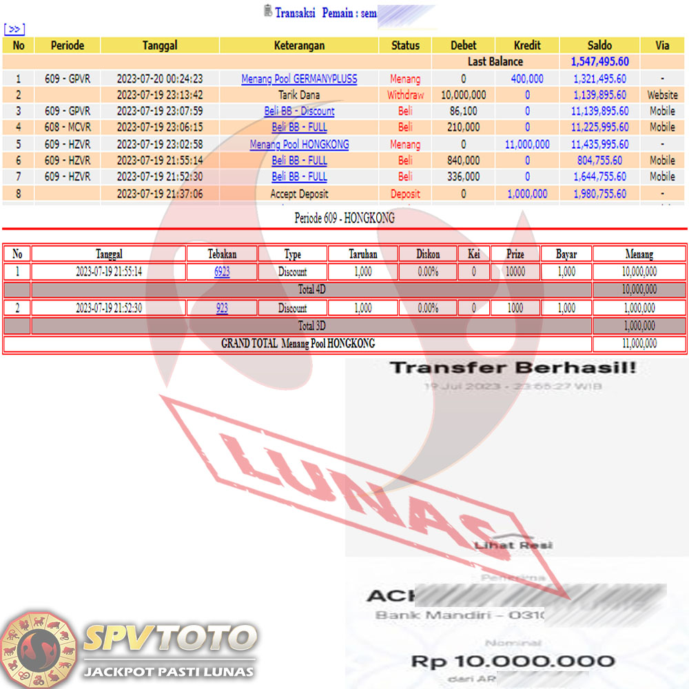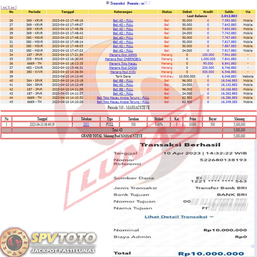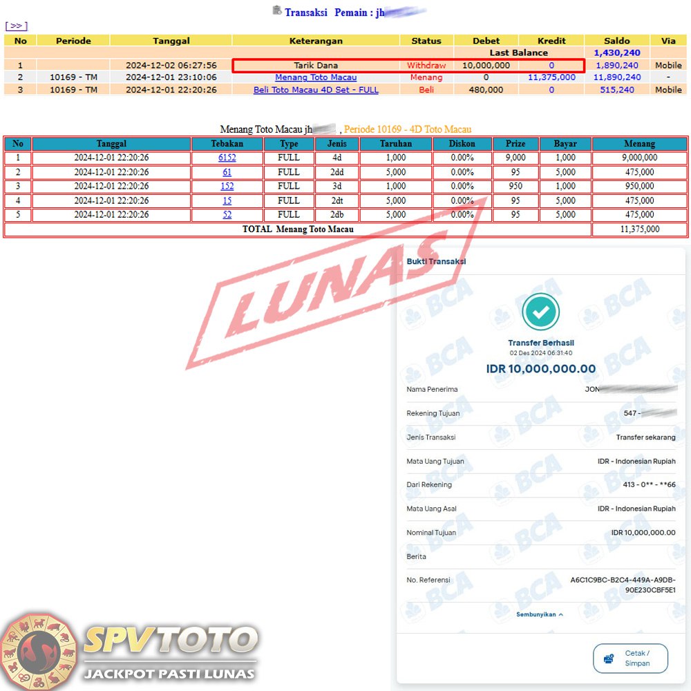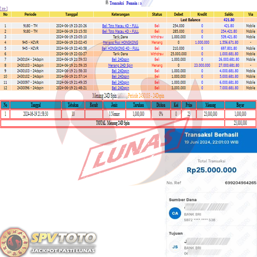 SELAMAT KEPADA MEMBER YANG MENDAPATKAN JACKPOT DI SPVTOTO