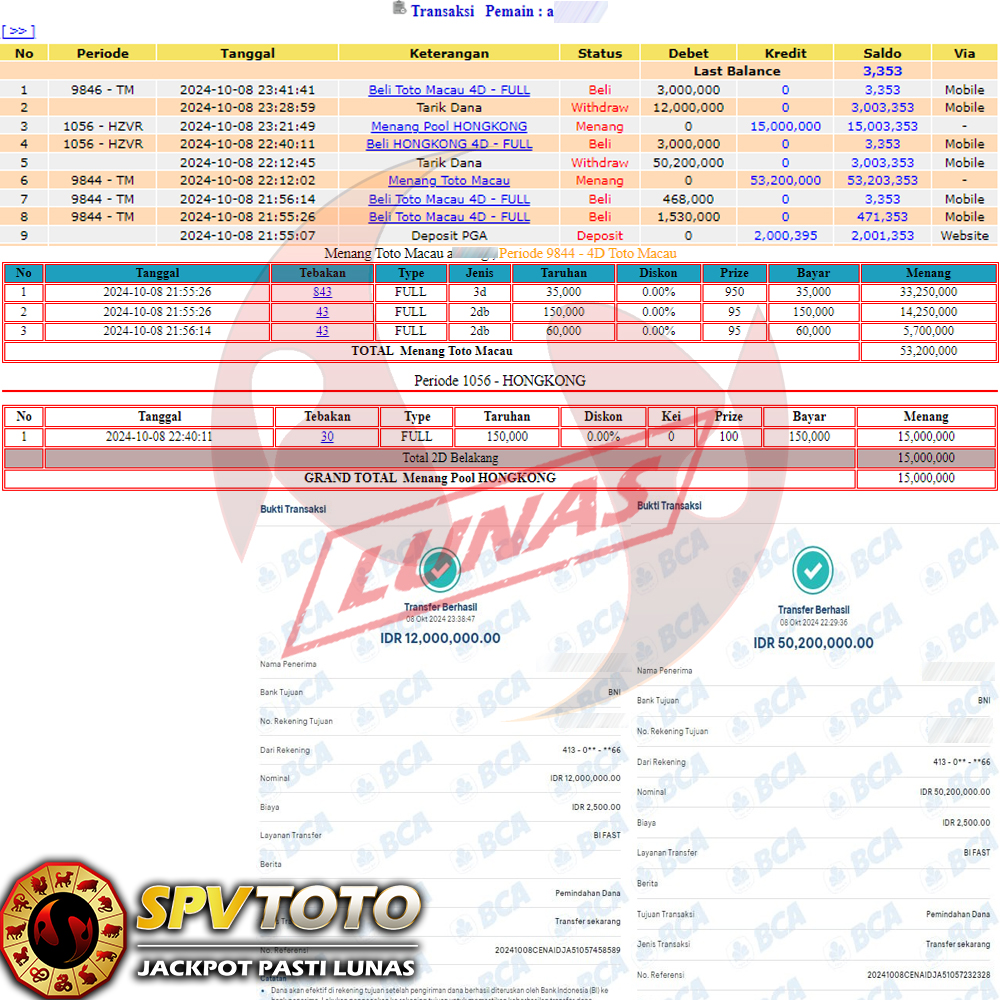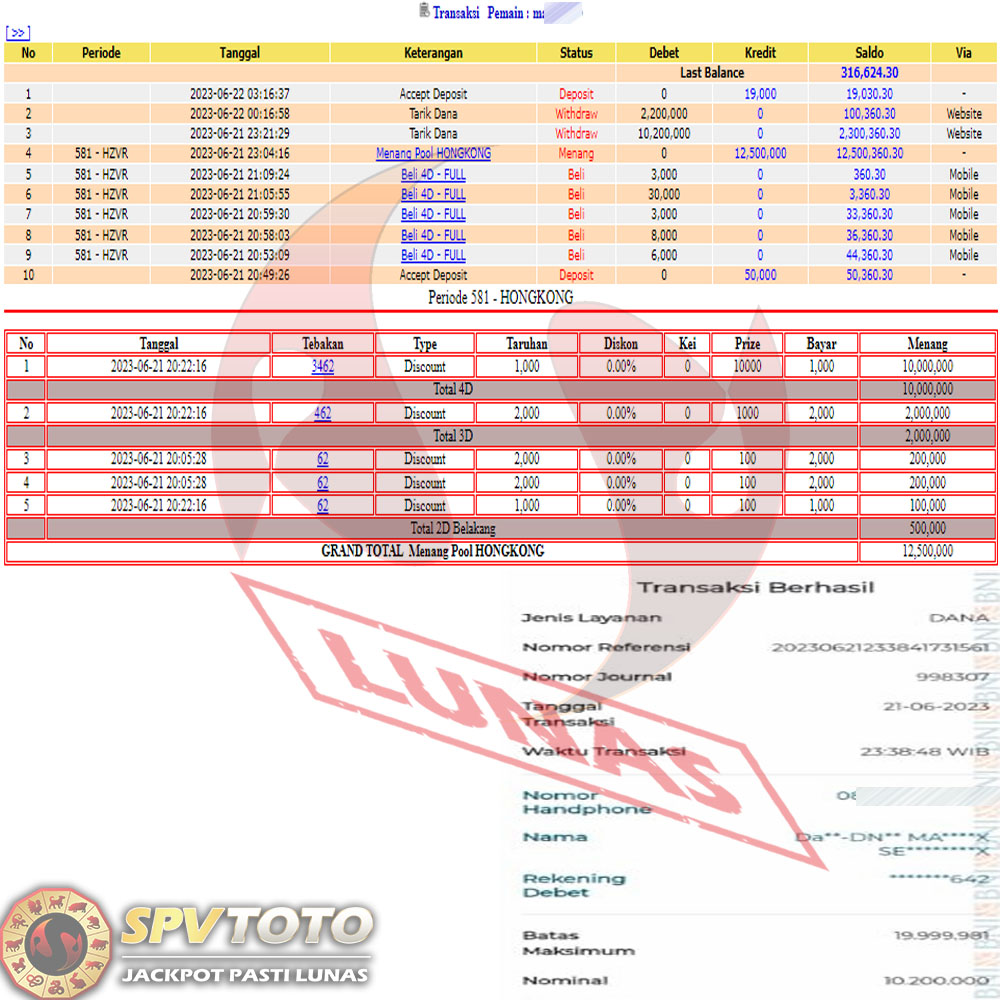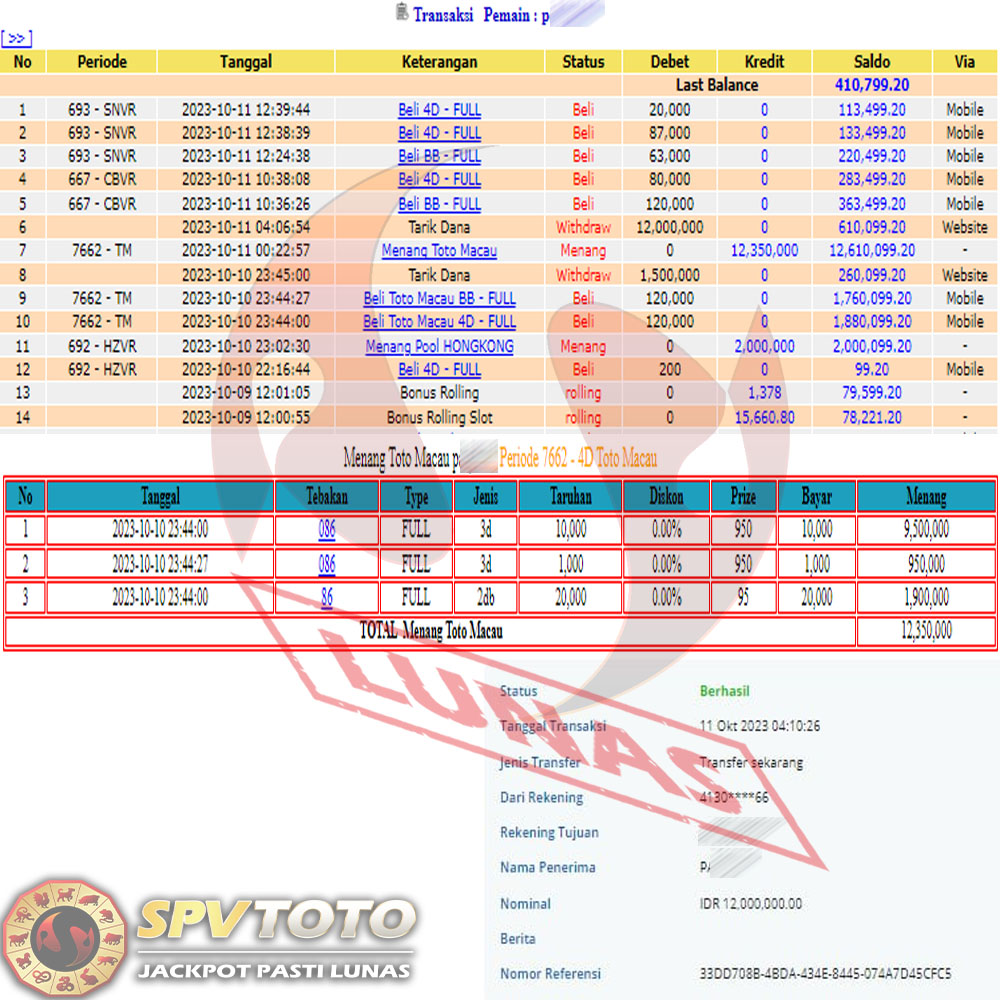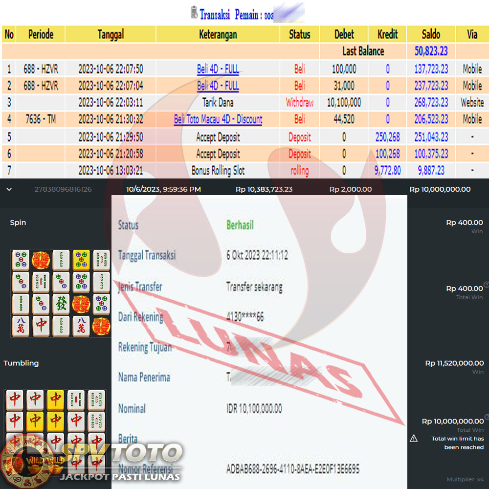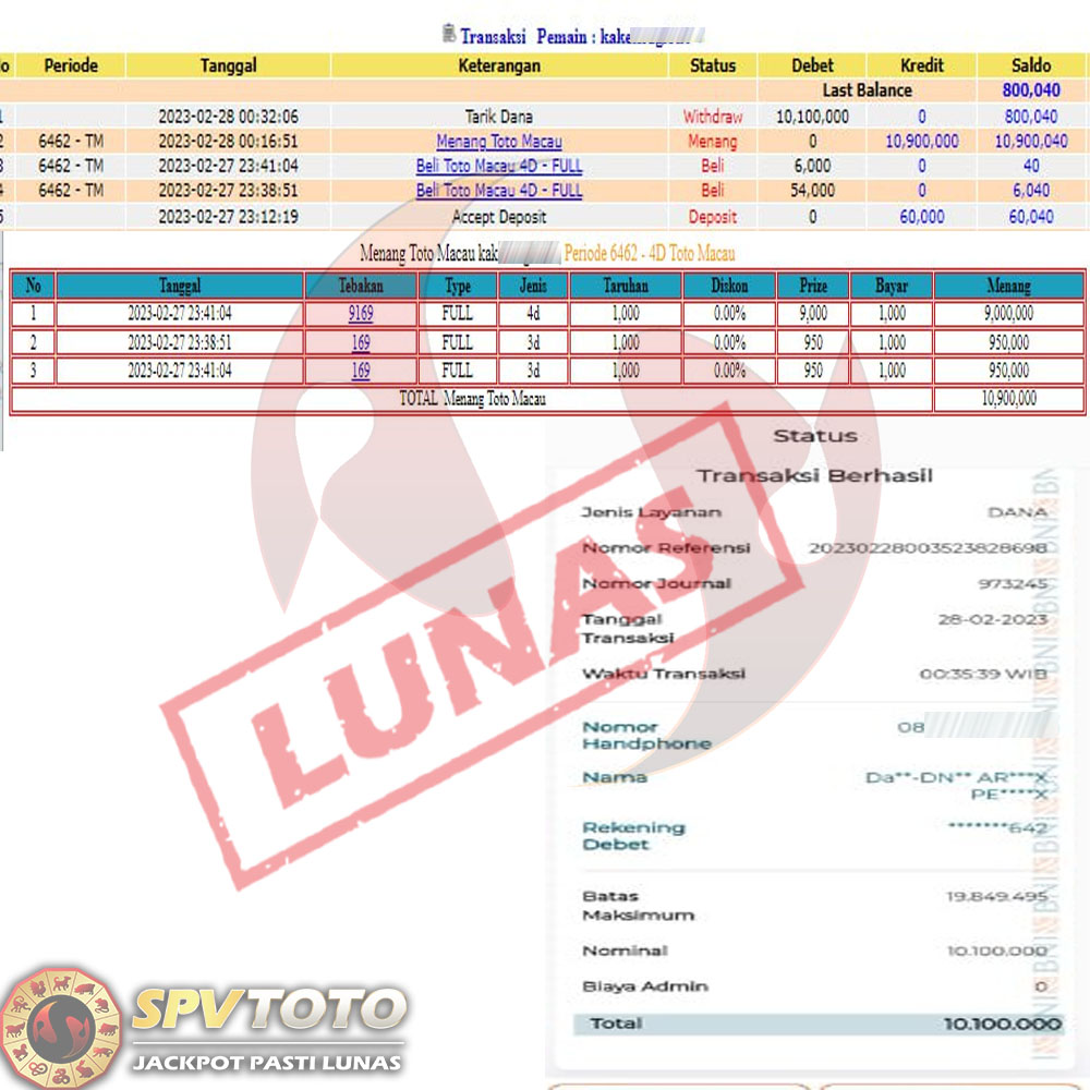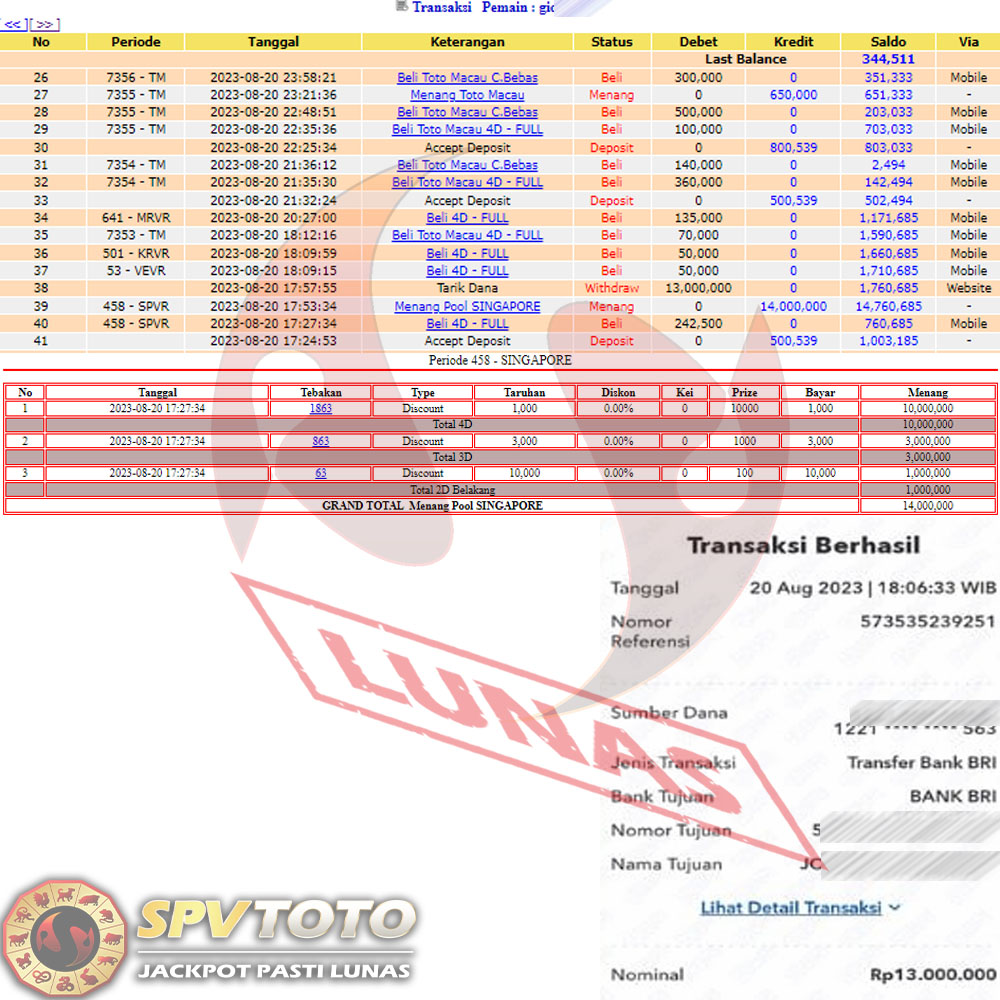 SELAMAT KEPADA MEMBER YANG MENDAPATKAN JACKPOT DI SPVTOTO
