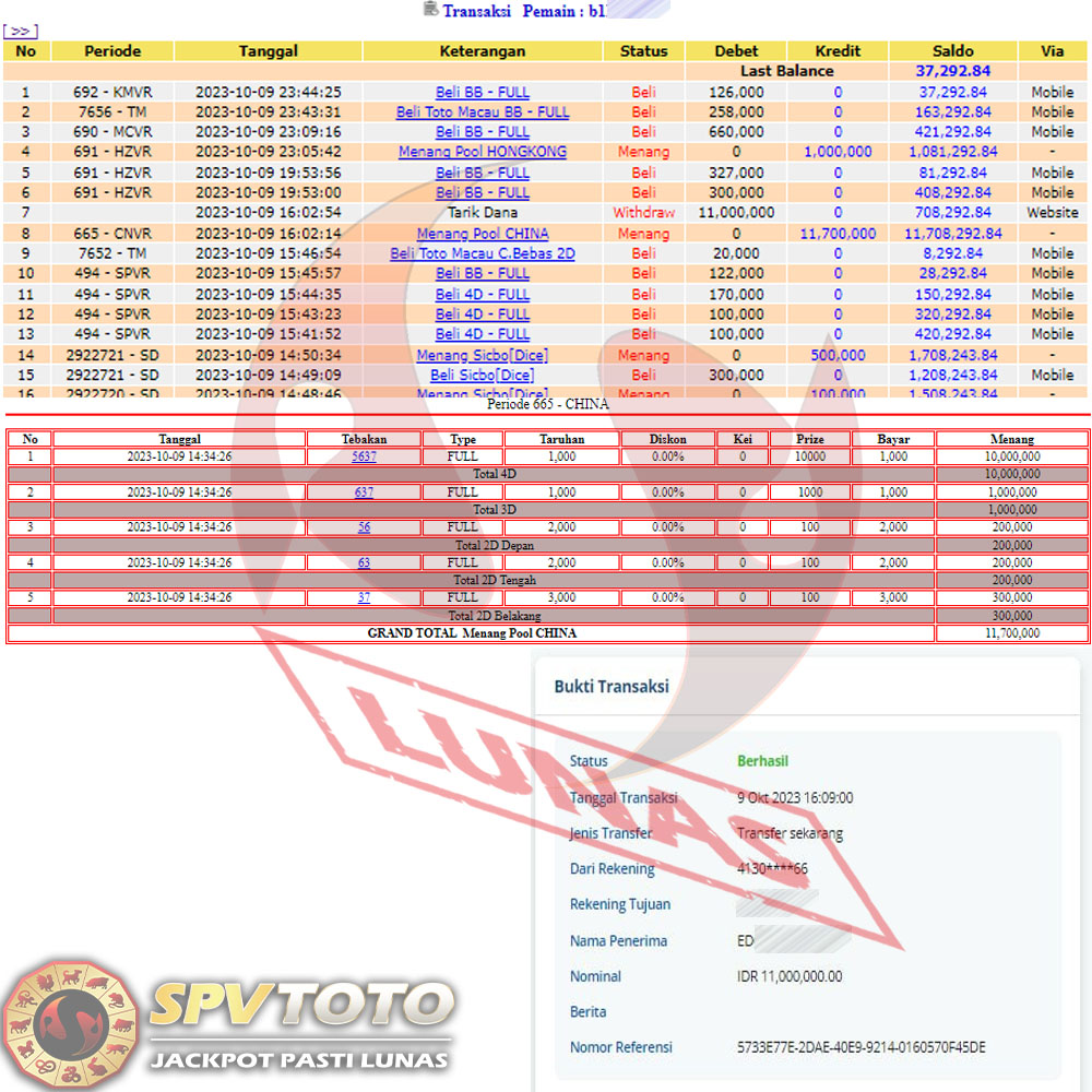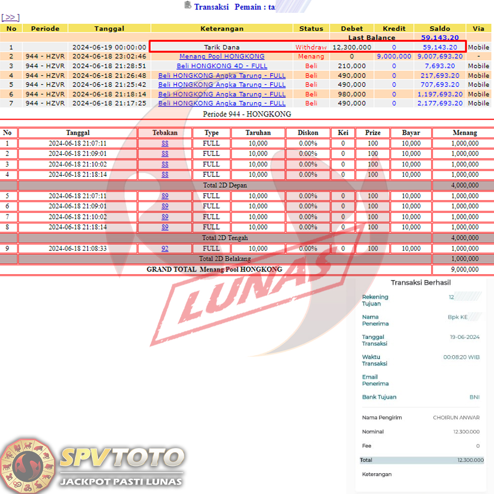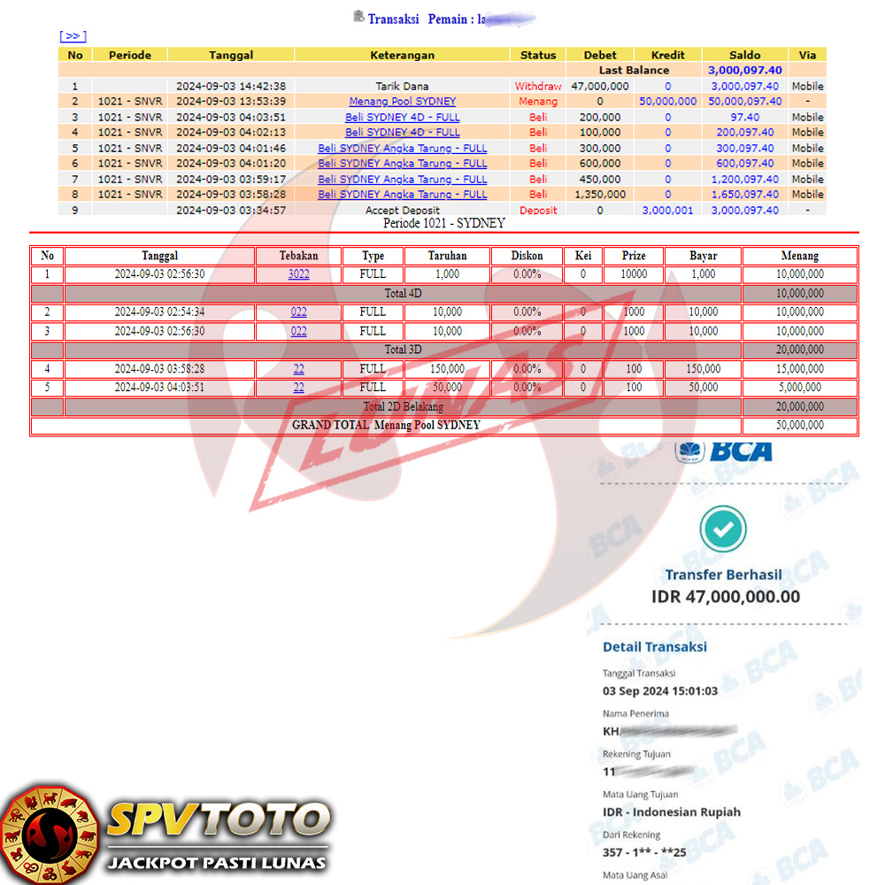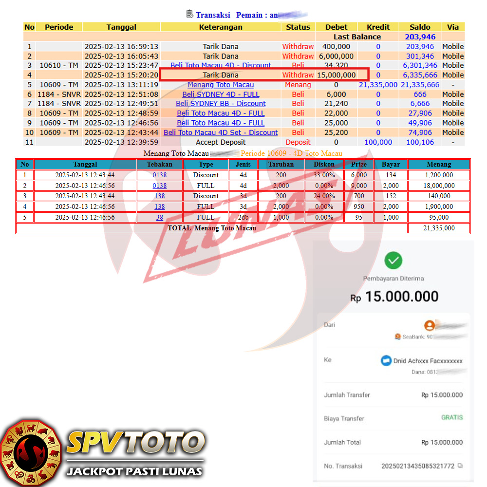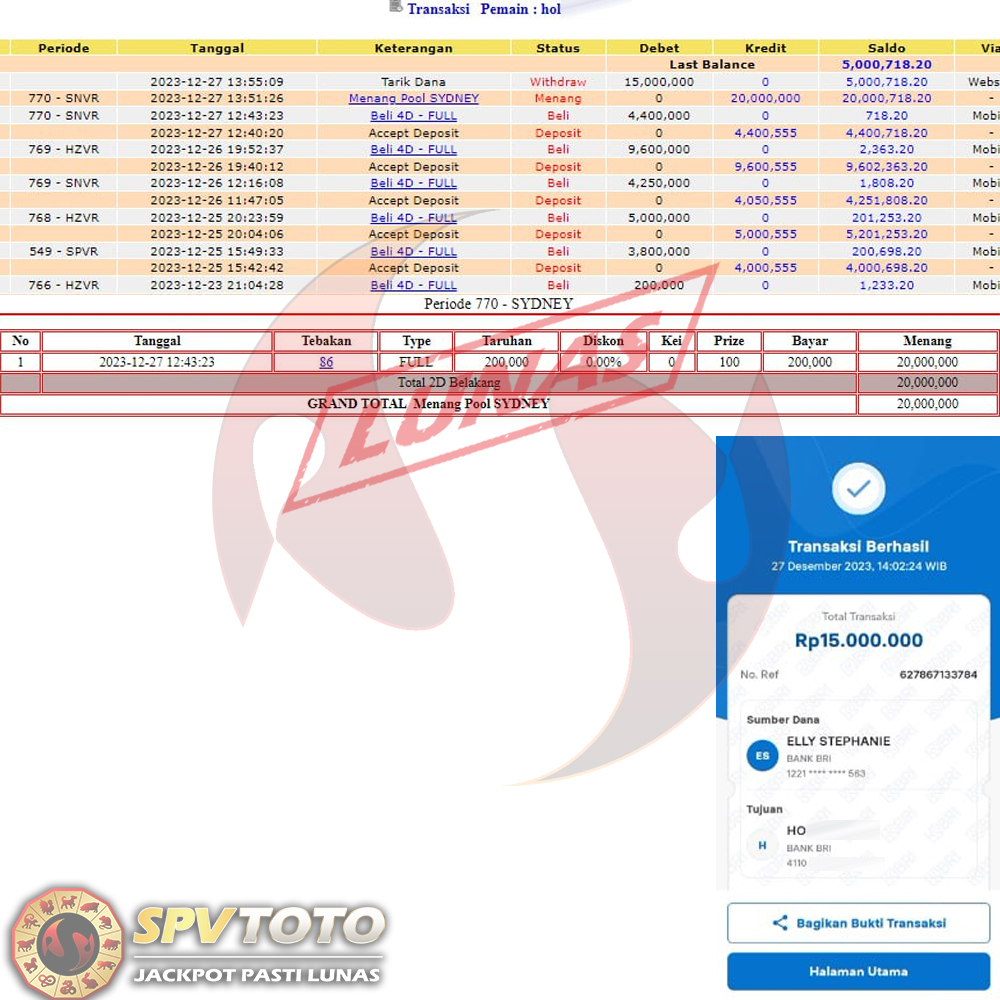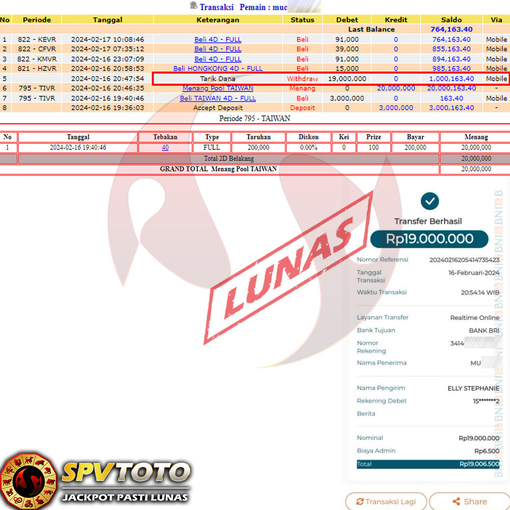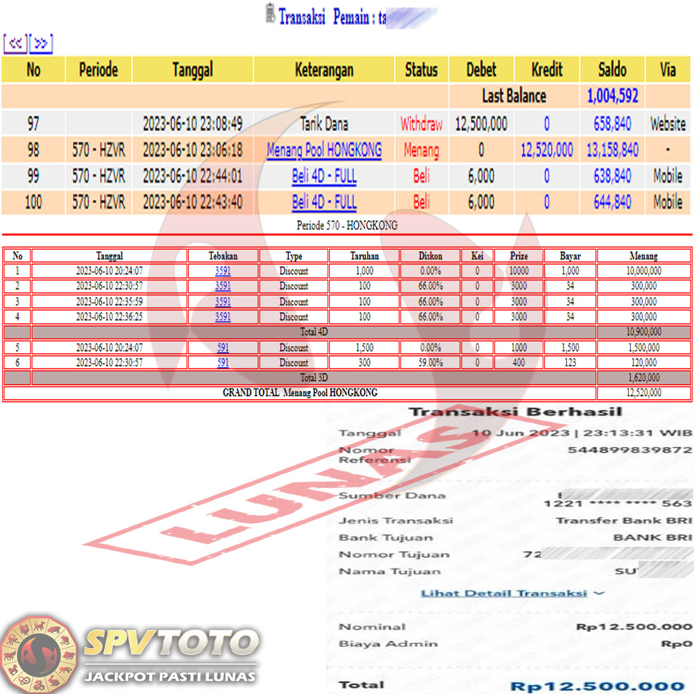 SELAMAT KEPADA MEMBER YANG MENDAPATKAN JACKPOT DI SPVTOTO