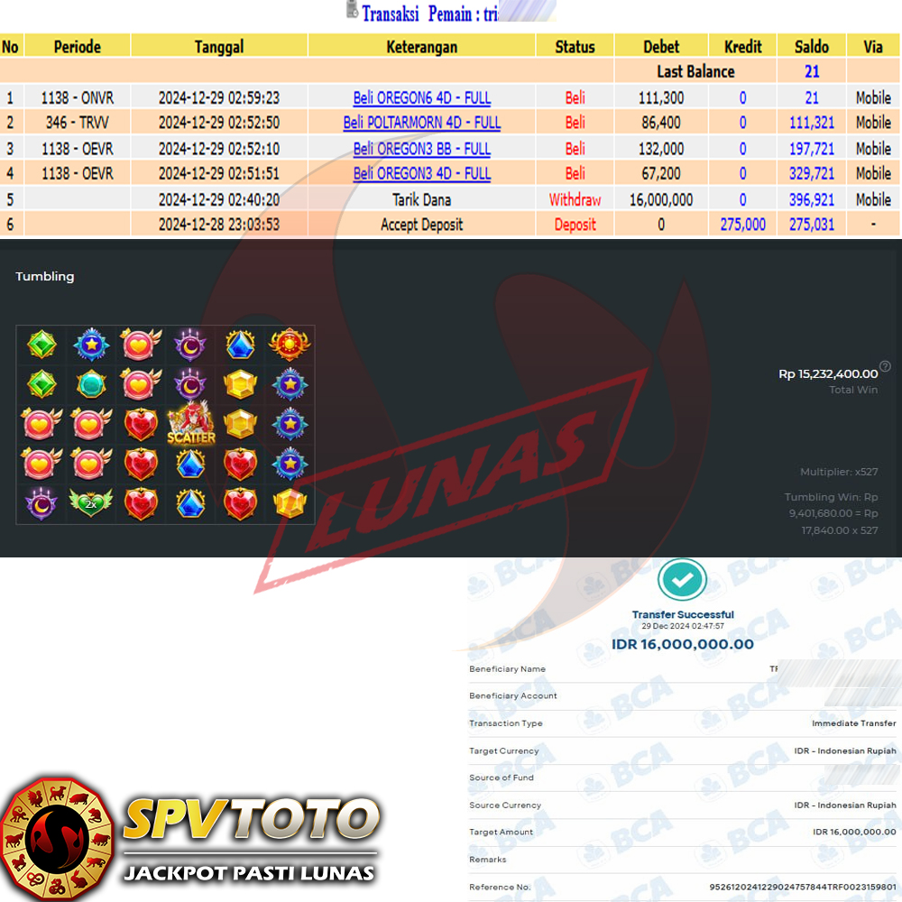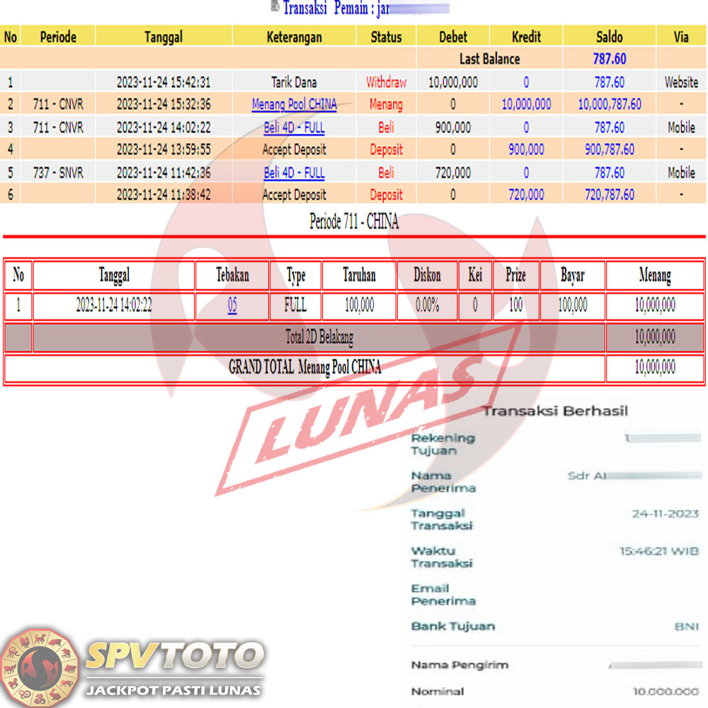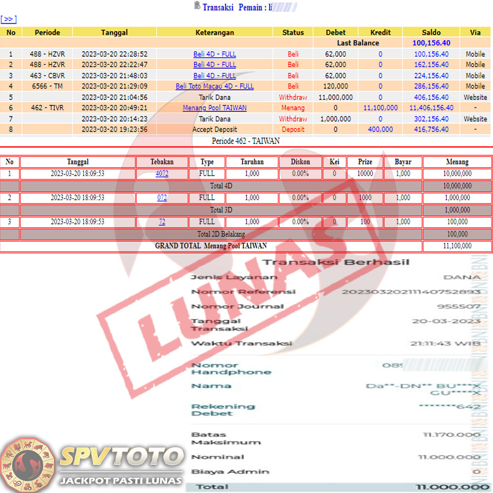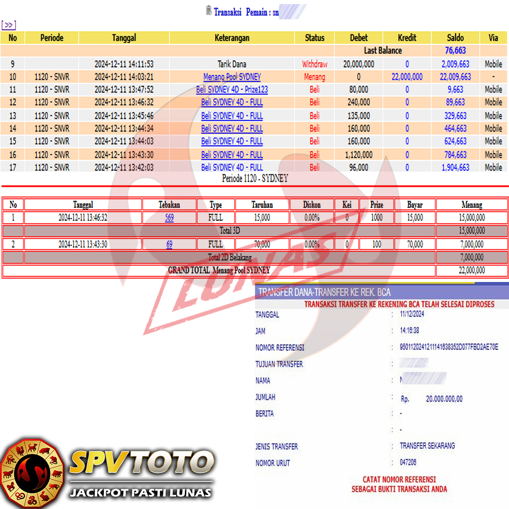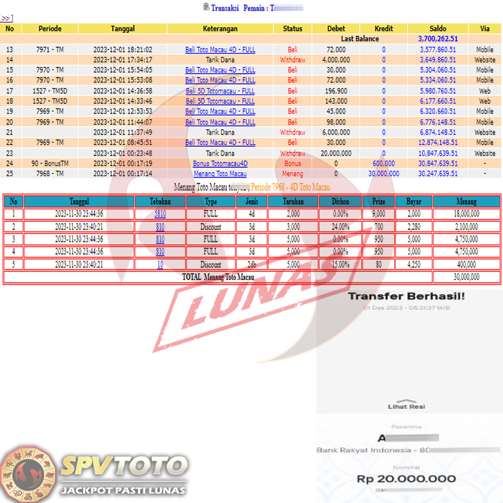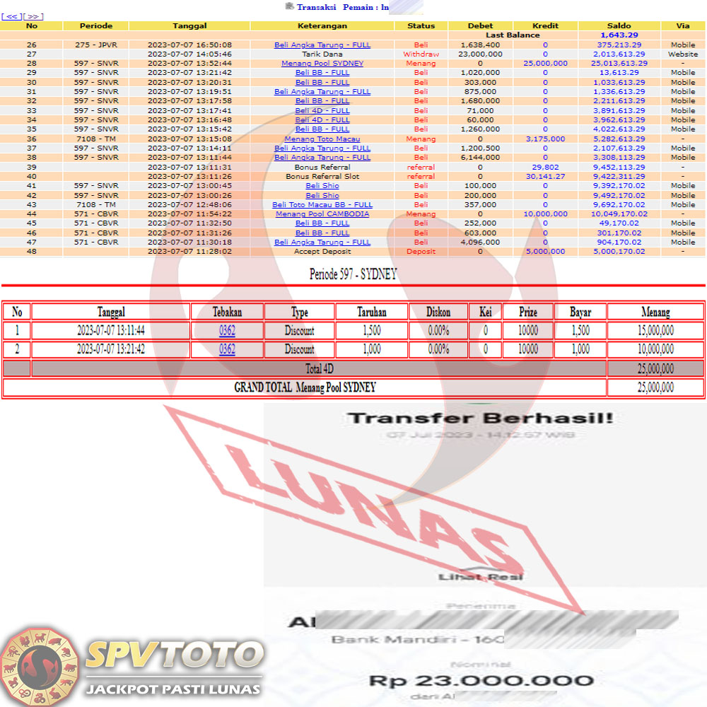 SELAMAT KEPADA MEMBER YANG MENDAPATKAN JACKPOT DI SPVTOTO