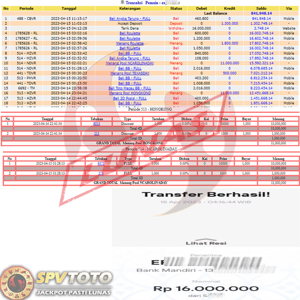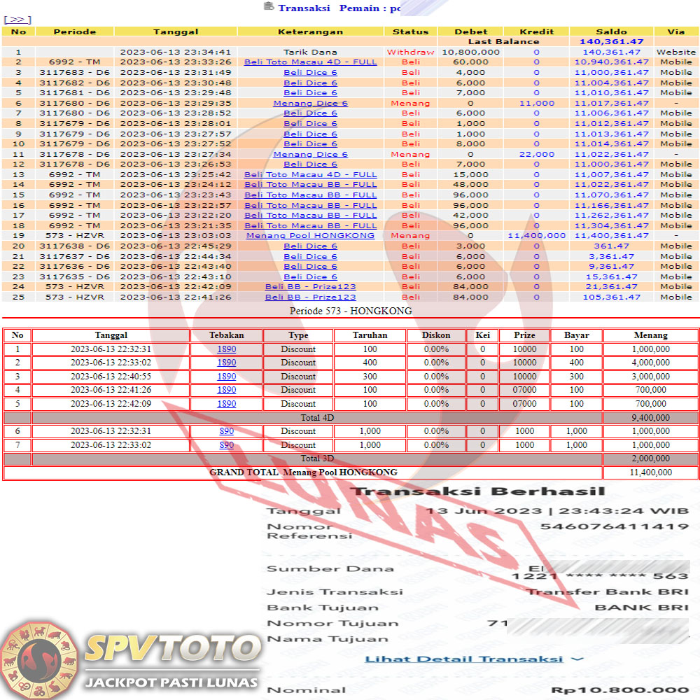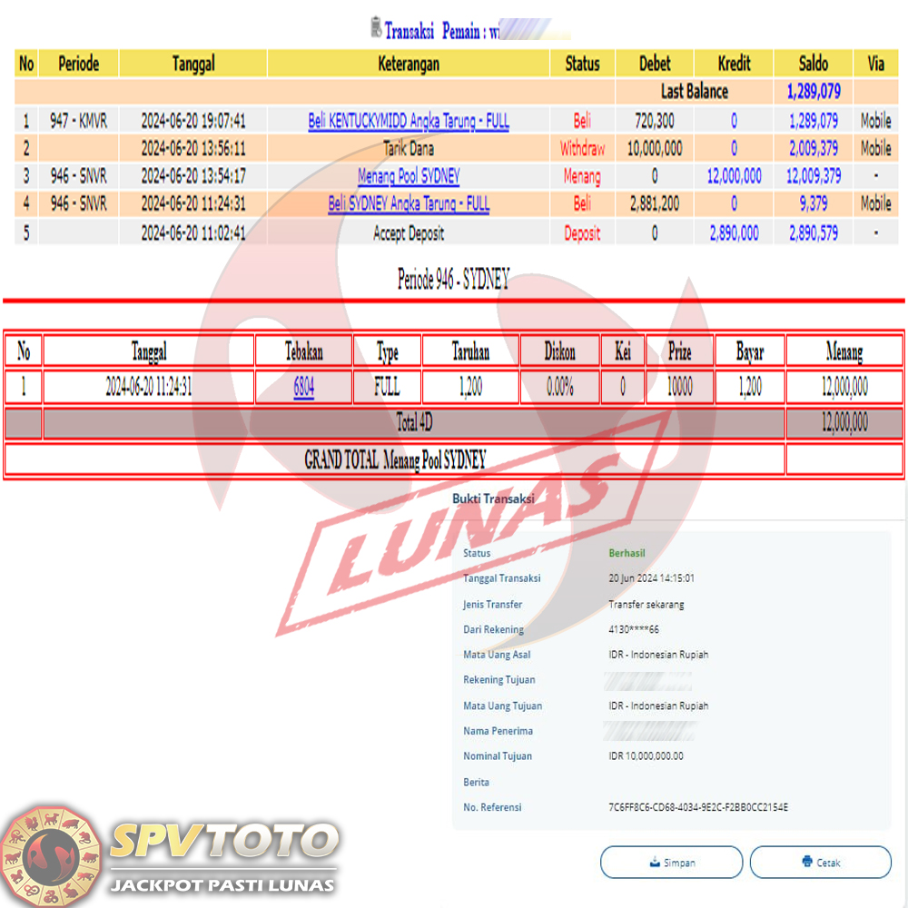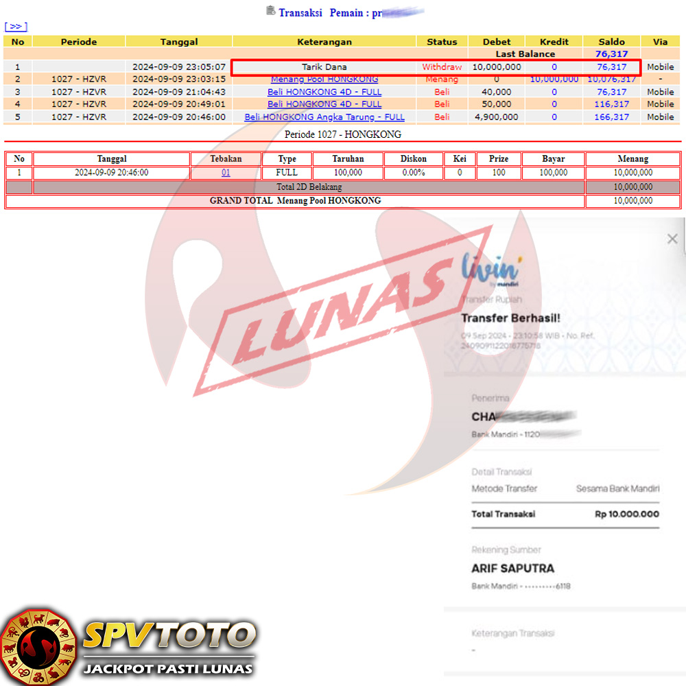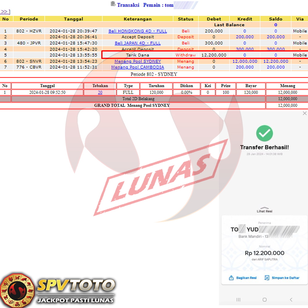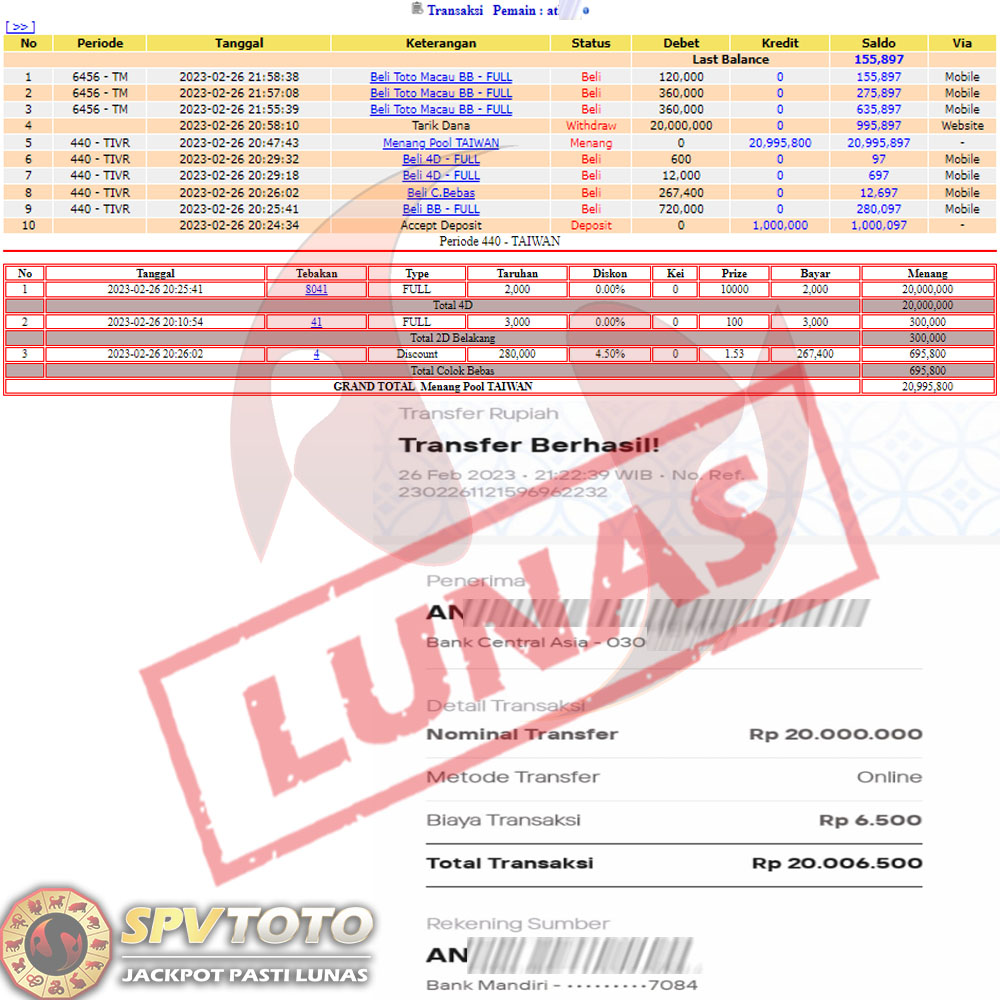 SELAMAT KEPADA MEMBER YANG MENDAPATKAN JACKPOT DI SPVTOTO