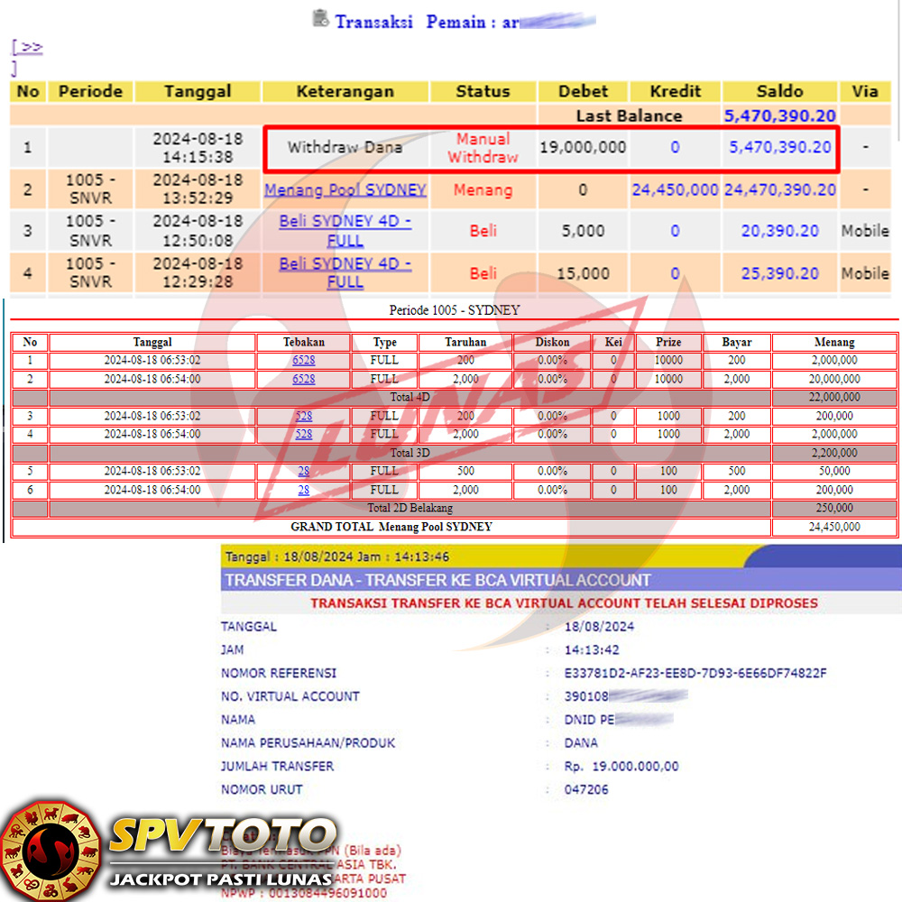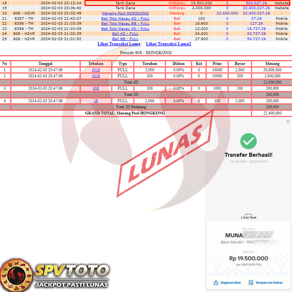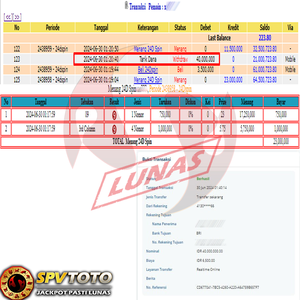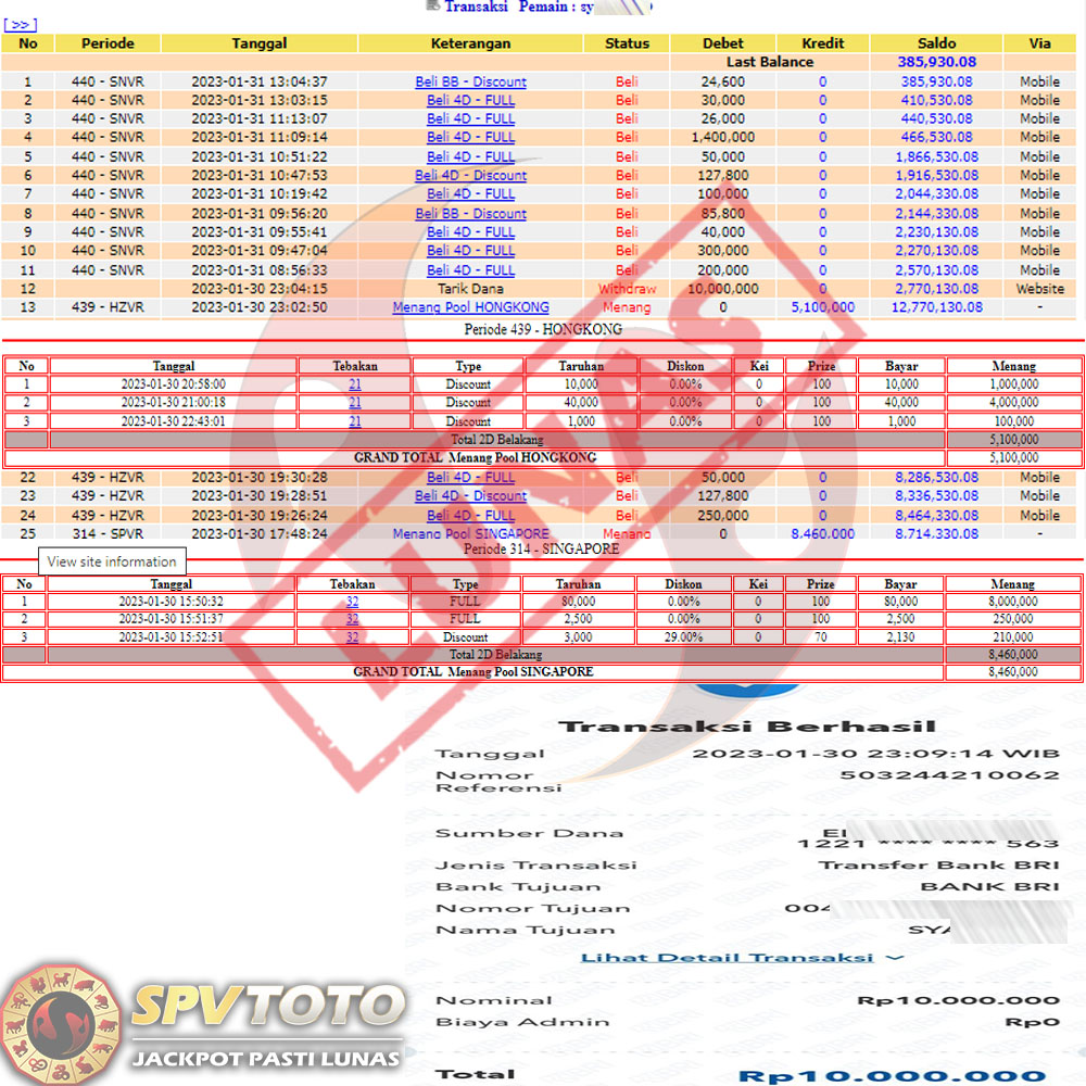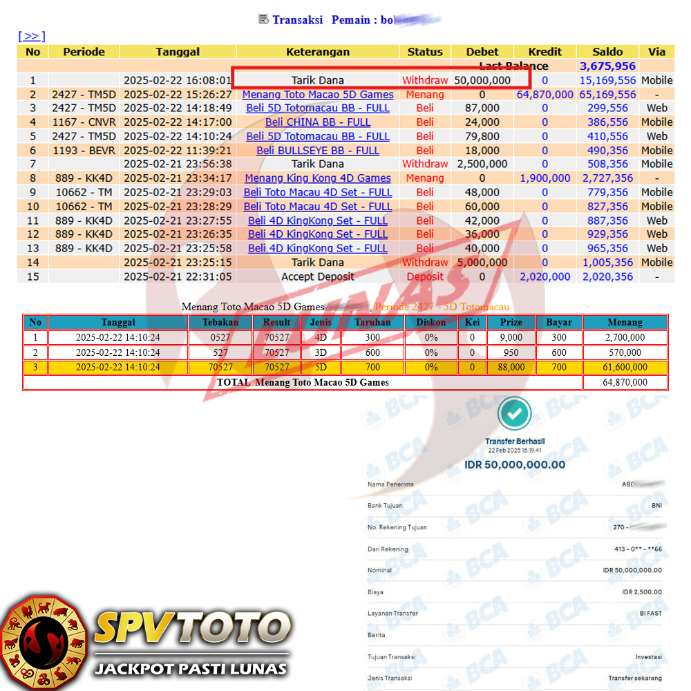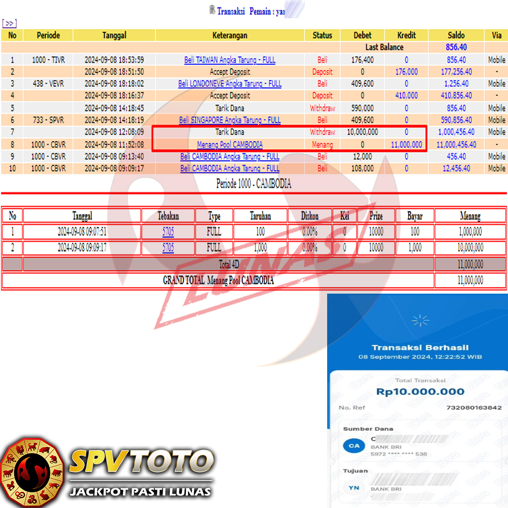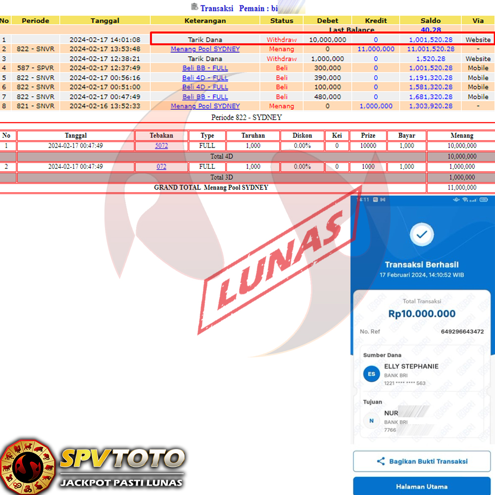 SELAMAT KEPADA MEMBER YANG MENDAPATKAN JACKPOT DI SPVTOTO
