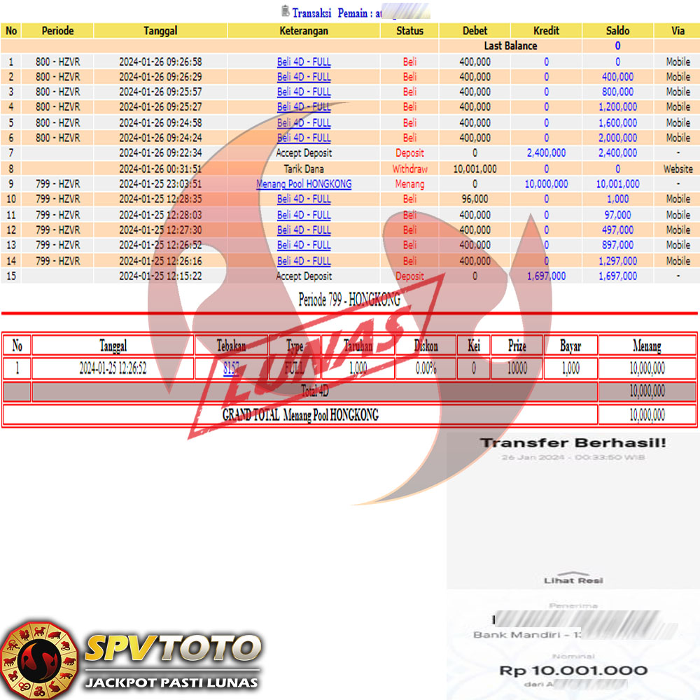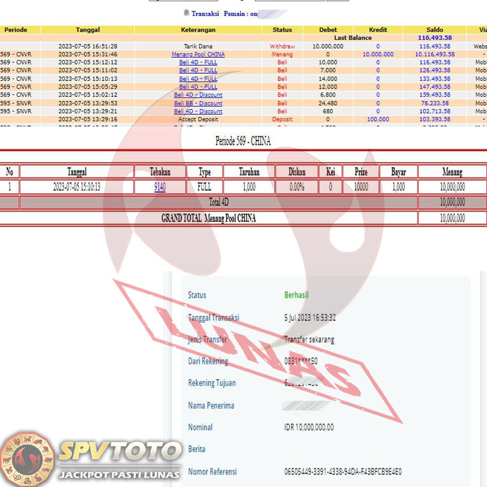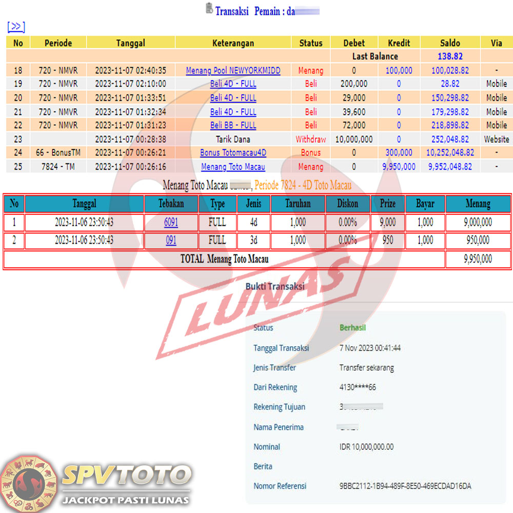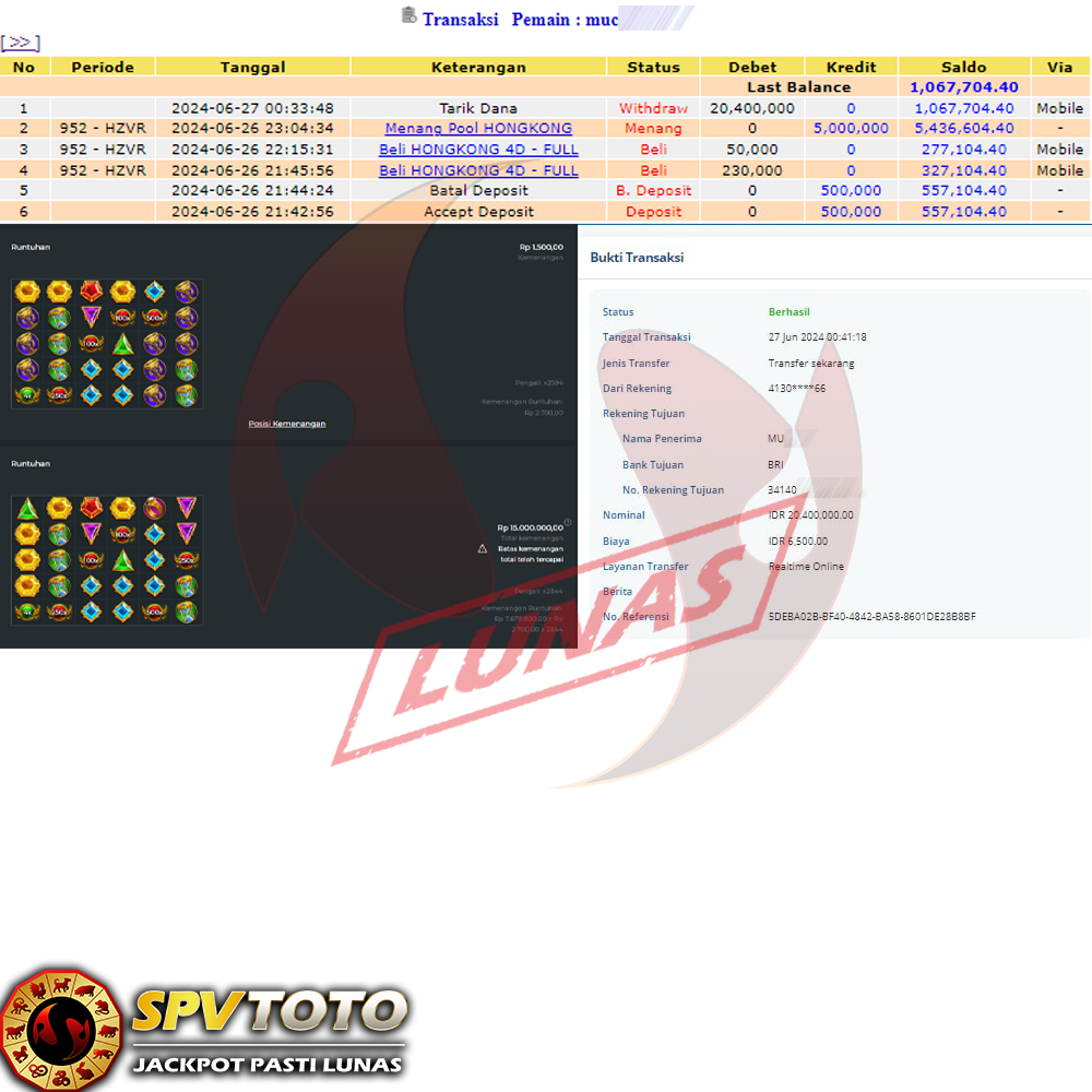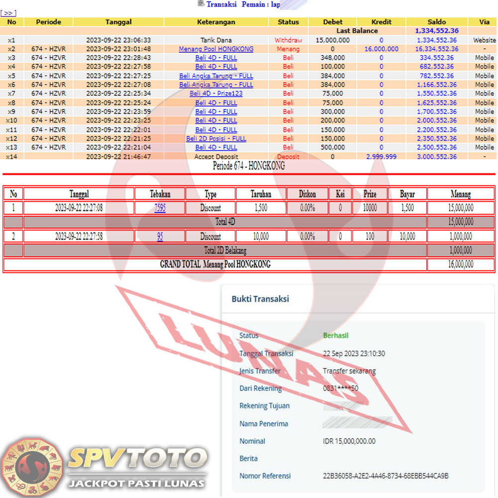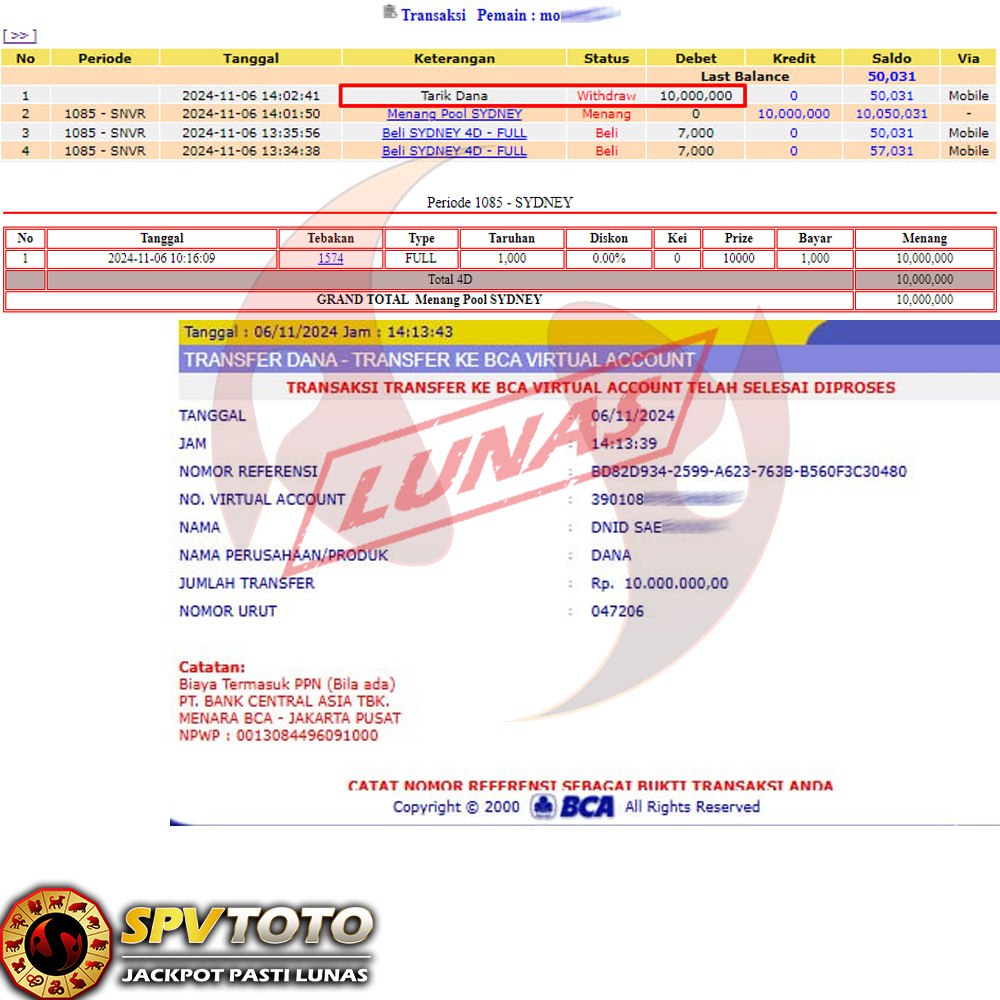 SELAMAT KEPADA MEMBER YANG MENDAPATKAN JACKPOT DI SPVTOTO