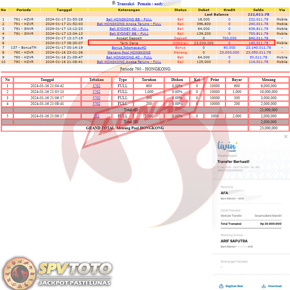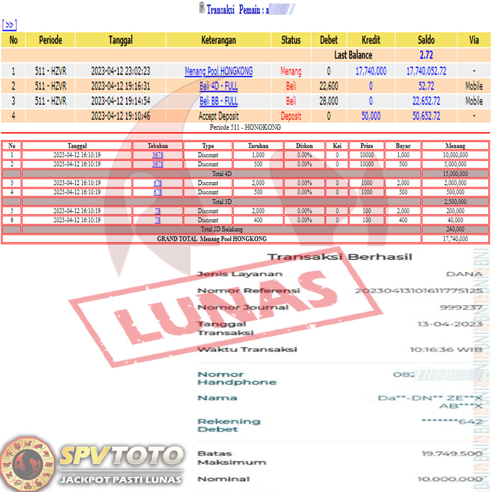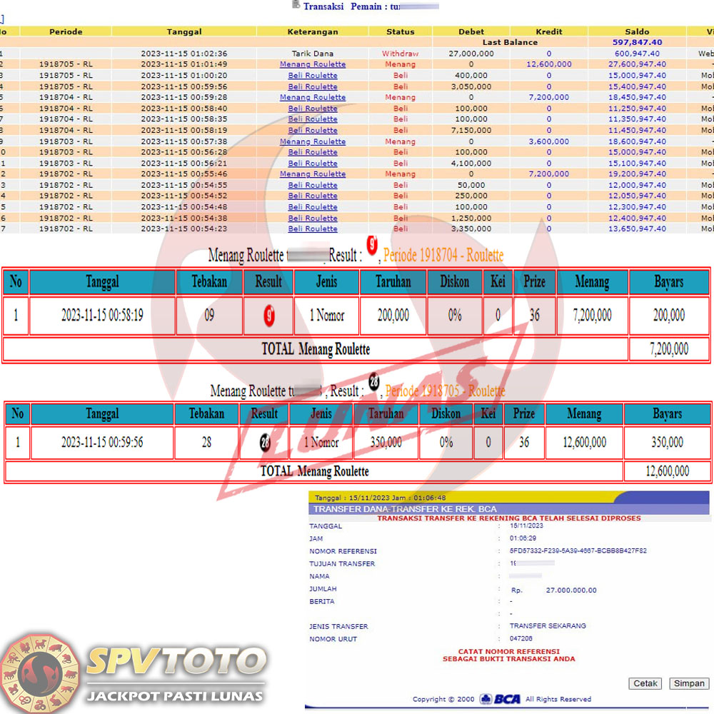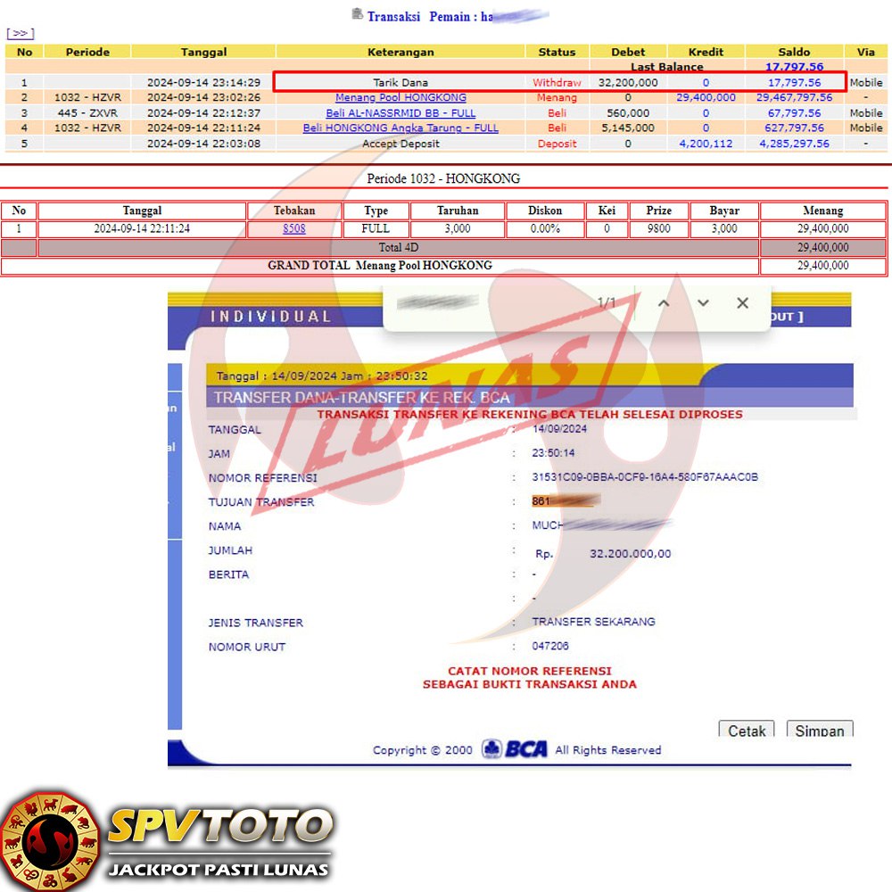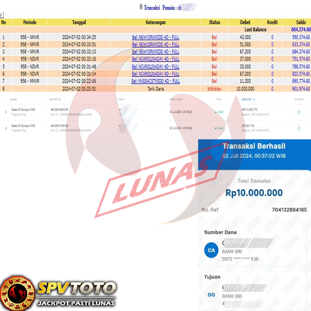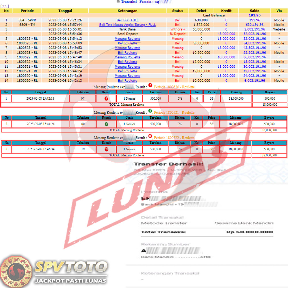 SELAMAT KEPADA MEMBER YANG MENDAPATKAN JACKPOT DI SPVTOTO