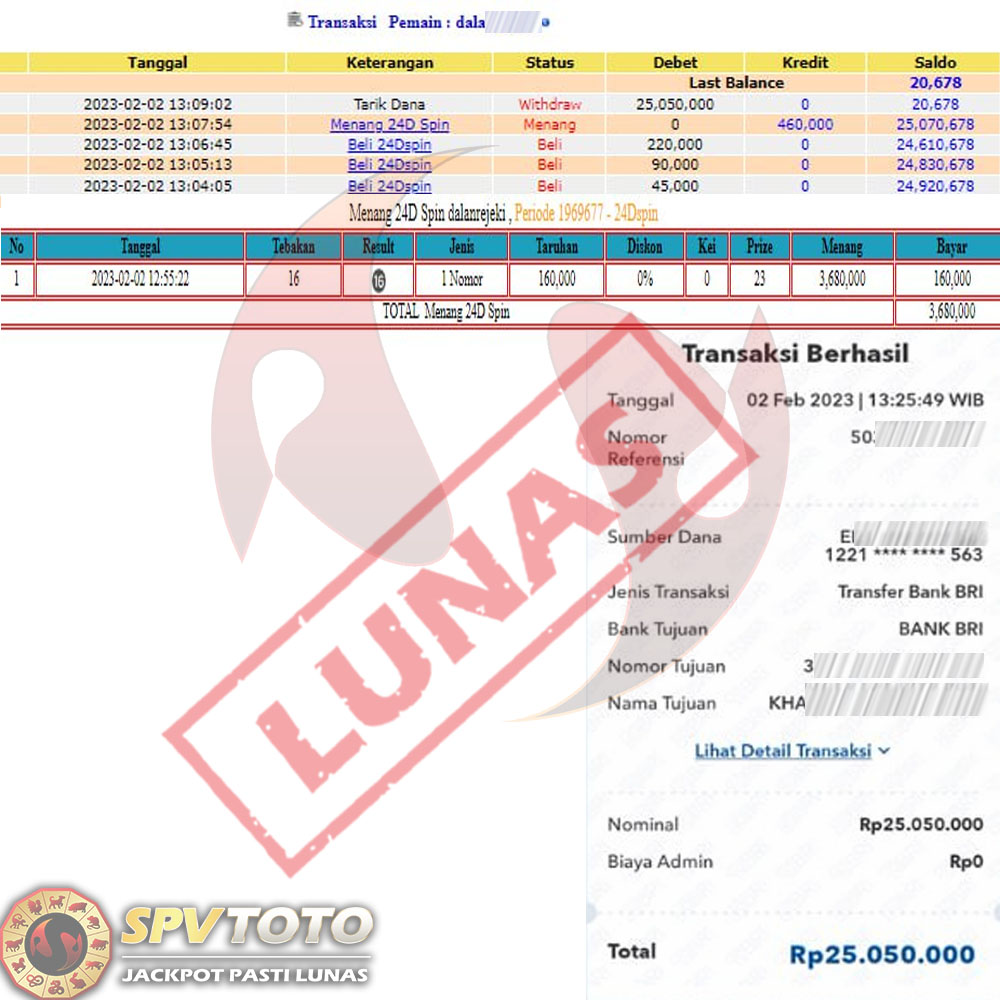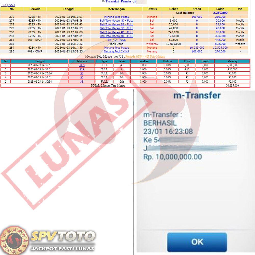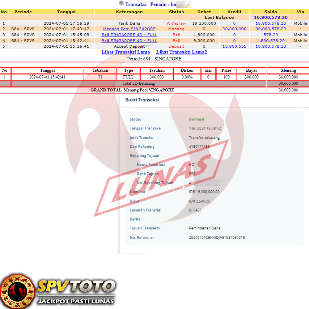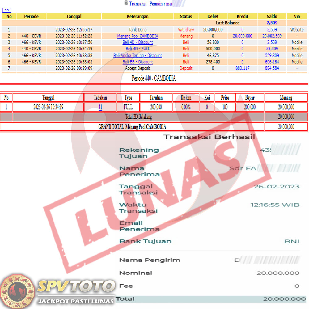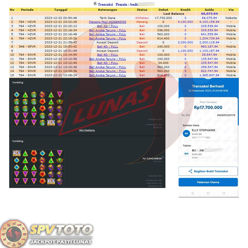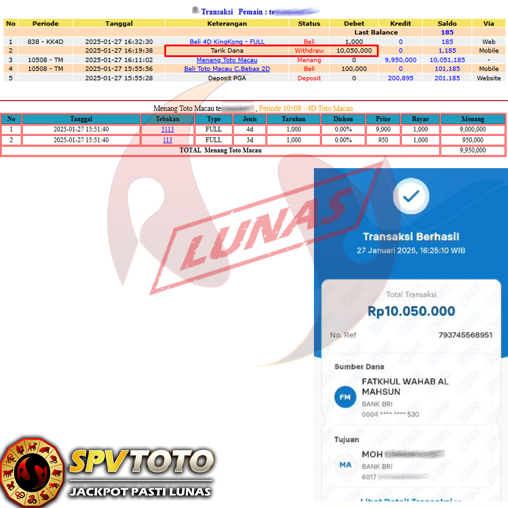 SELAMAT KEPADA MEMBER YANG MENDAPATKAN JACKPOT DI SPVTOTO