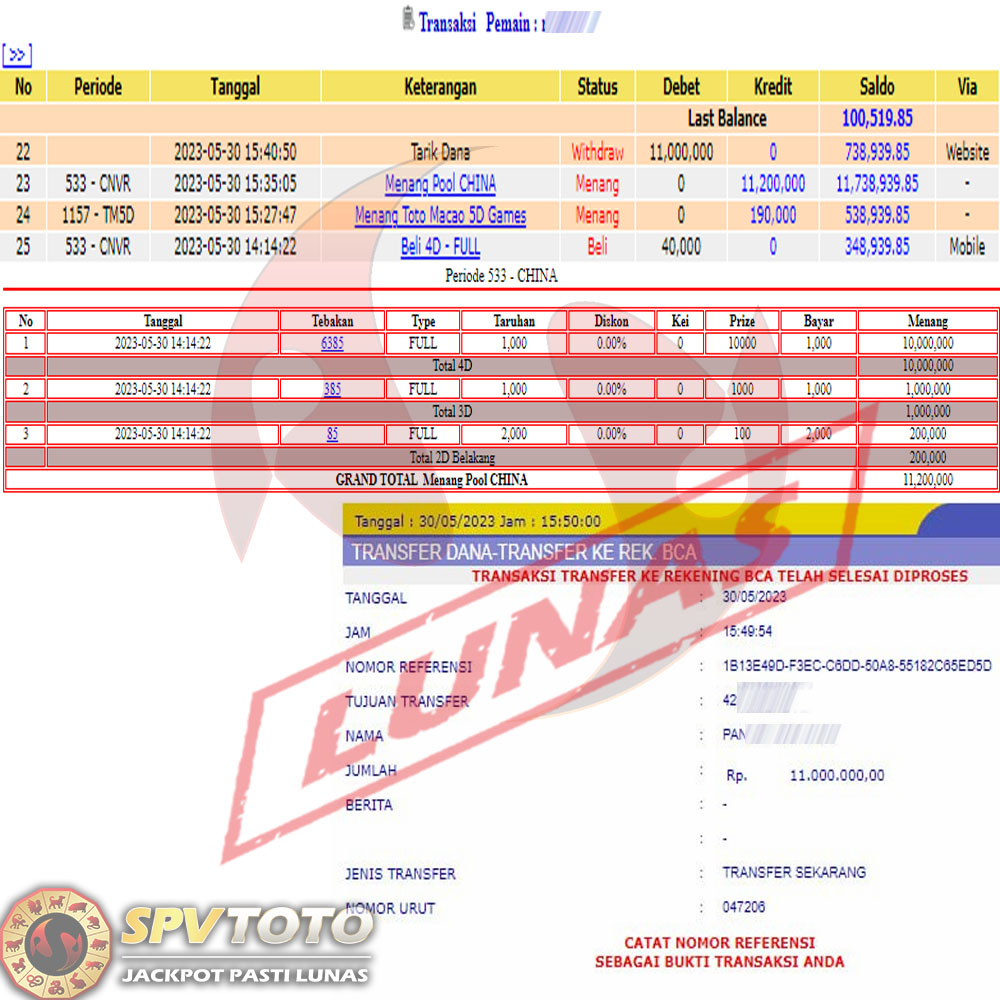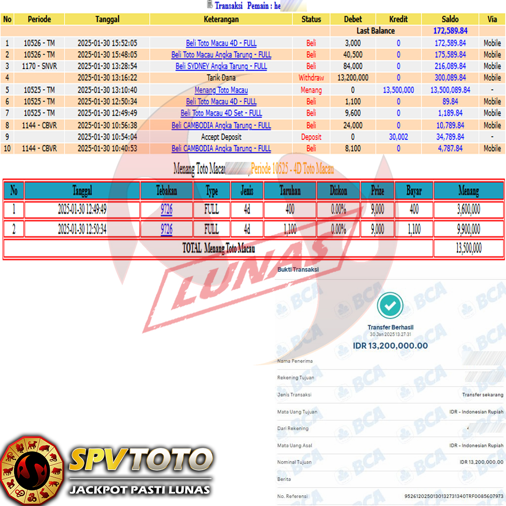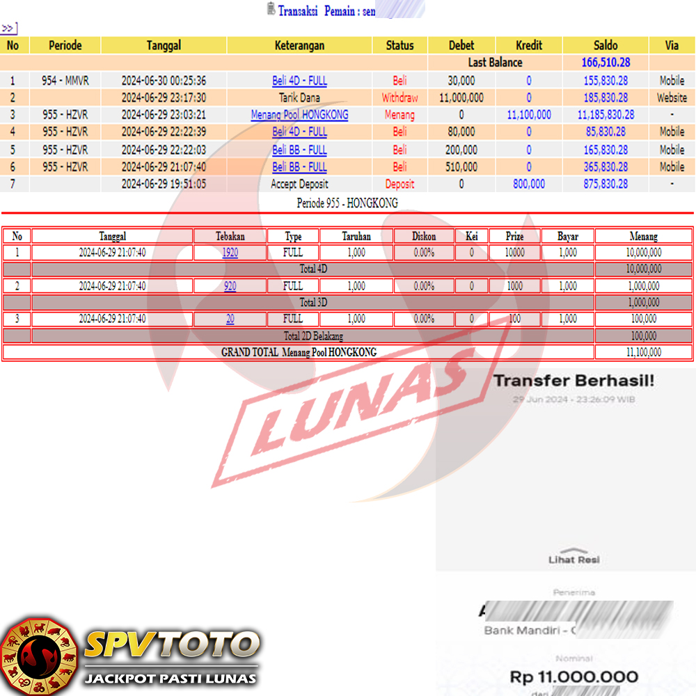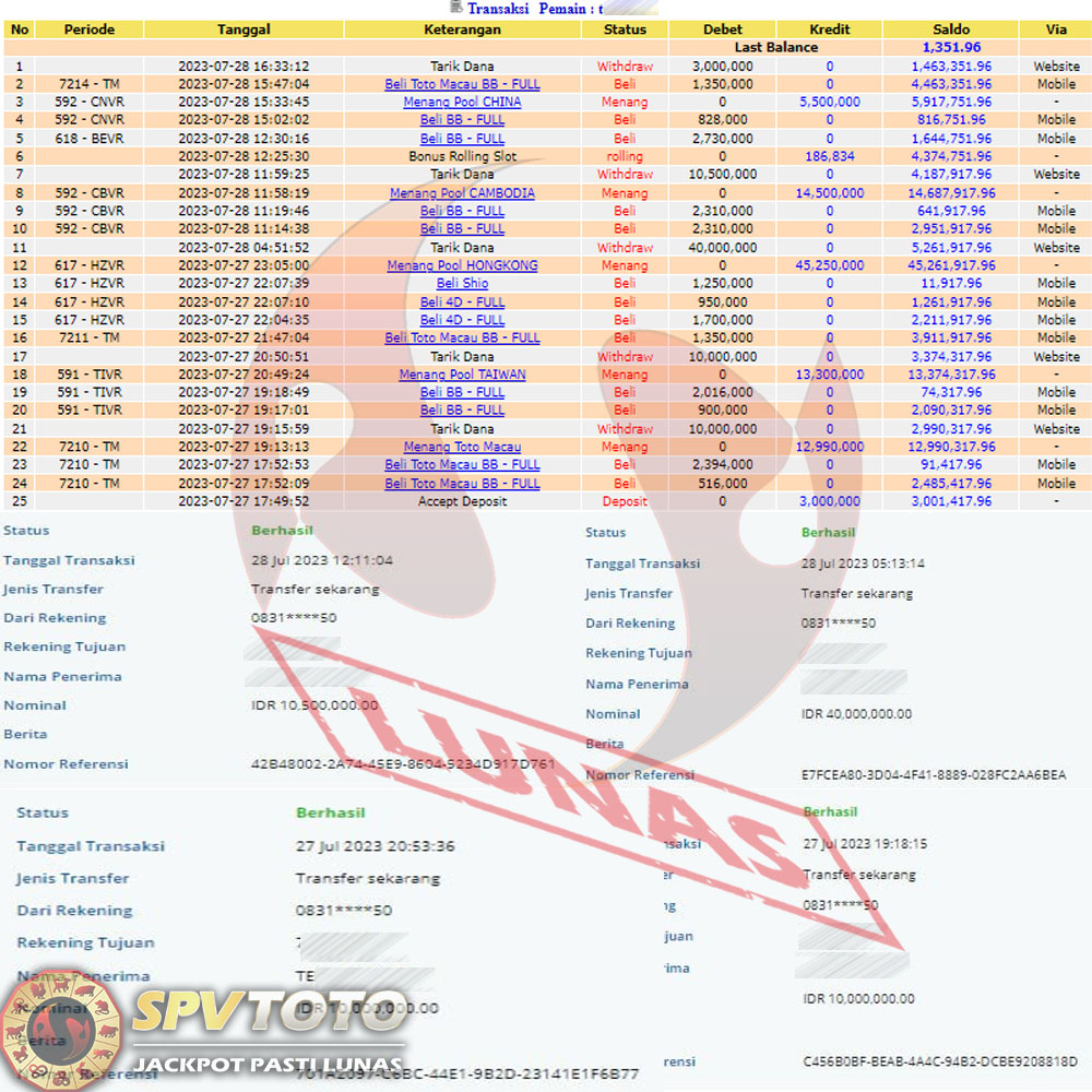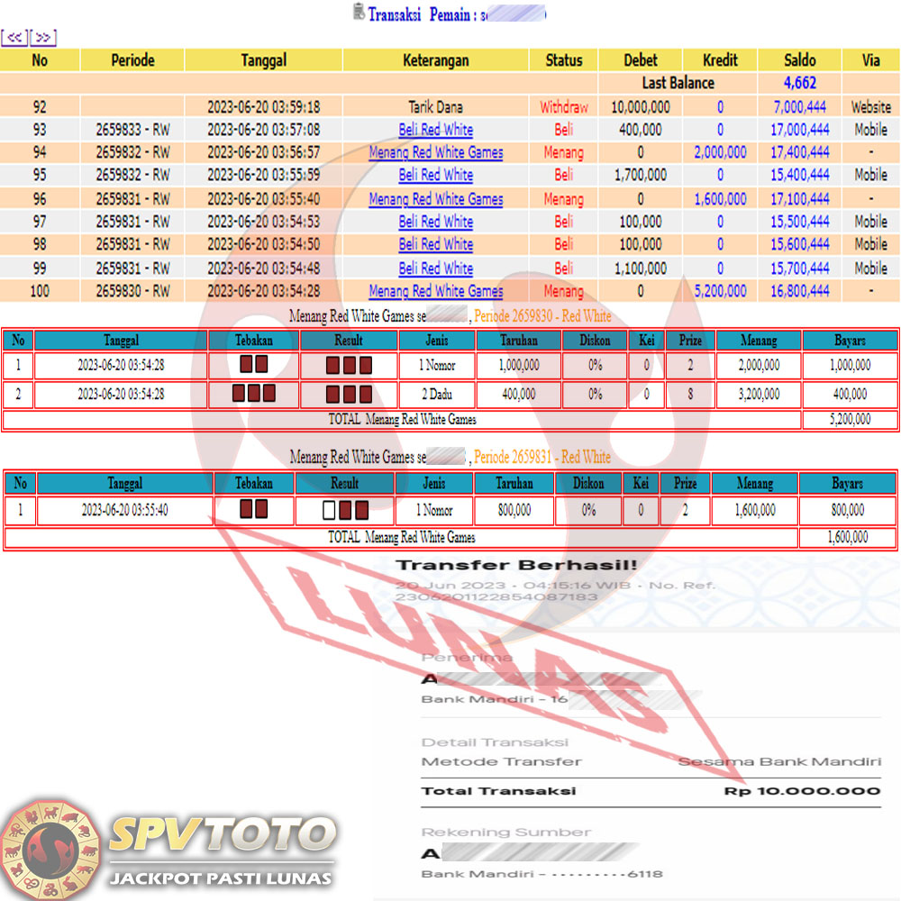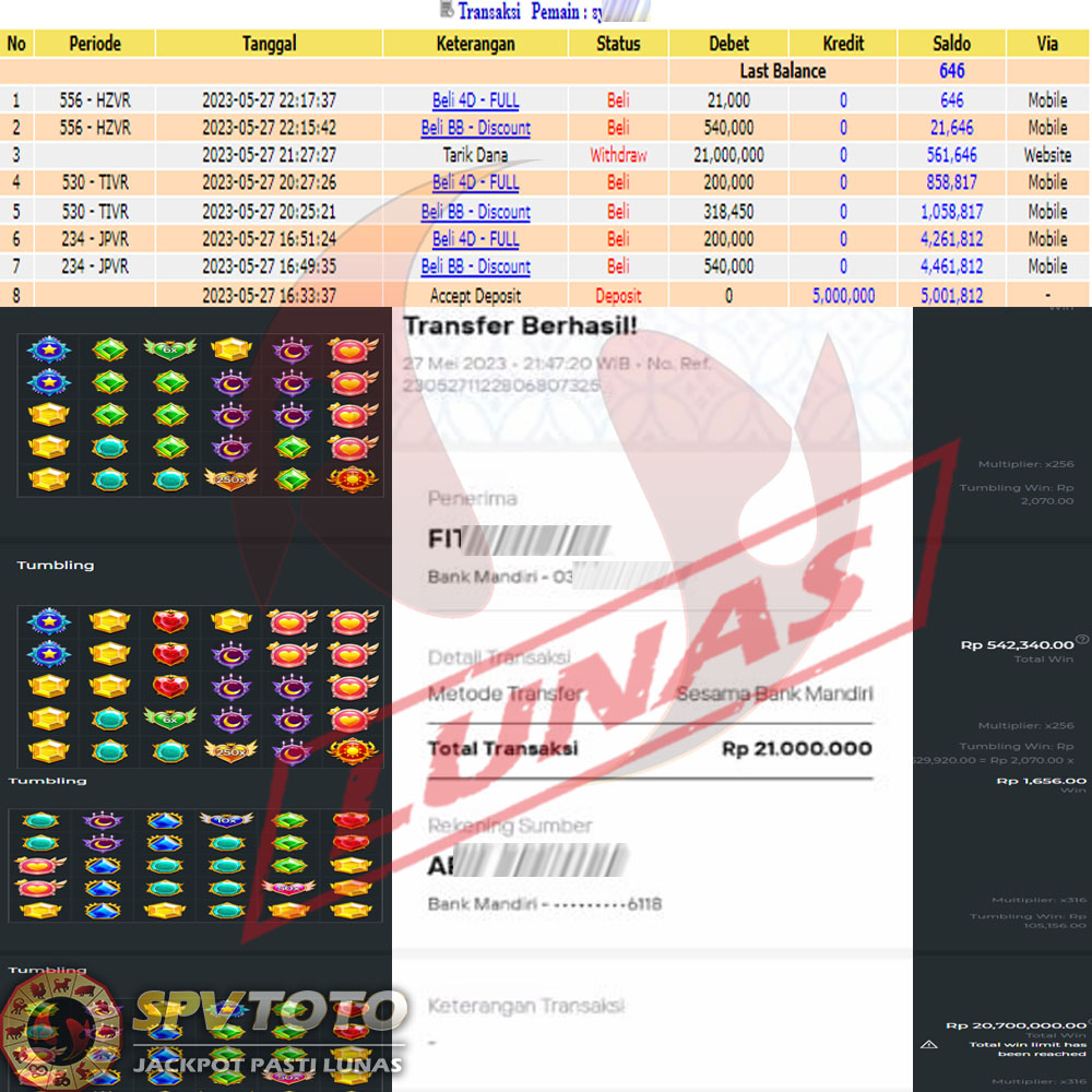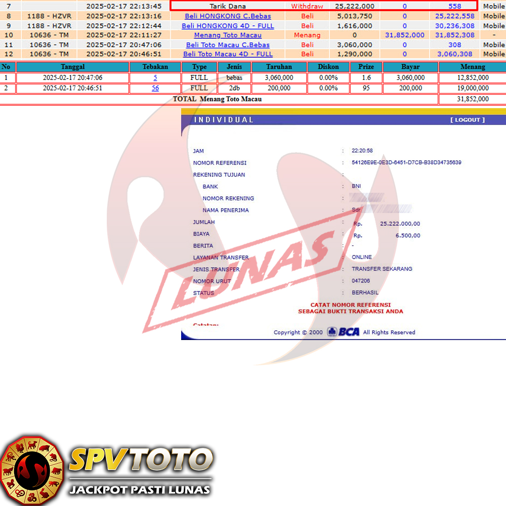 SELAMAT KEPADA MEMBER YANG MENDAPATKAN JACKPOT DI SPVTOTO
