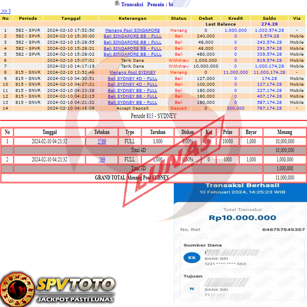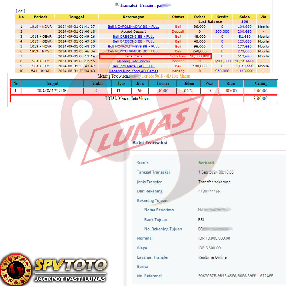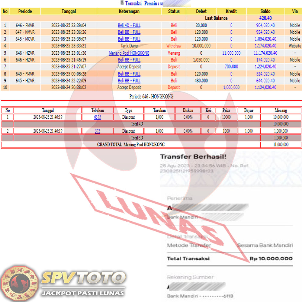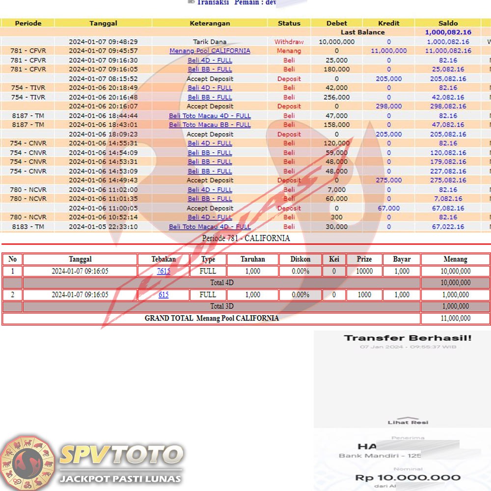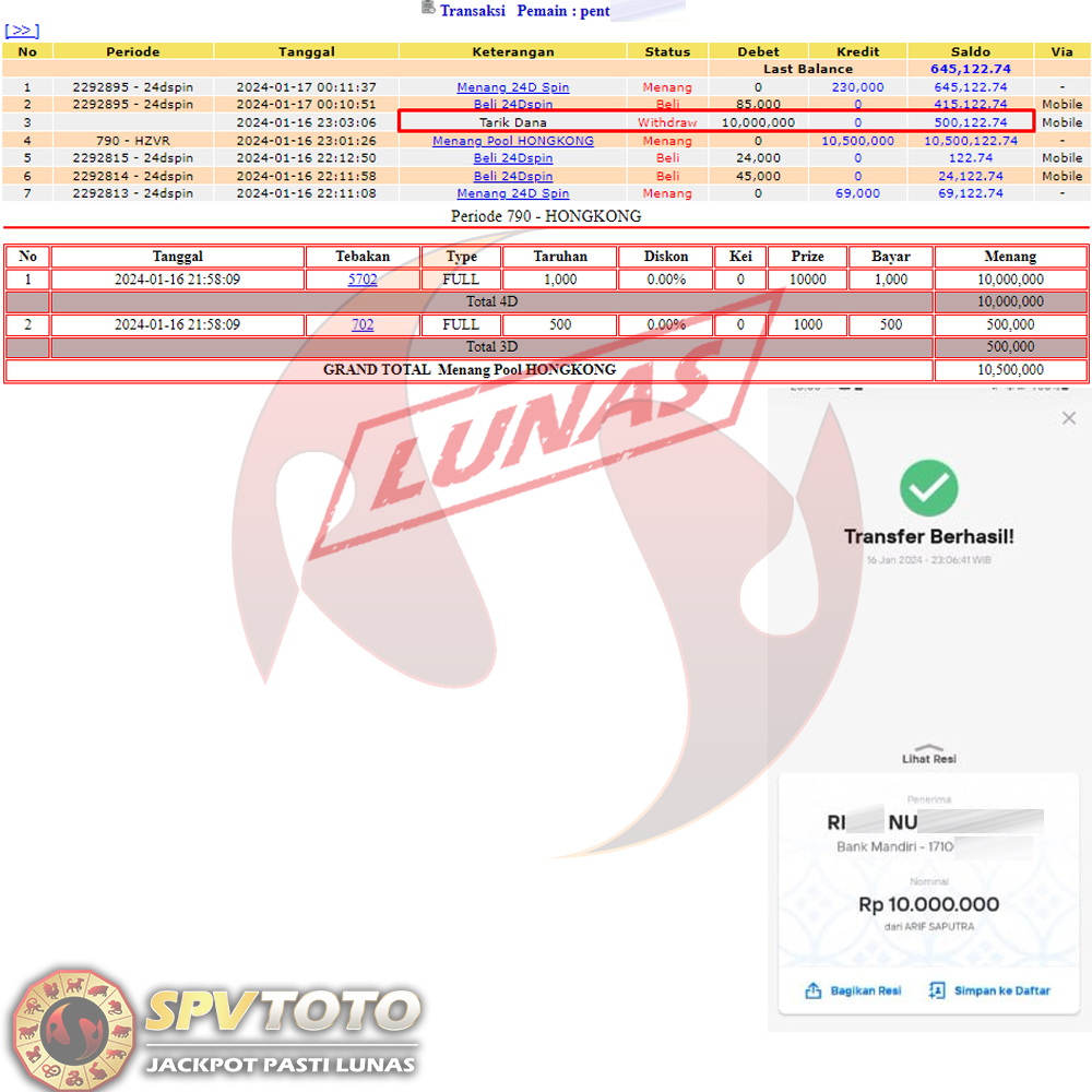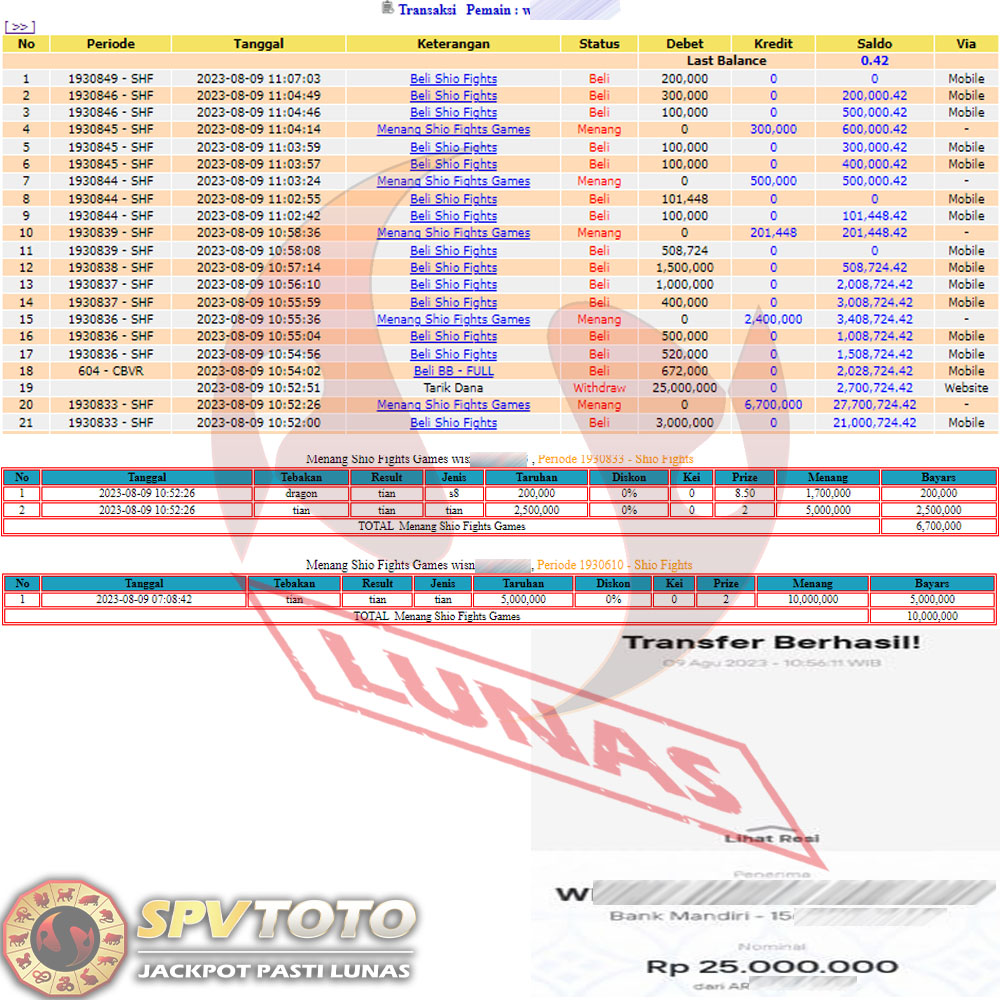 SELAMAT KEPADA MEMBER YANG MENDAPATKAN JACKPOT DI SPVTOTO