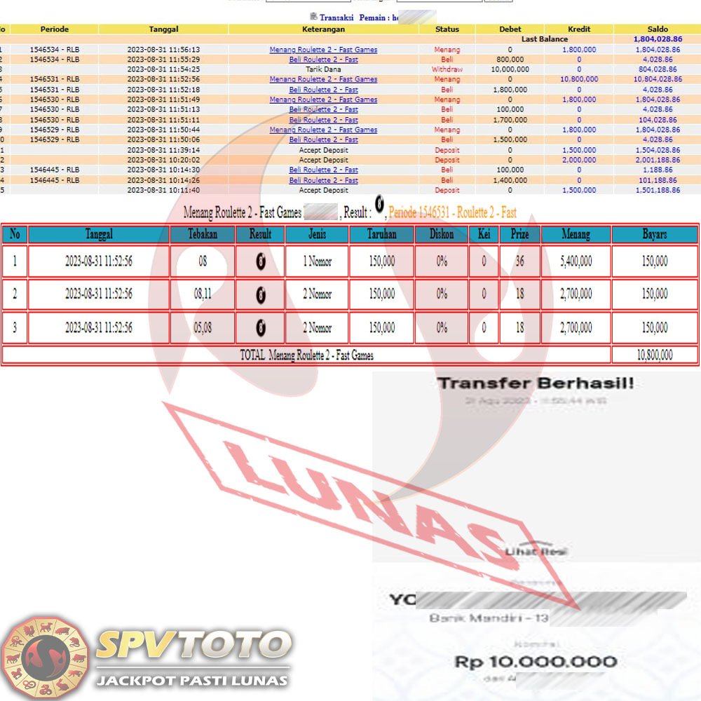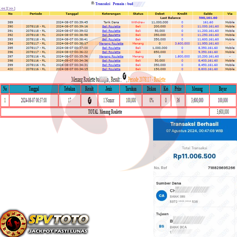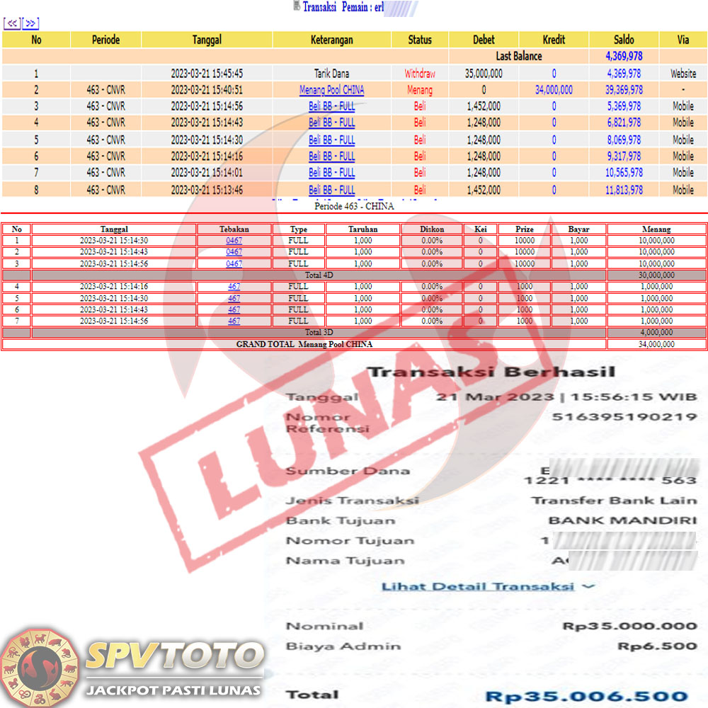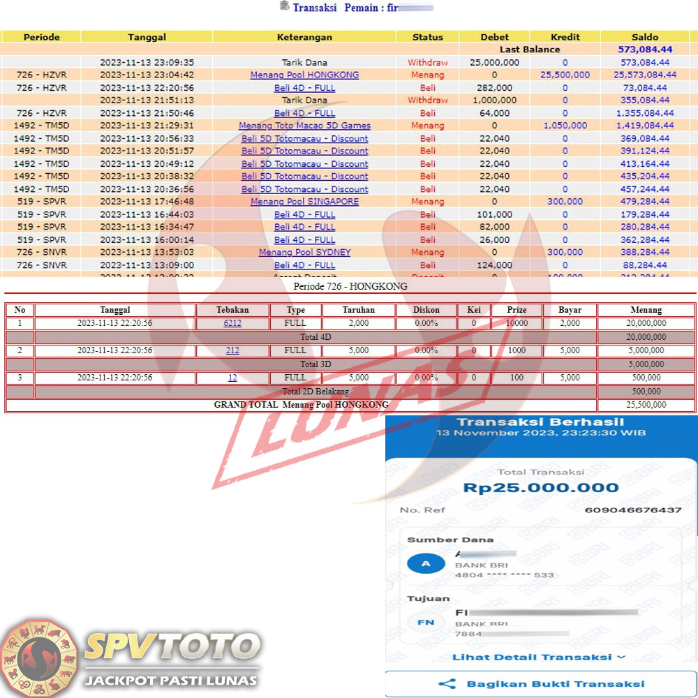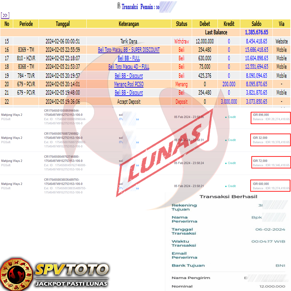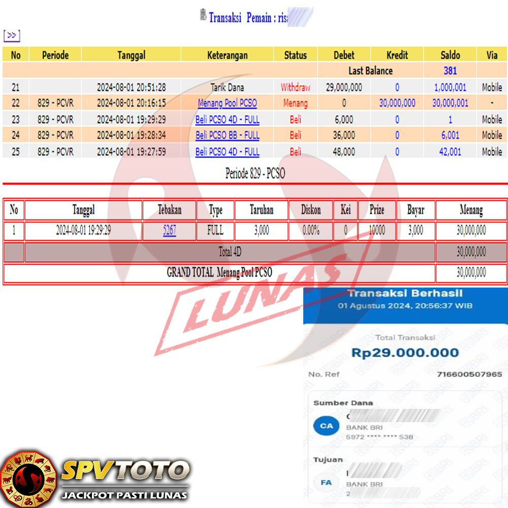 SELAMAT KEPADA MEMBER YANG MENDAPATKAN JACKPOT DI SPVTOTO