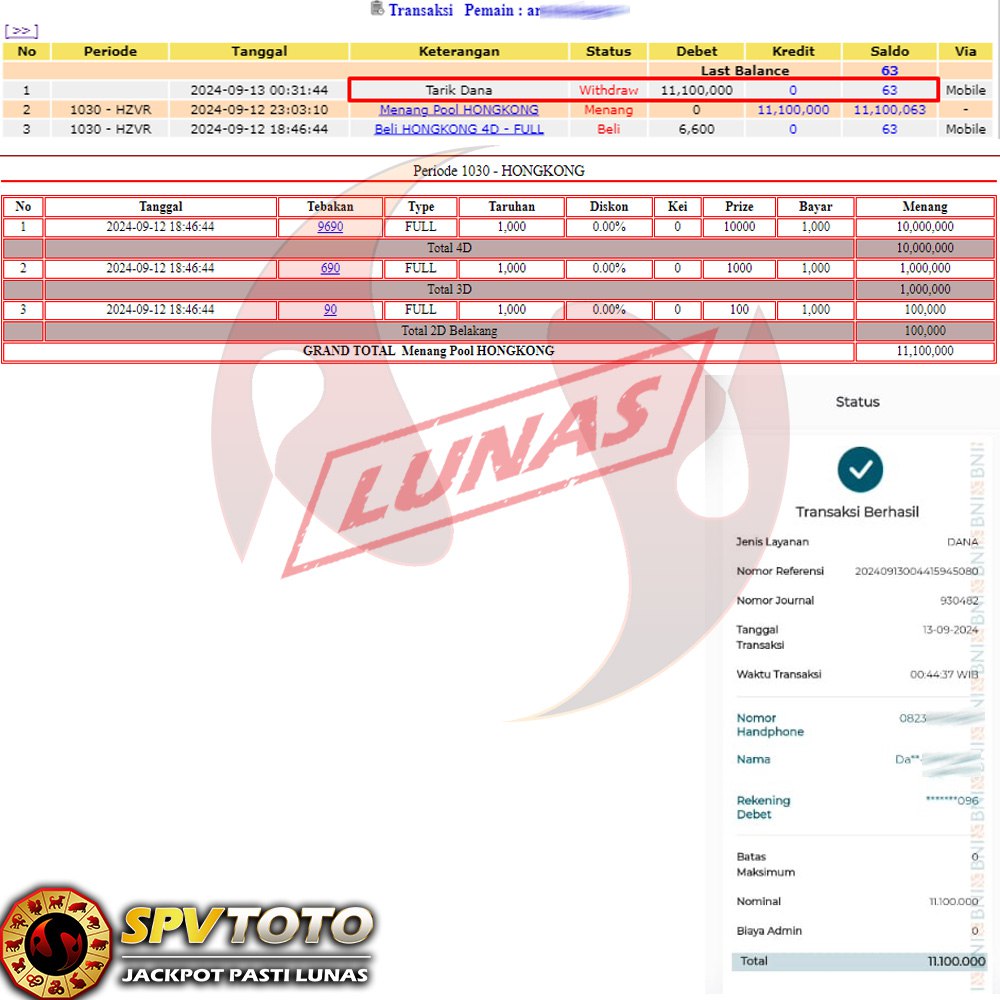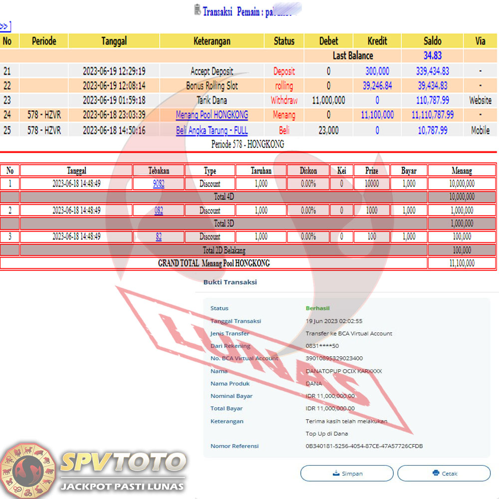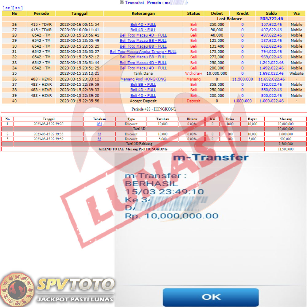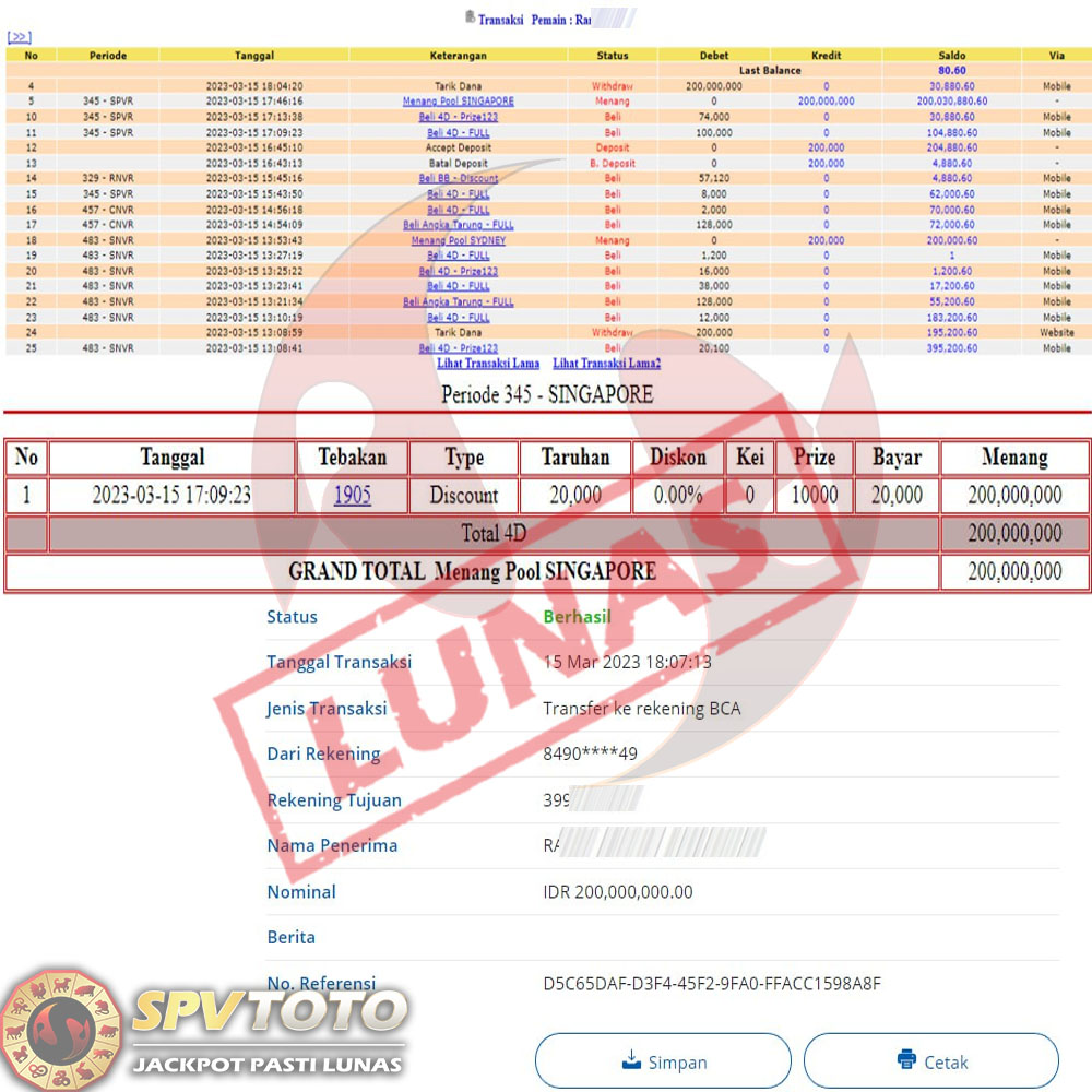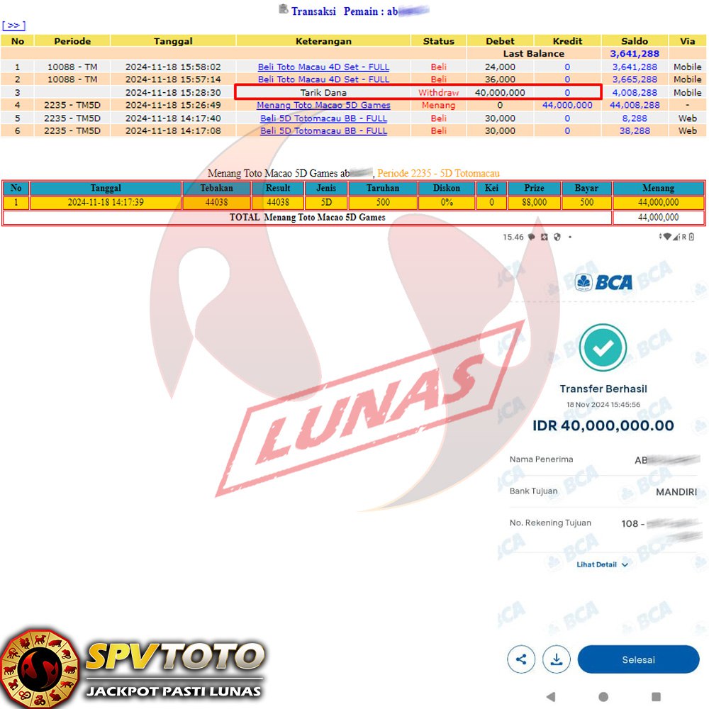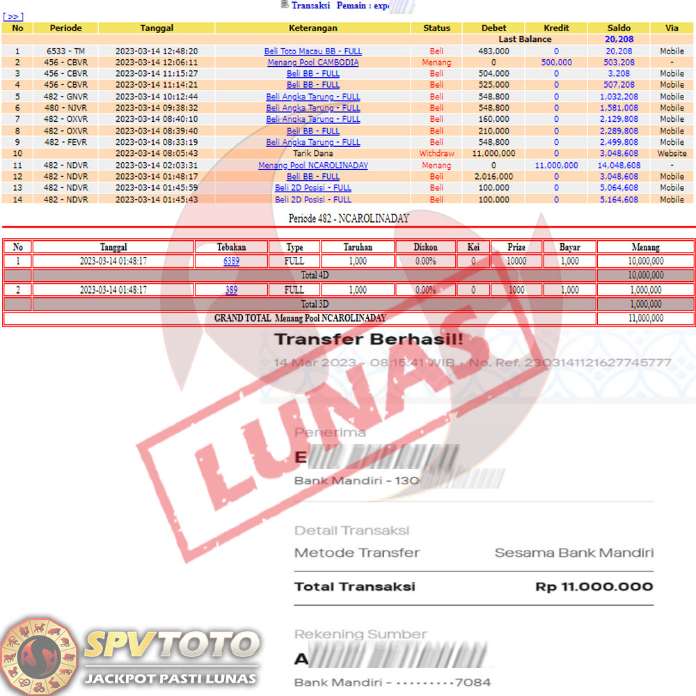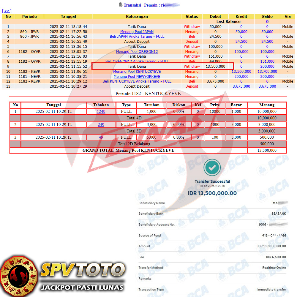 SELAMAT KEPADA MEMBER YANG MENDAPATKAN JACKPOT DI SPVTOTO