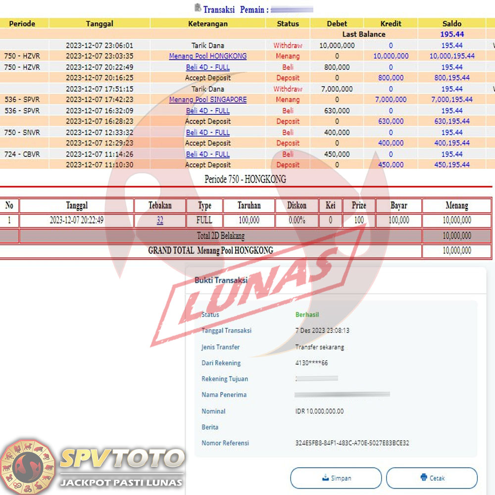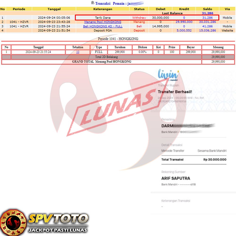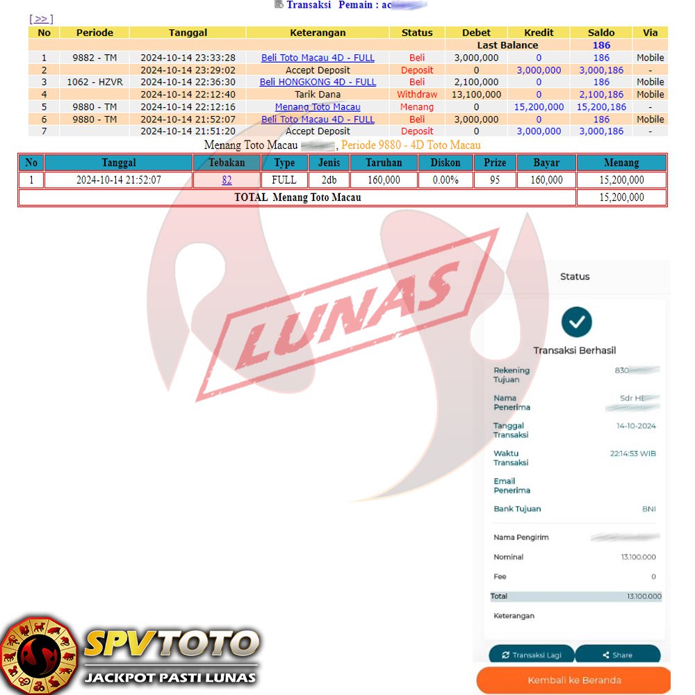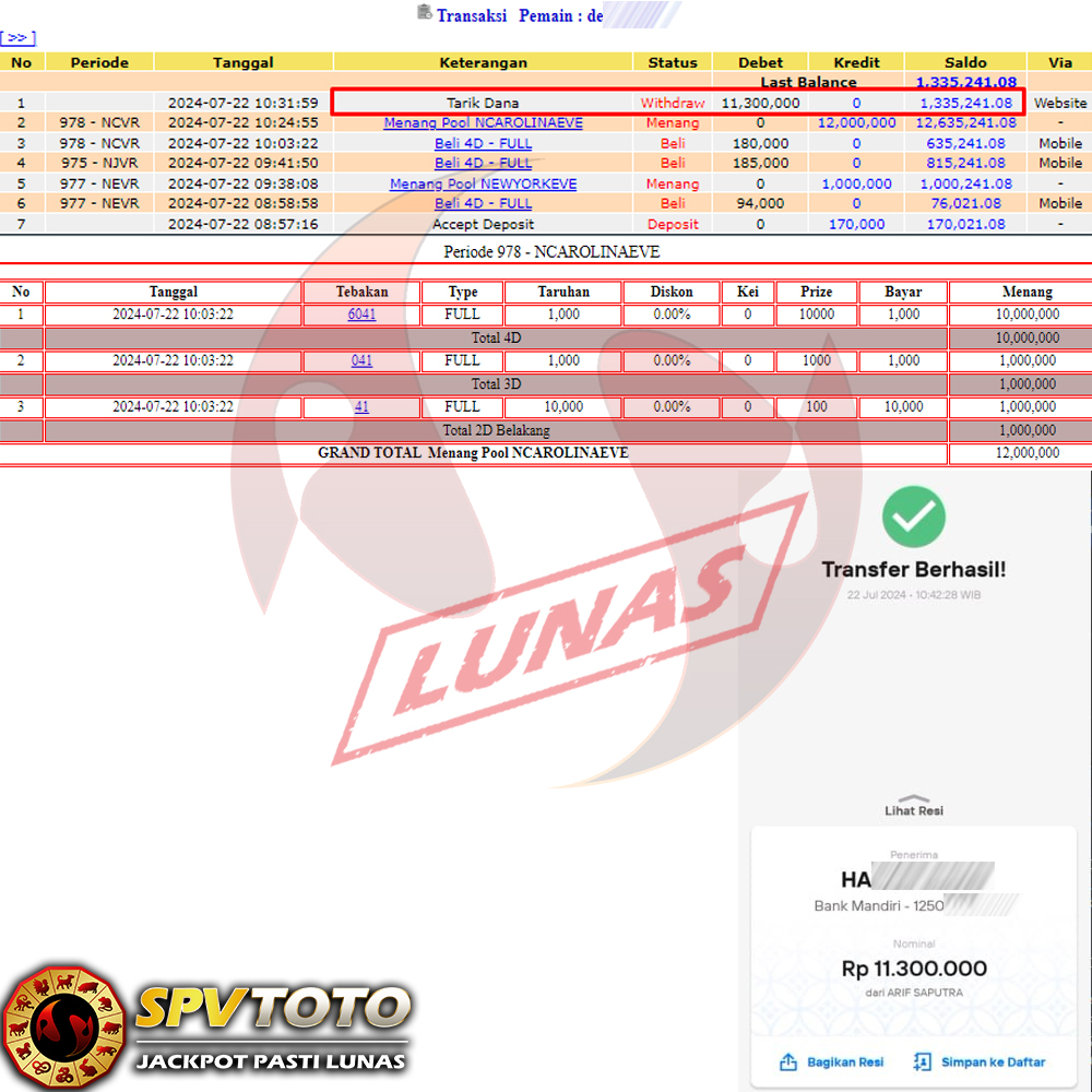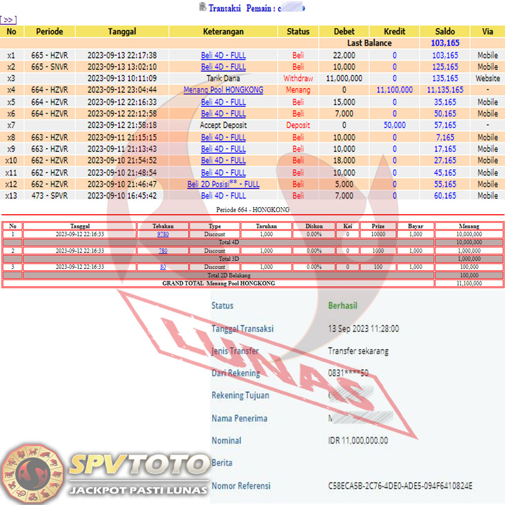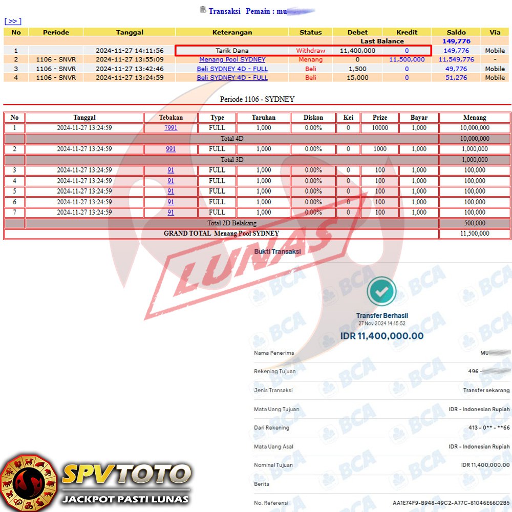 SELAMAT KEPADA MEMBER YANG MENDAPATKAN JACKPOT DI SPVTOTO