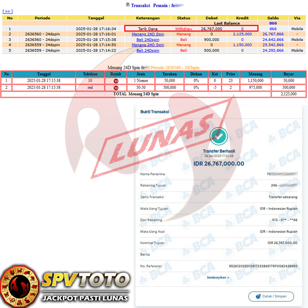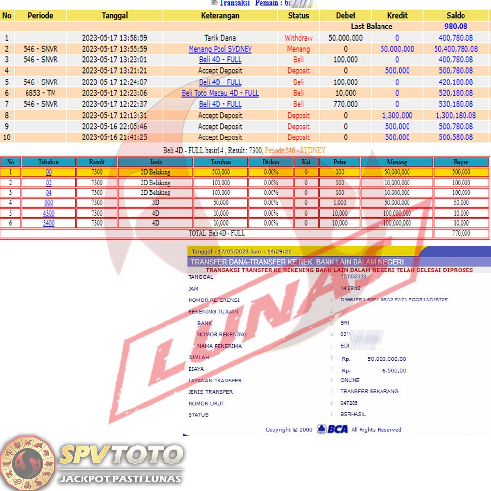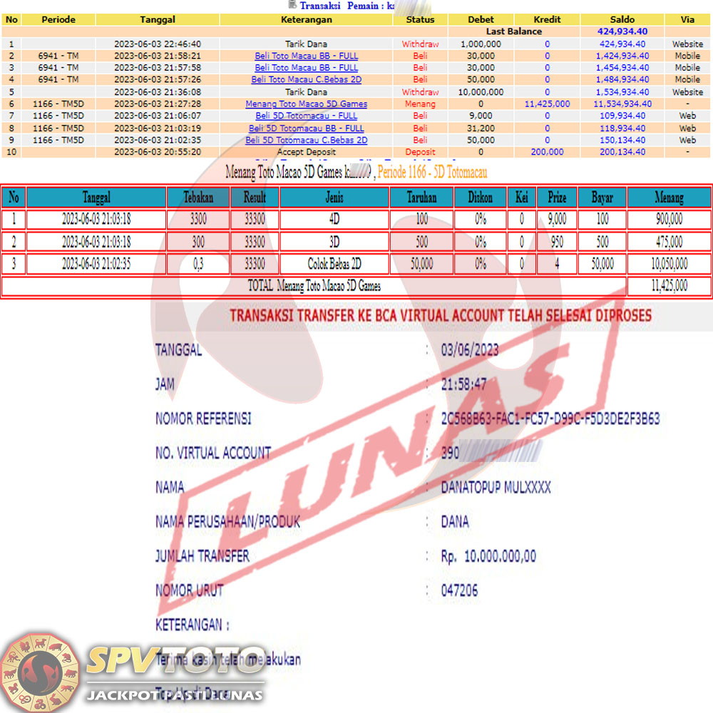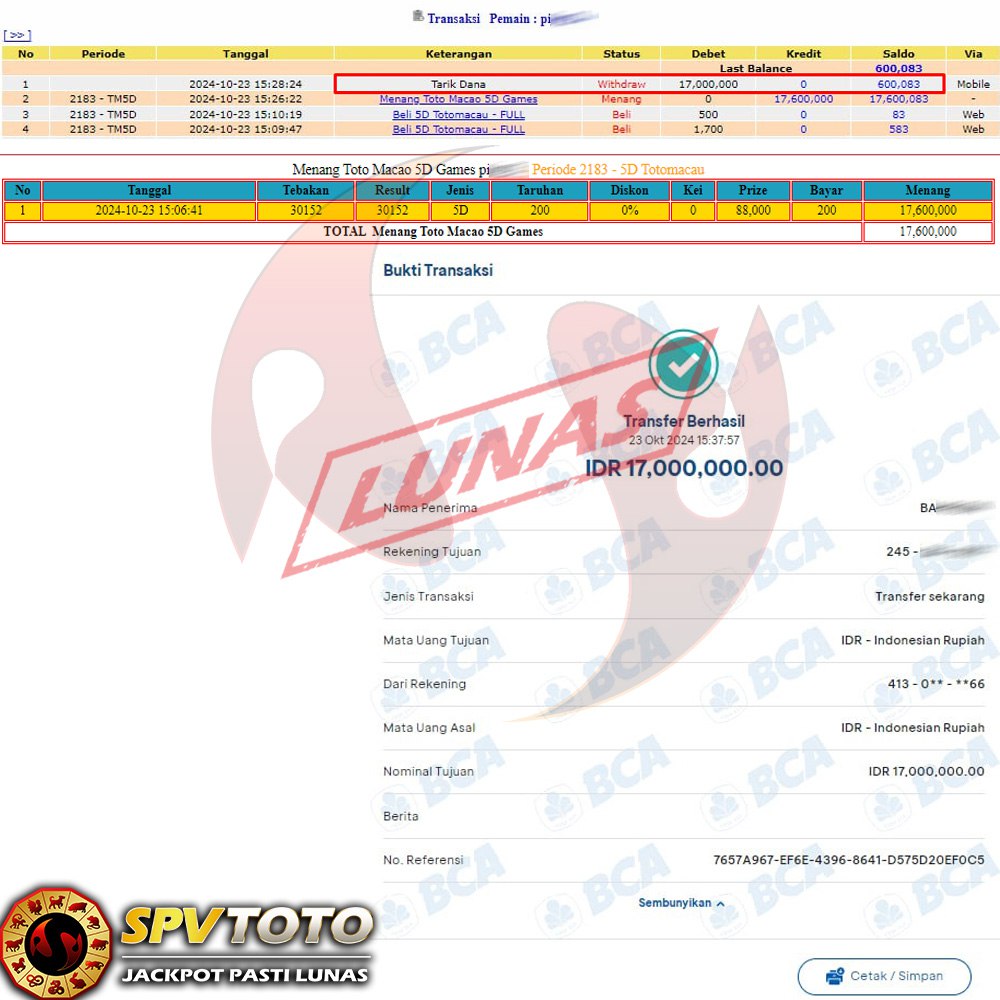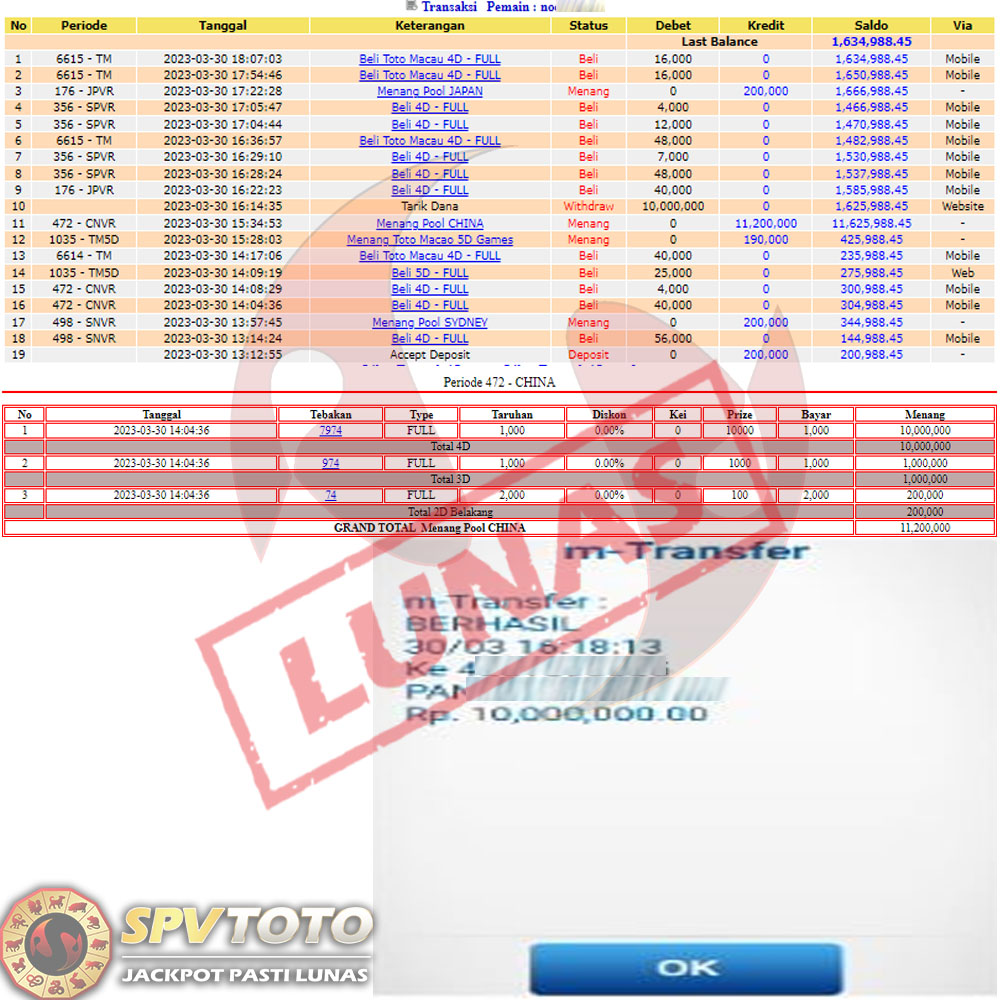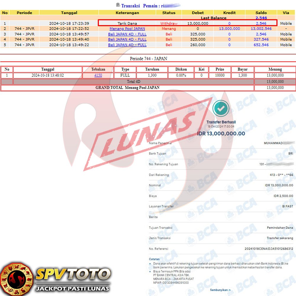 SELAMAT KEPADA MEMBER YANG MENDAPATKAN JACKPOT DI SPVTOTO