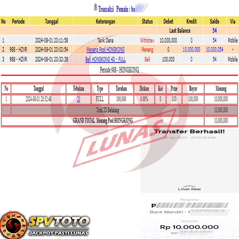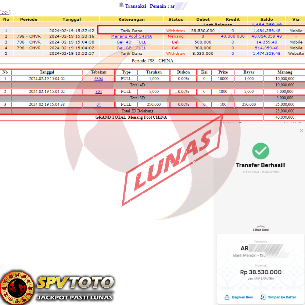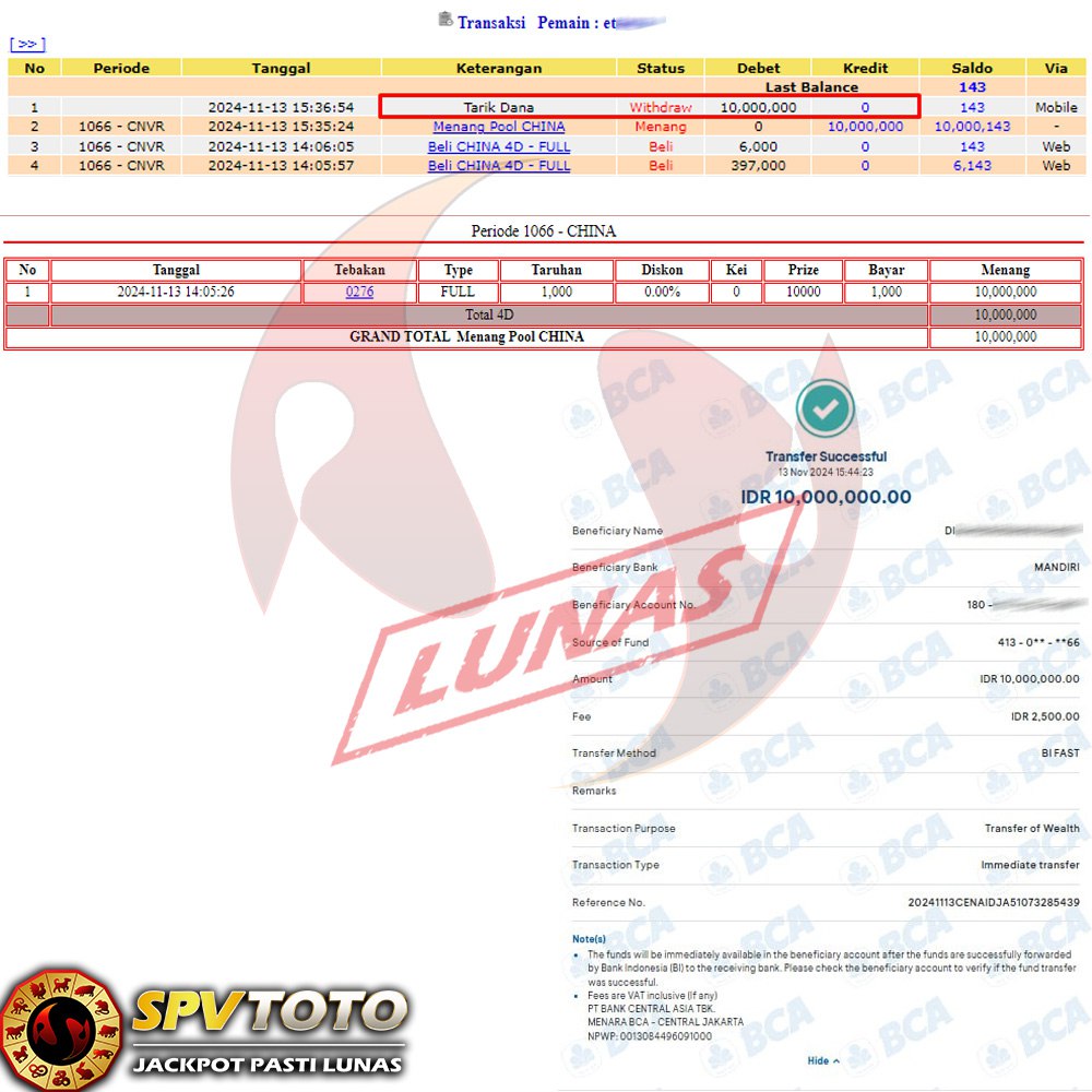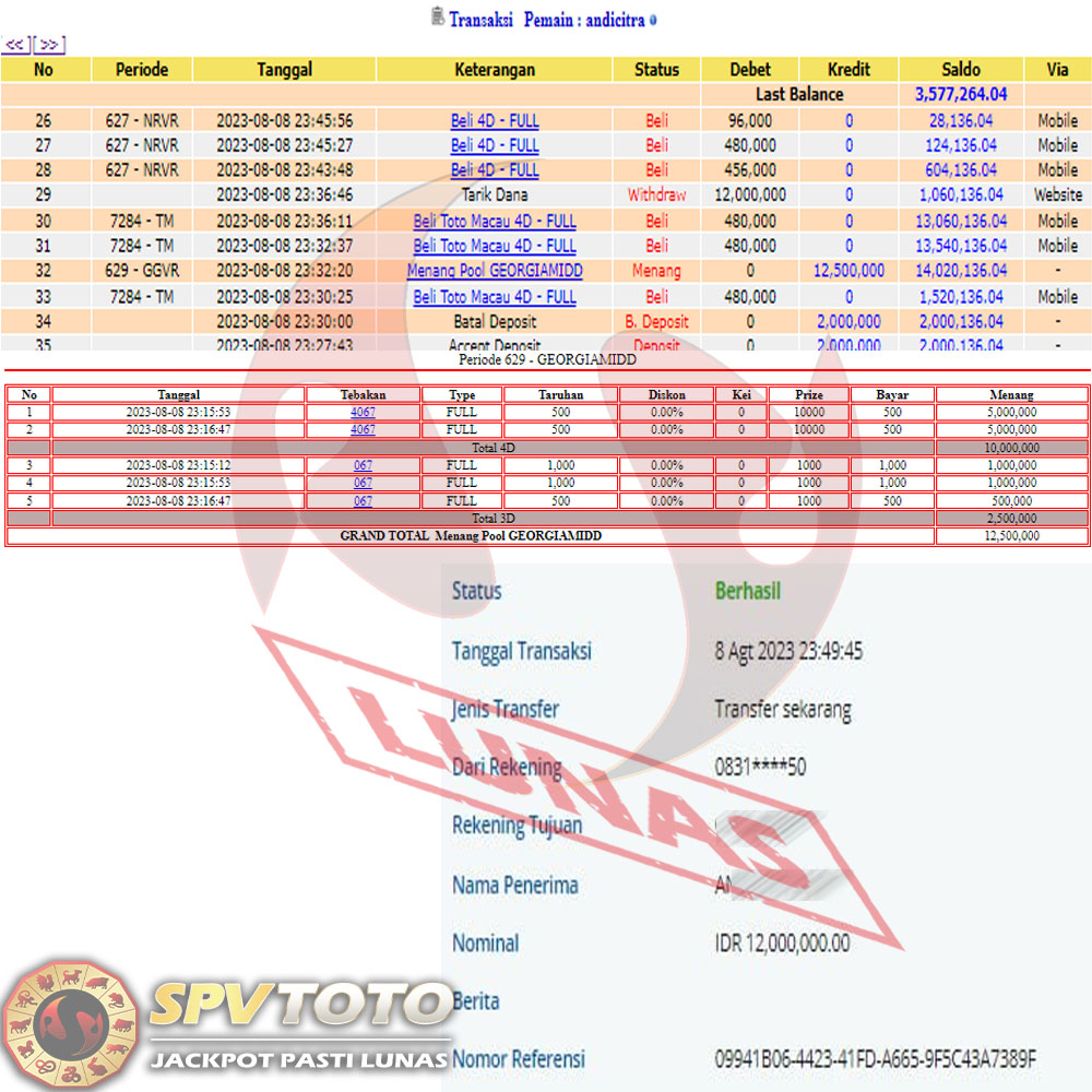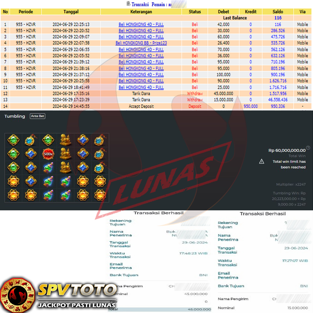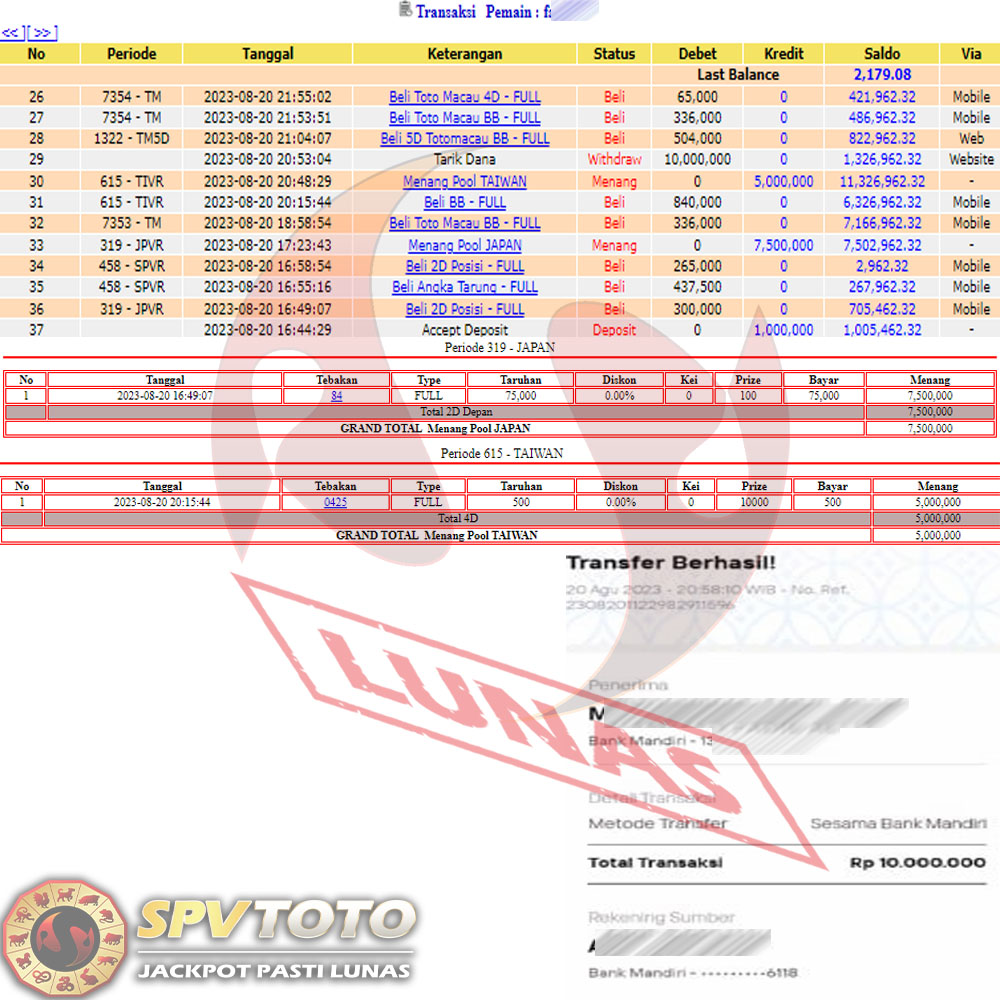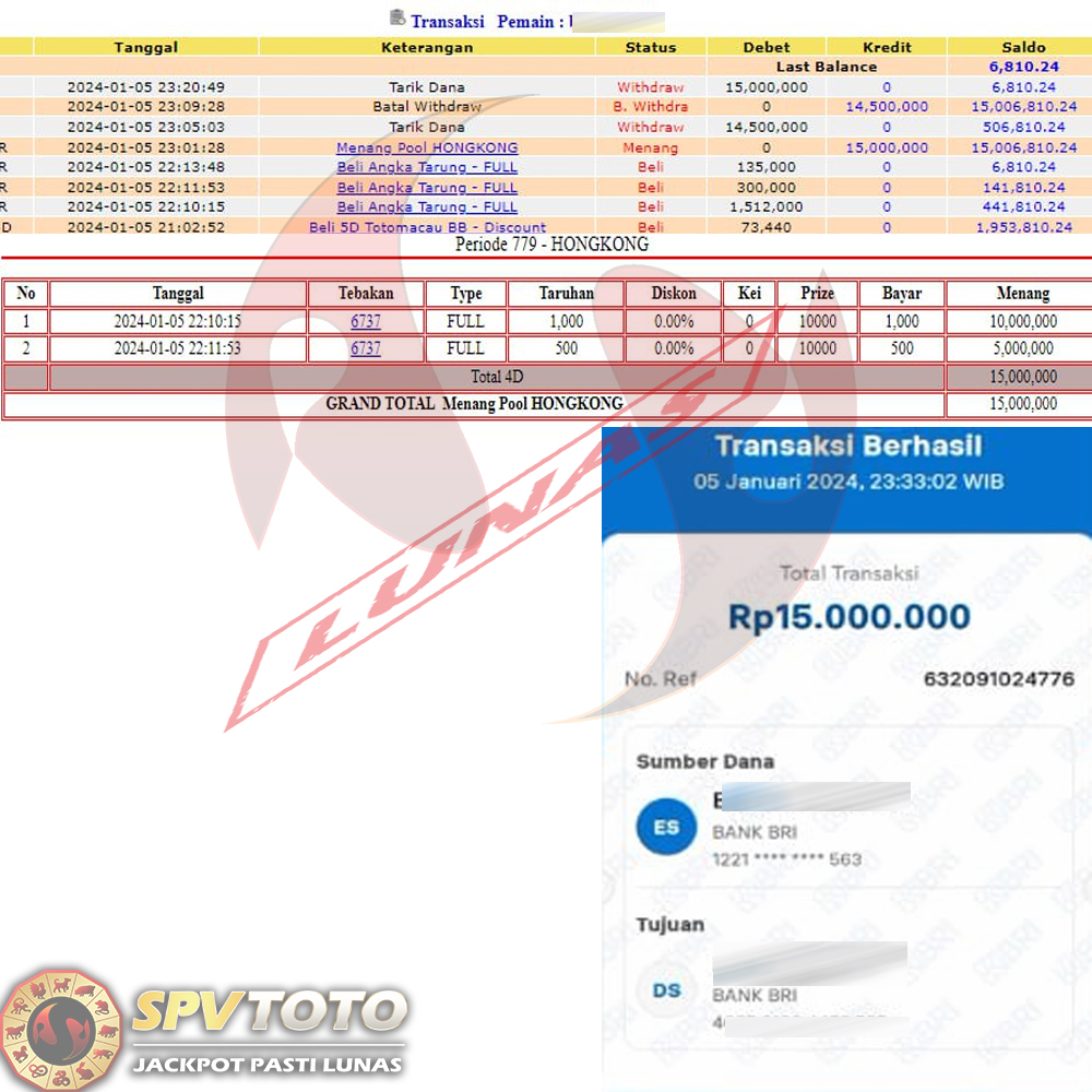SELAMAT KEPADA MEMBER YANG MENDAPATKAN JACKPOT DI SPVTOTO