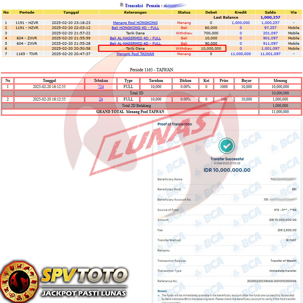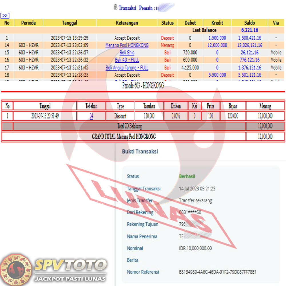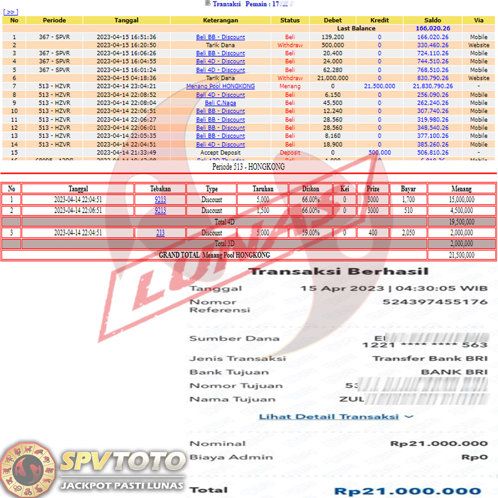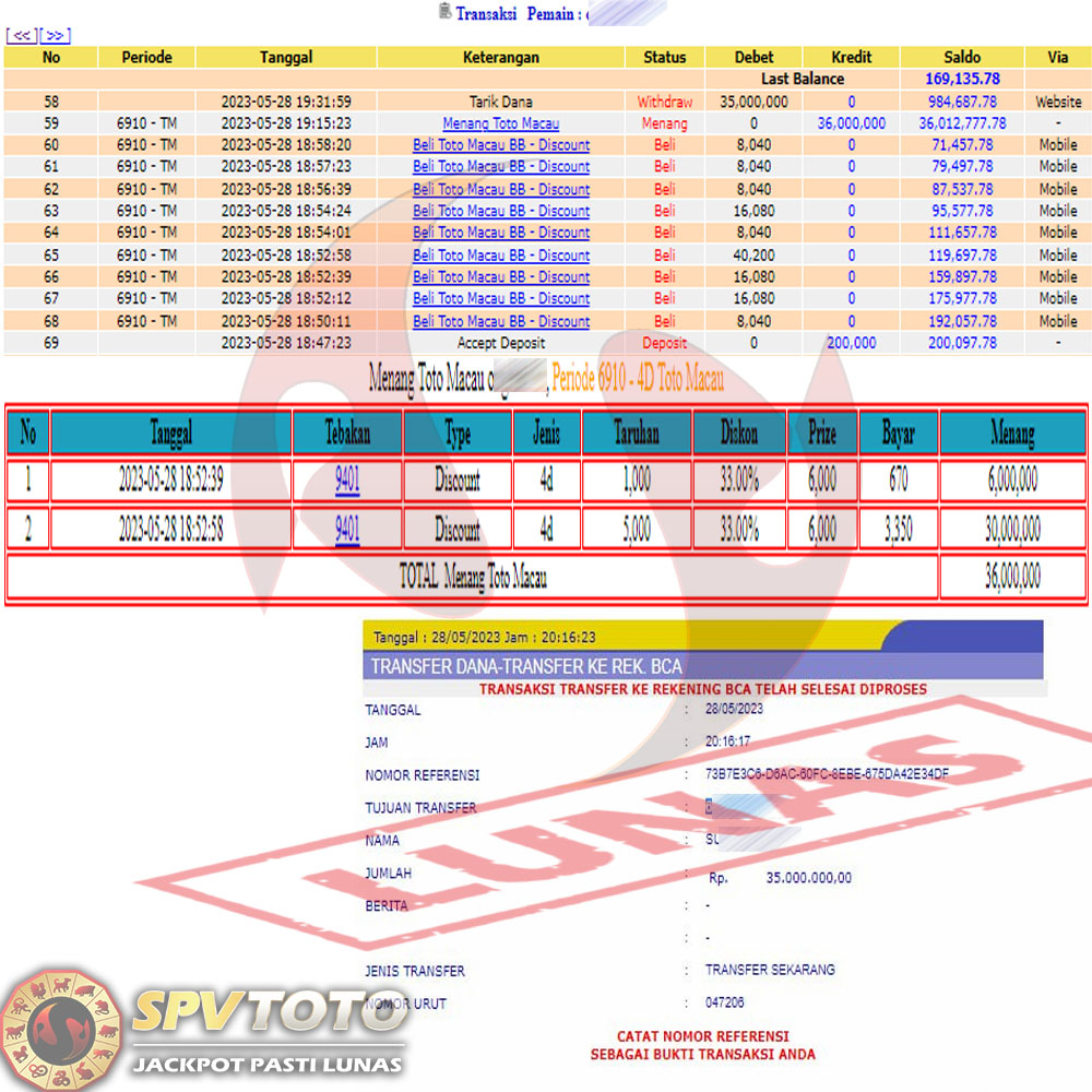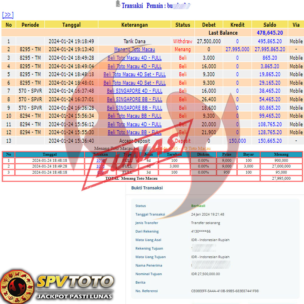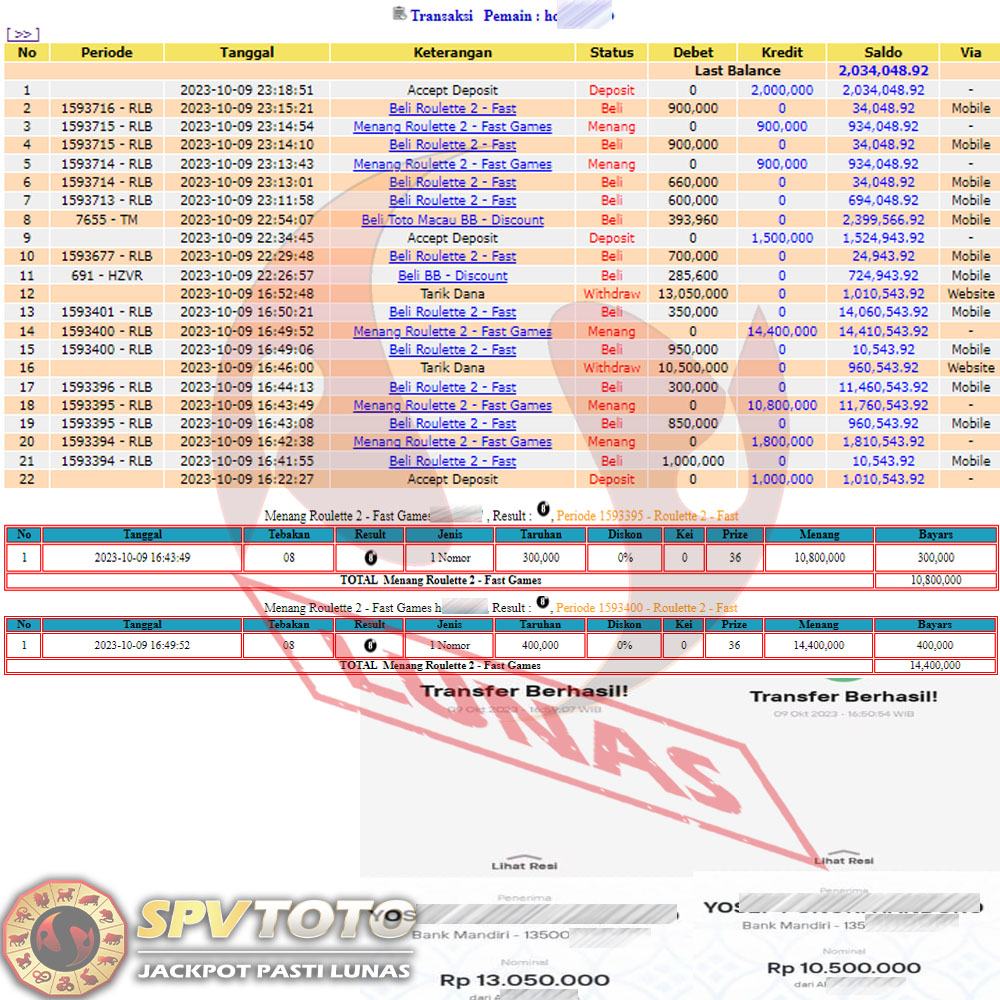 SELAMAT KEPADA MEMBER YANG MENDAPATKAN JACKPOT DI SPVTOTO