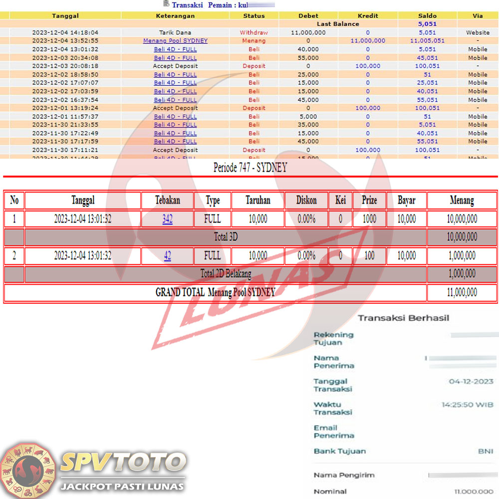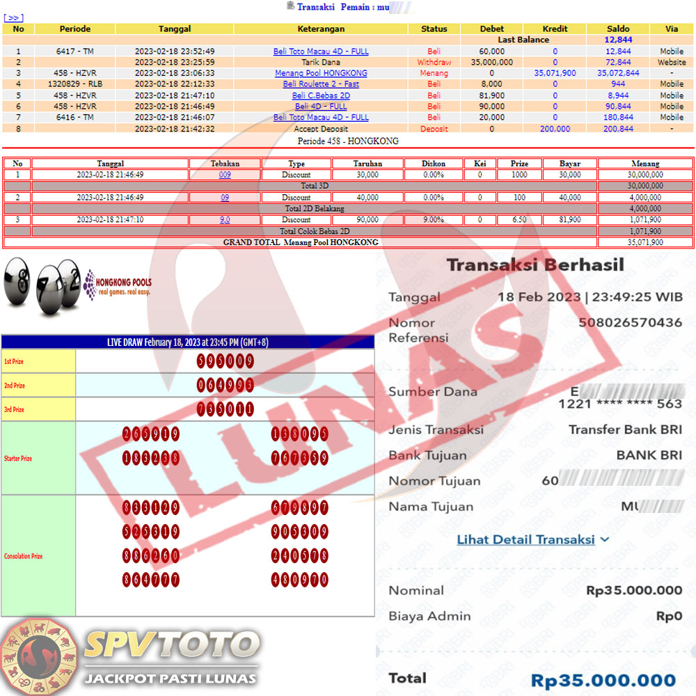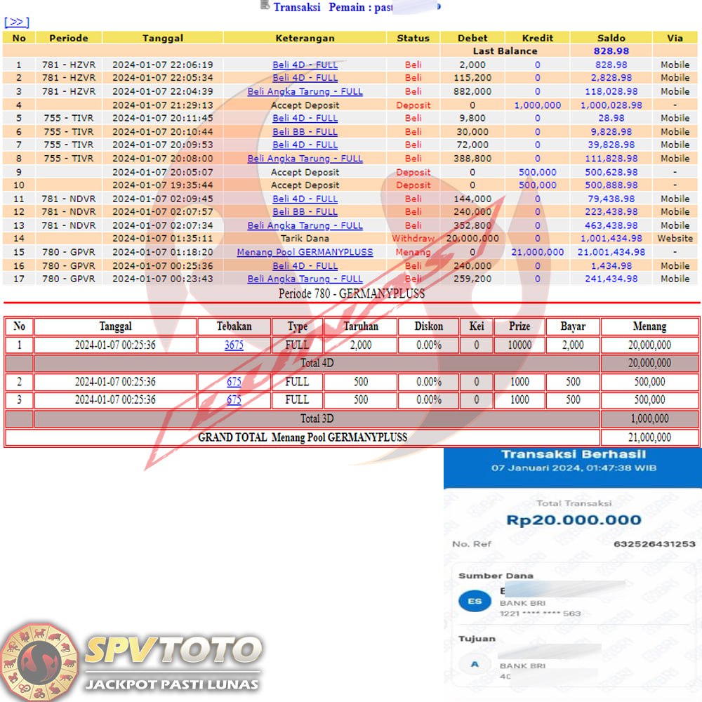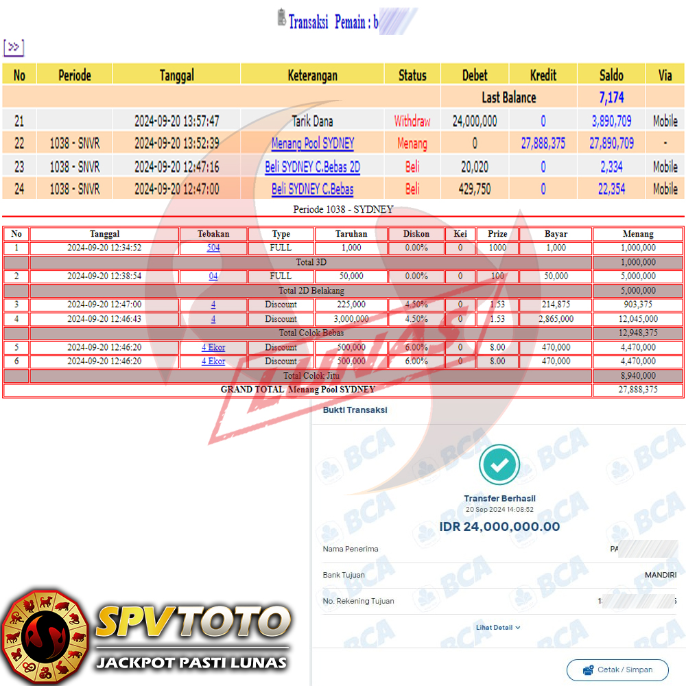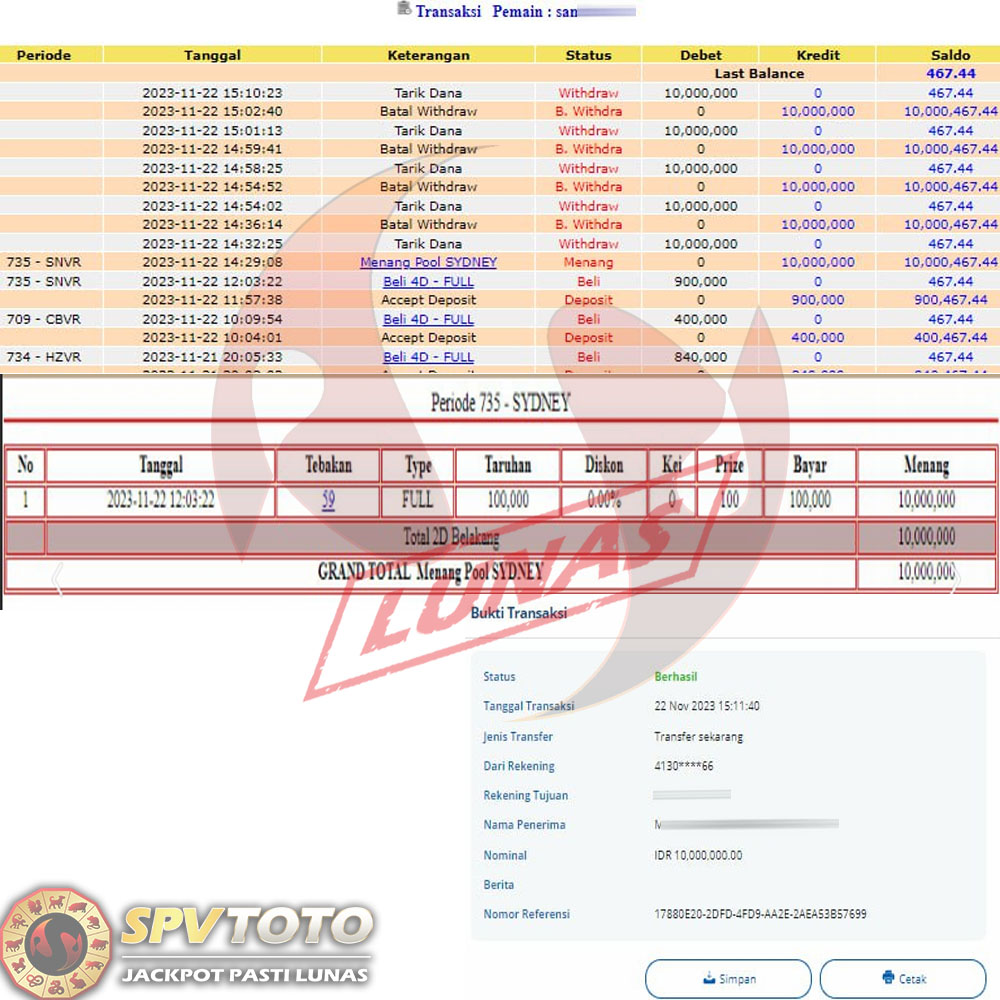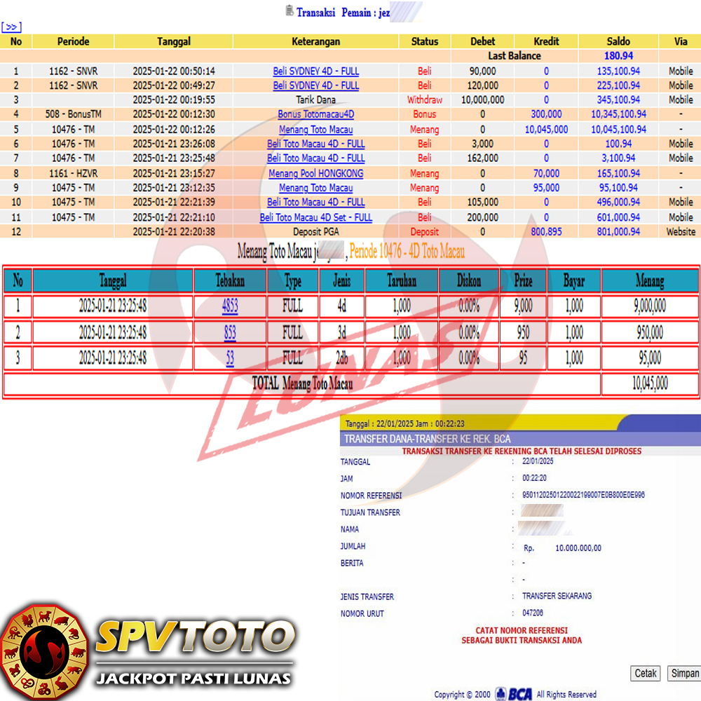 SELAMAT KEPADA MEMBER YANG MENDAPATKAN JACKPOT DI SPVTOTO