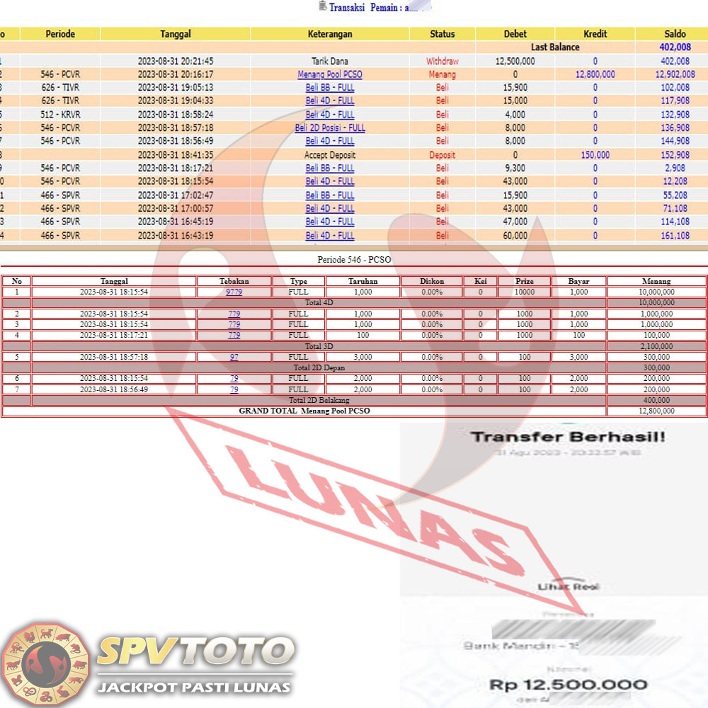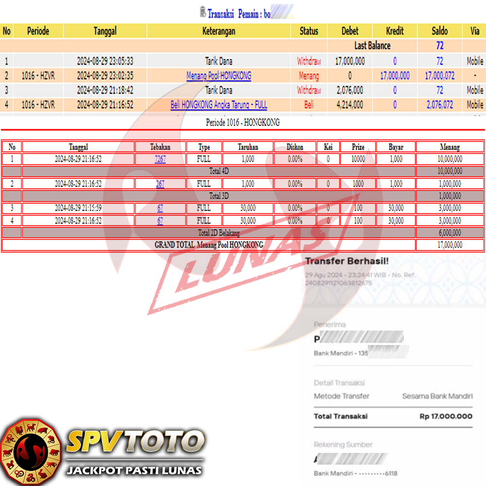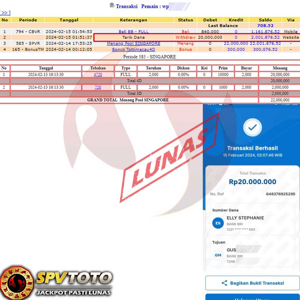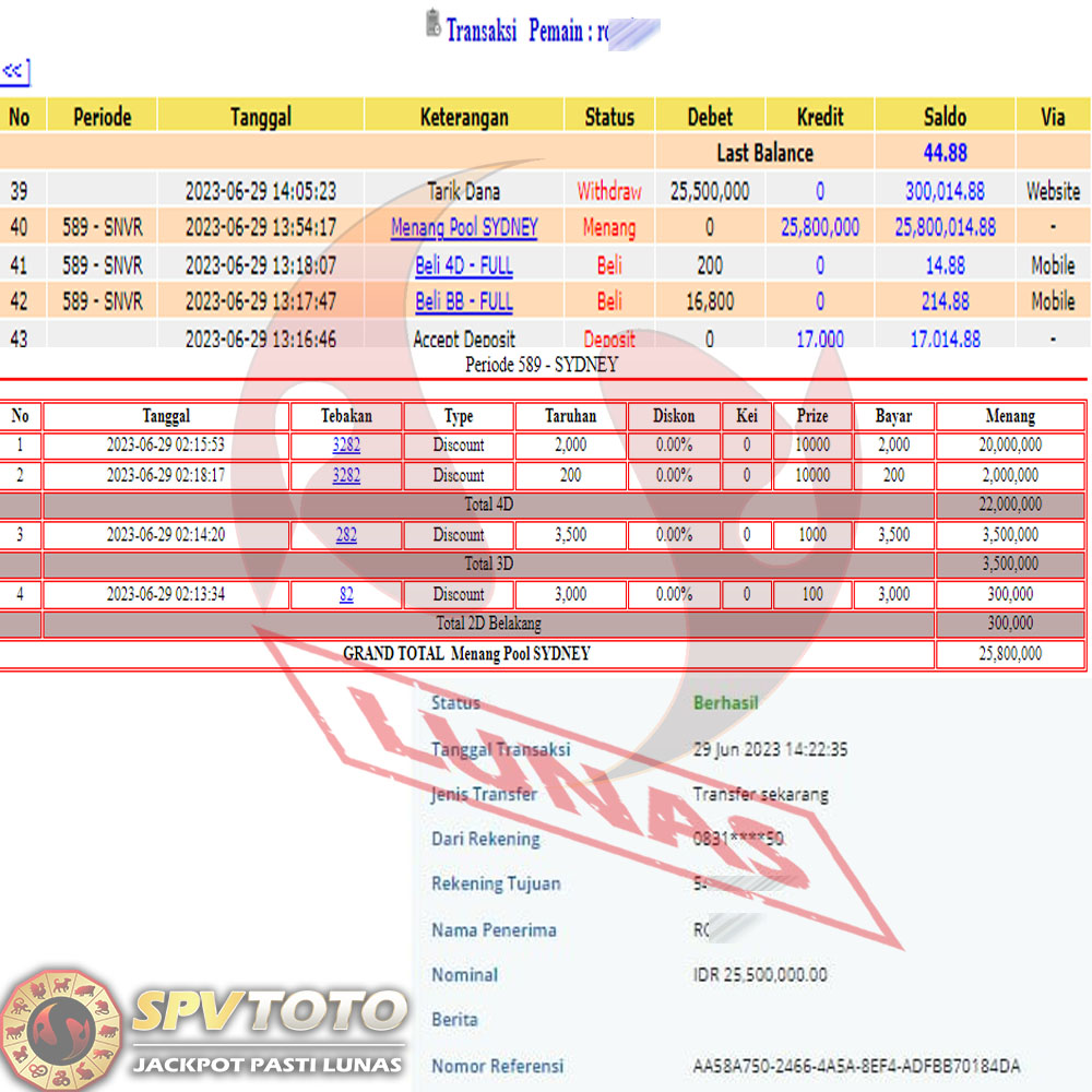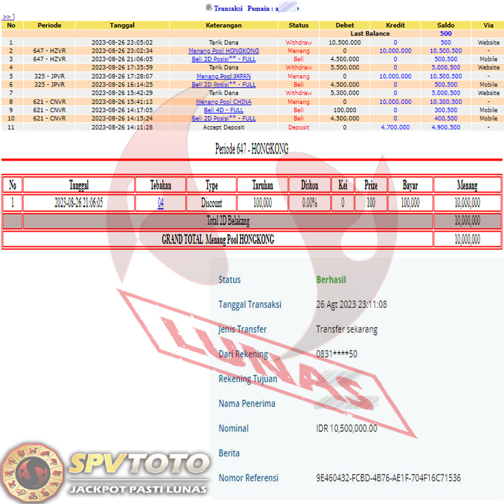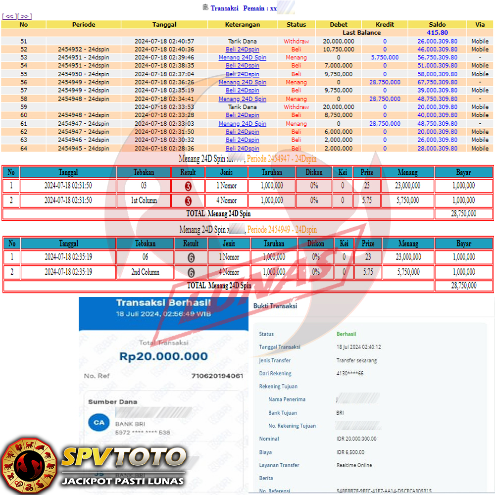 SELAMAT KEPADA MEMBER YANG MENDAPATKAN JACKPOT DI SPVTOTO