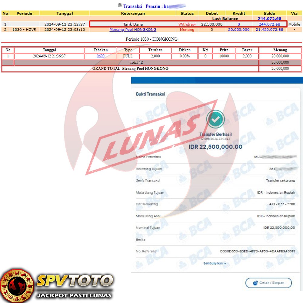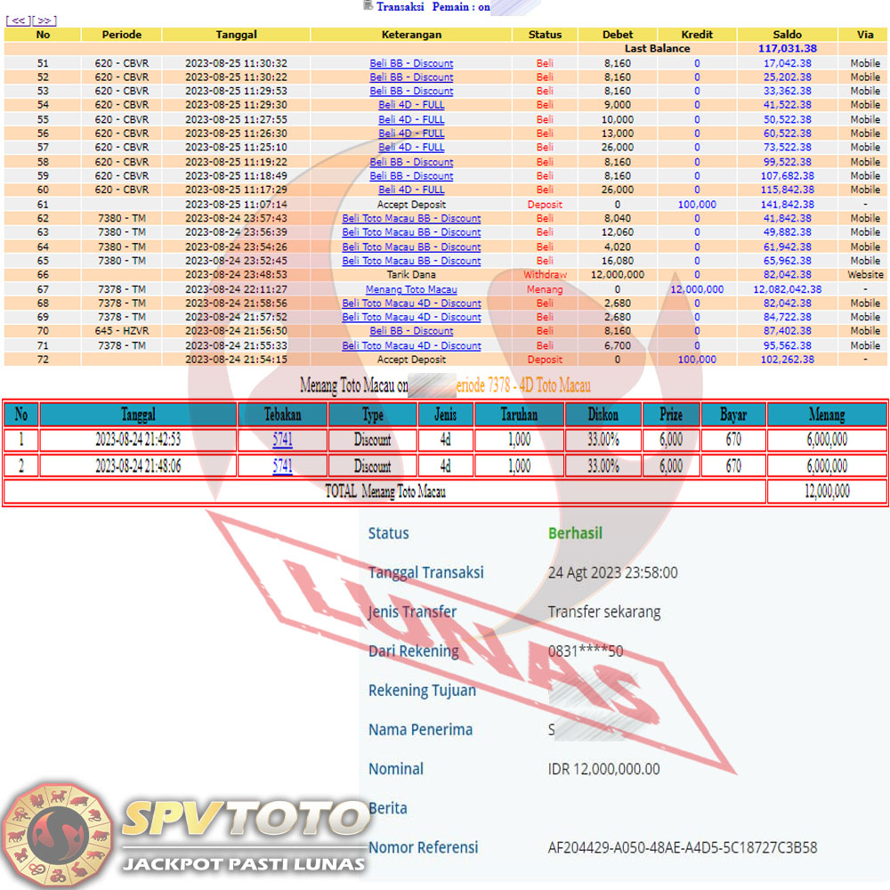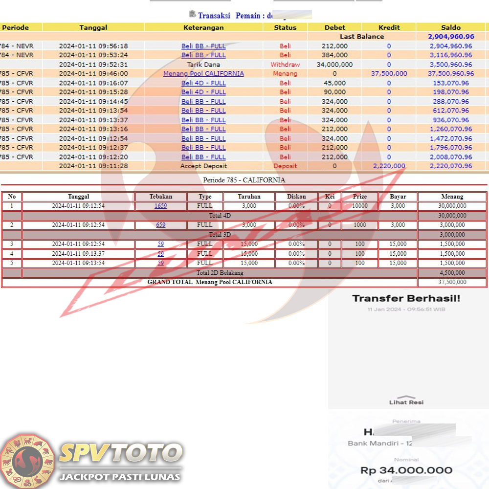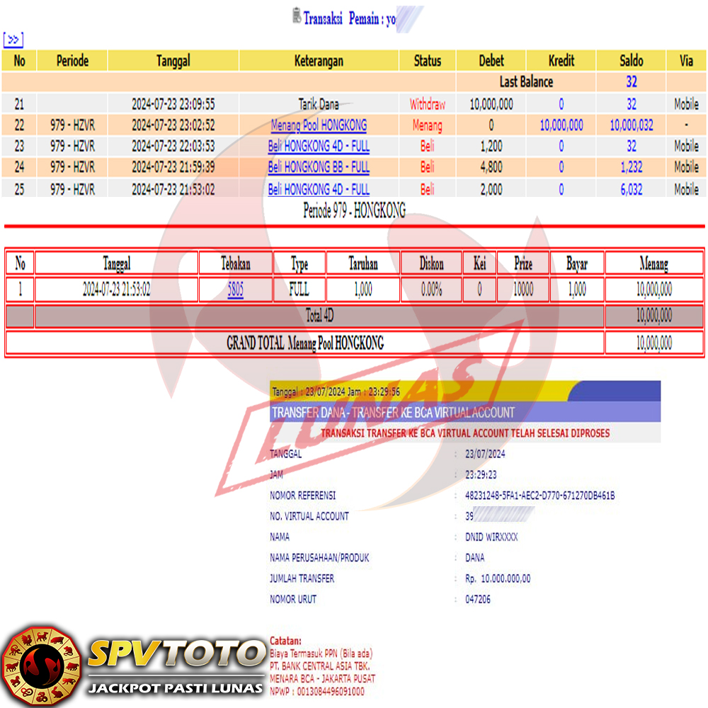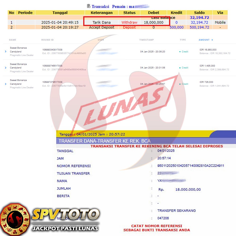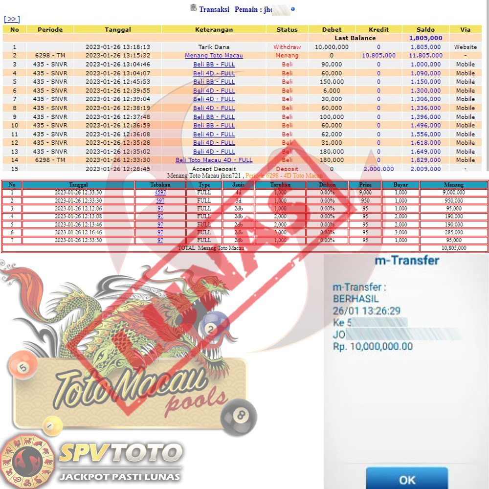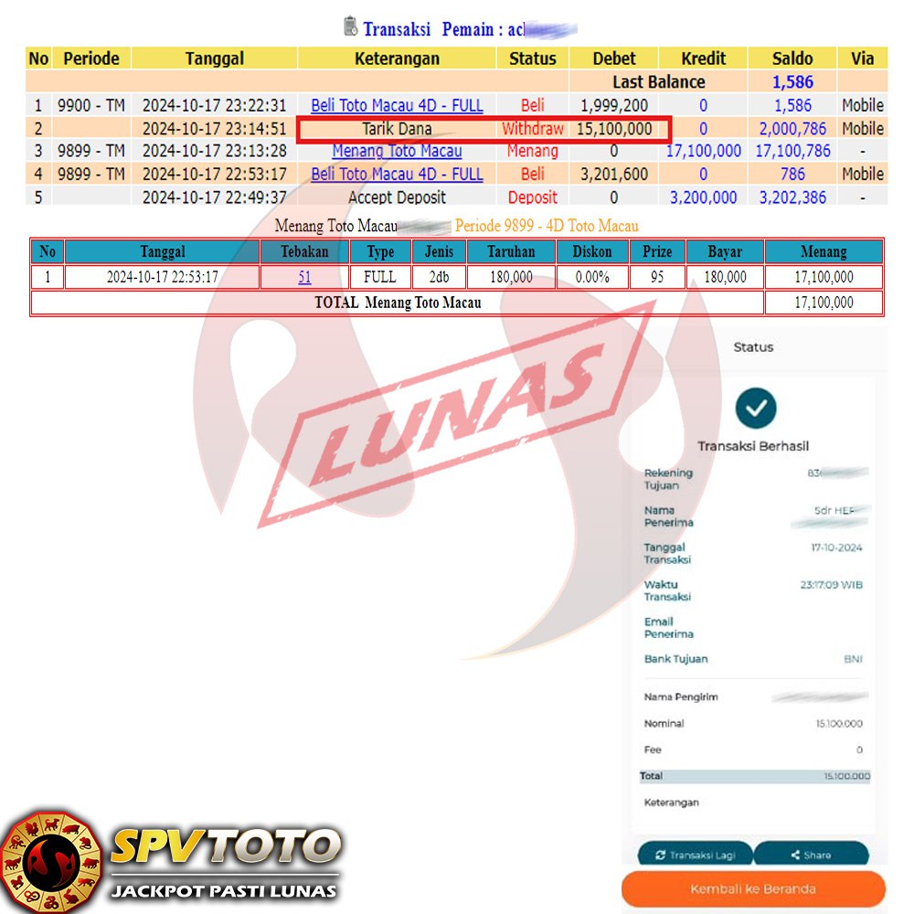 SELAMAT KEPADA MEMBER YANG MENDAPATKAN JACKPOT DI SPVTOTO