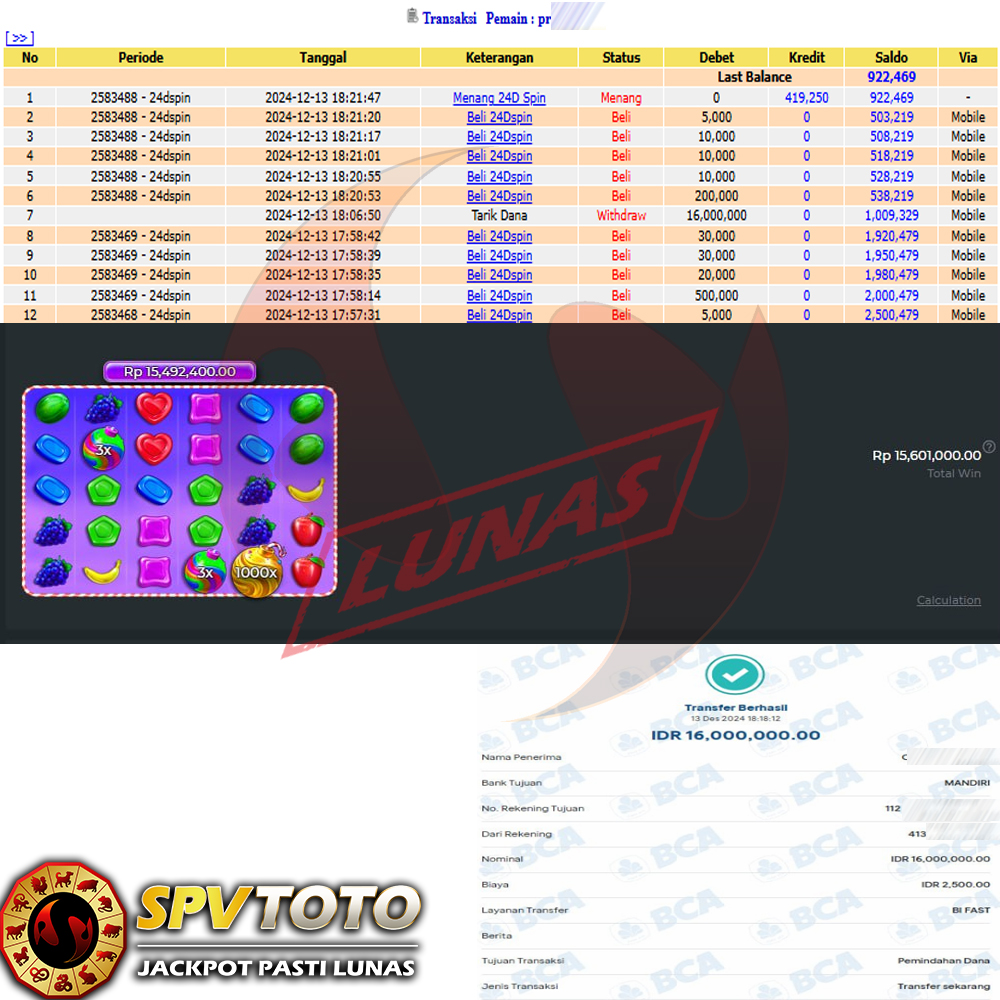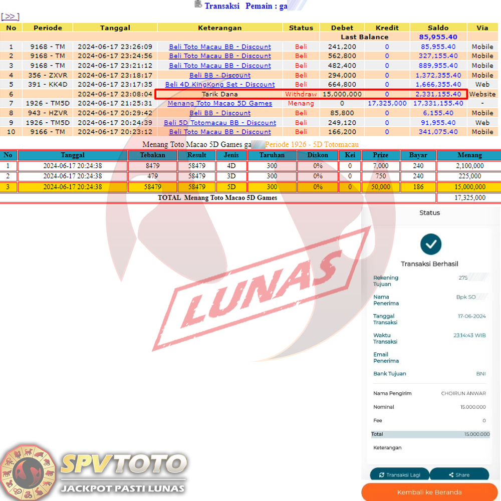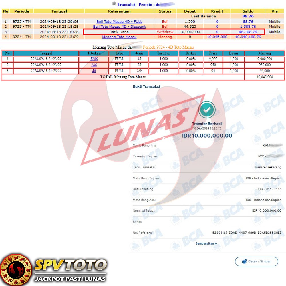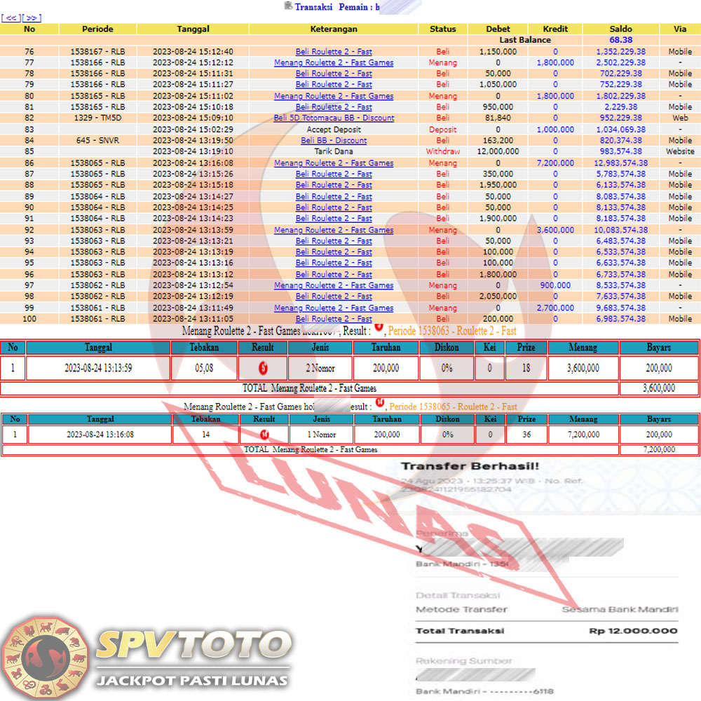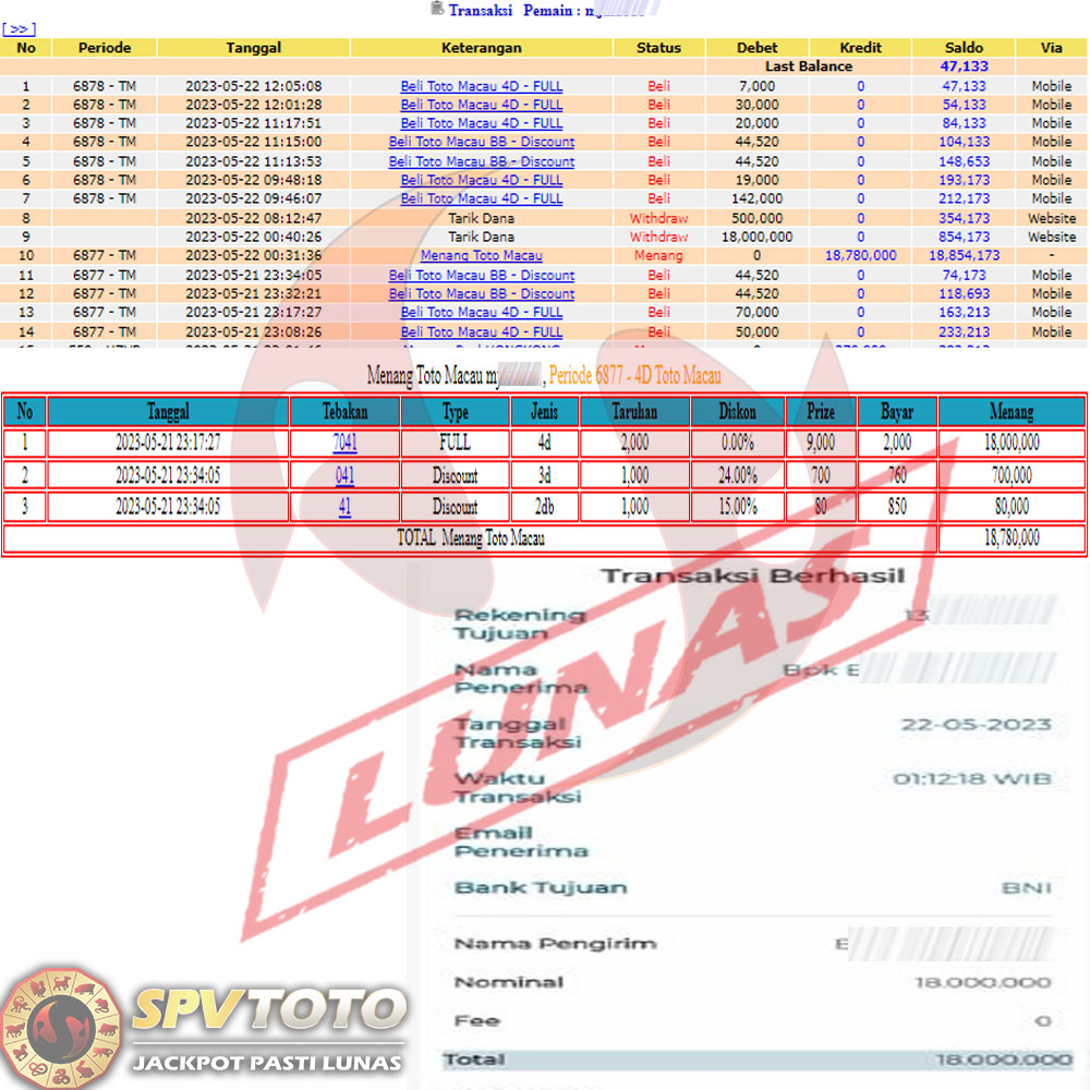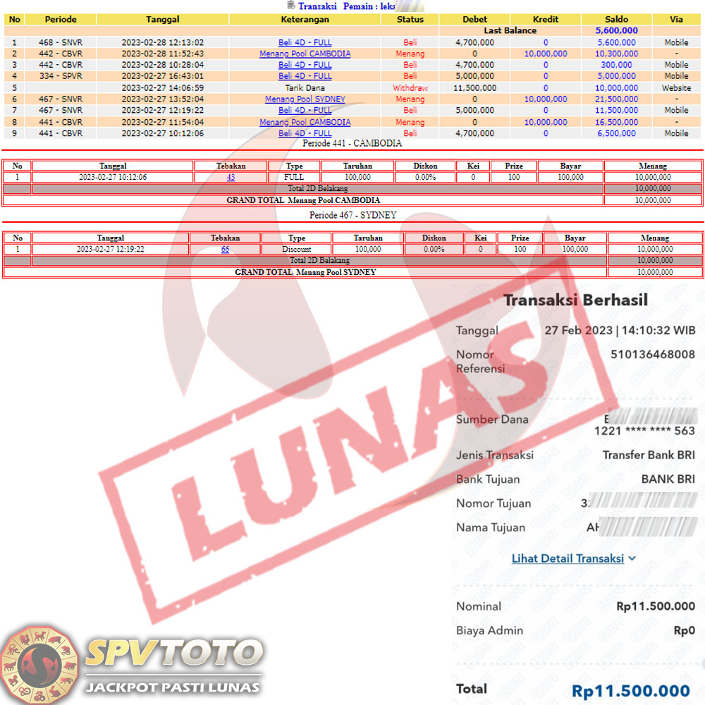 SELAMAT KEPADA MEMBER YANG MENDAPATKAN JACKPOT DI SPVTOTO