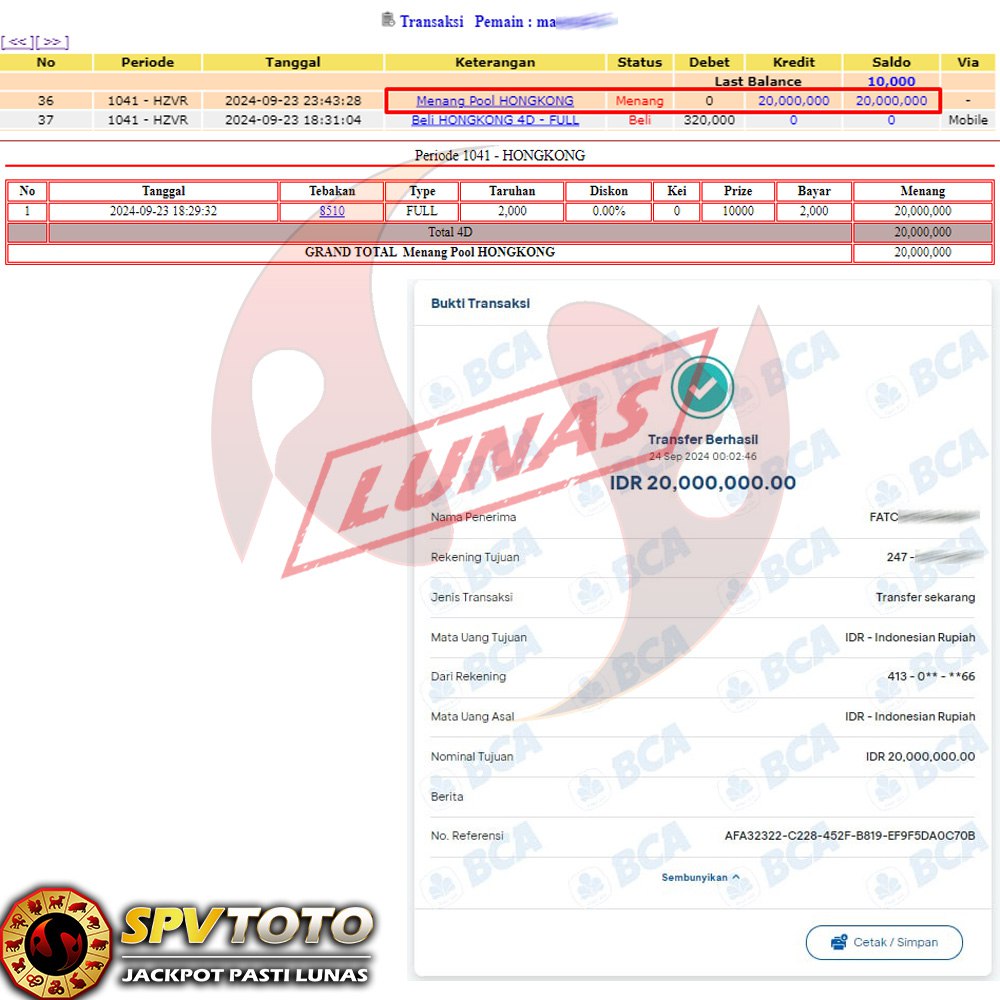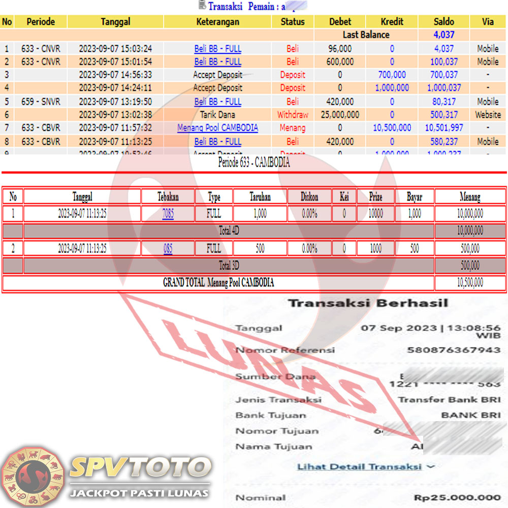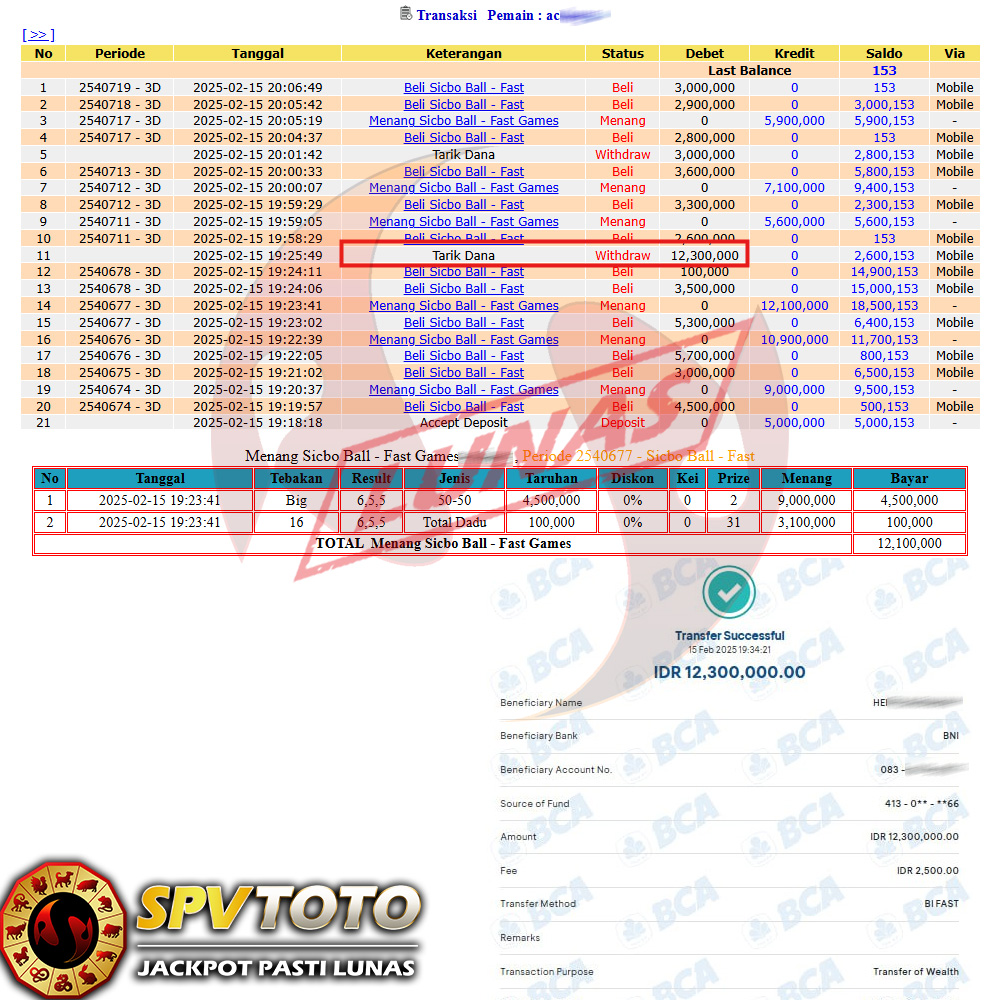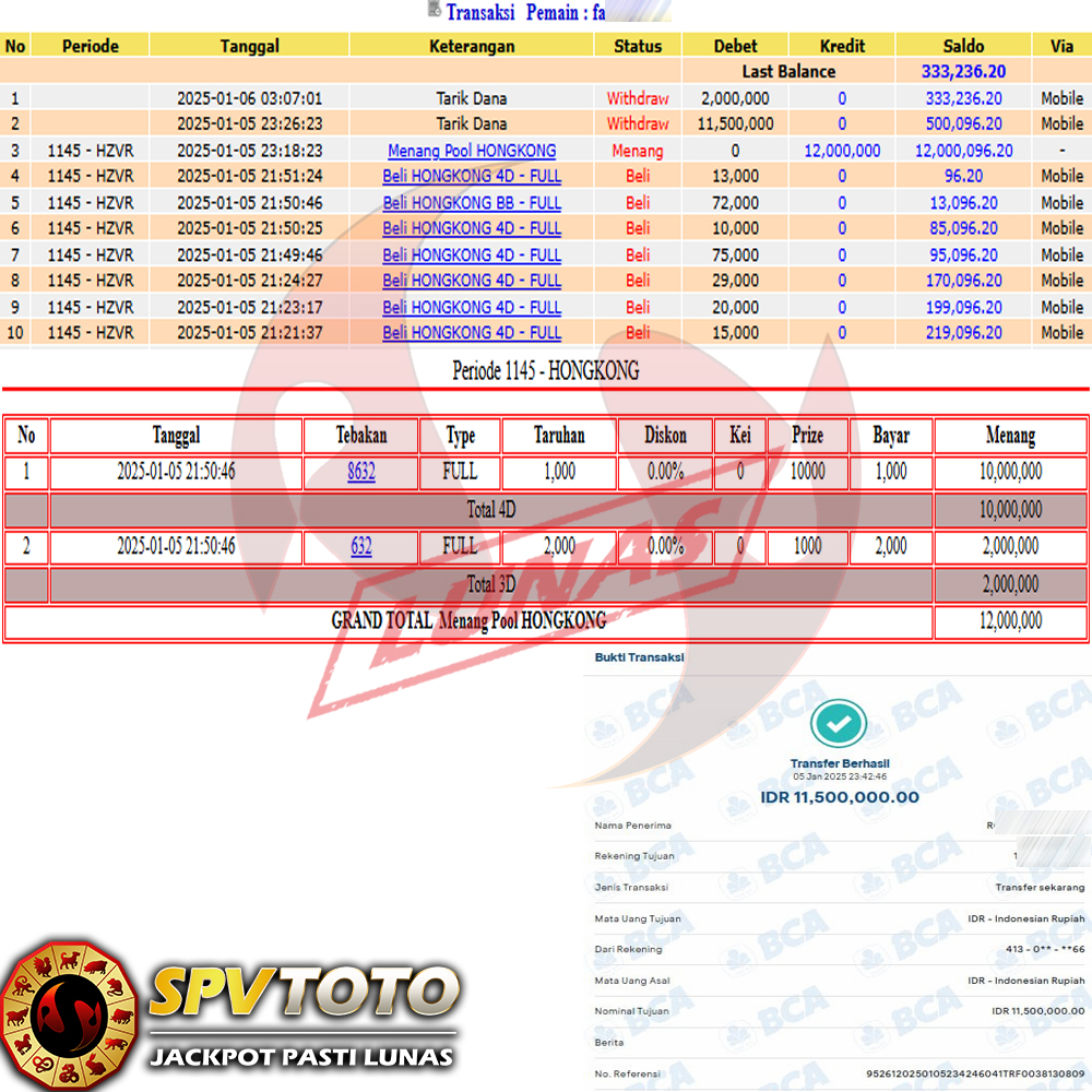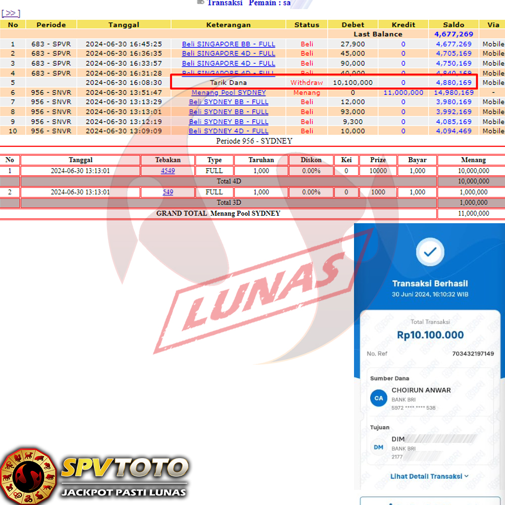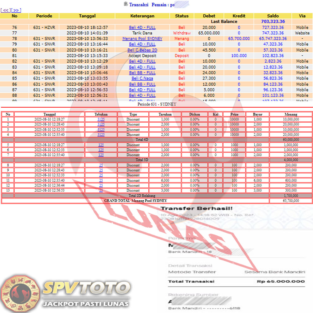 SELAMAT KEPADA MEMBER YANG MENDAPATKAN JACKPOT DI SPVTOTO