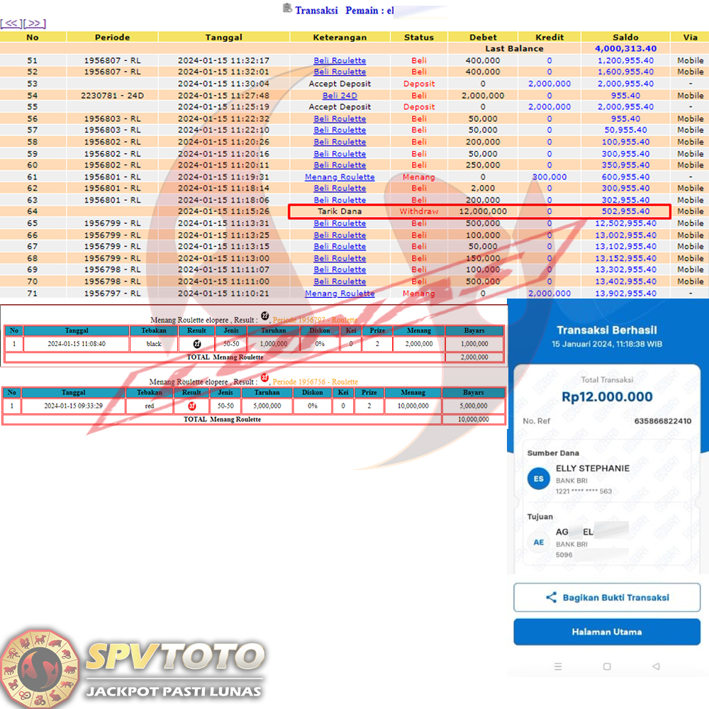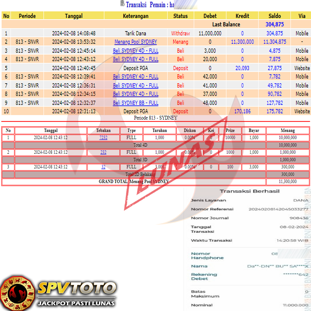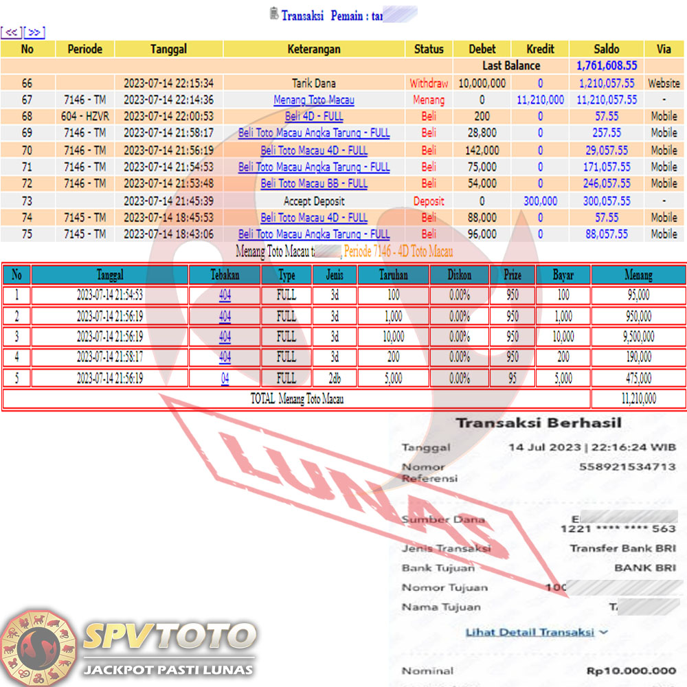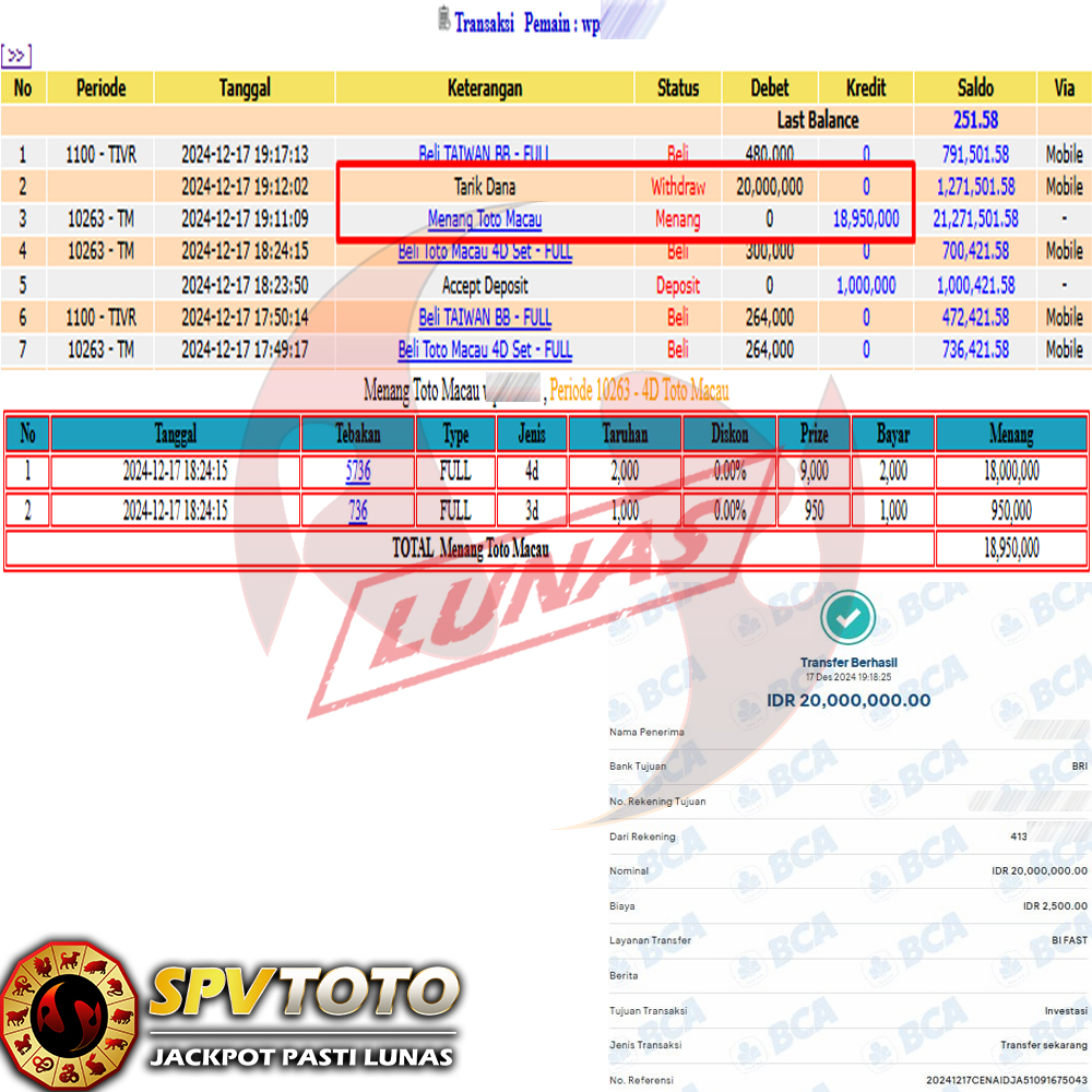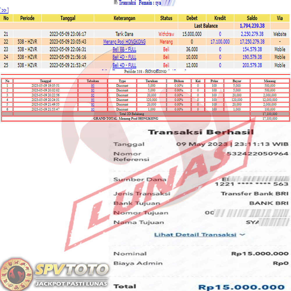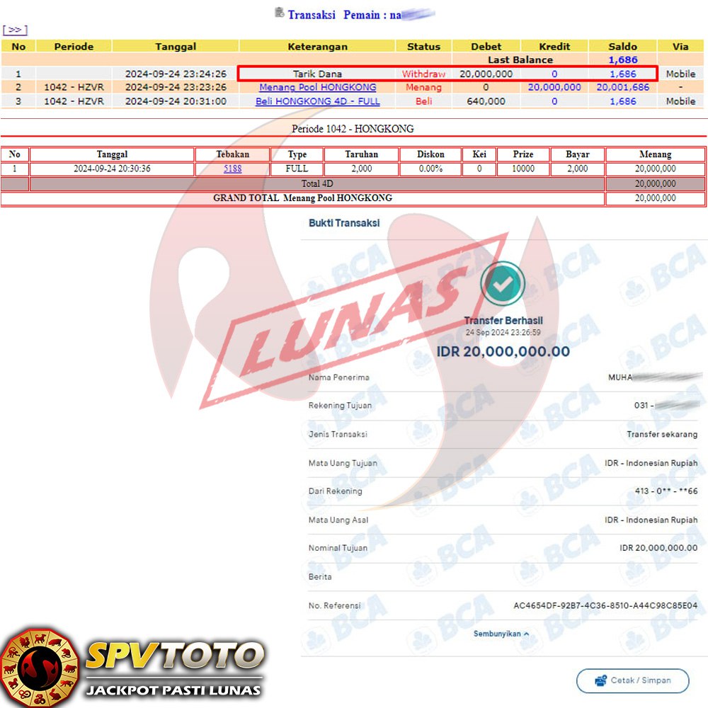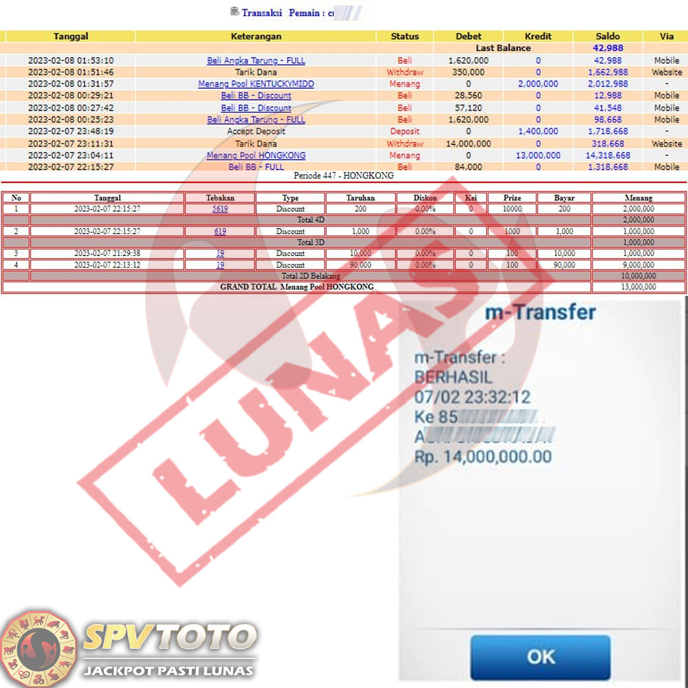 SELAMAT KEPADA MEMBER YANG MENDAPATKAN JACKPOT DI SPVTOTO