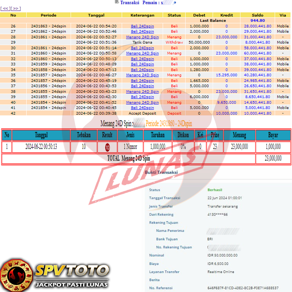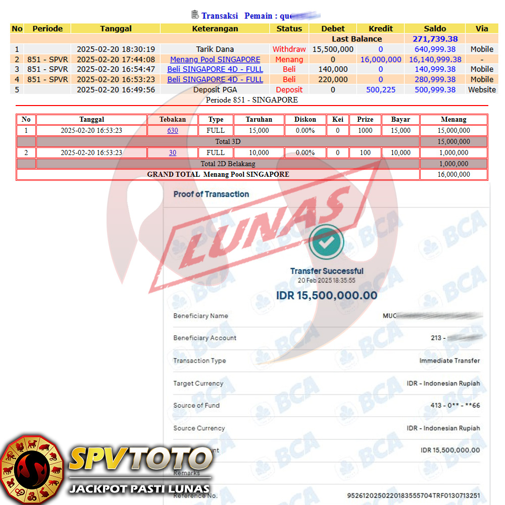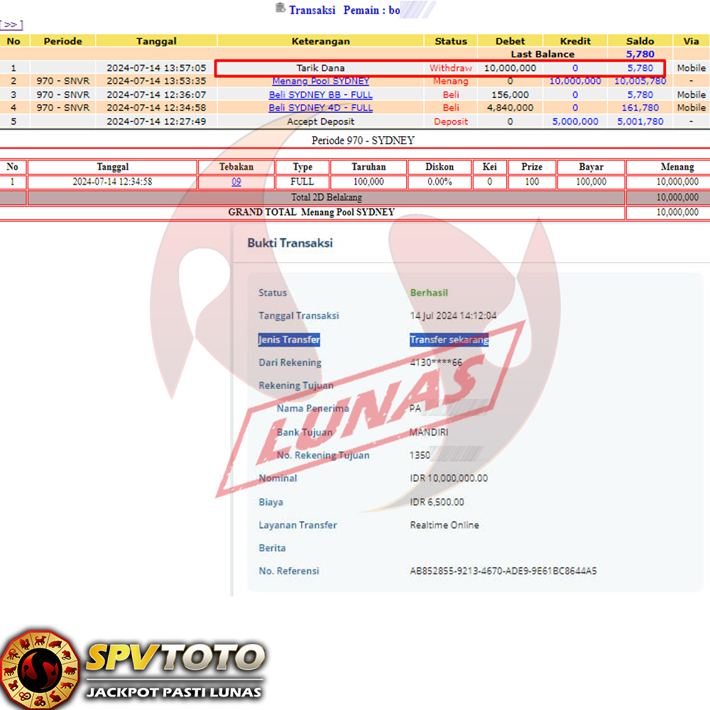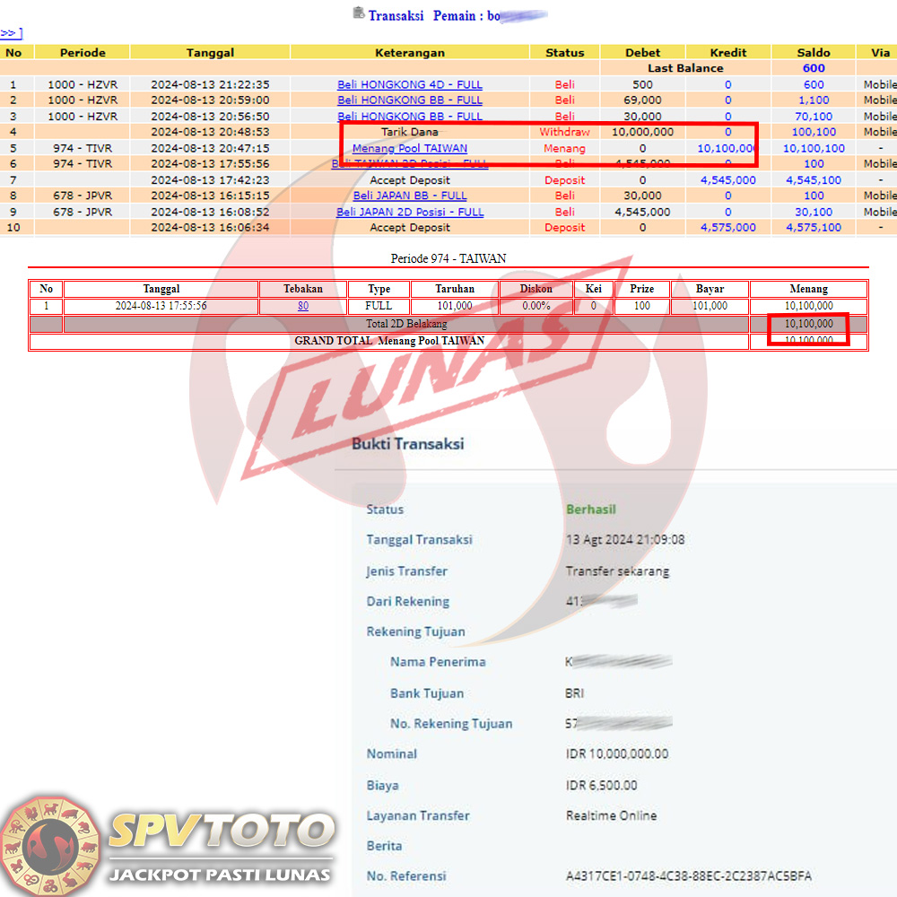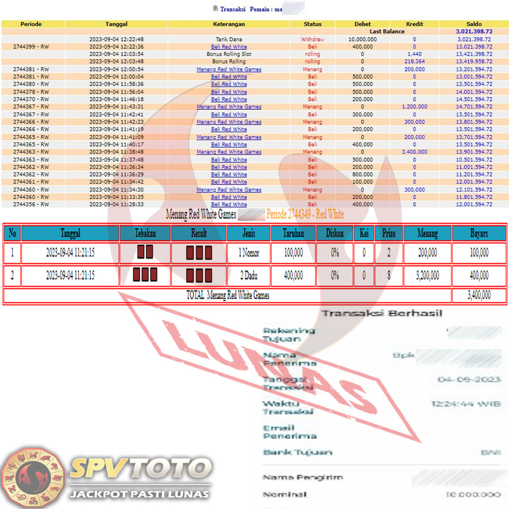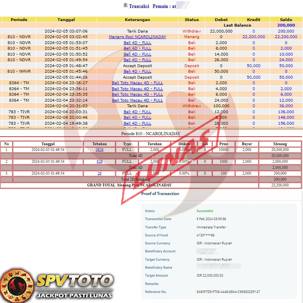 SELAMAT KEPADA MEMBER YANG MENDAPATKAN JACKPOT DI SPVTOTO