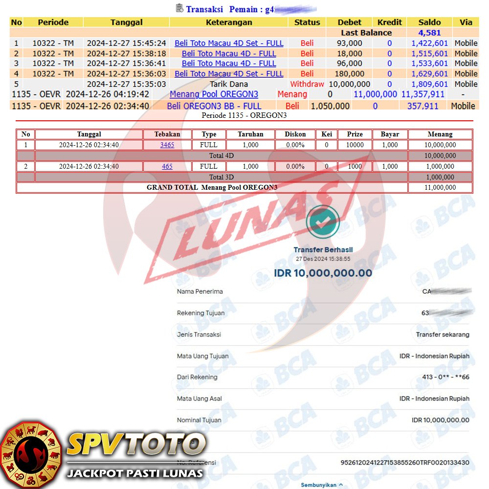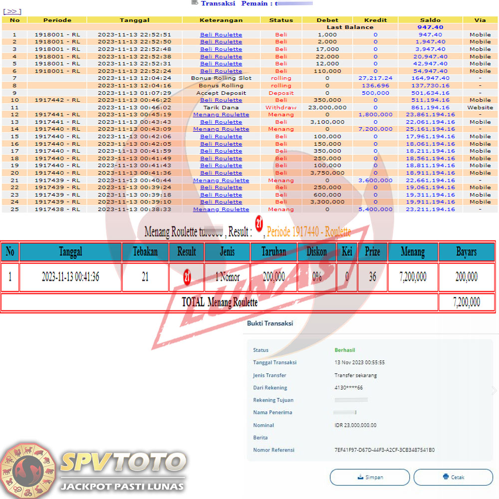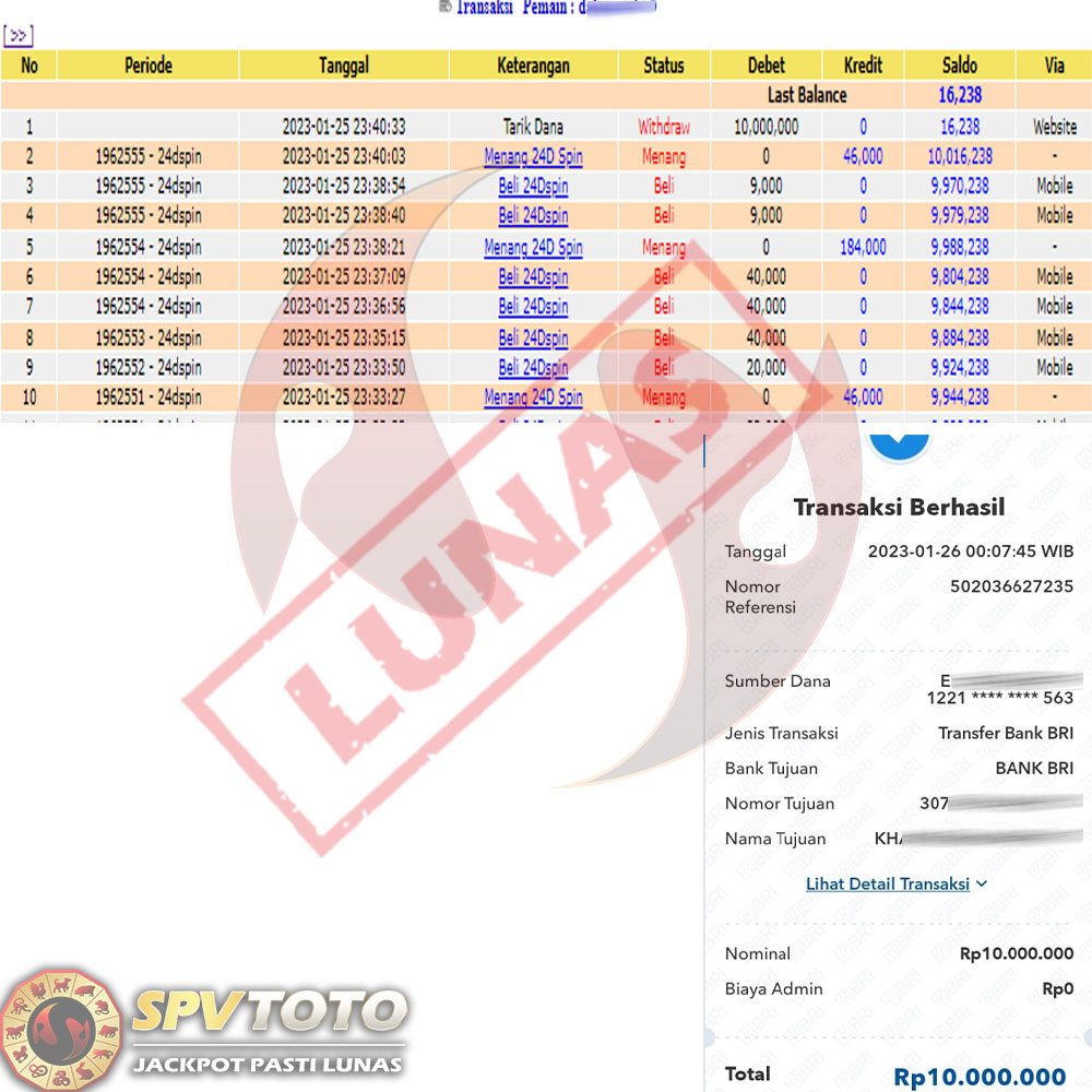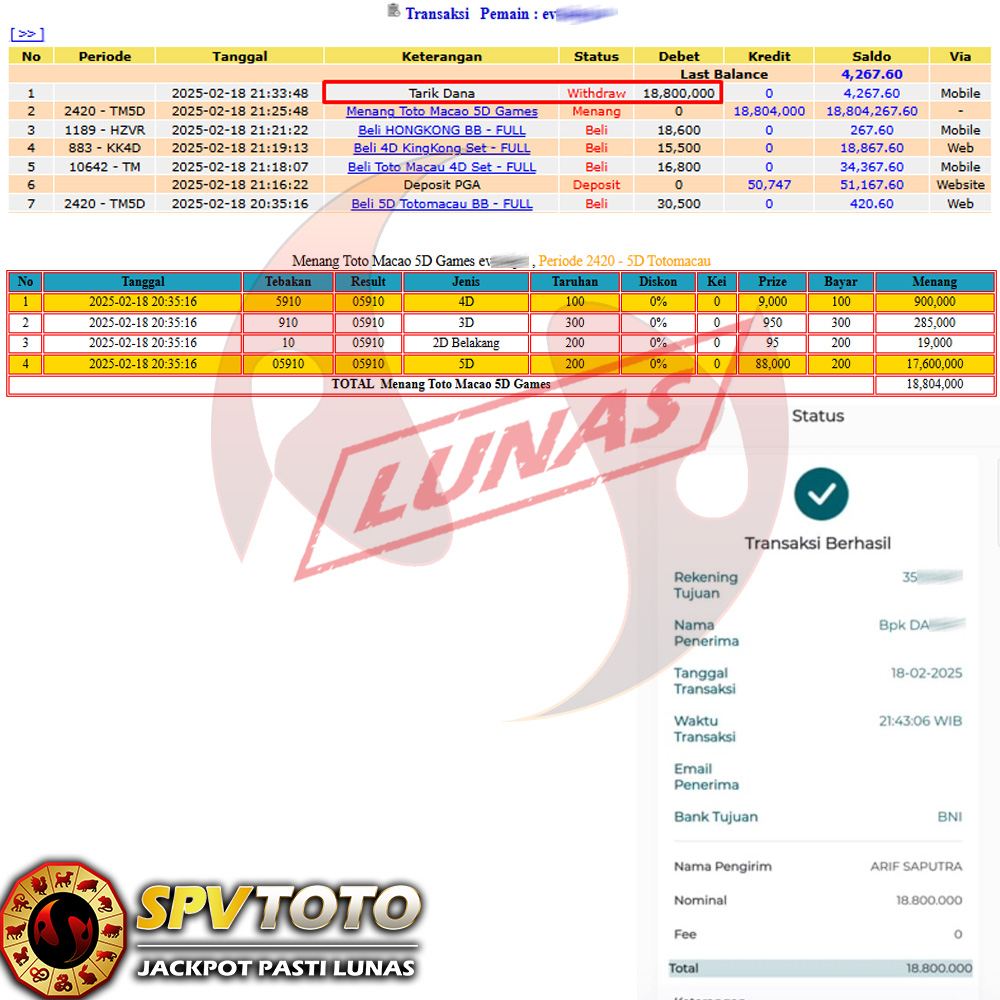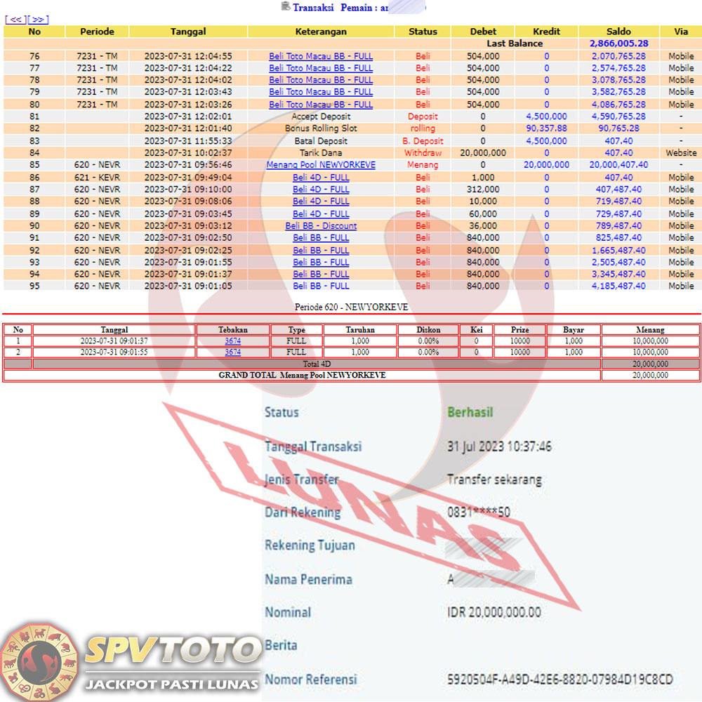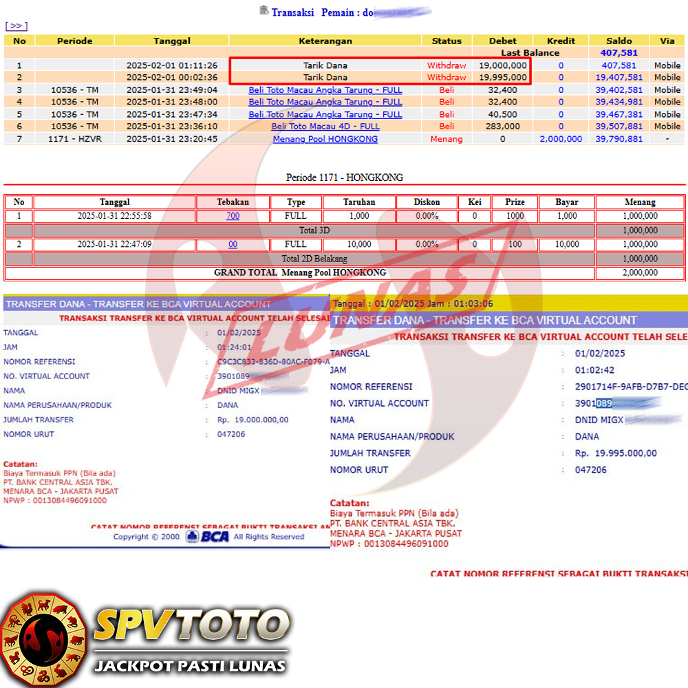 SELAMAT KEPADA MEMBER YANG MENDAPATKAN JACKPOT DI SPVTOTO