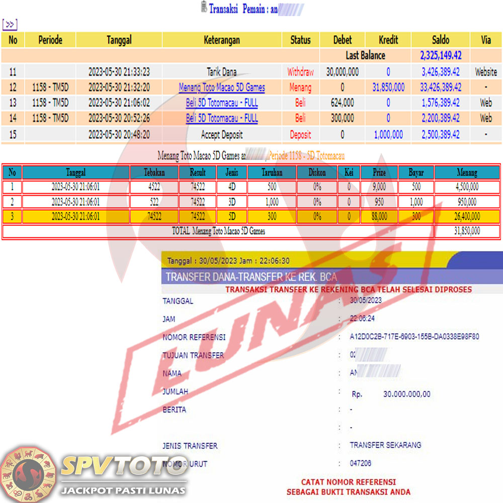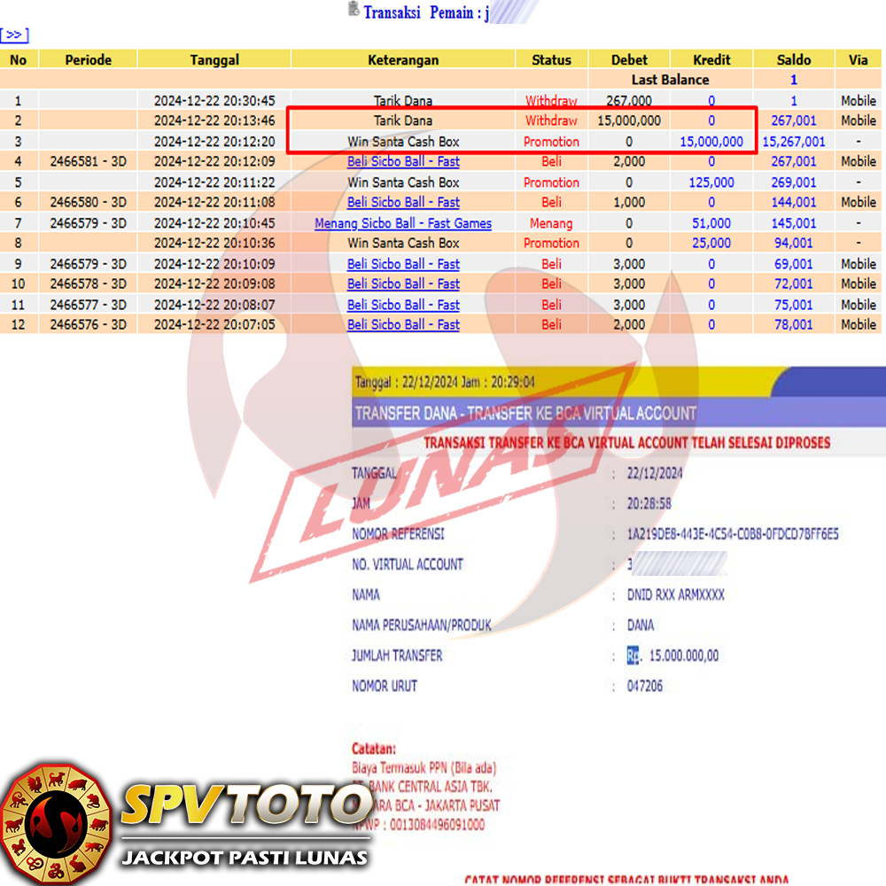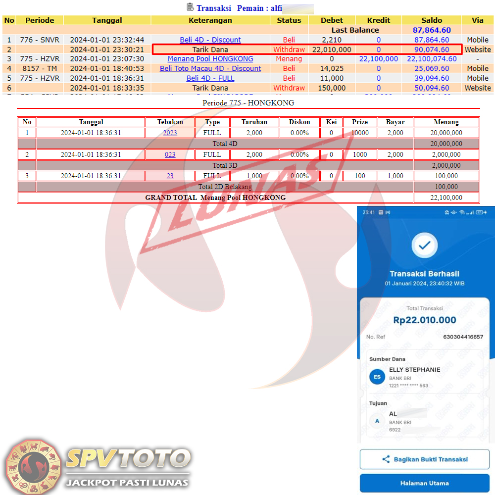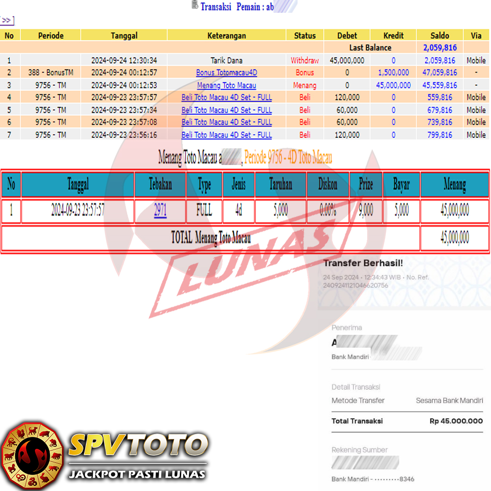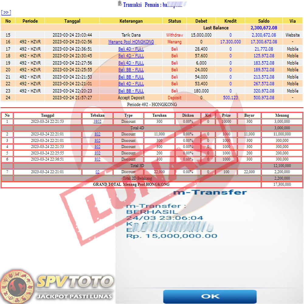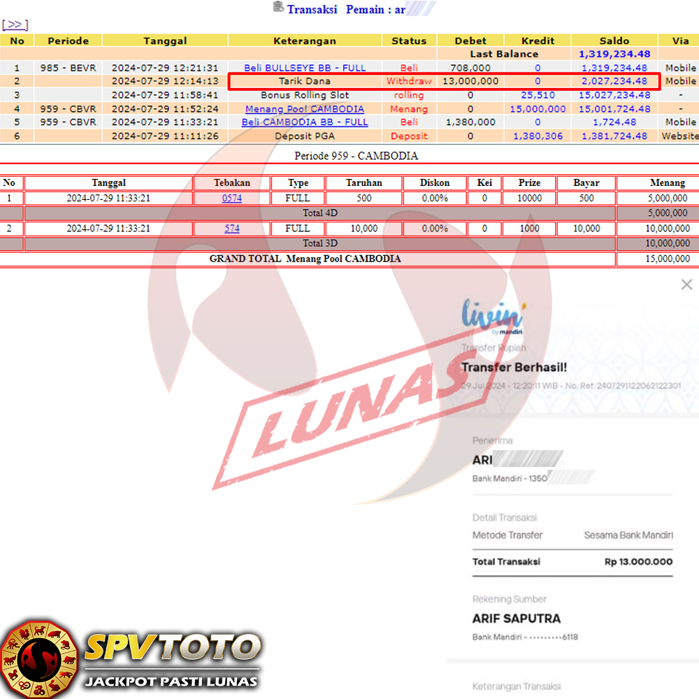 SELAMAT KEPADA MEMBER YANG MENDAPATKAN JACKPOT DI SPVTOTO