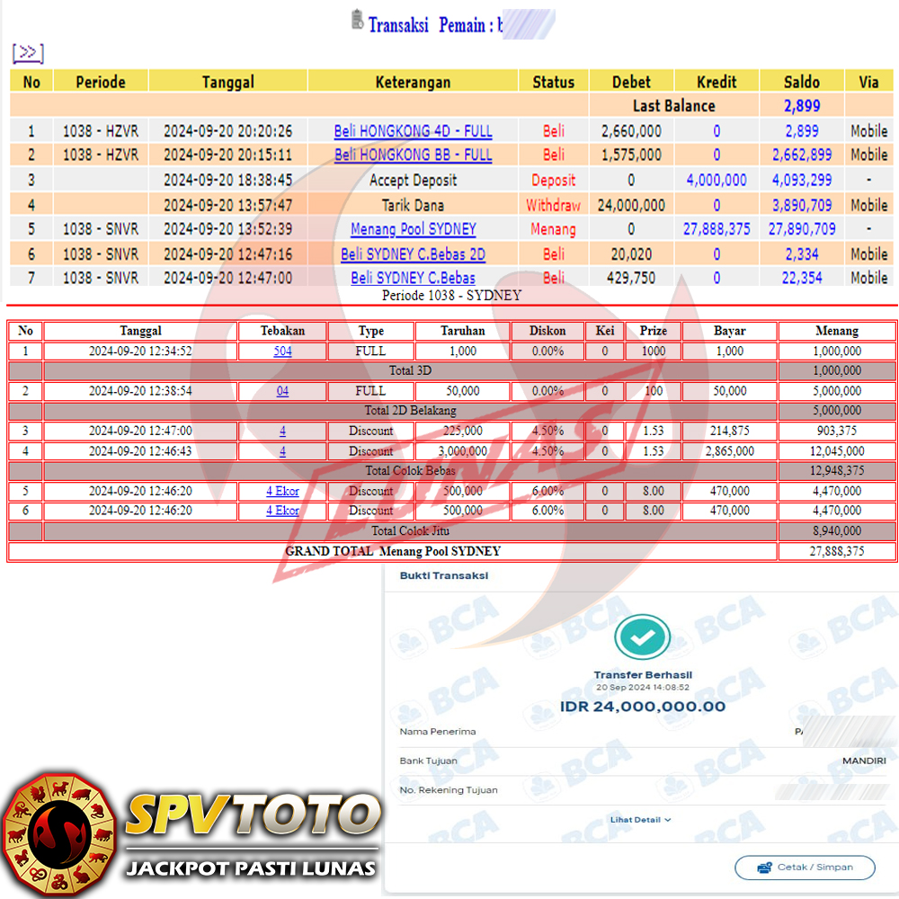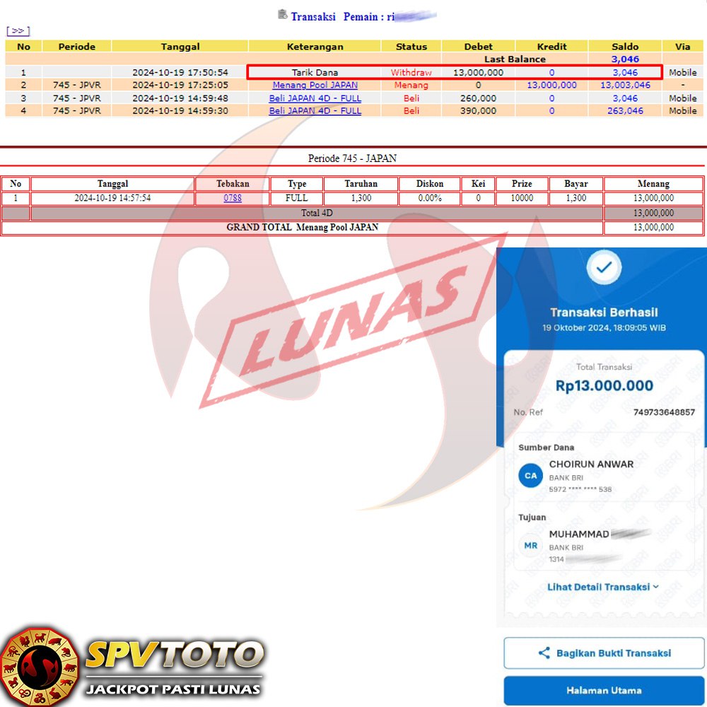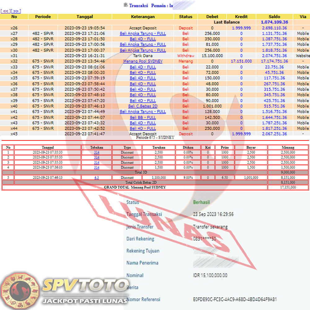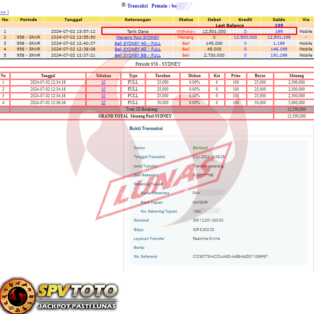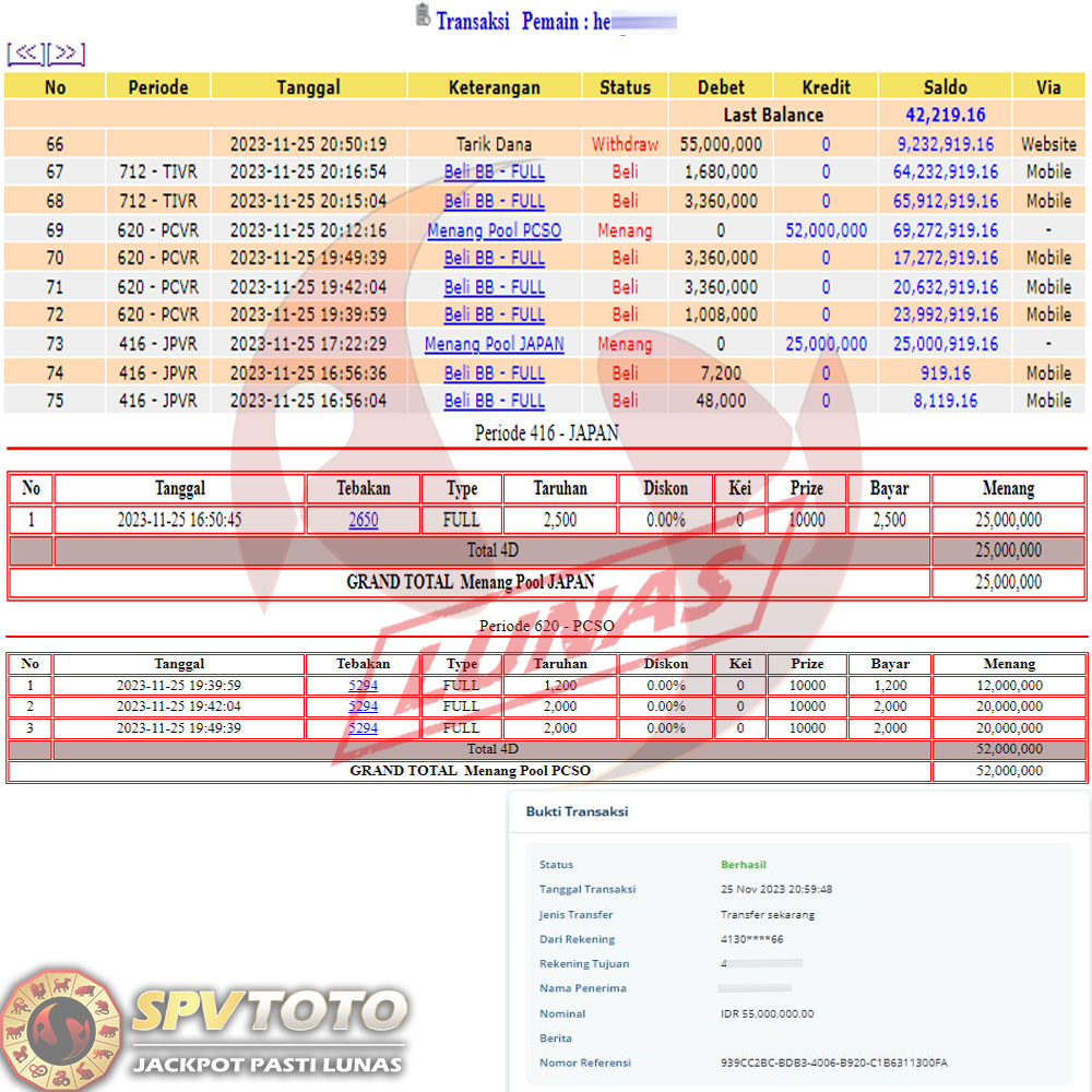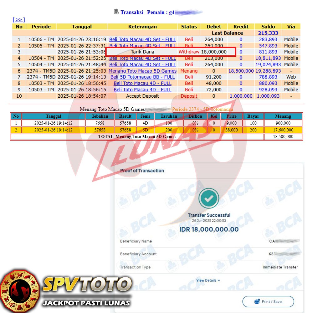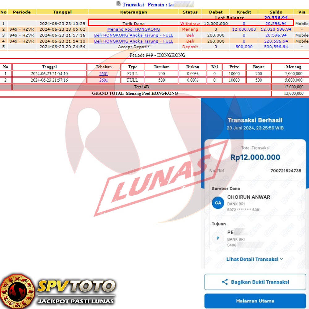 SELAMAT KEPADA MEMBER YANG MENDAPATKAN JACKPOT DI SPVTOTO