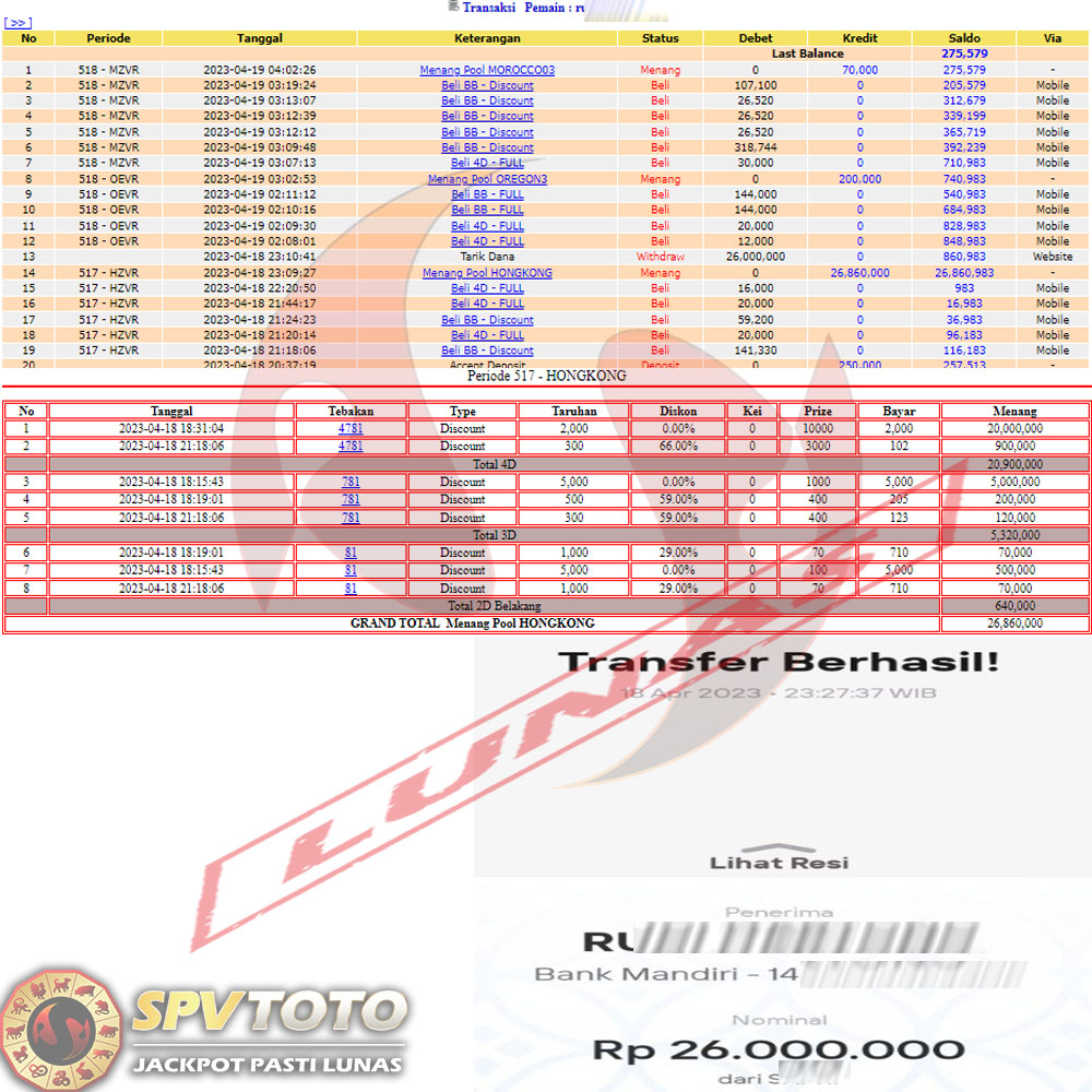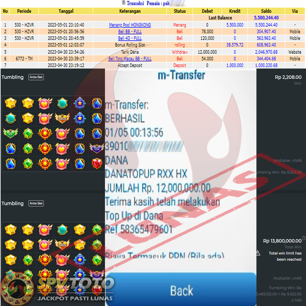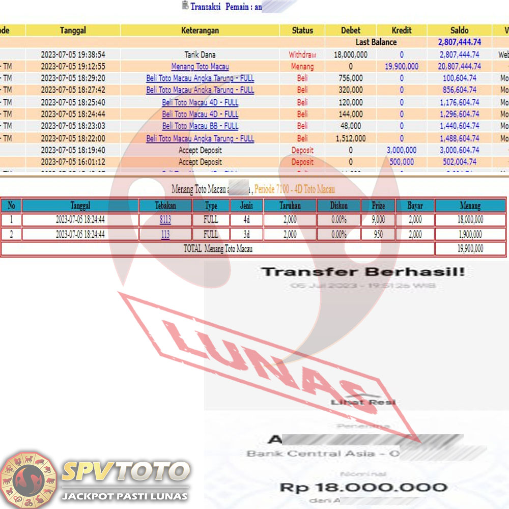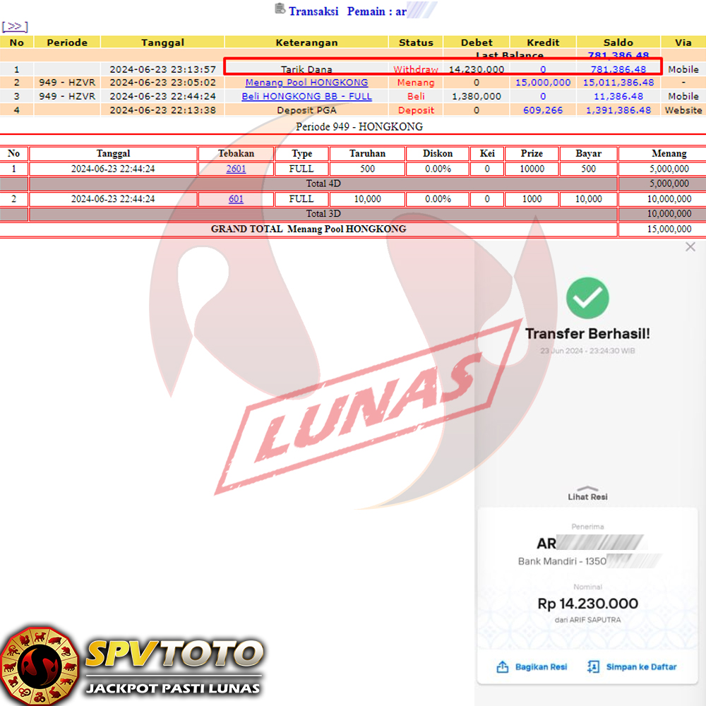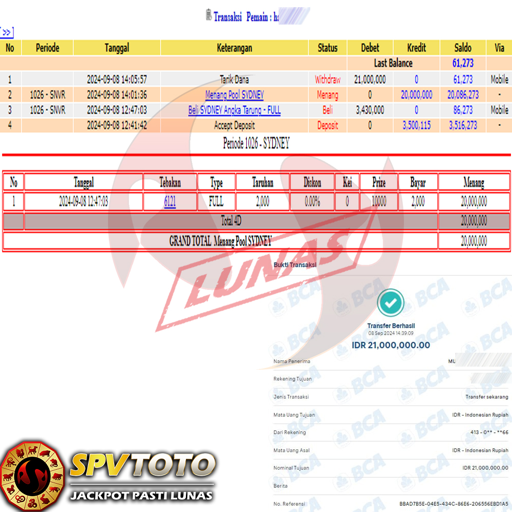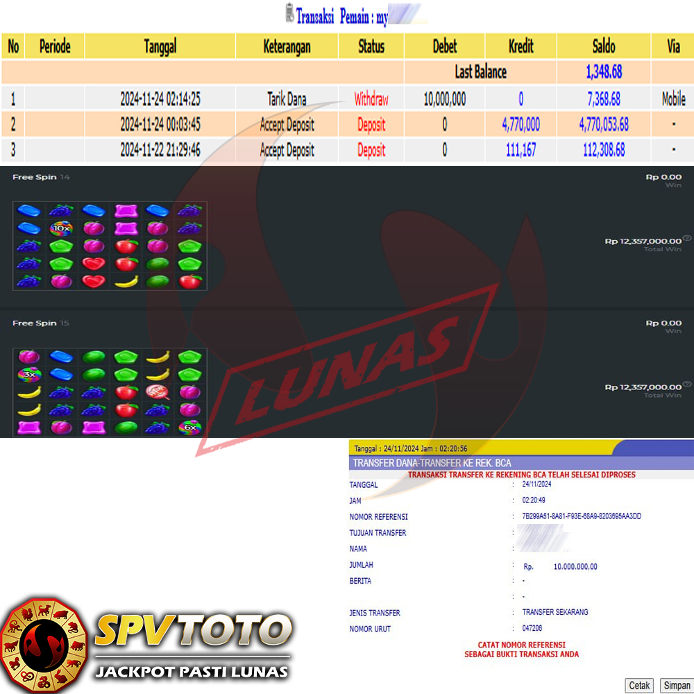SELAMAT KEPADA MEMBER YANG MENDAPATKAN JACKPOT DI SPVTOTO