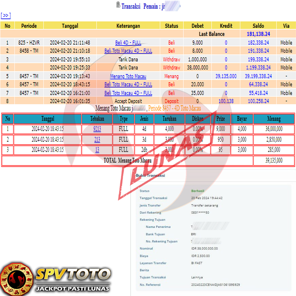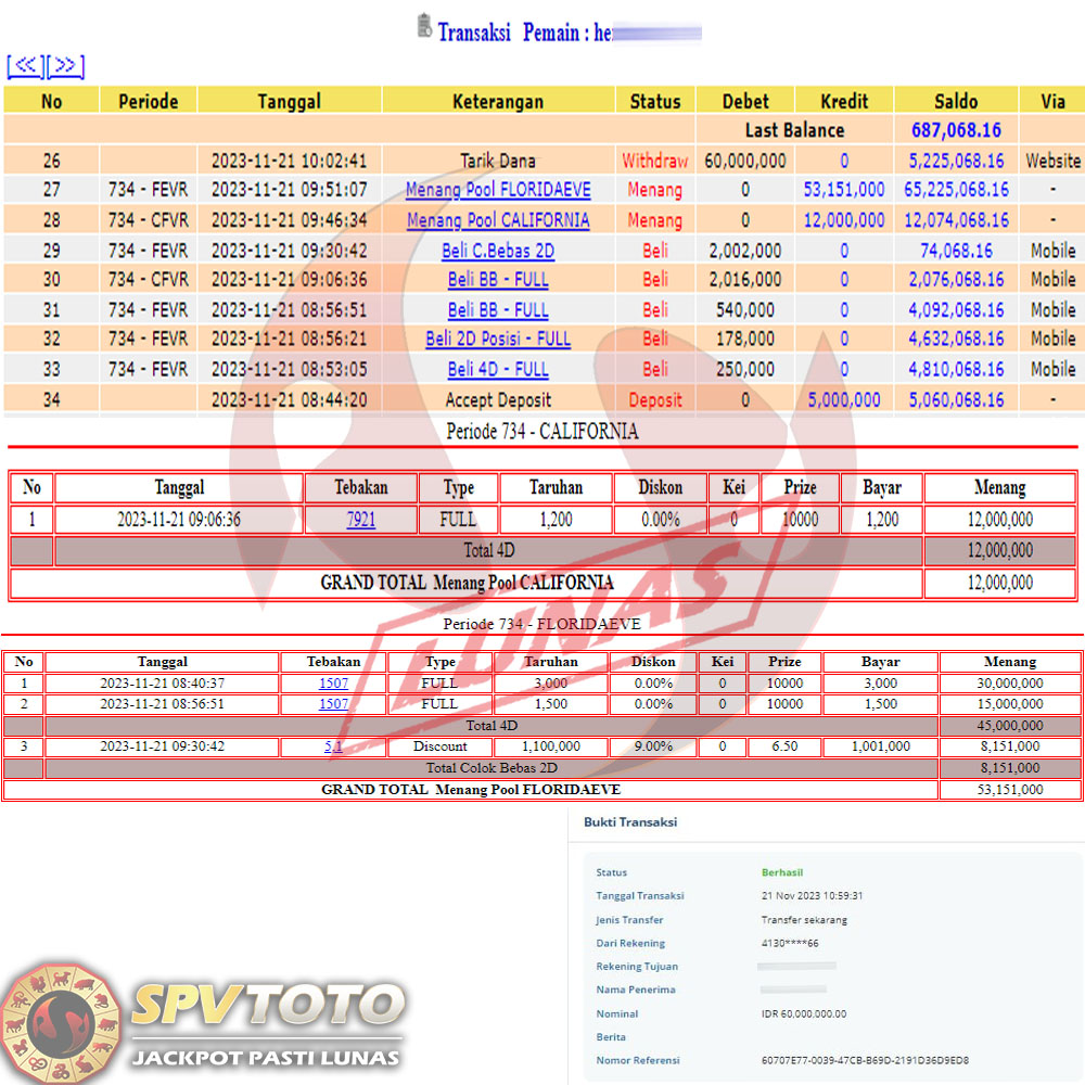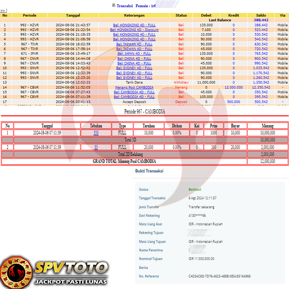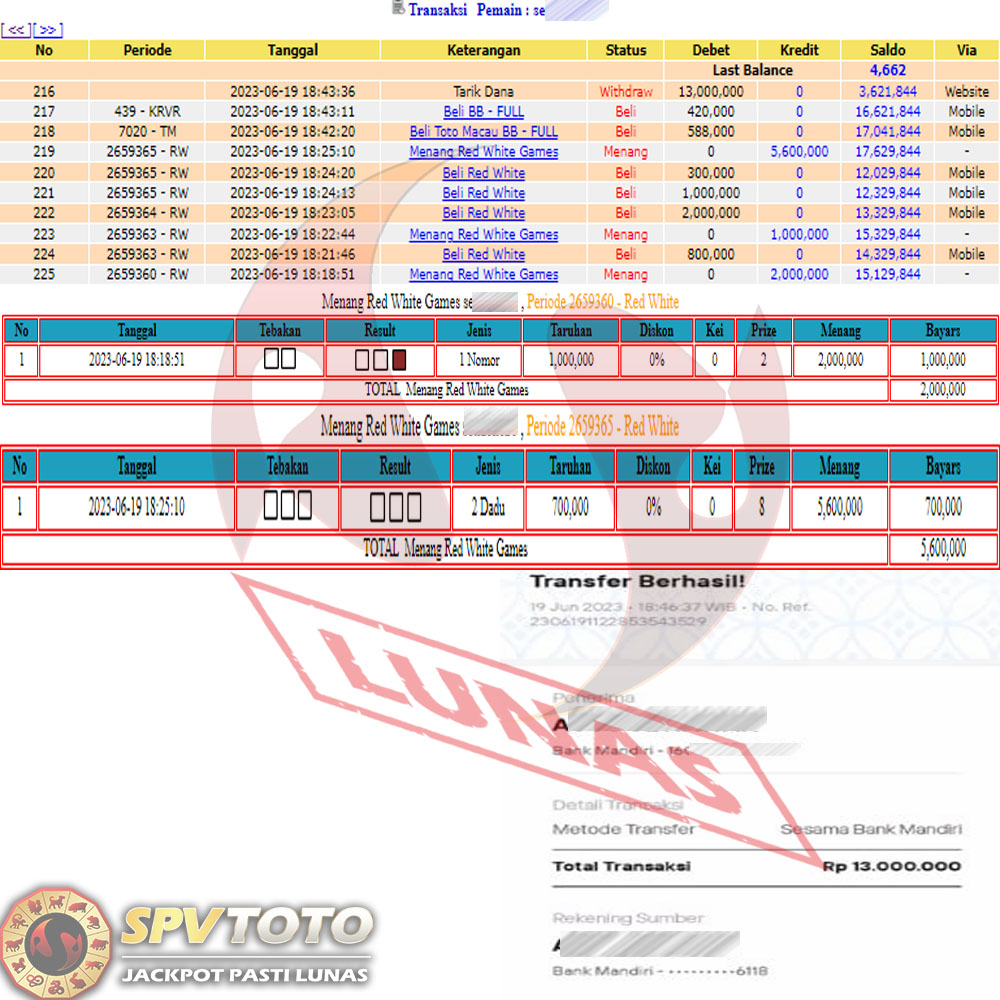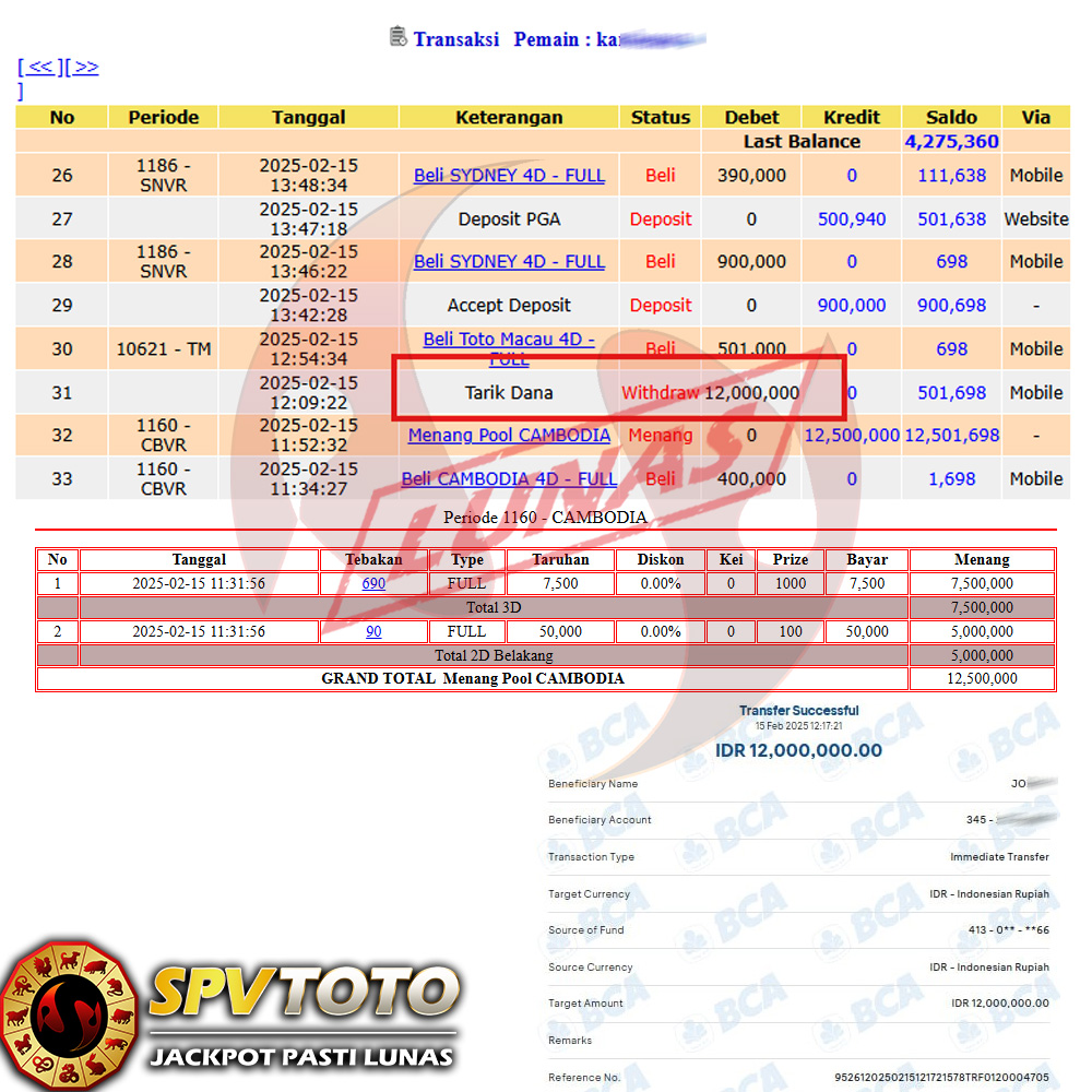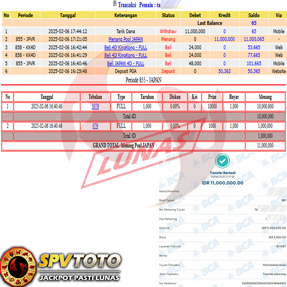 SELAMAT KEPADA MEMBER YANG MENDAPATKAN JACKPOT DI SPVTOTO