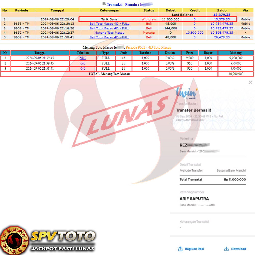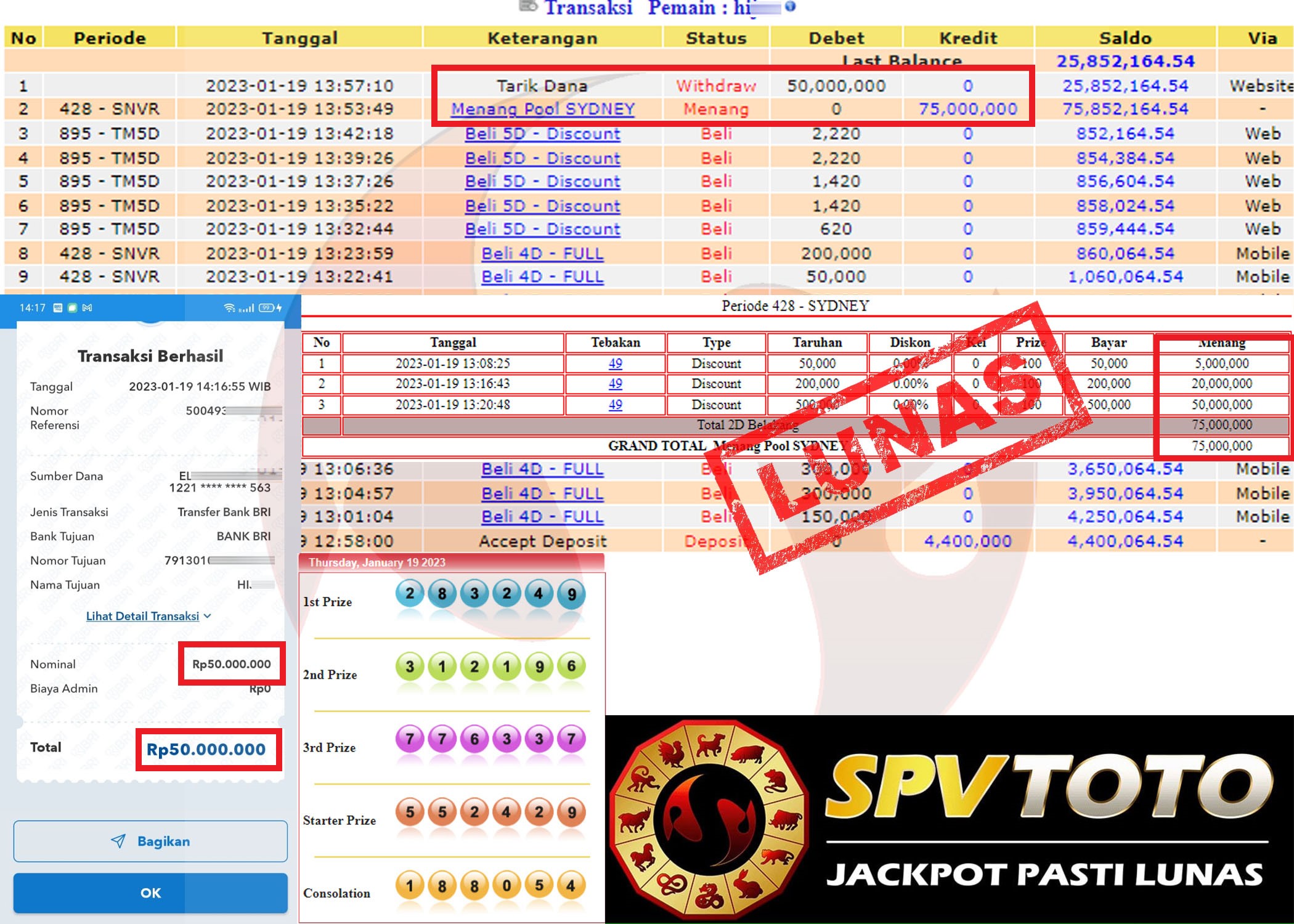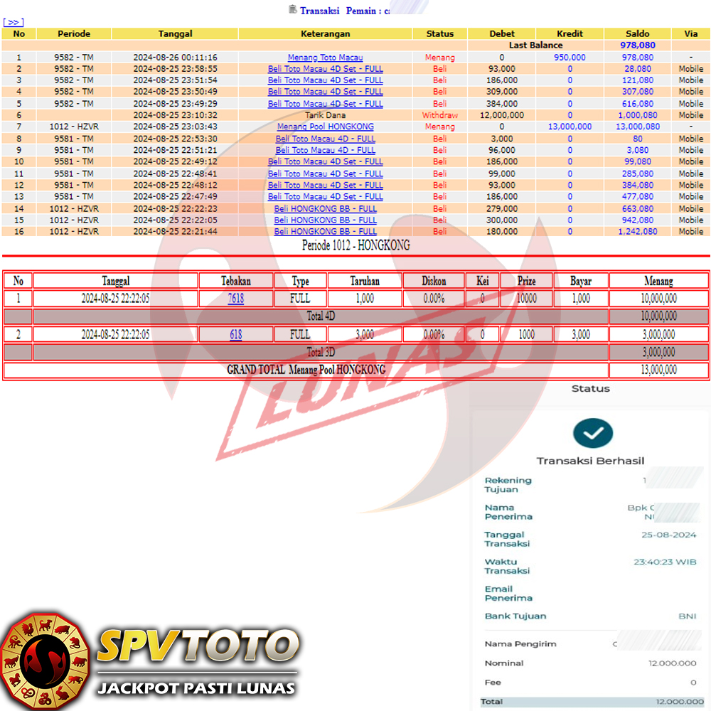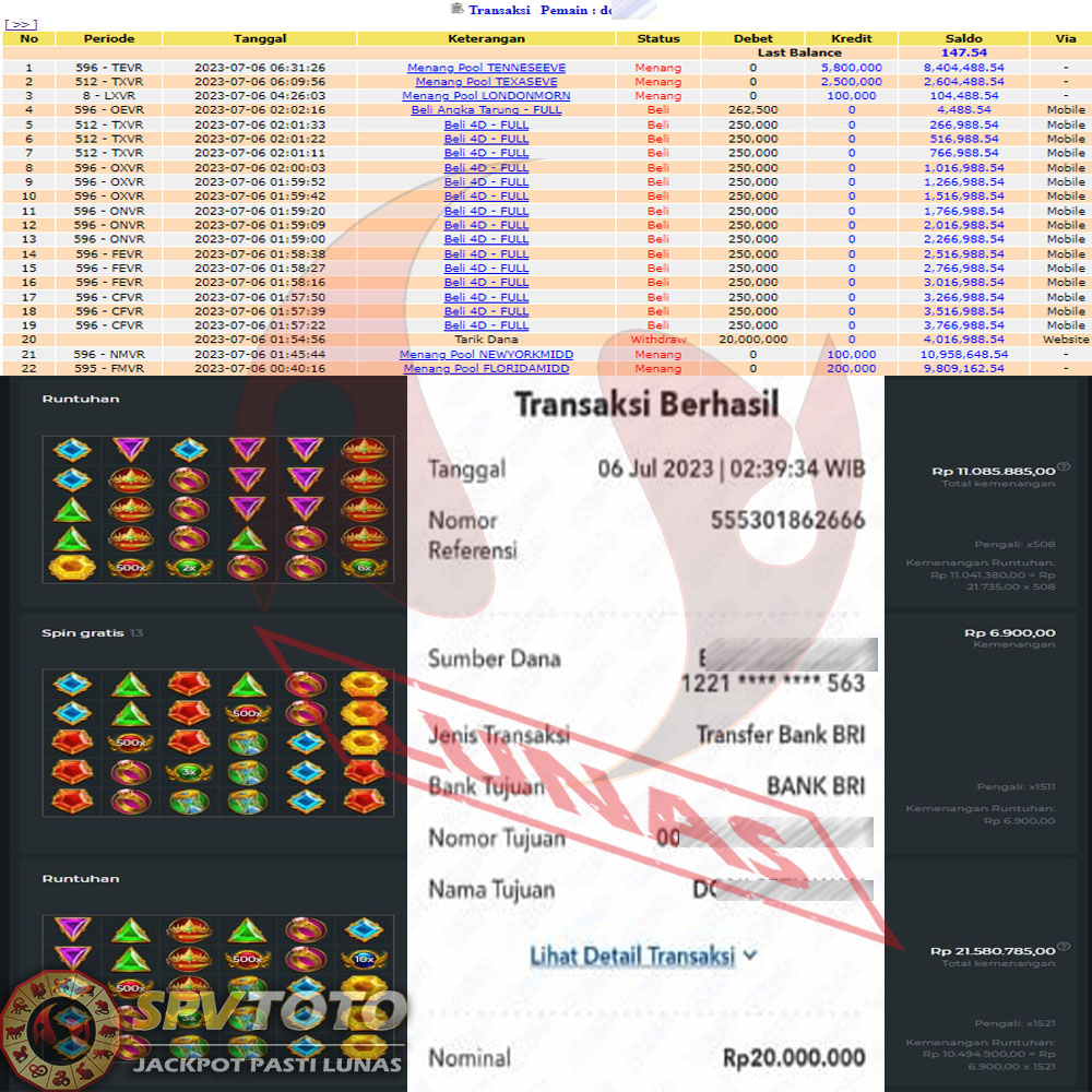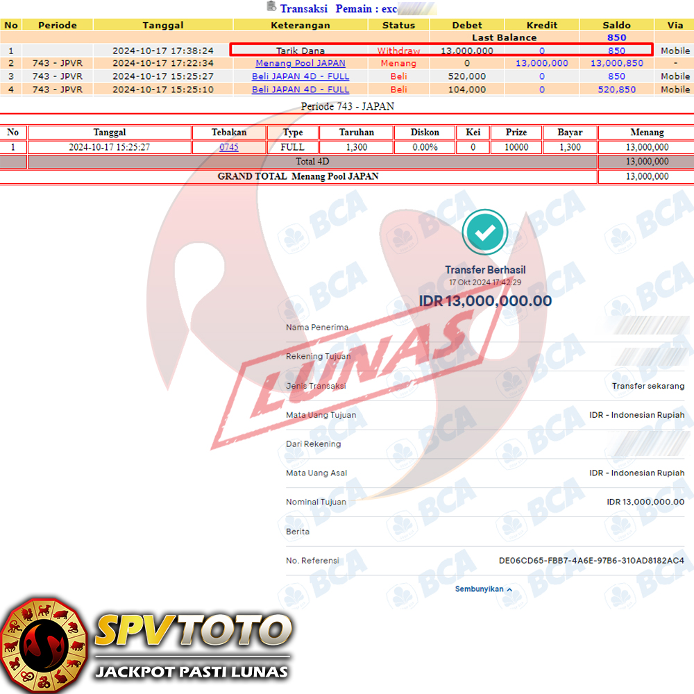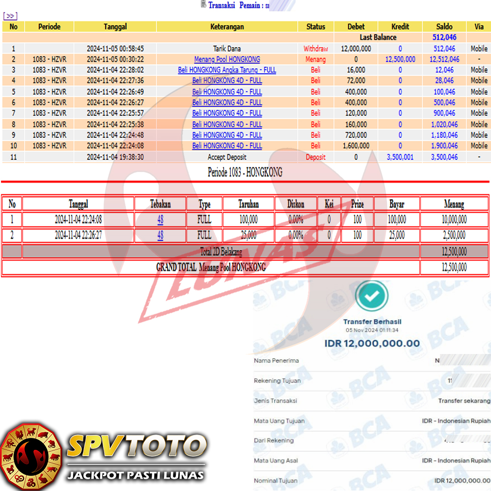 SELAMAT KEPADA MEMBER YANG MENDAPATKAN JACKPOT DI SPVTOTO