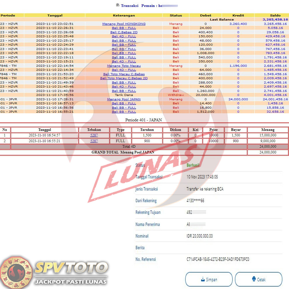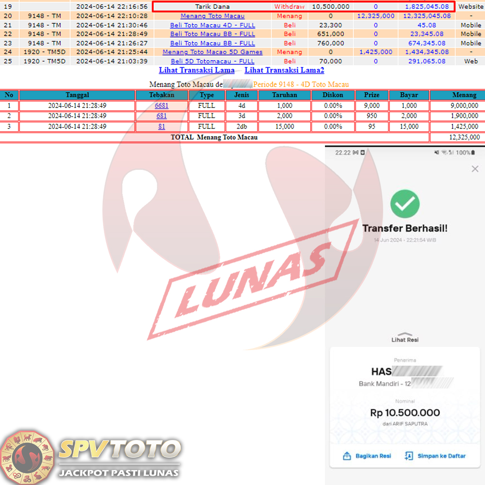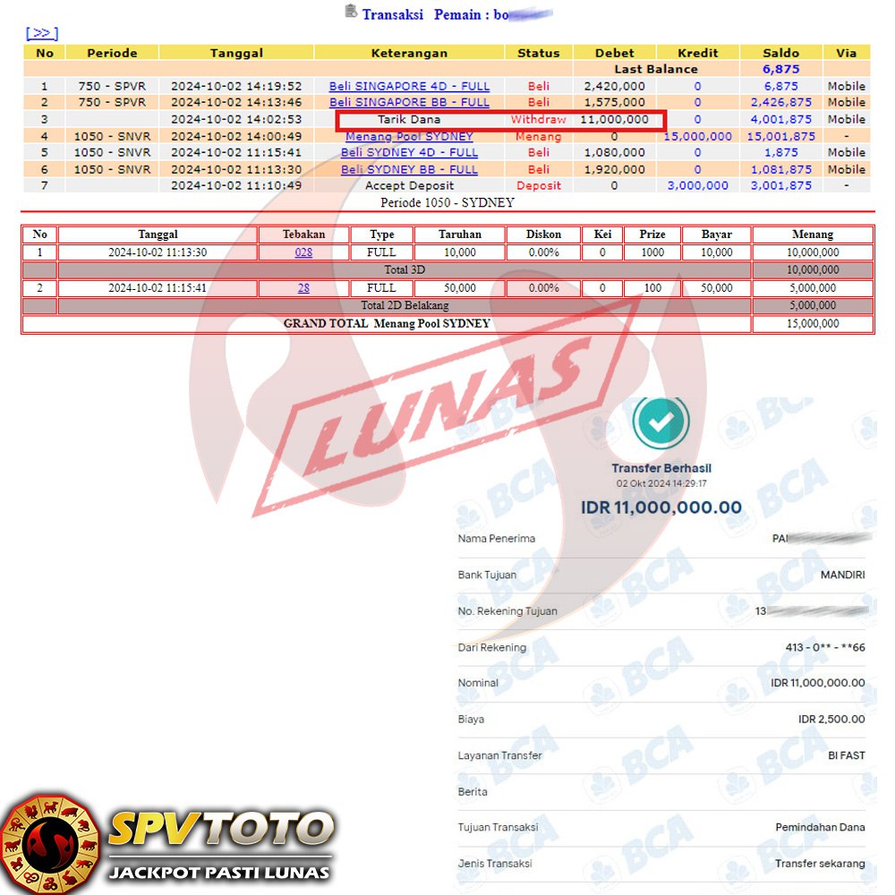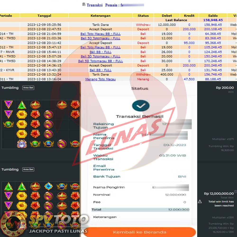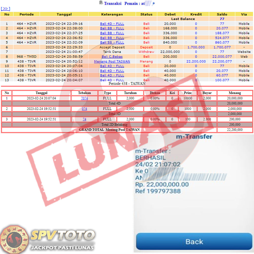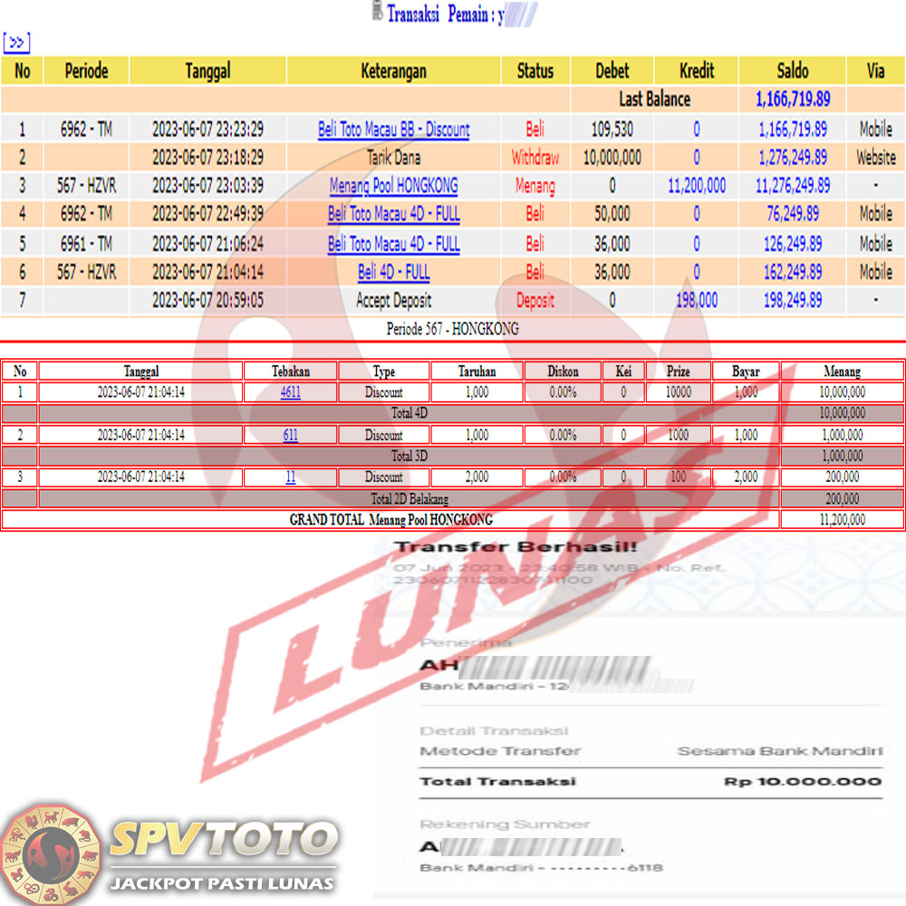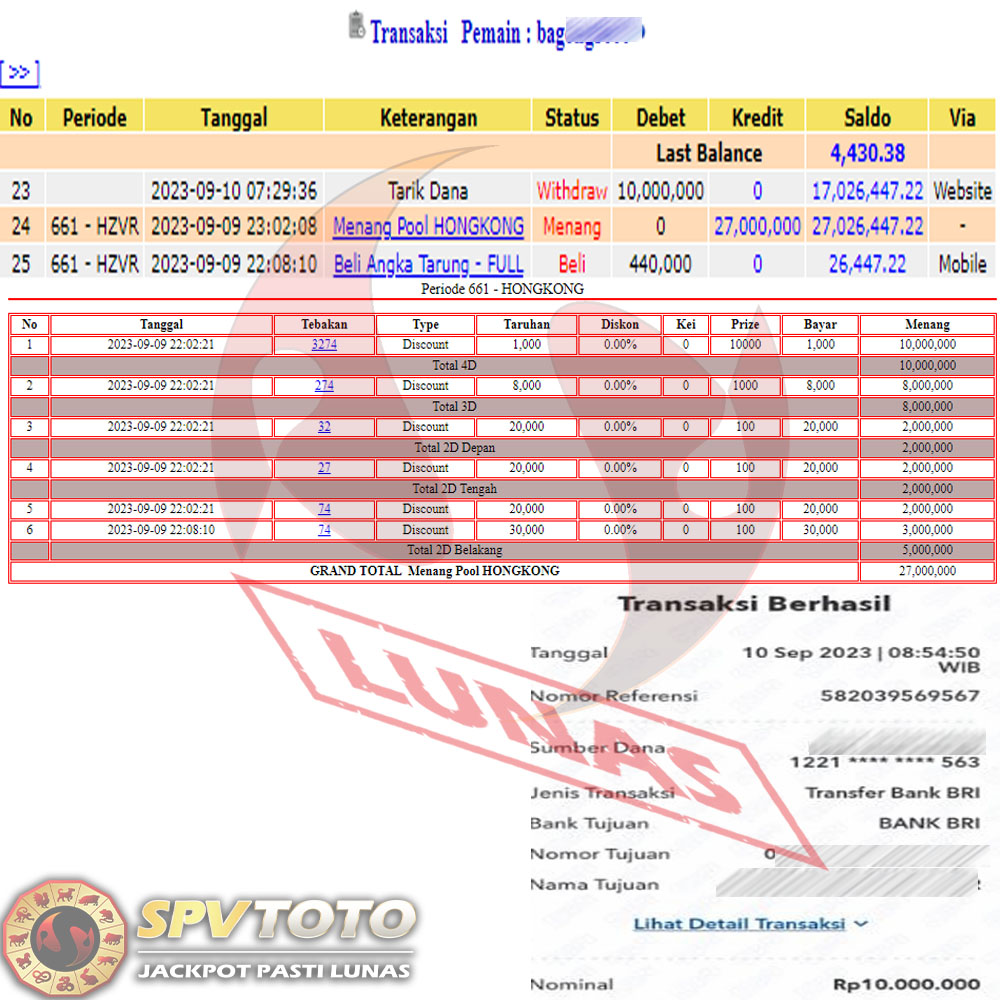 SELAMAT KEPADA MEMBER YANG MENDAPATKAN JACKPOT DI SPVTOTO