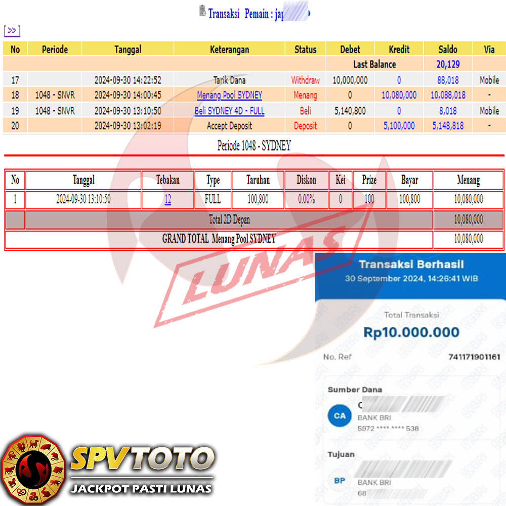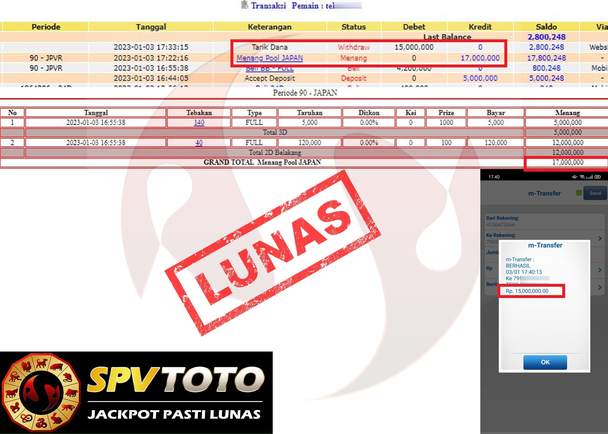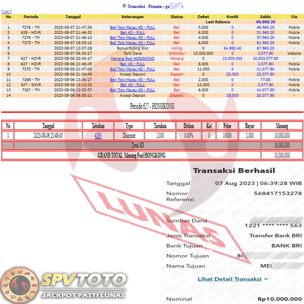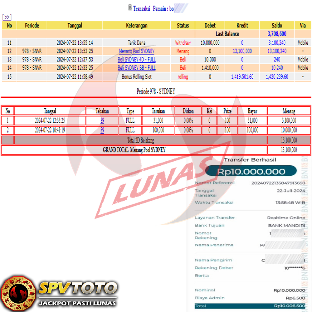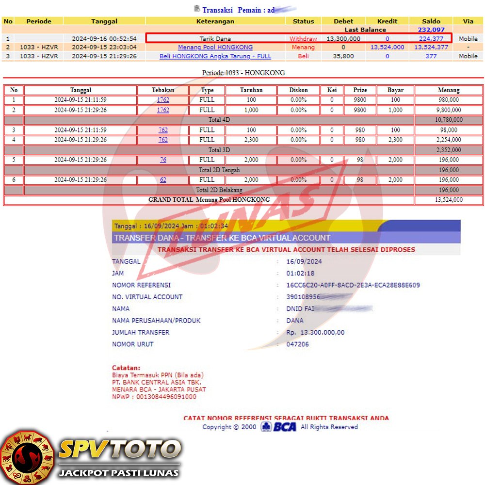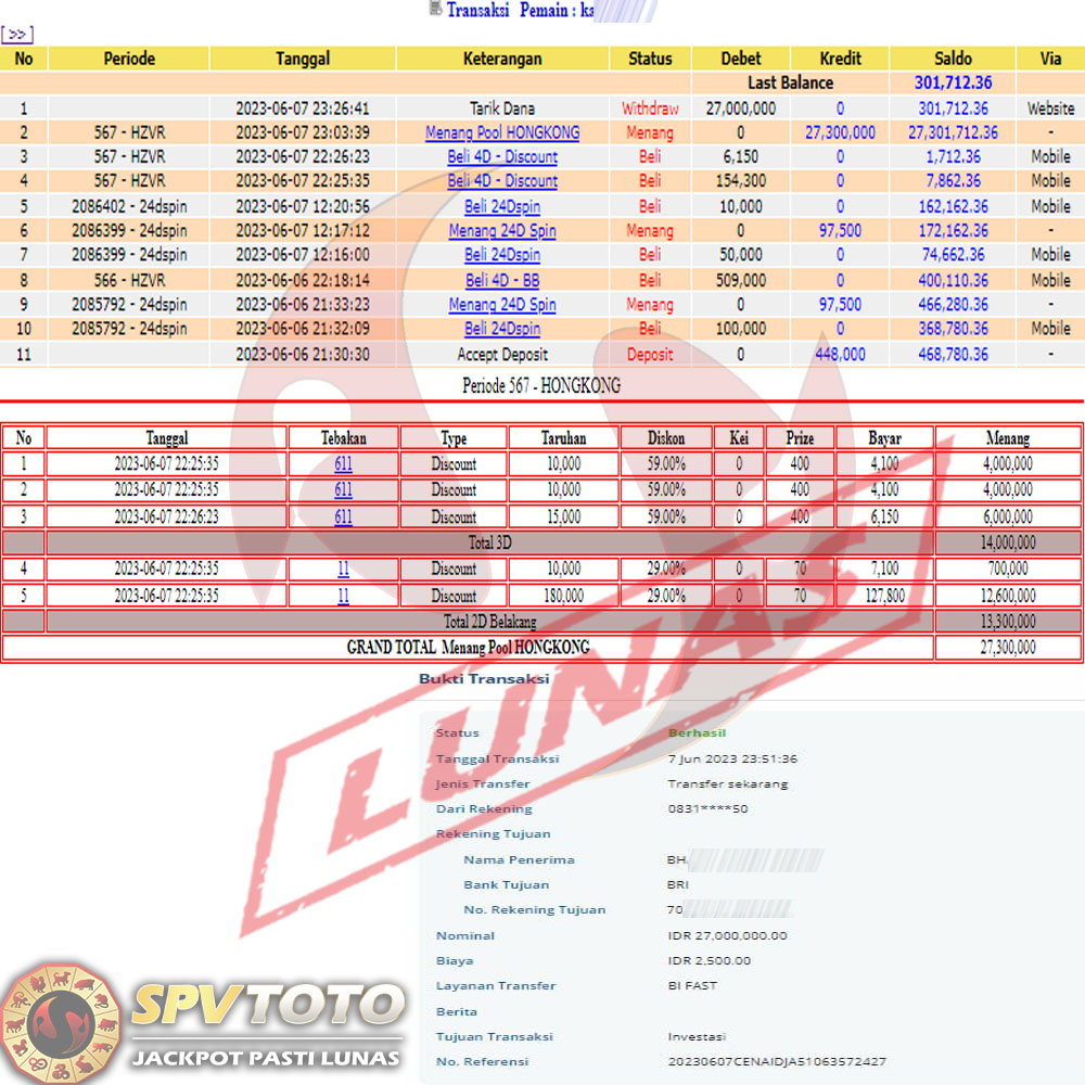 SELAMAT KEPADA MEMBER YANG MENDAPATKAN JACKPOT DI SPVTOTO