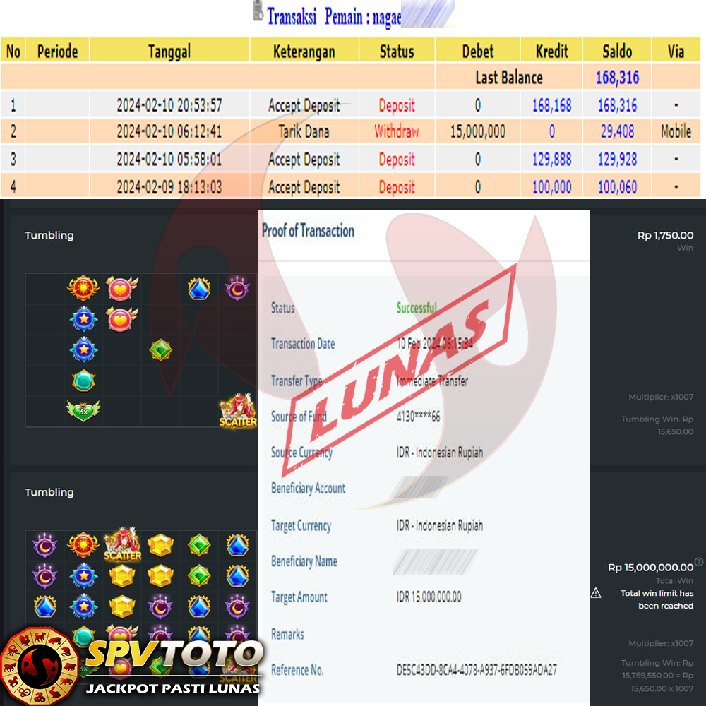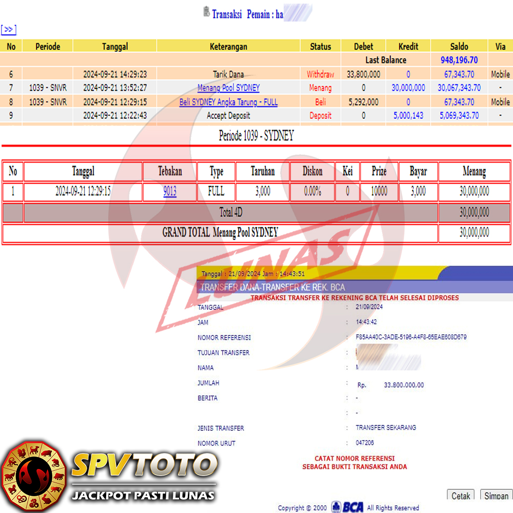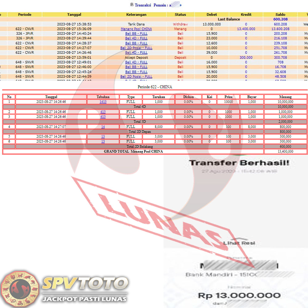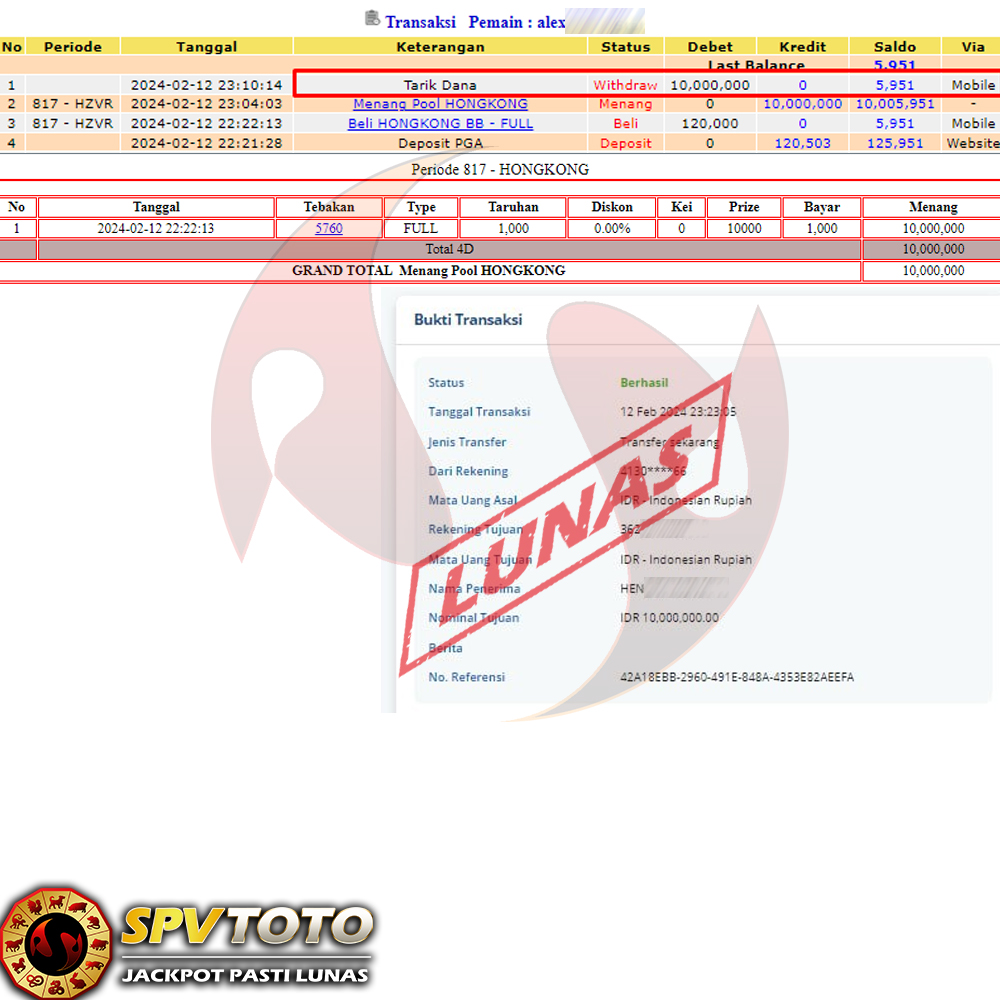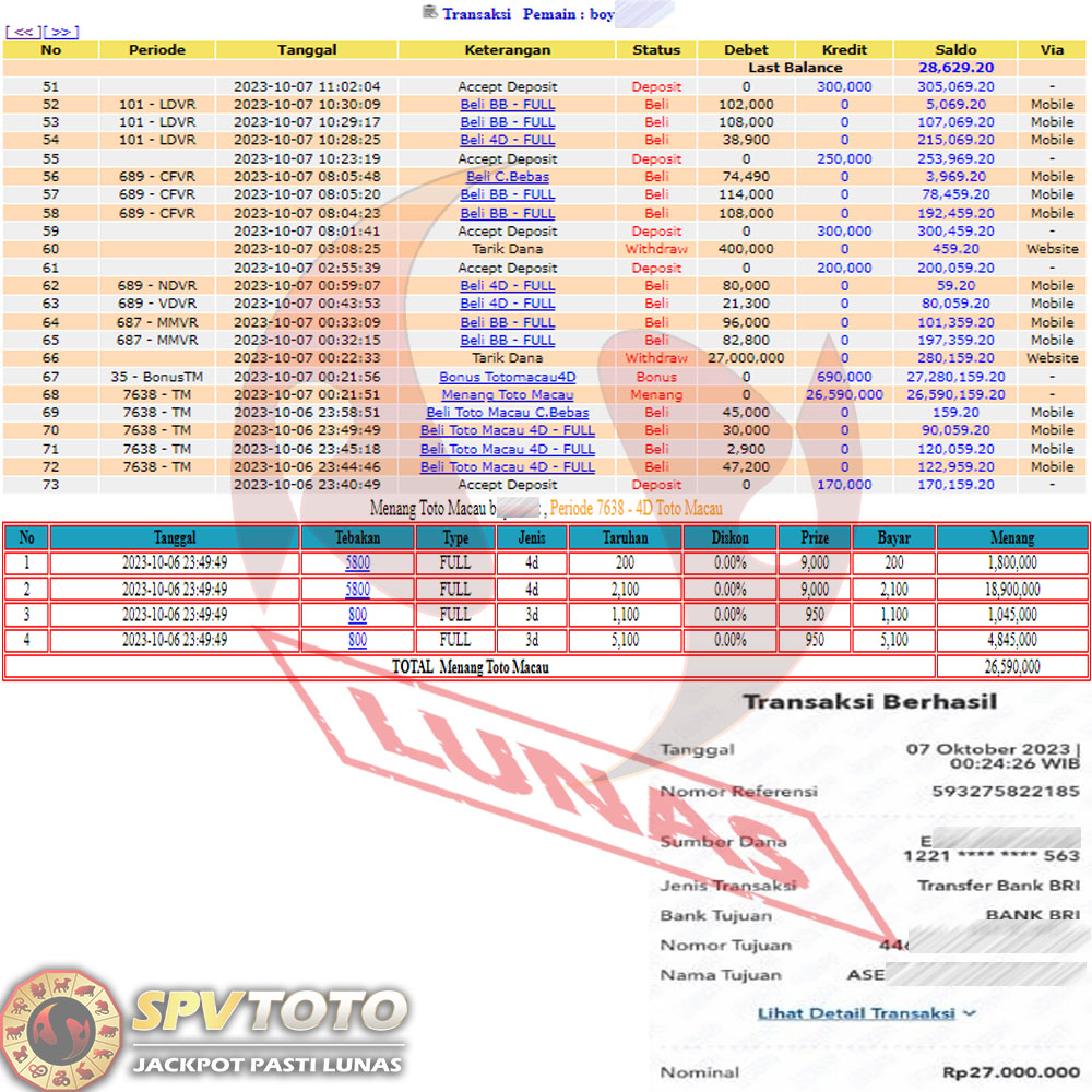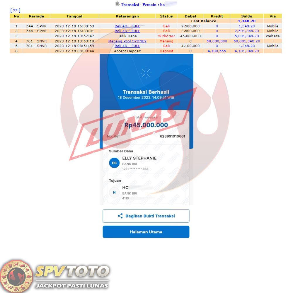 SELAMAT KEPADA MEMBER YANG MENDAPATKAN JACKPOT DI SPVTOTO