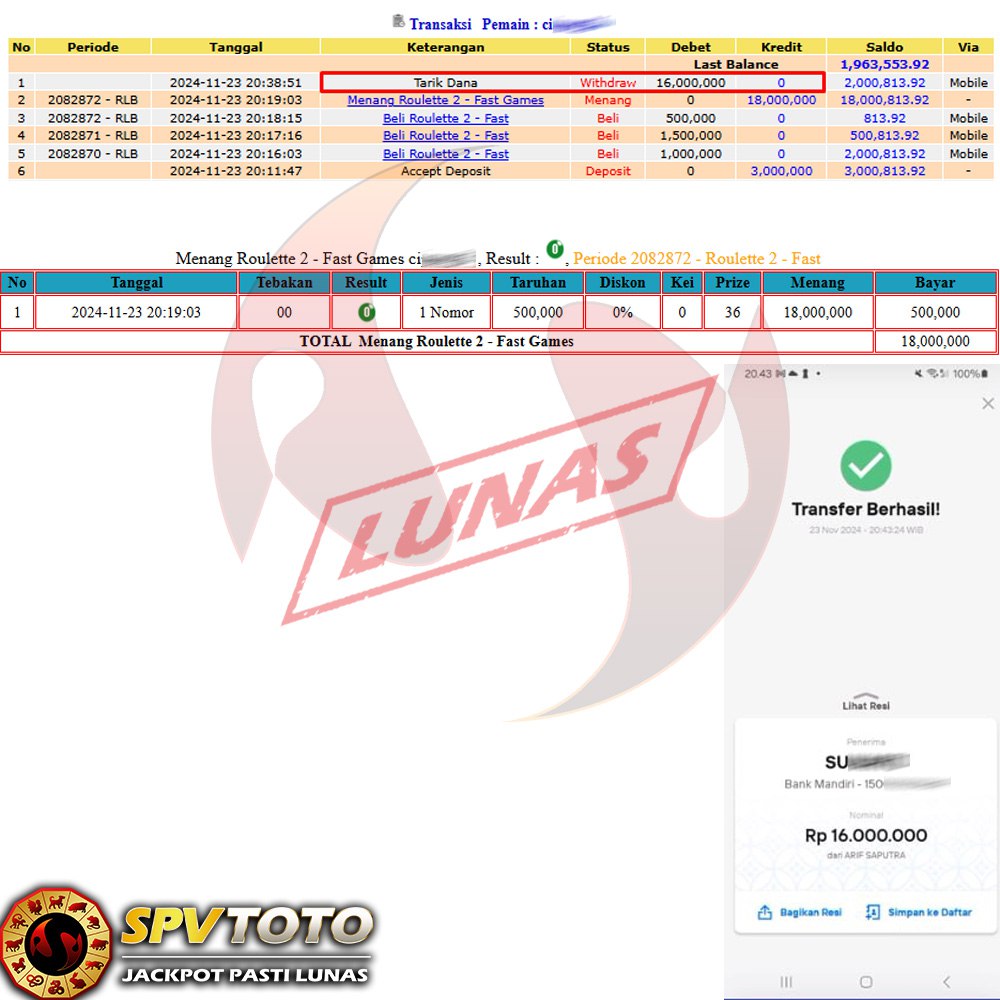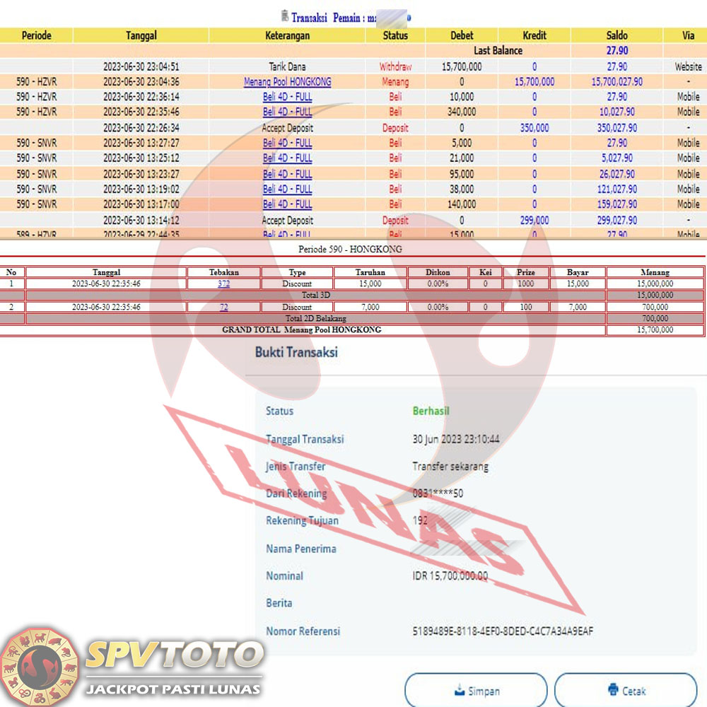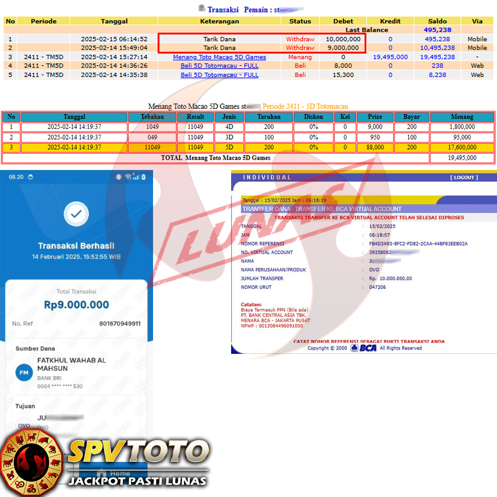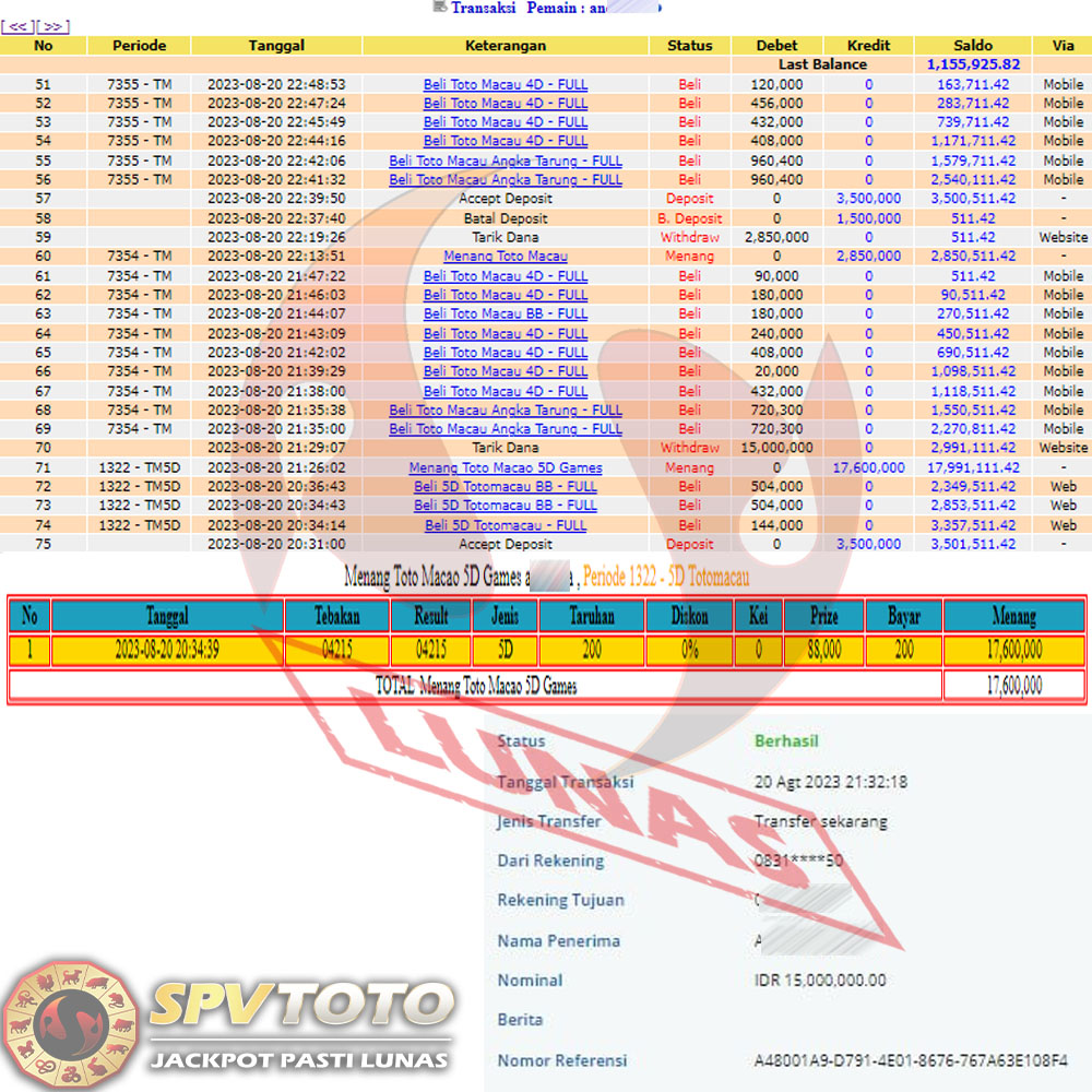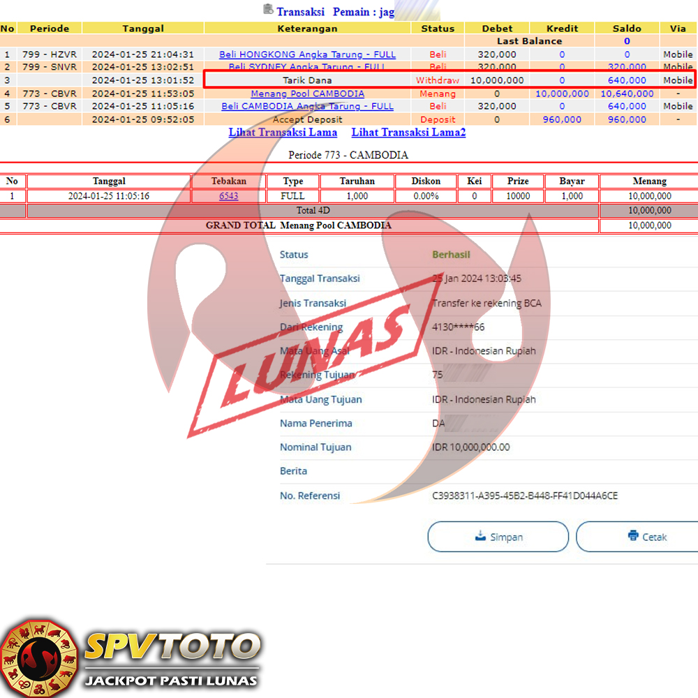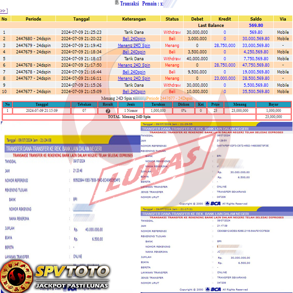SELAMAT KEPADA MEMBER YANG MENDAPATKAN JACKPOT DI SPVTOTO