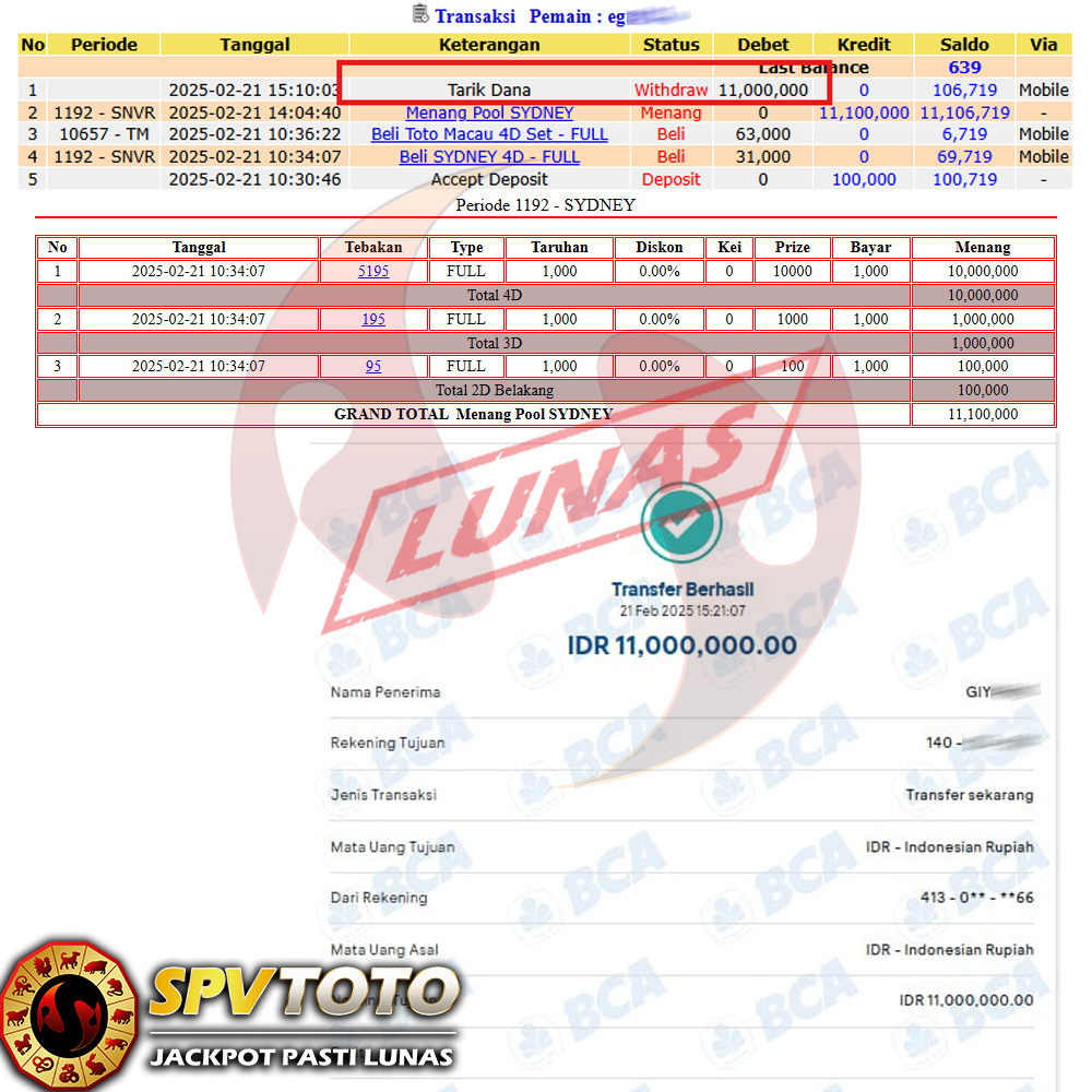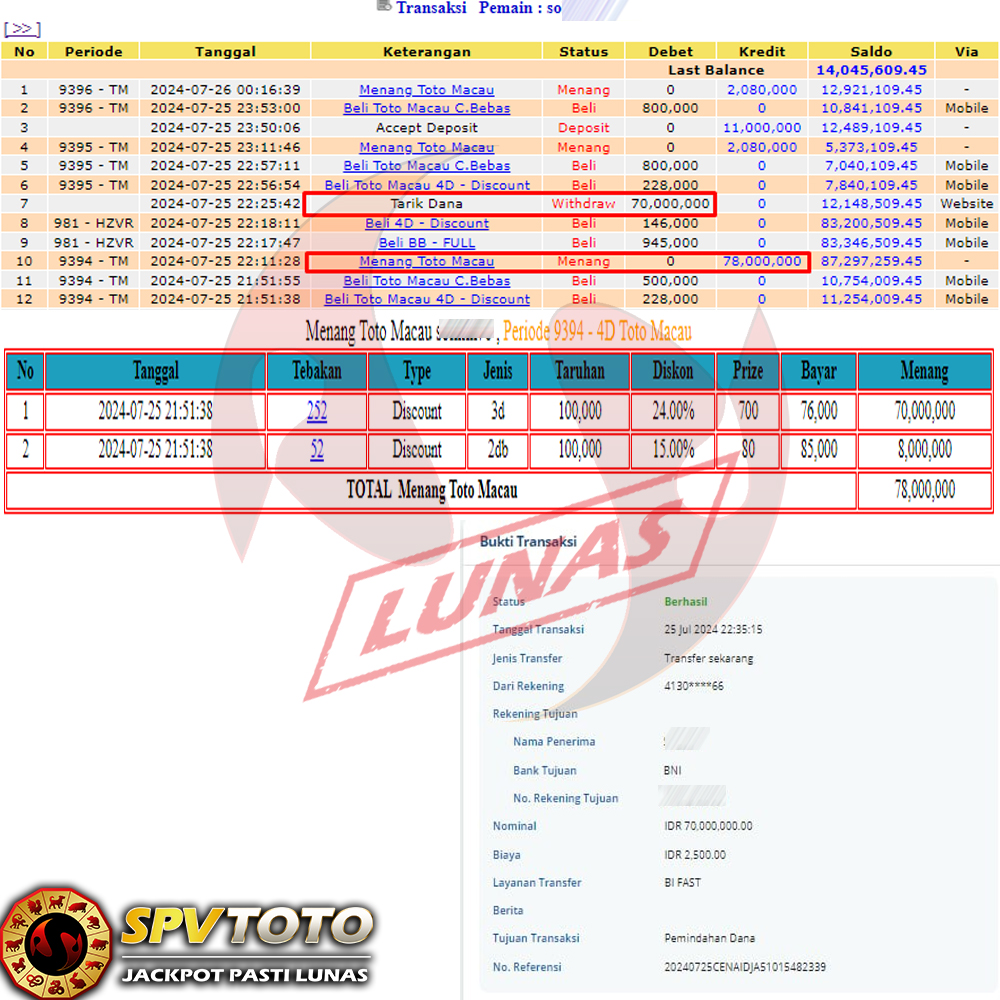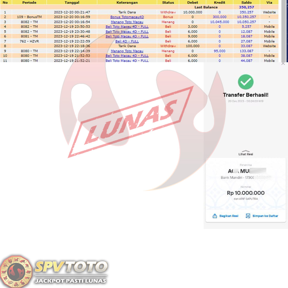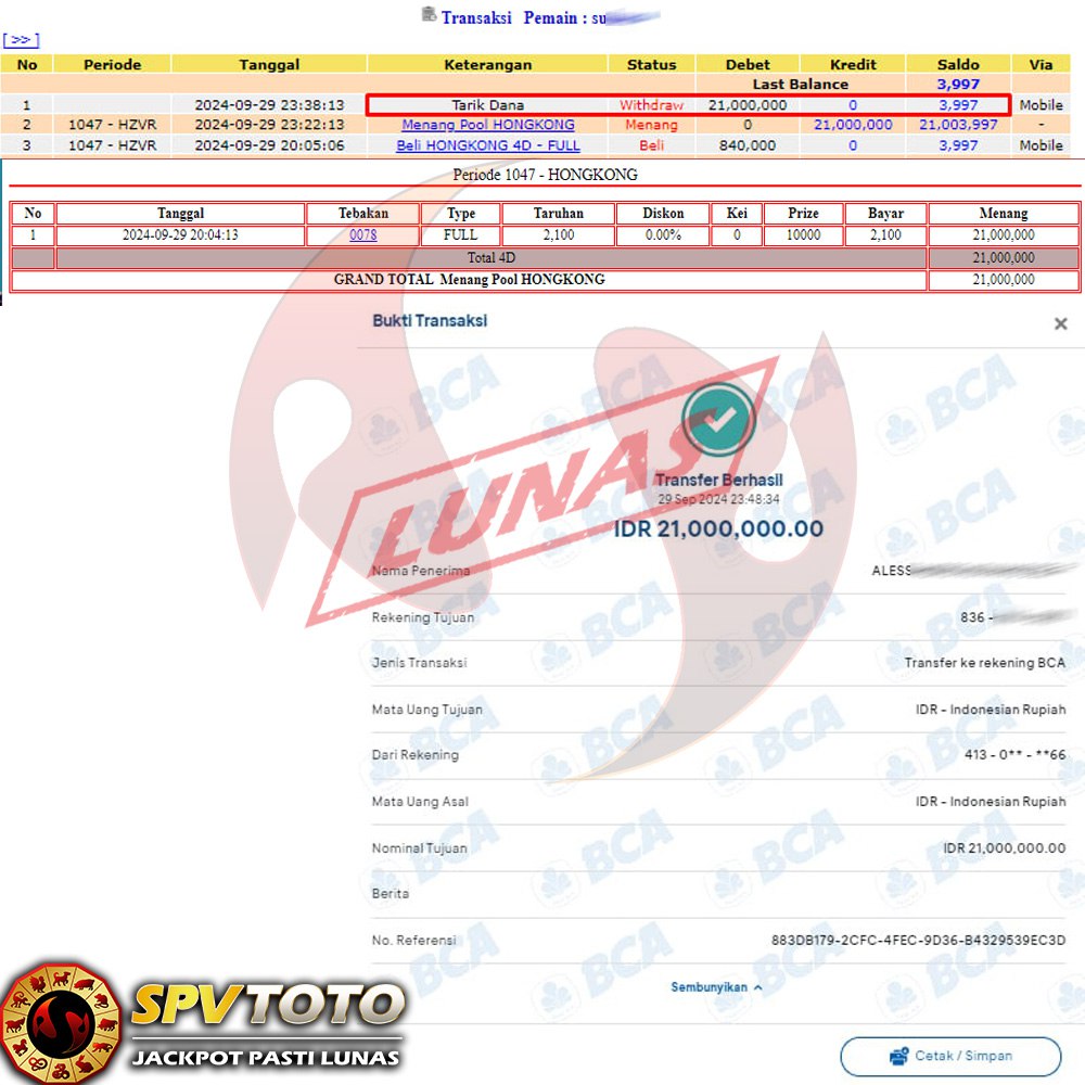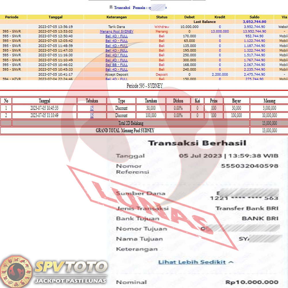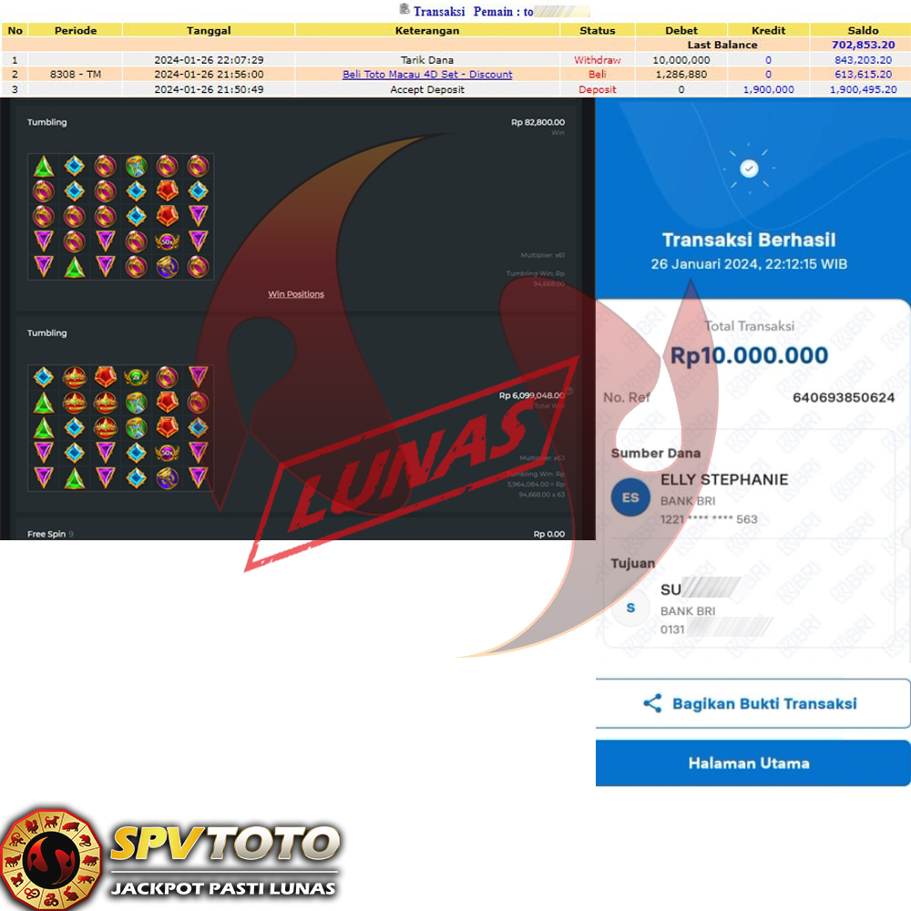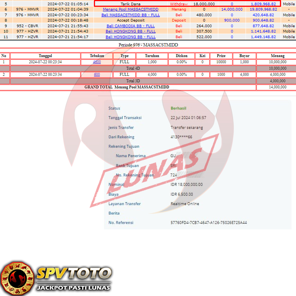 SELAMAT KEPADA MEMBER YANG MENDAPATKAN JACKPOT DI SPVTOTO