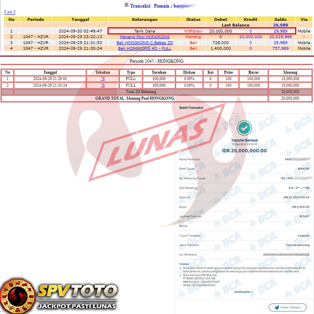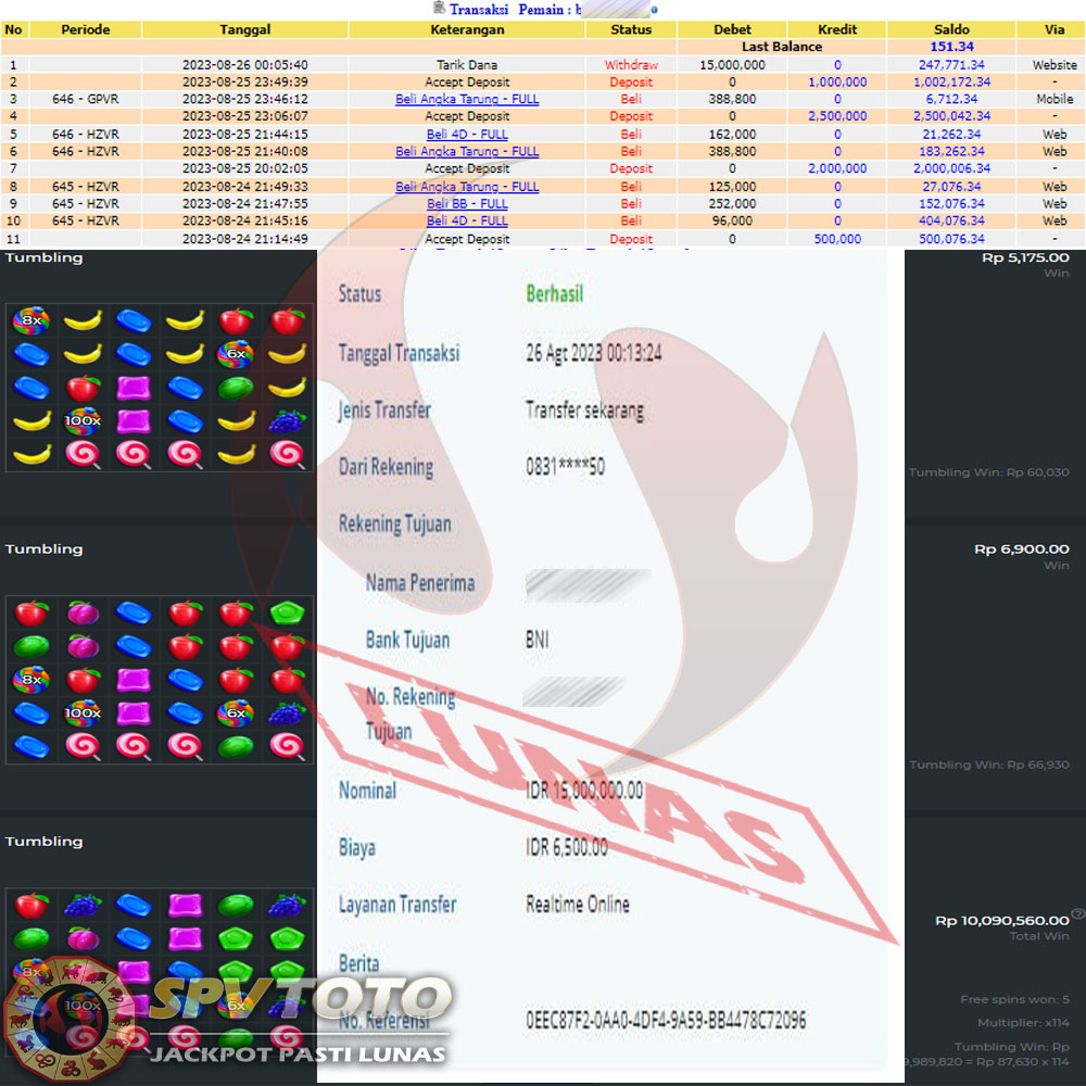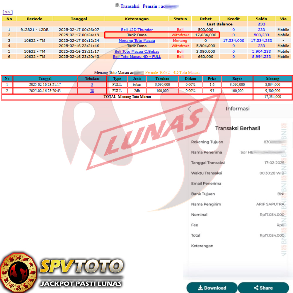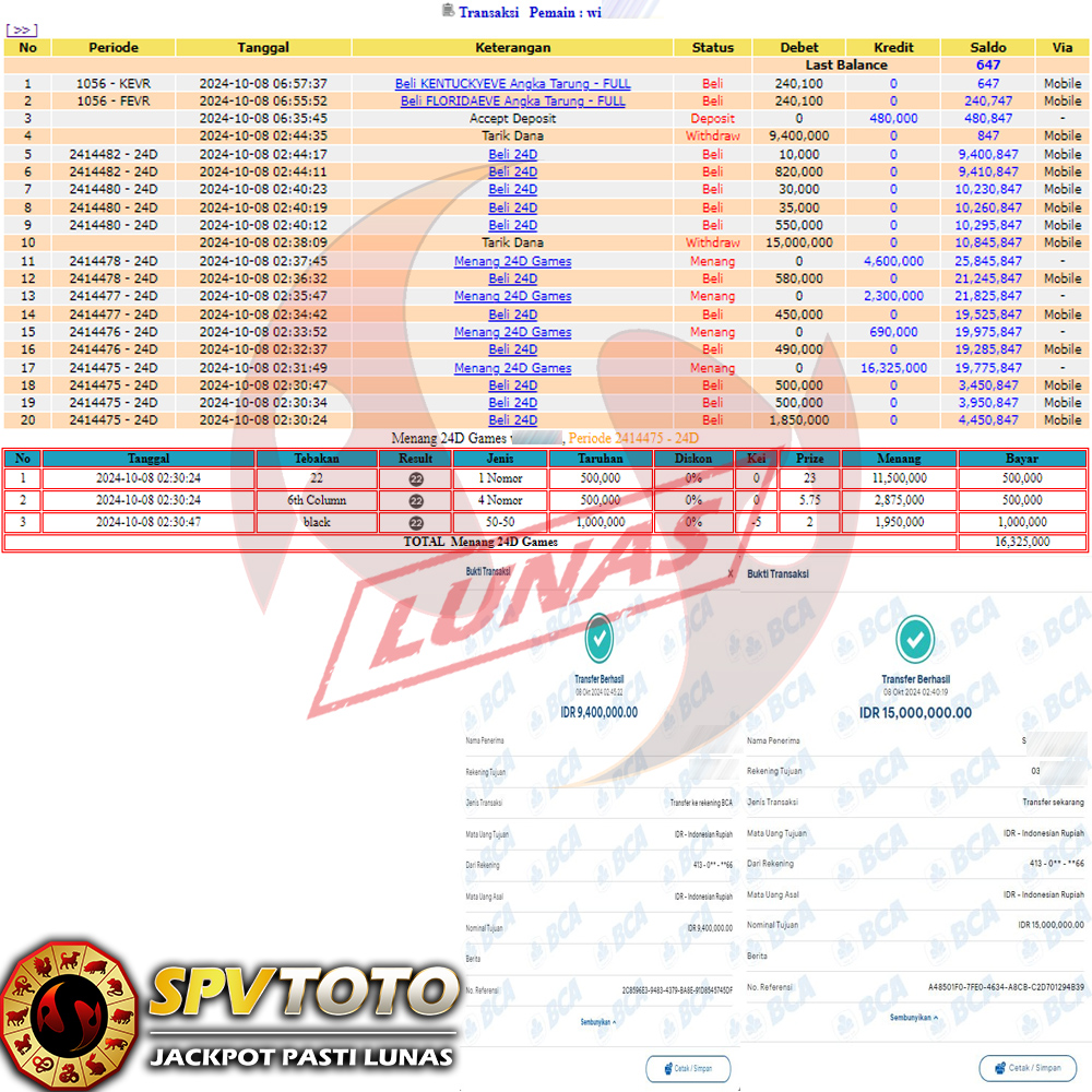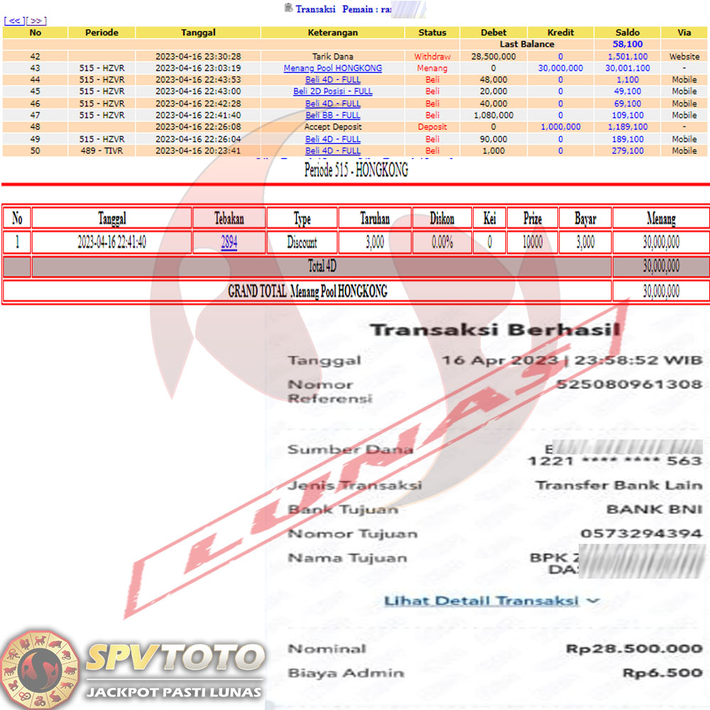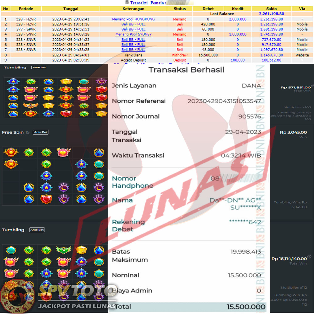 SELAMAT KEPADA MEMBER YANG MENDAPATKAN JACKPOT DI SPVTOTO