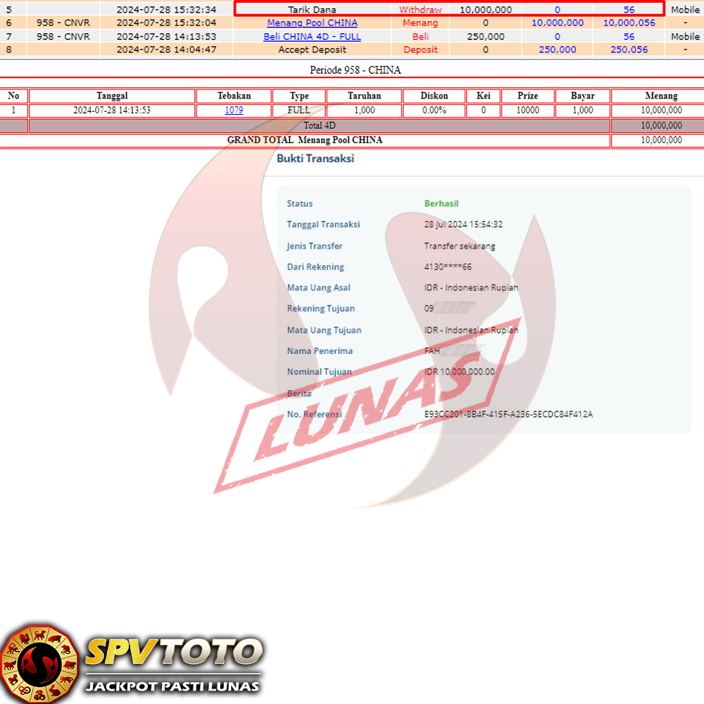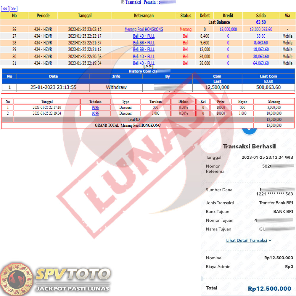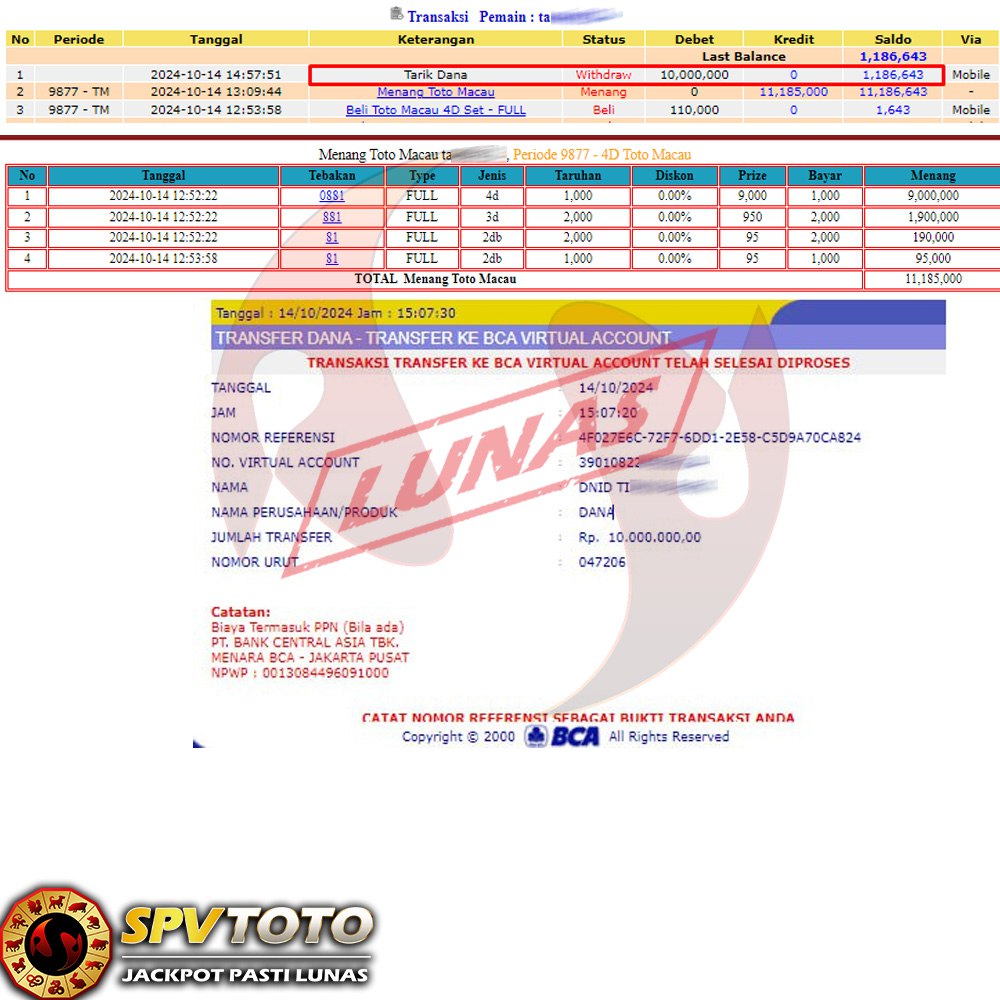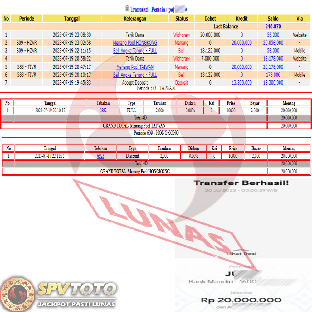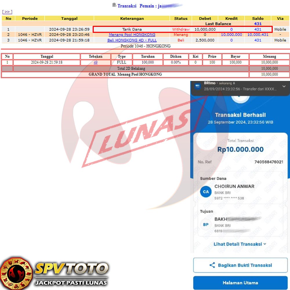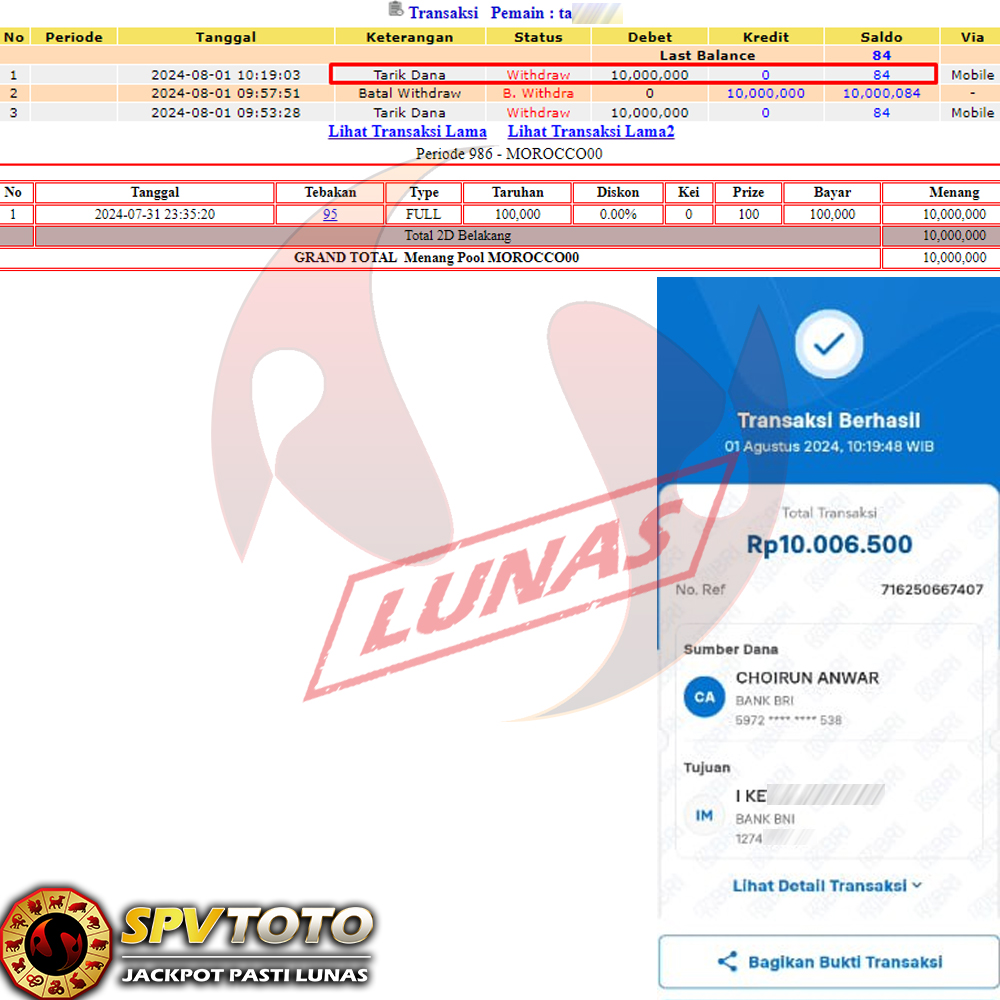 SELAMAT KEPADA MEMBER YANG MENDAPATKAN JACKPOT DI SPVTOTO