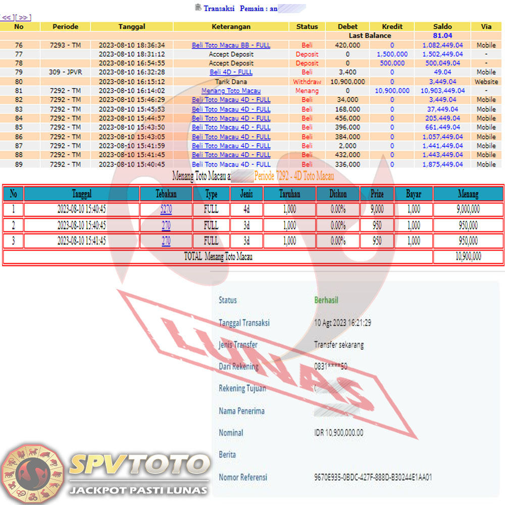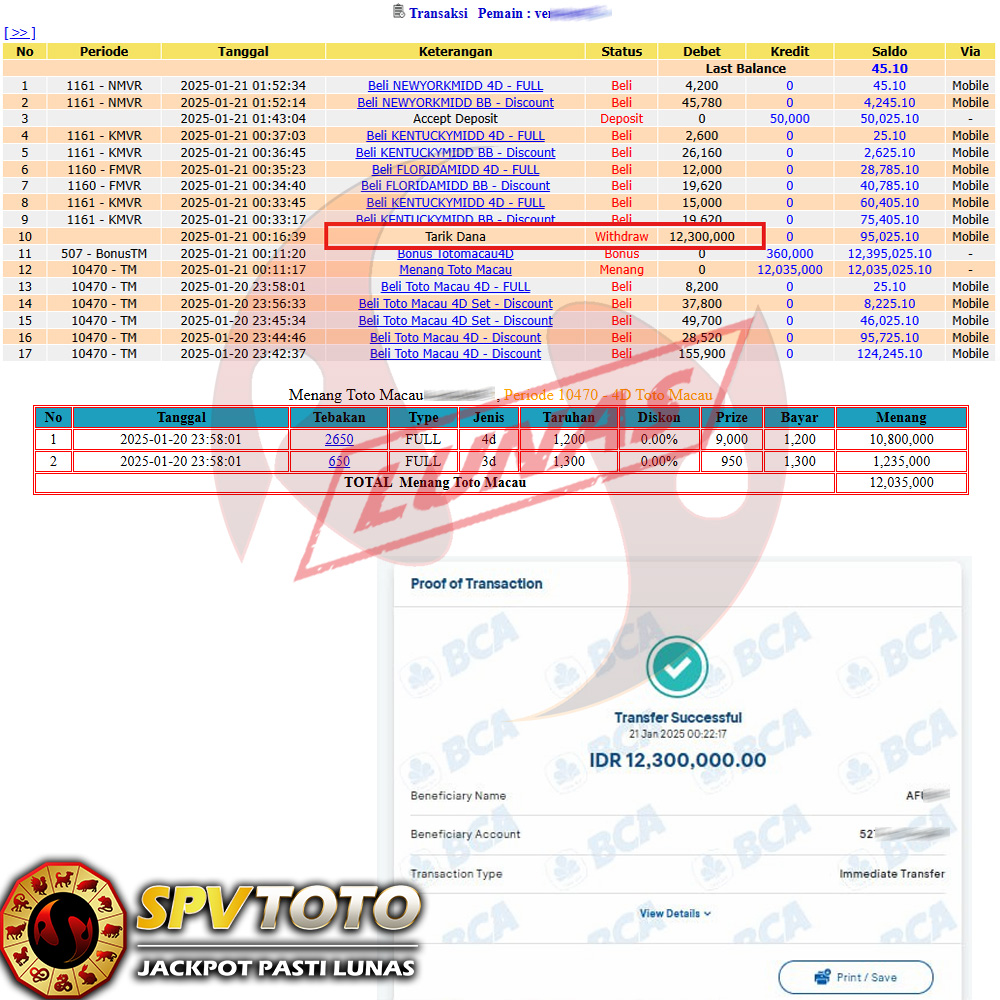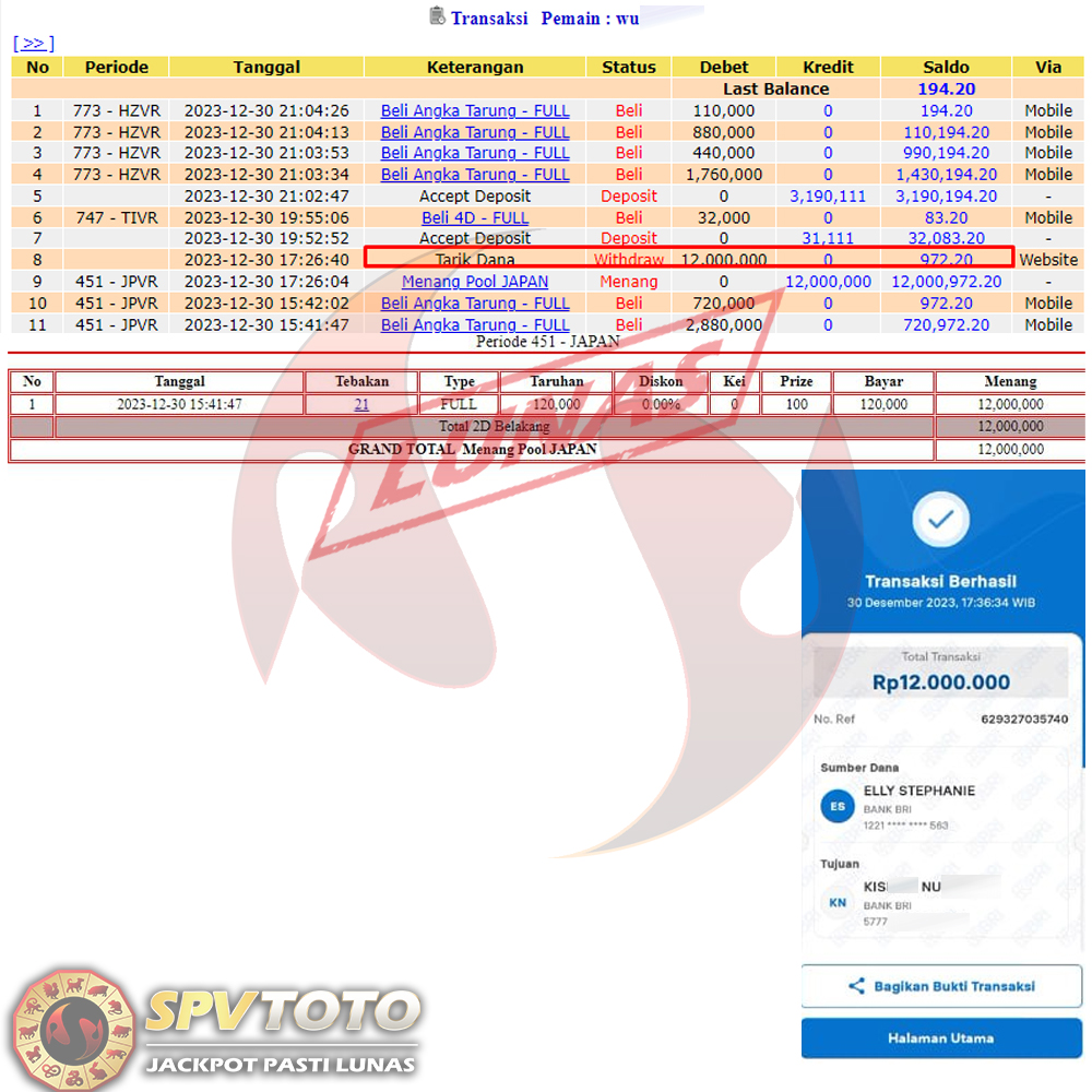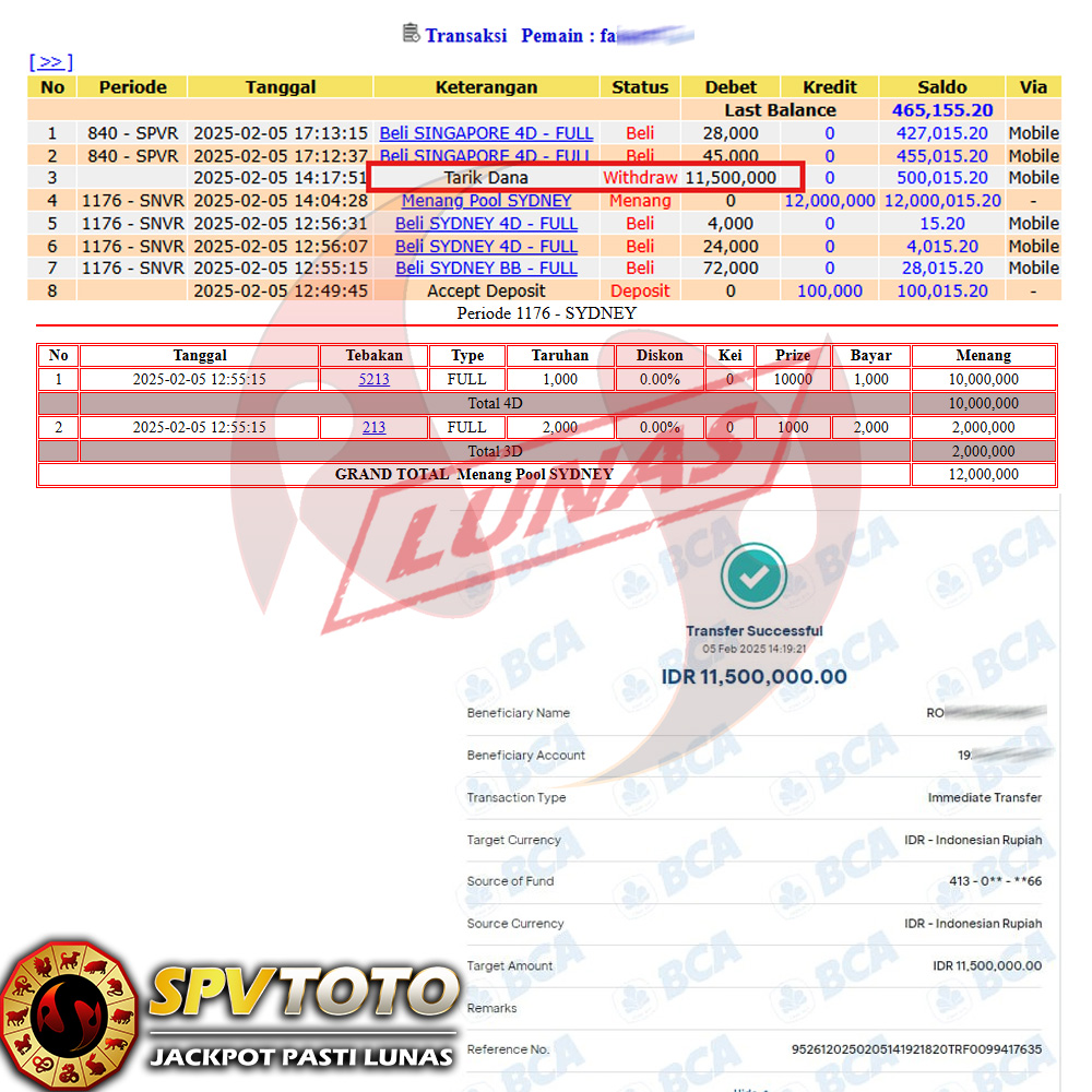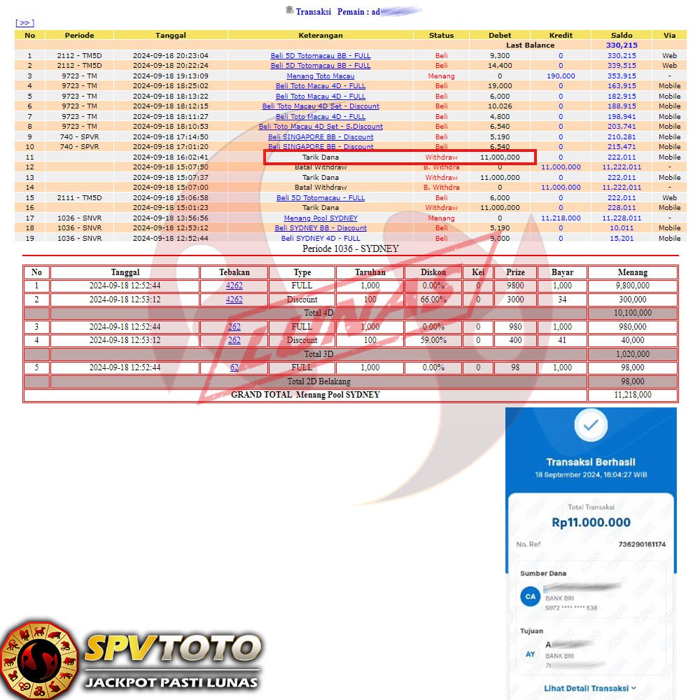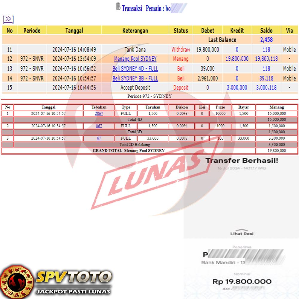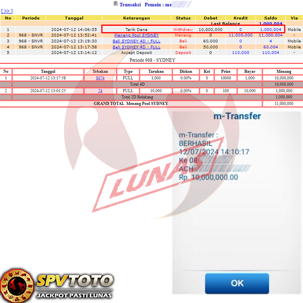 SELAMAT KEPADA MEMBER YANG MENDAPATKAN JACKPOT DI SPVTOTO