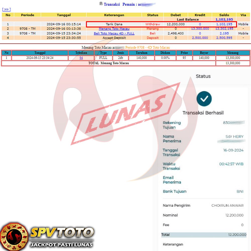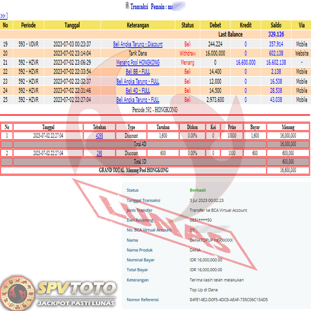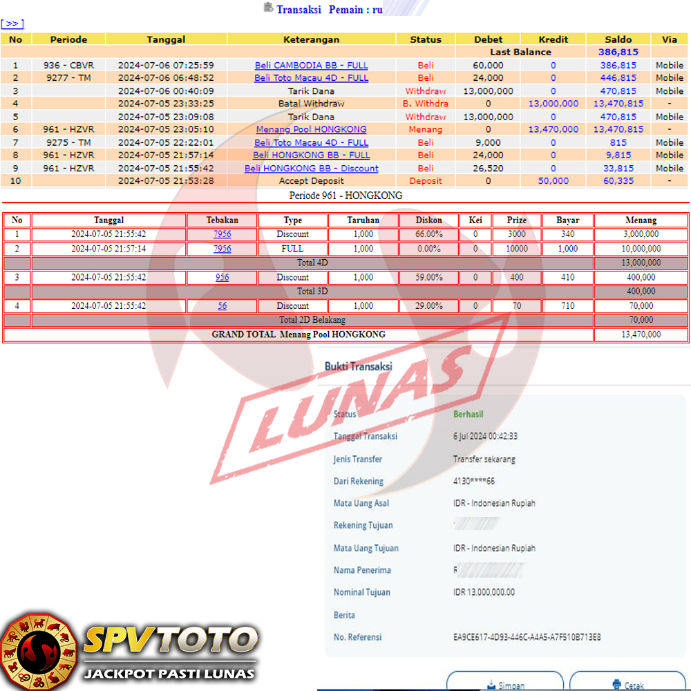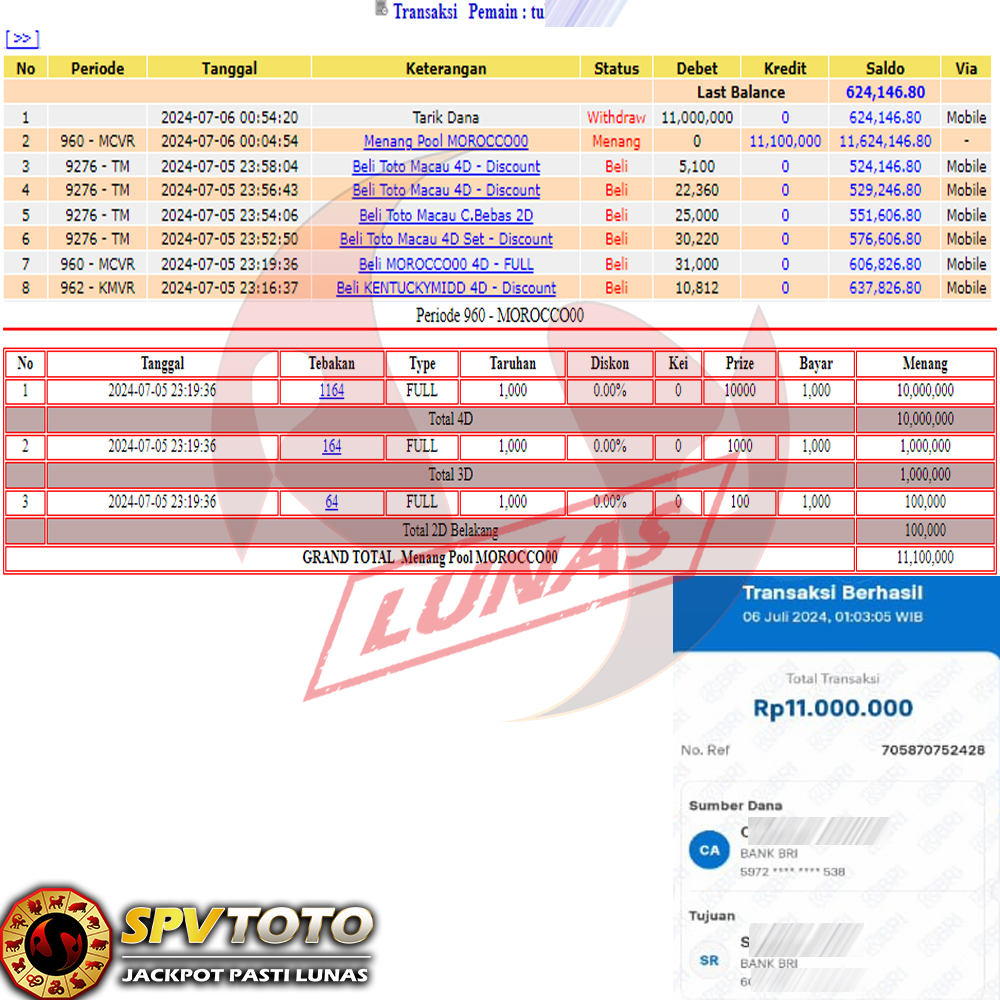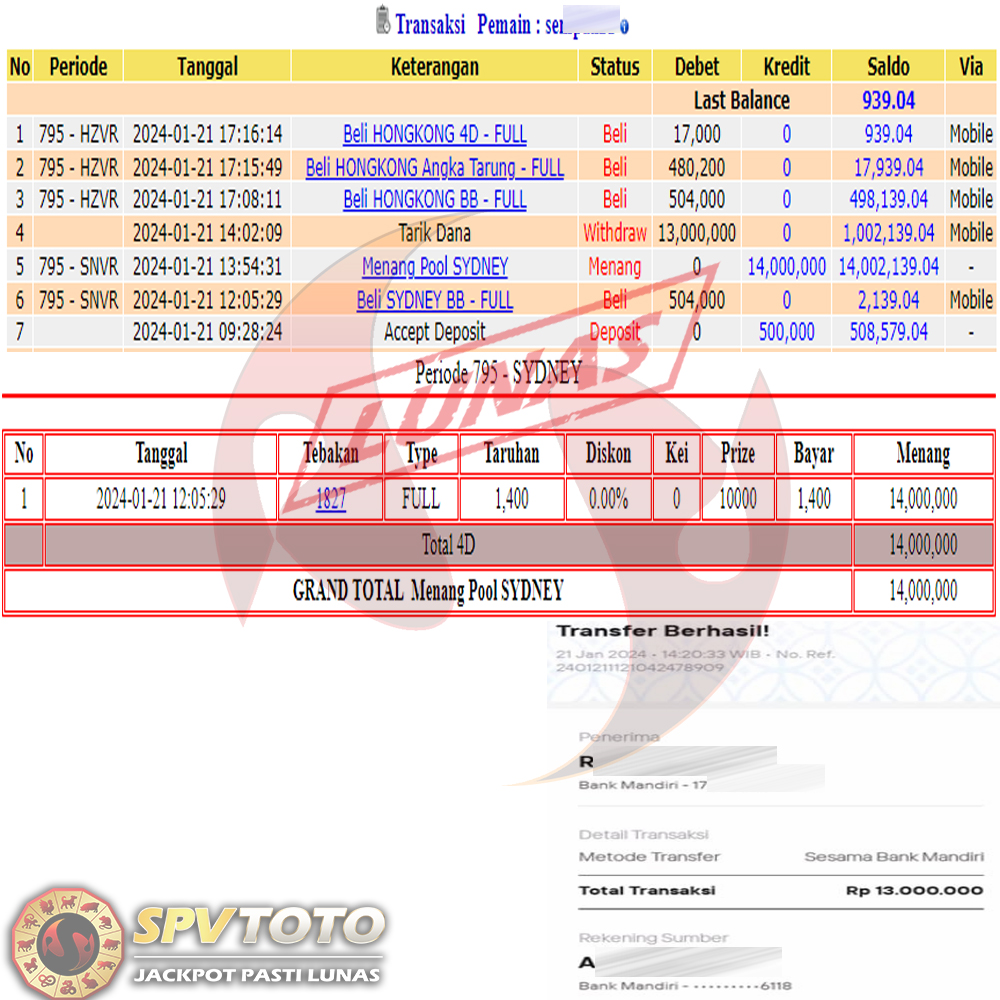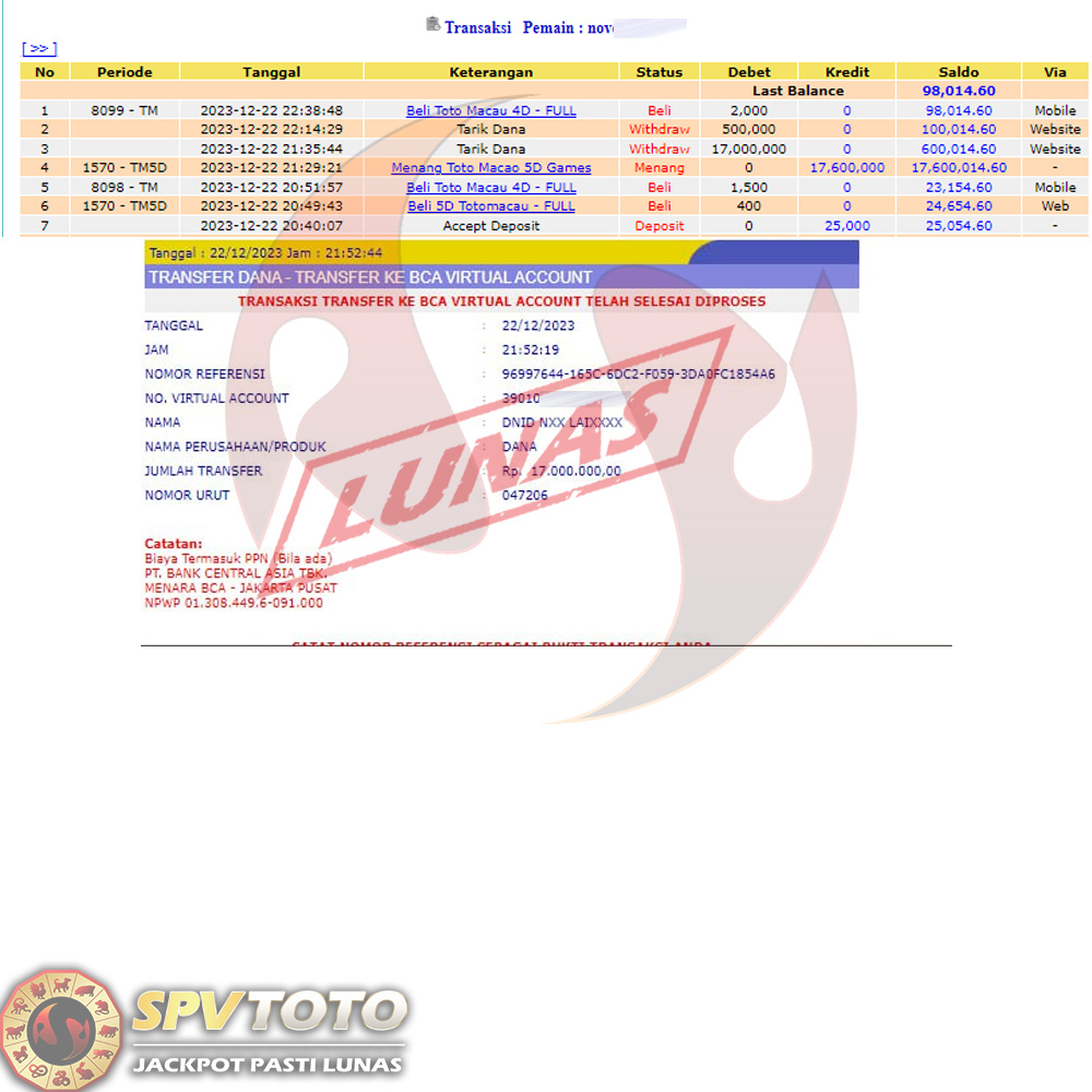 SELAMAT KEPADA MEMBER YANG MENDAPATKAN JACKPOT DI SPVTOTO
