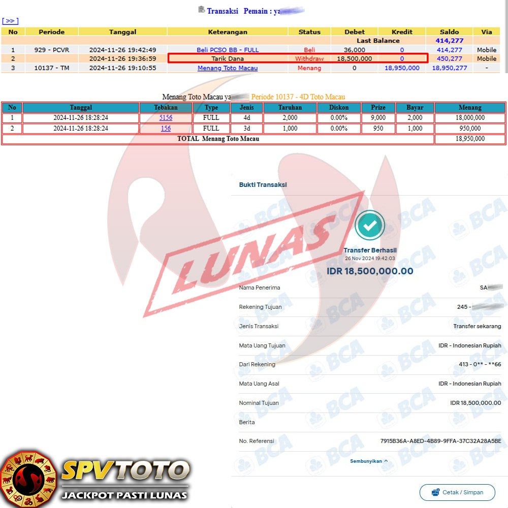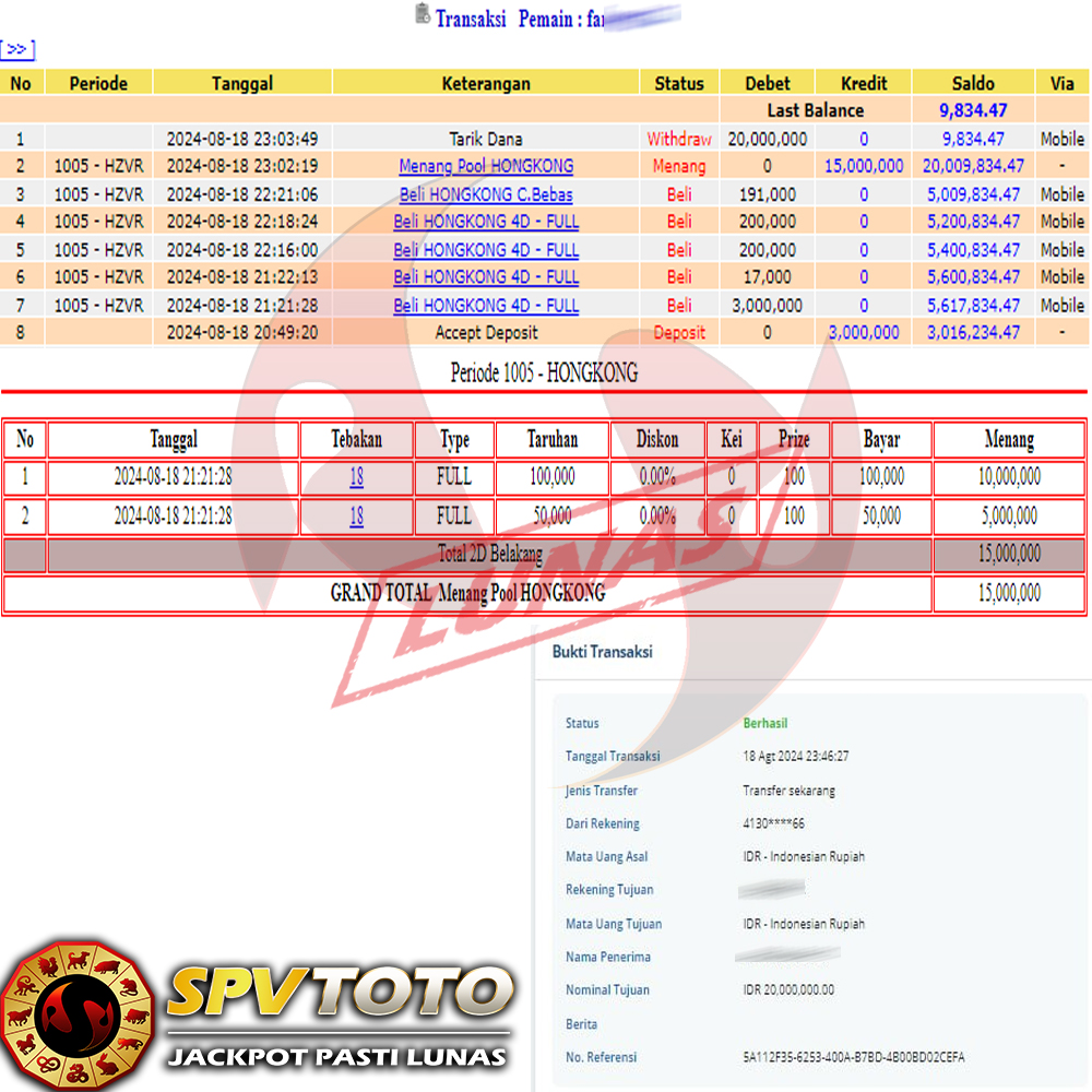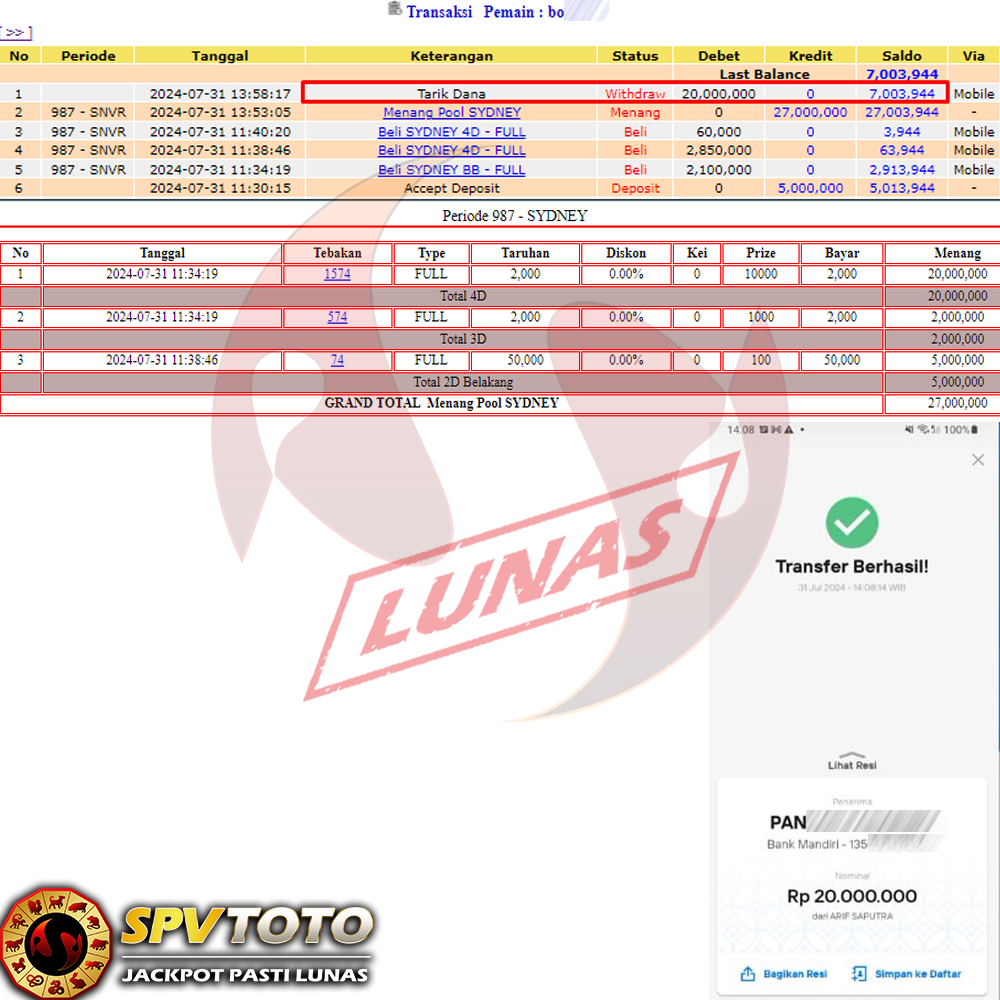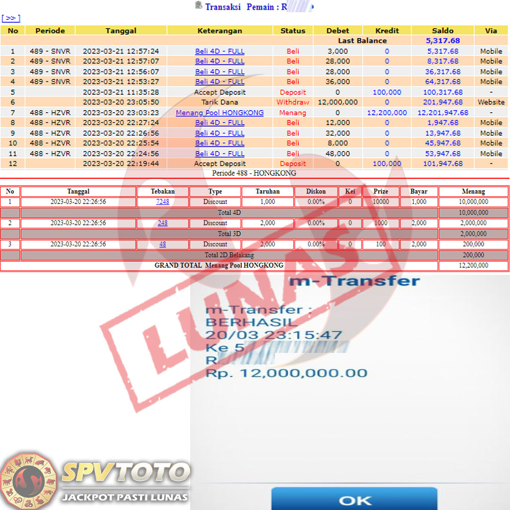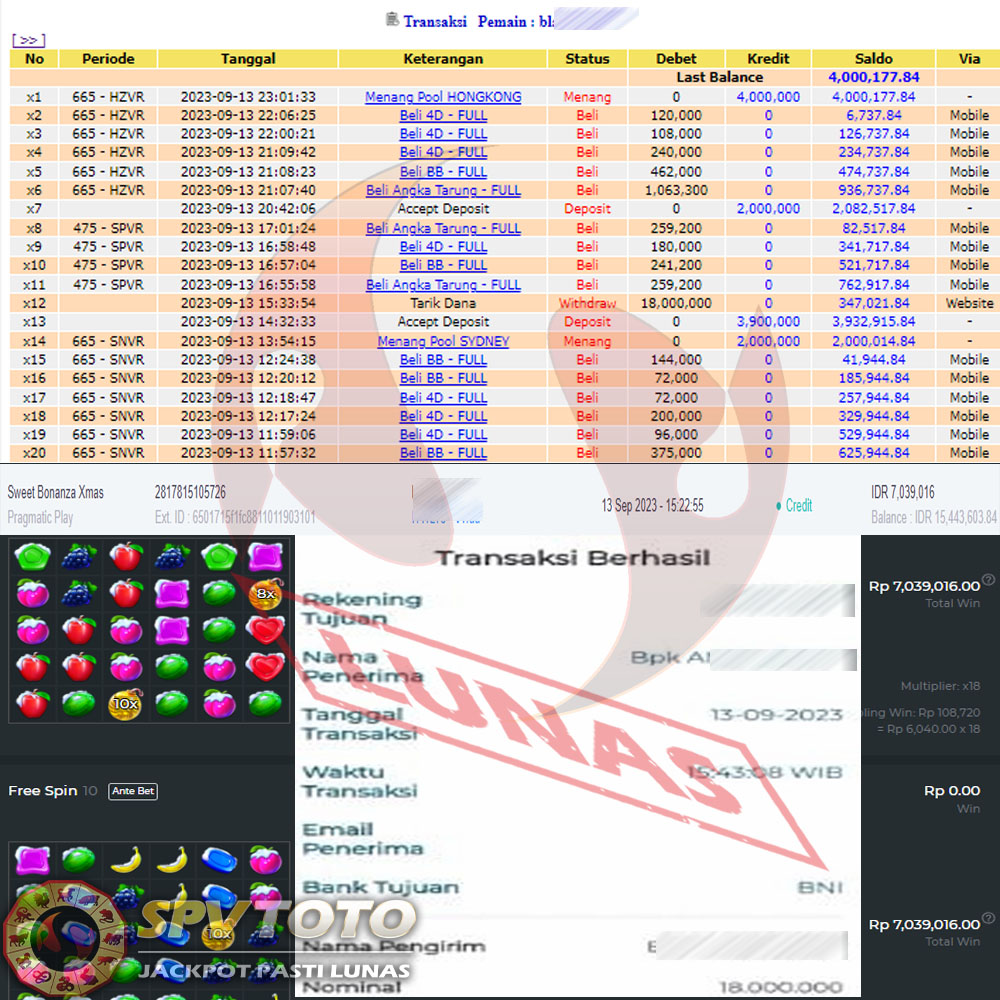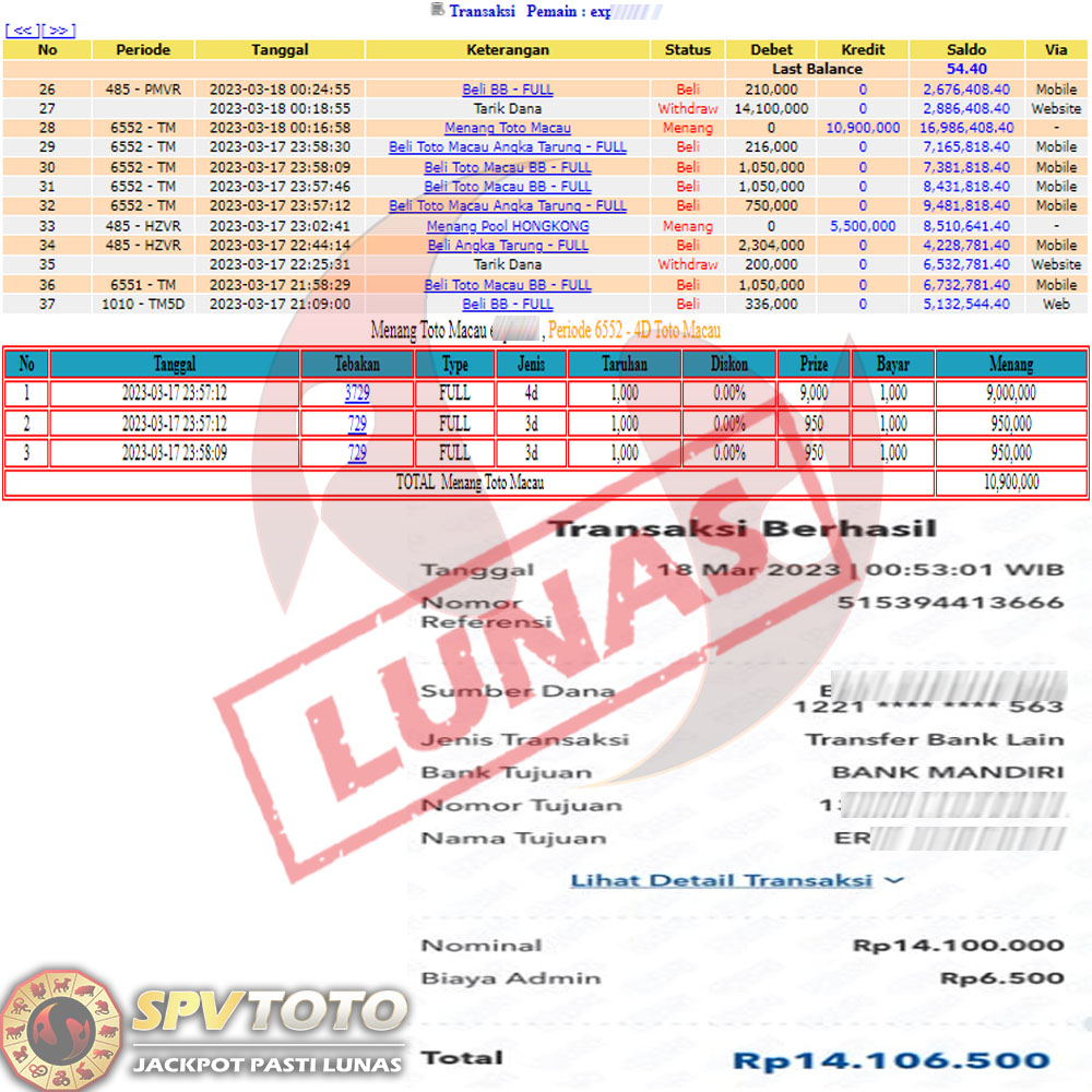 SELAMAT KEPADA MEMBER YANG MENDAPATKAN JACKPOT DI SPVTOTO