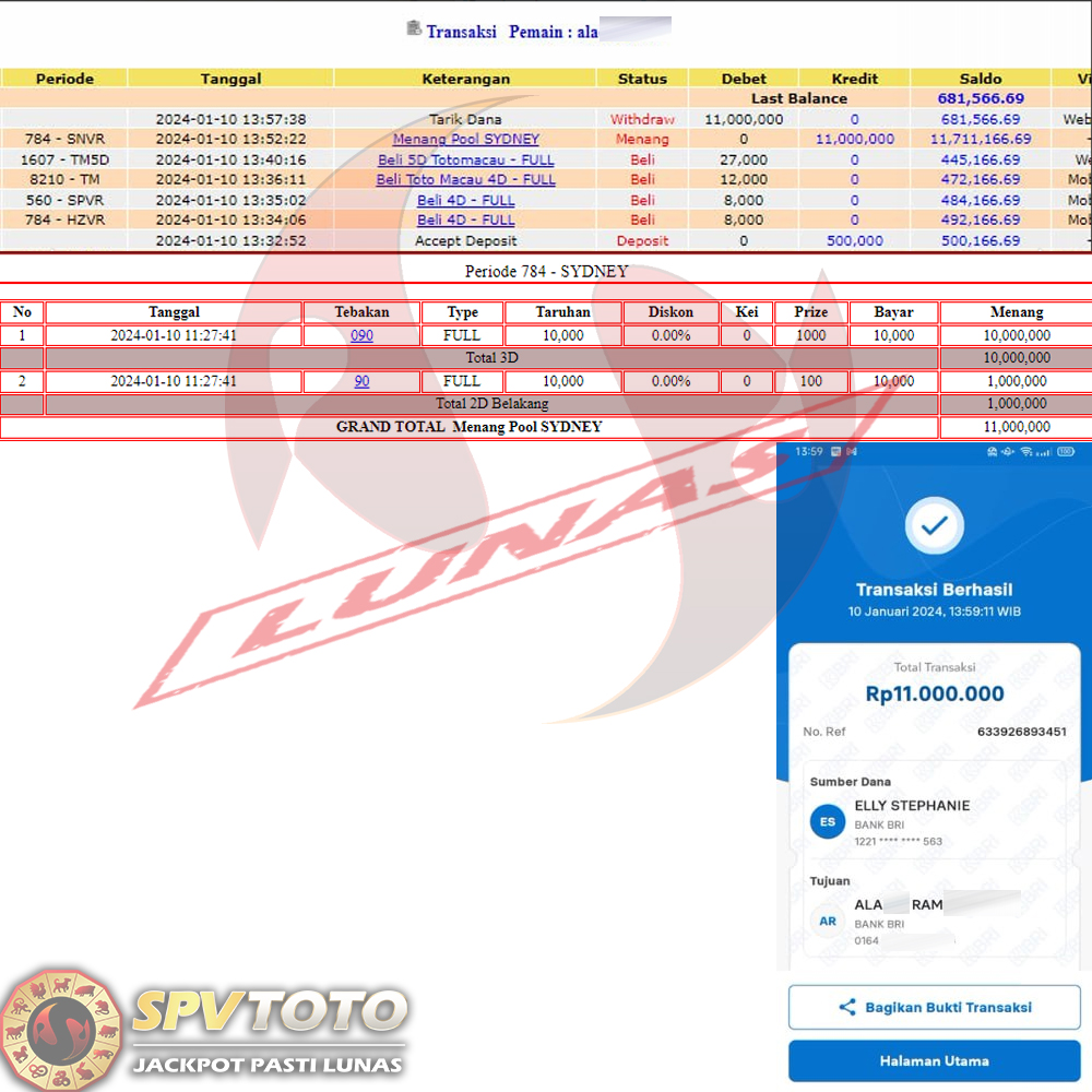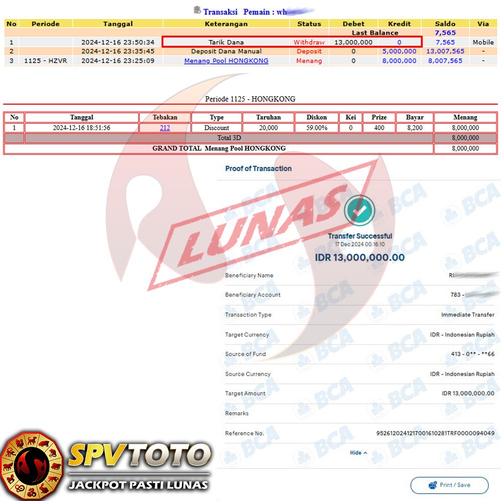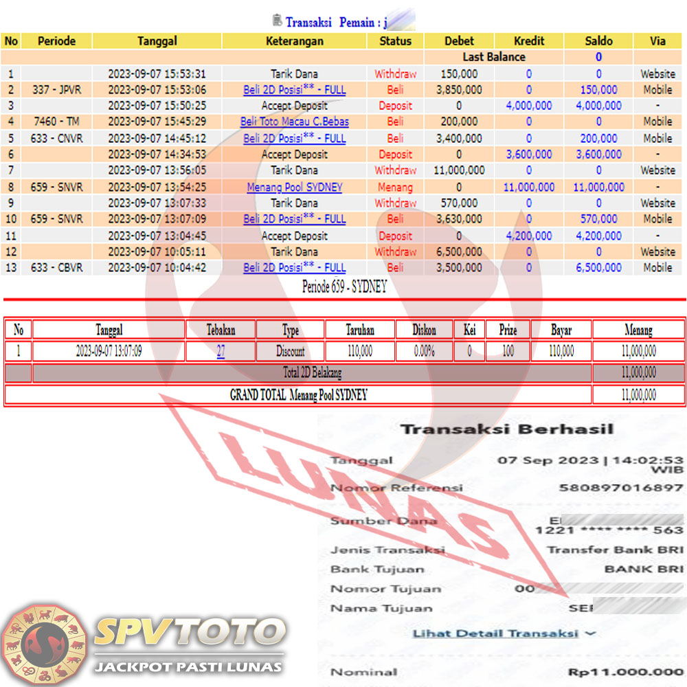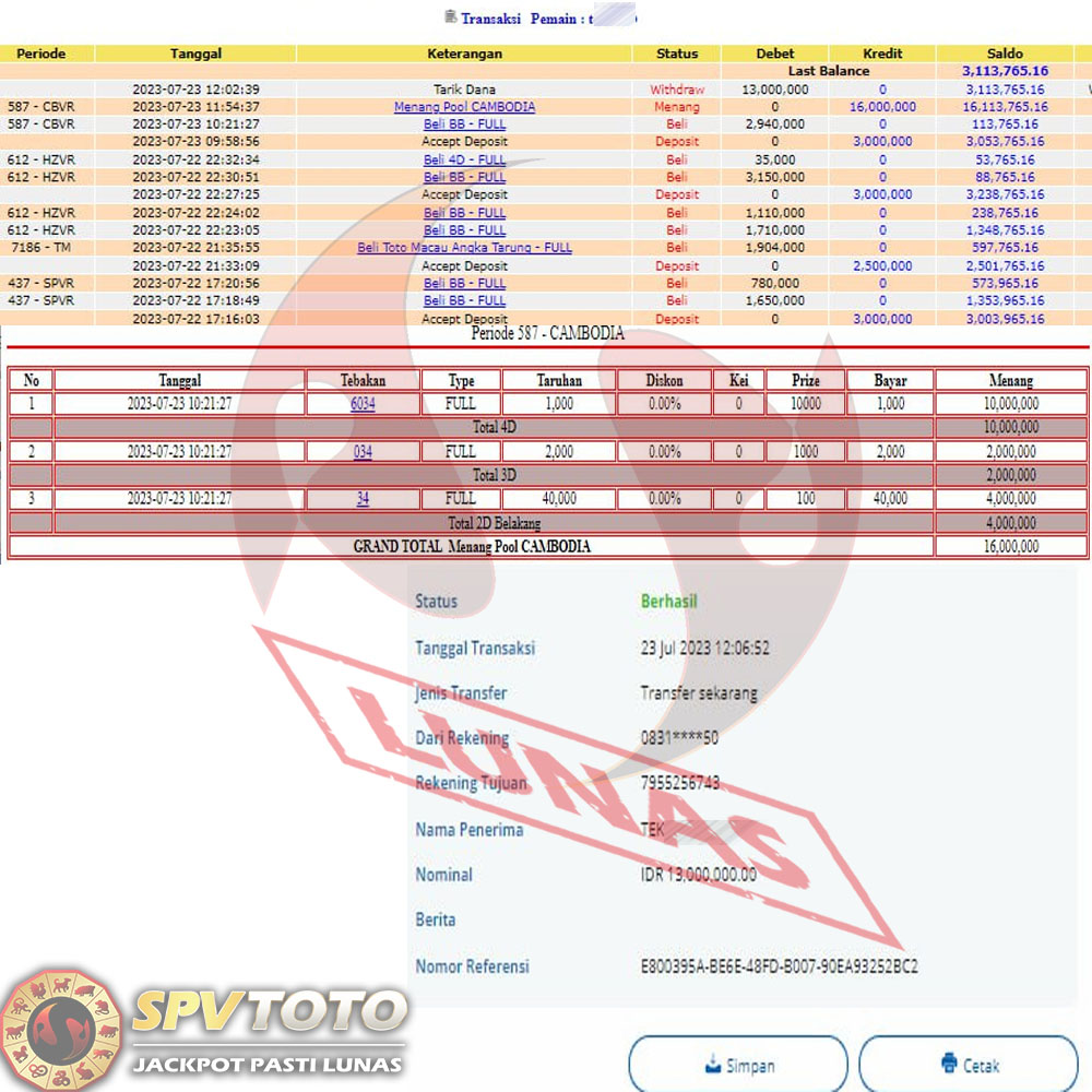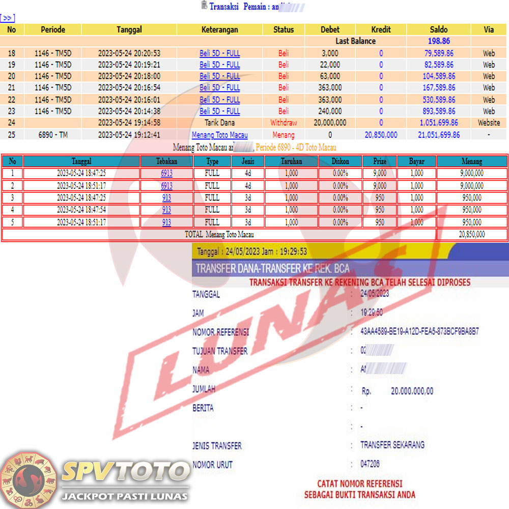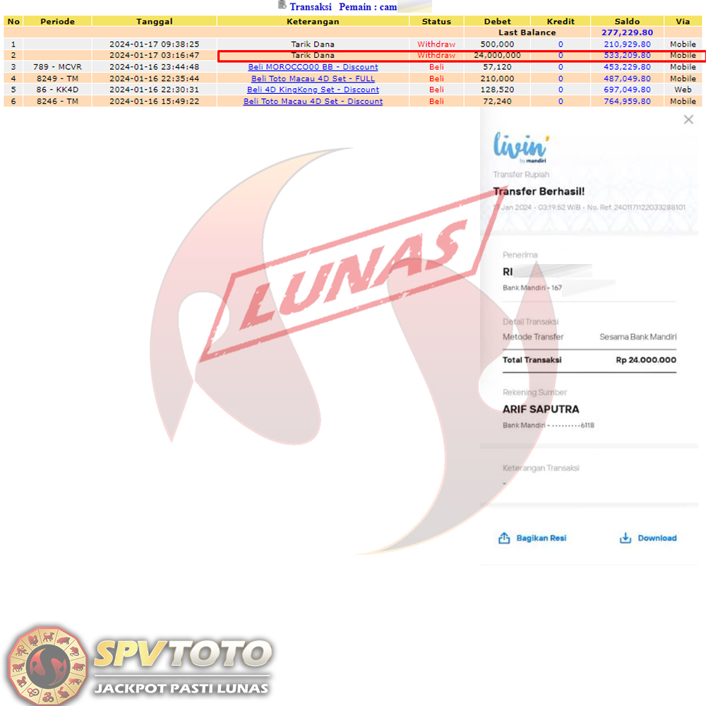 SELAMAT KEPADA MEMBER YANG MENDAPATKAN JACKPOT DI SPVTOTO