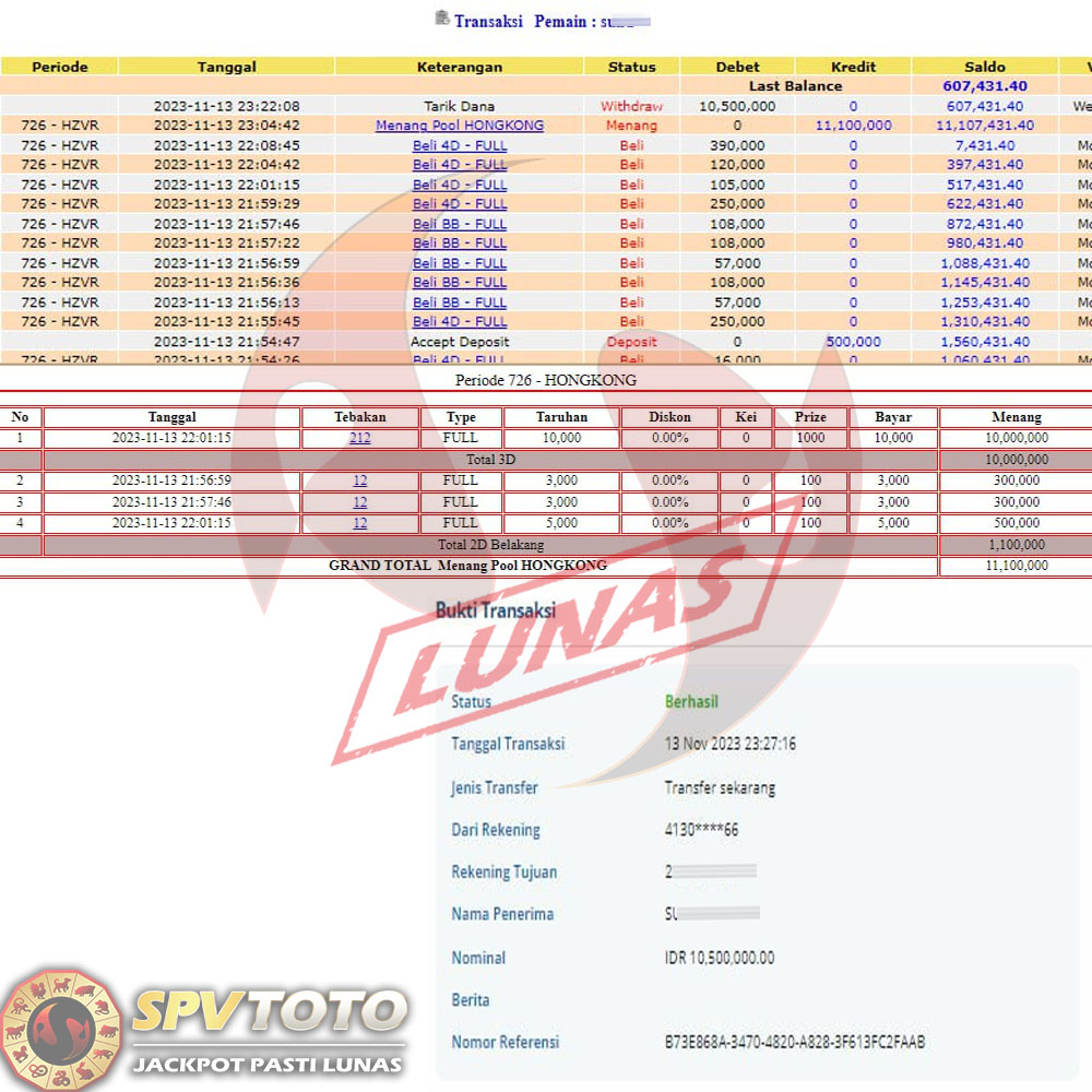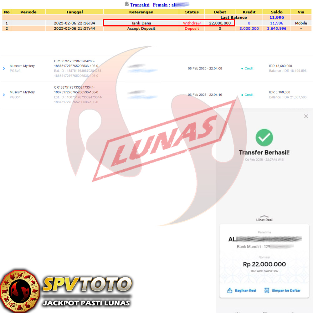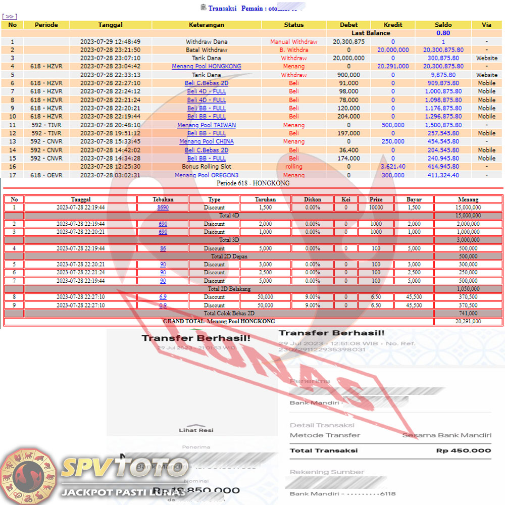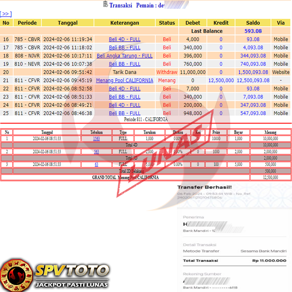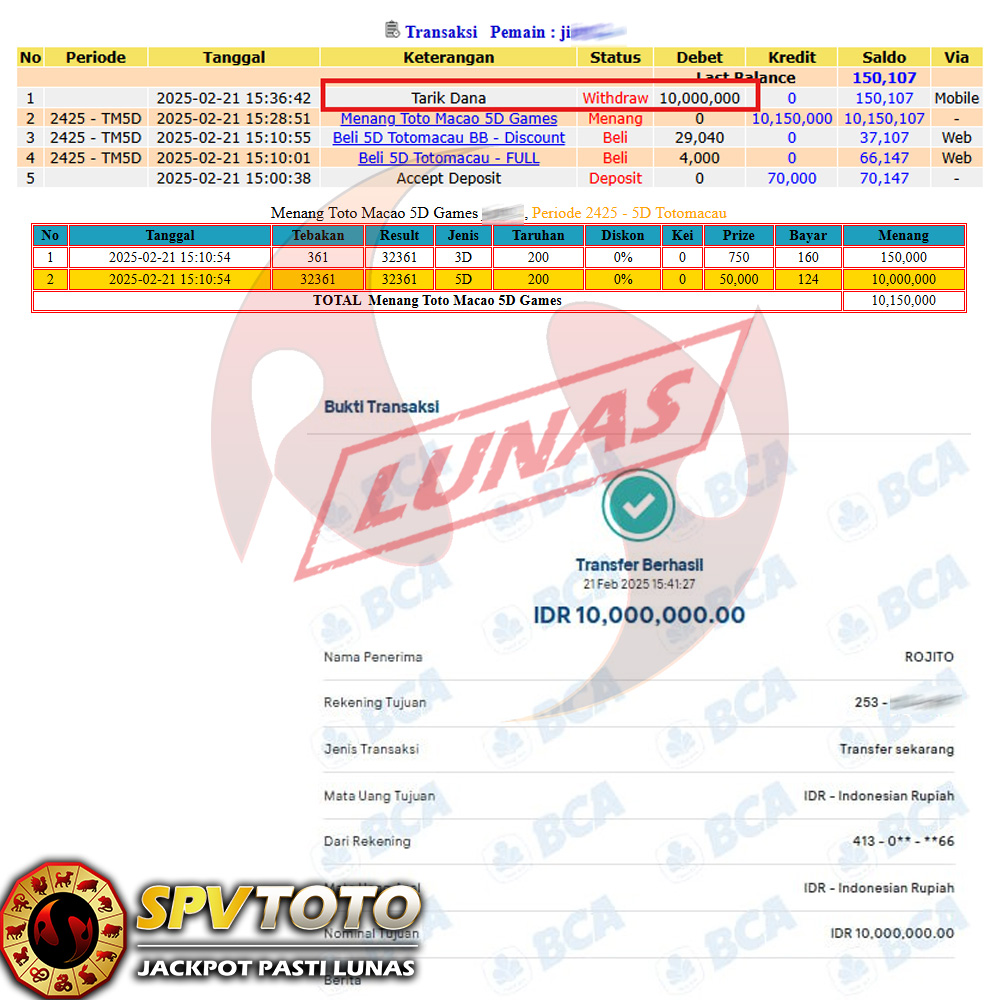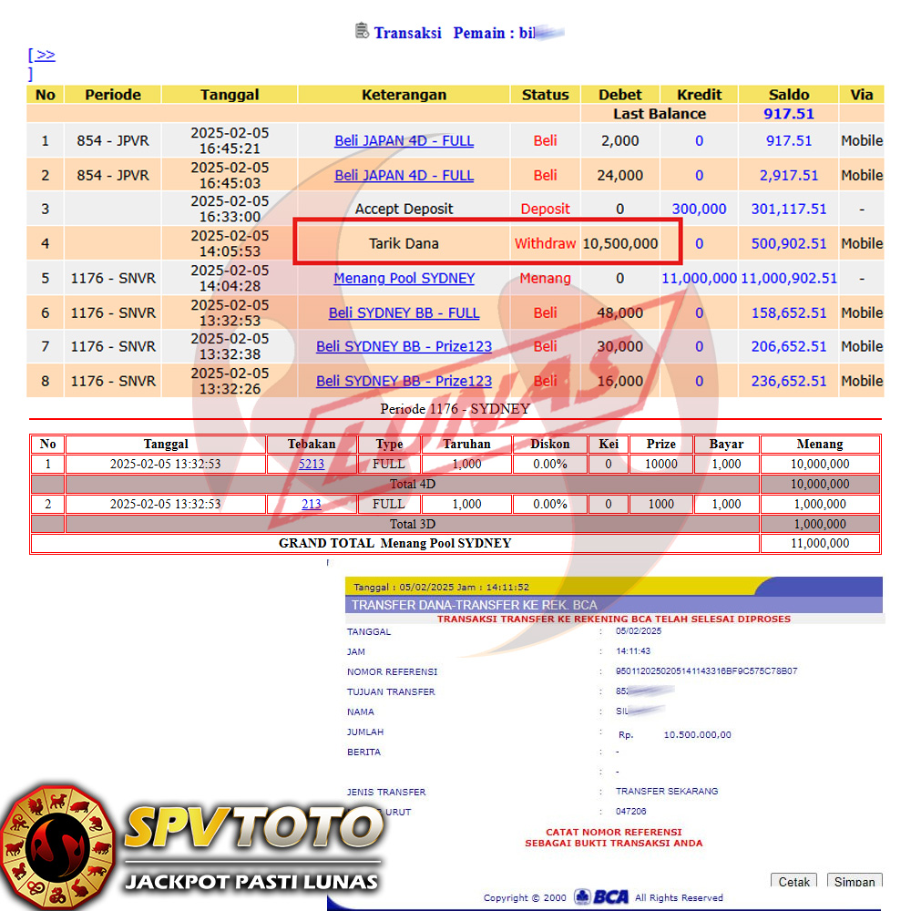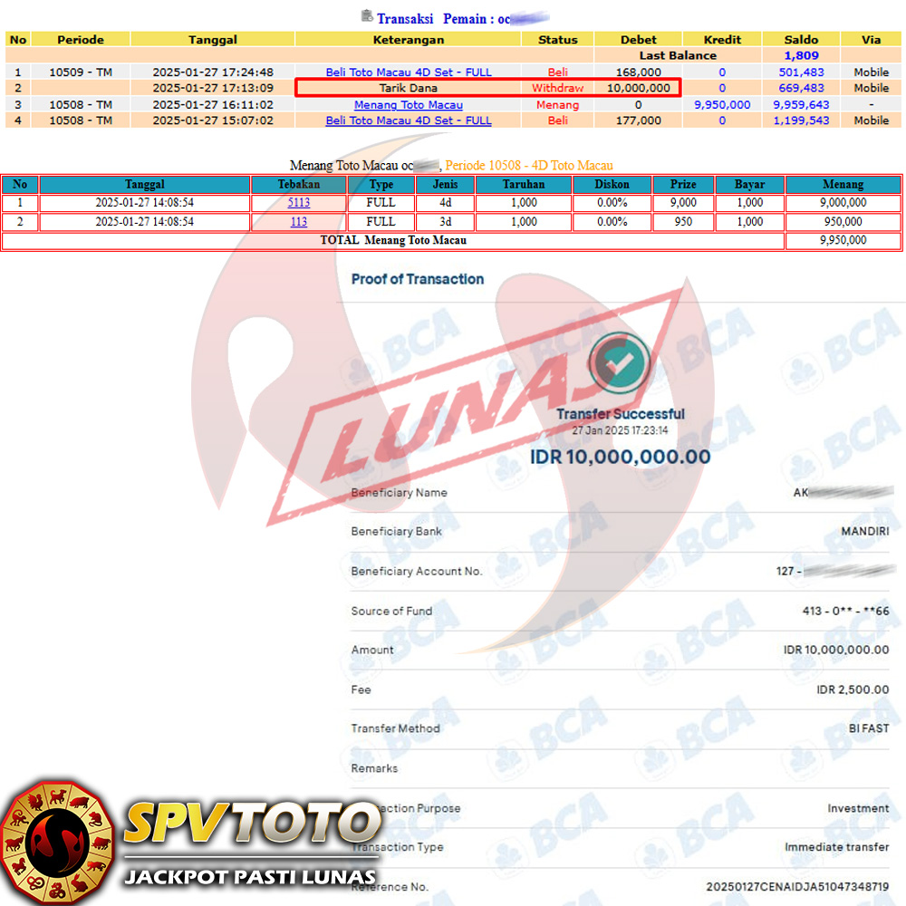 SELAMAT KEPADA MEMBER YANG MENDAPATKAN JACKPOT DI SPVTOTO