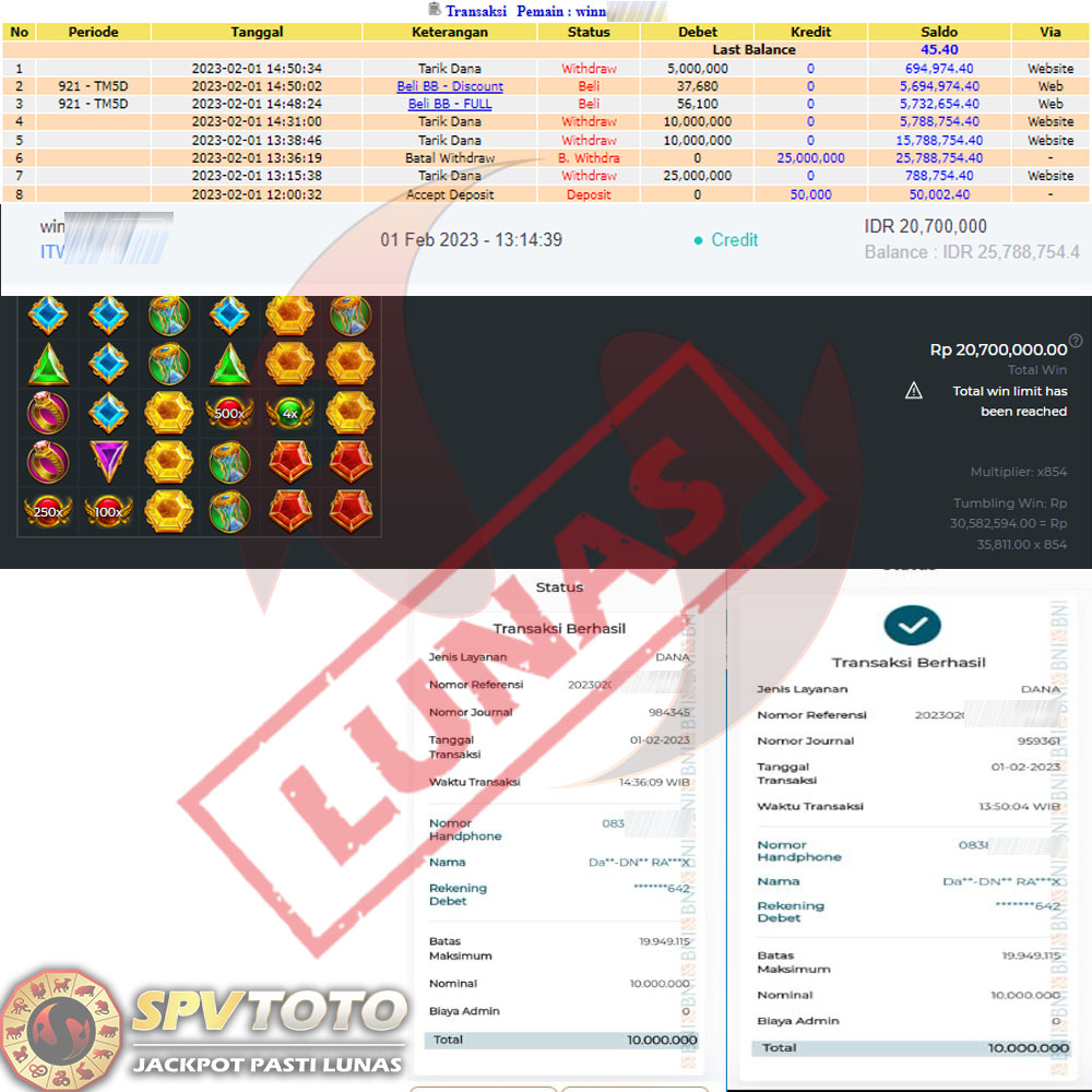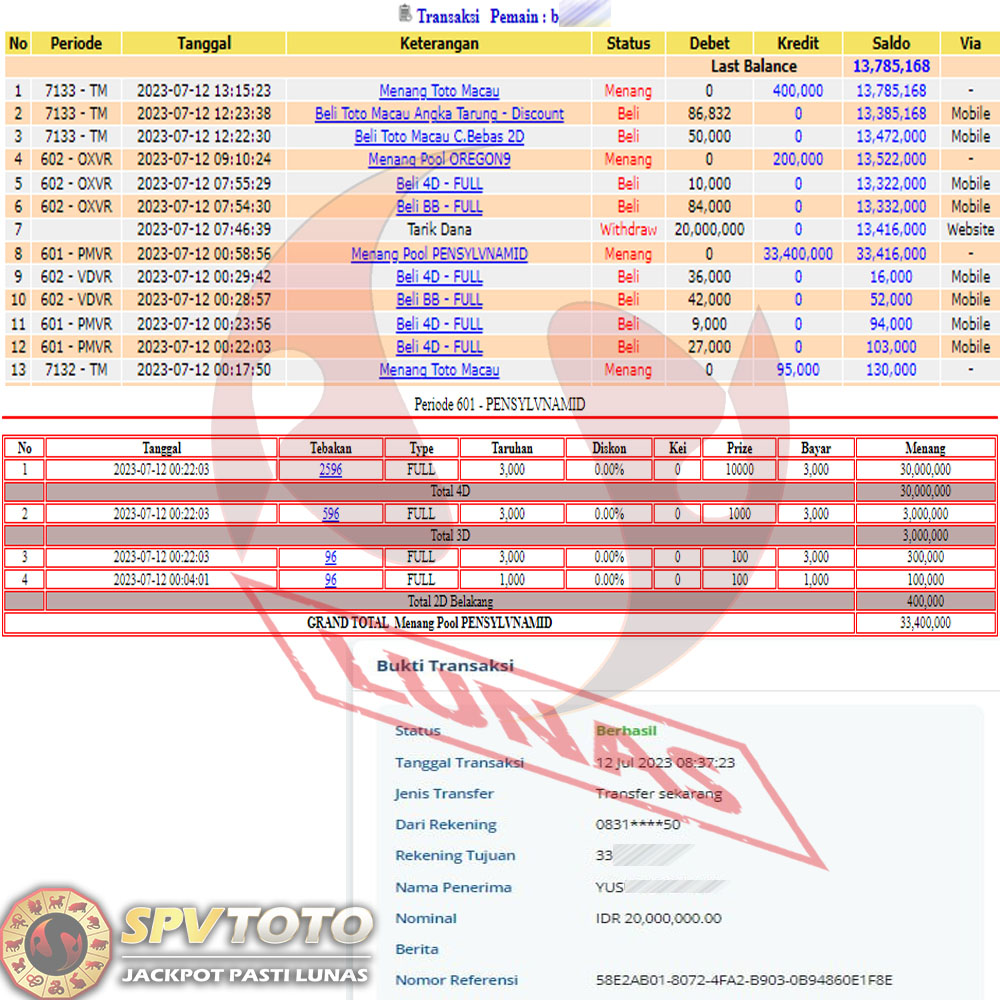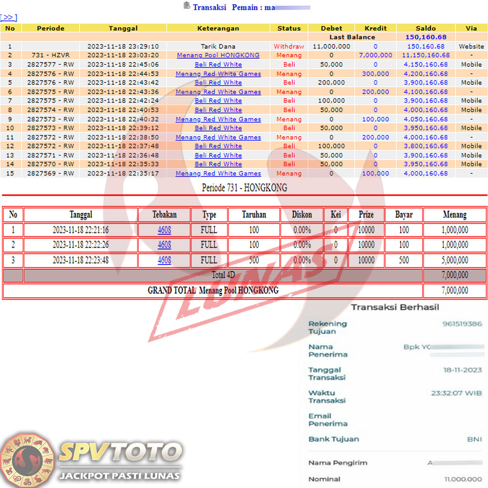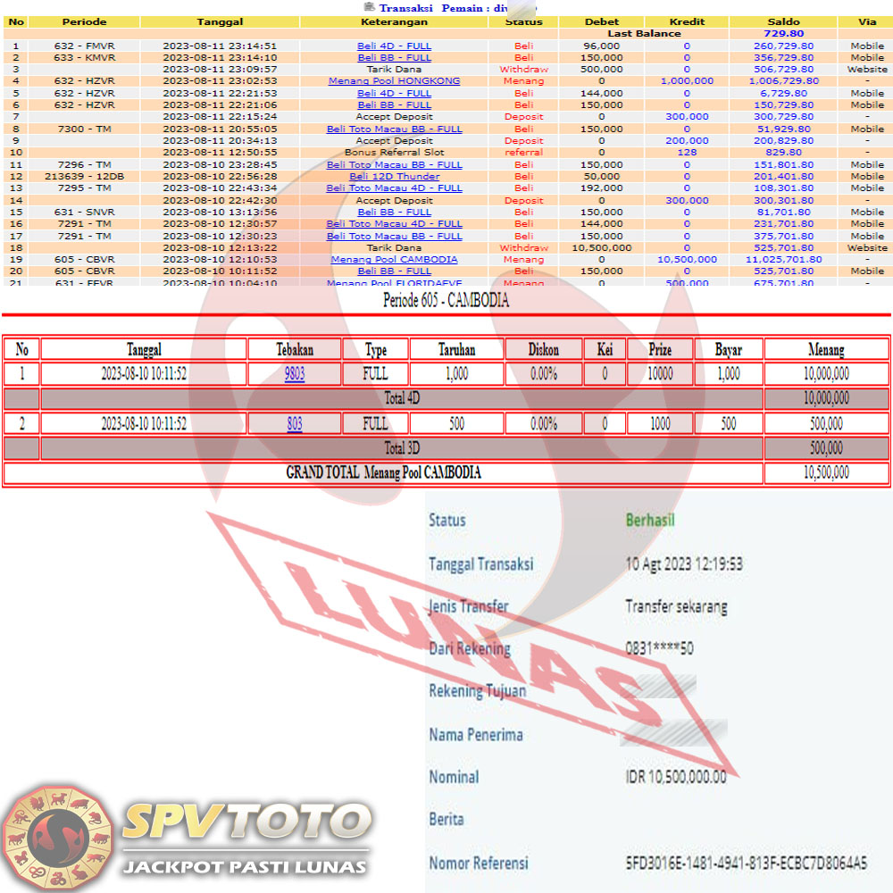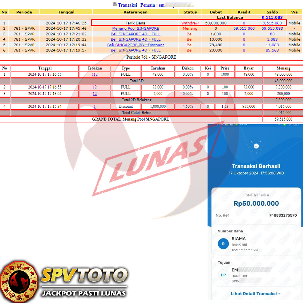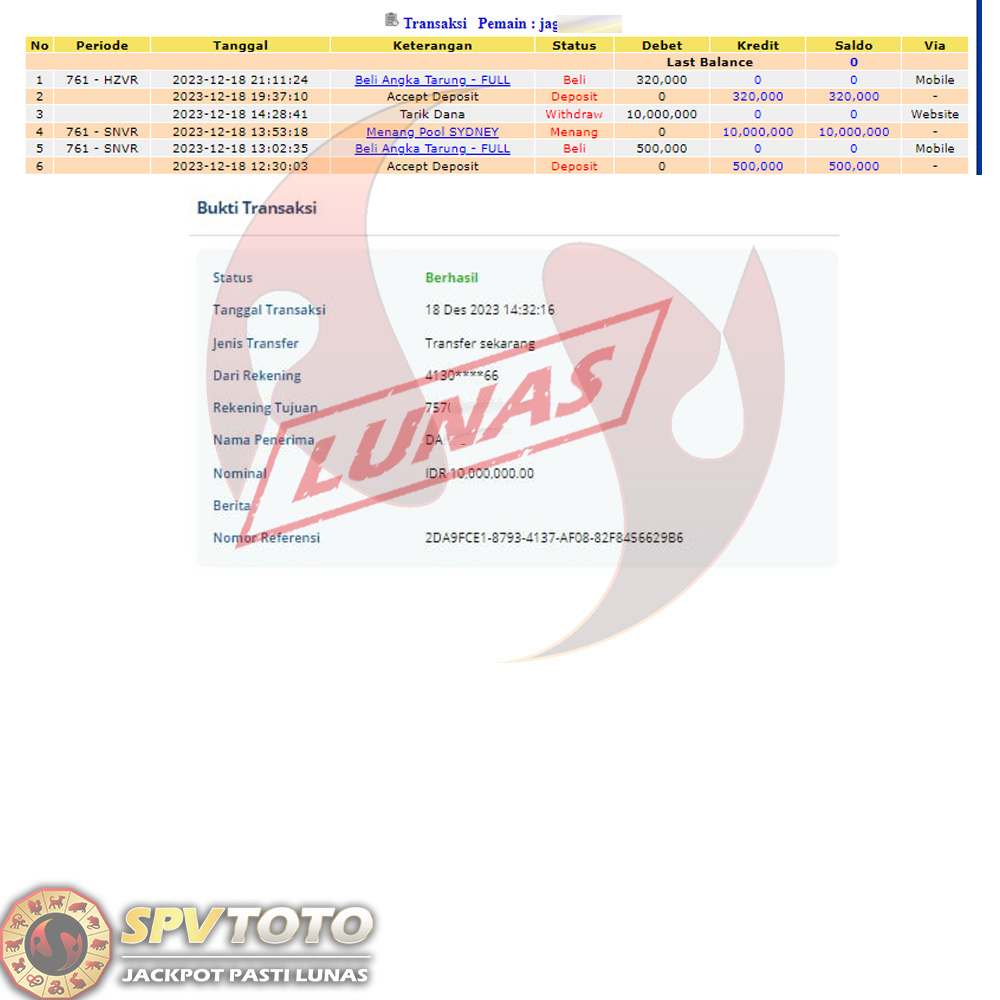 SELAMAT KEPADA MEMBER YANG MENDAPATKAN JACKPOT DI SPVTOTO