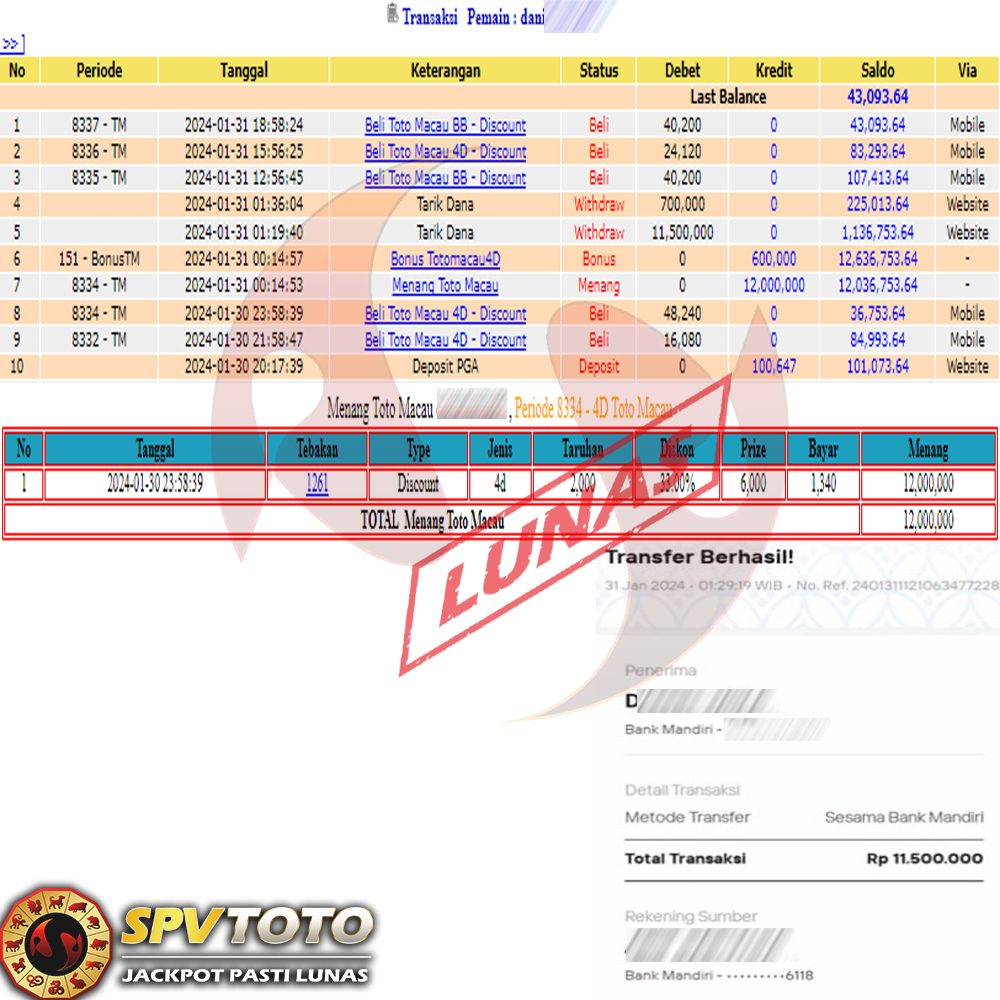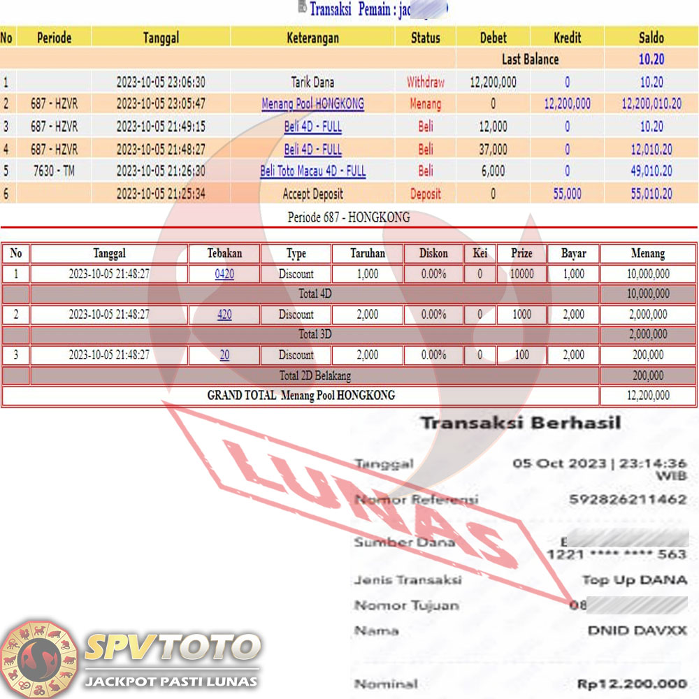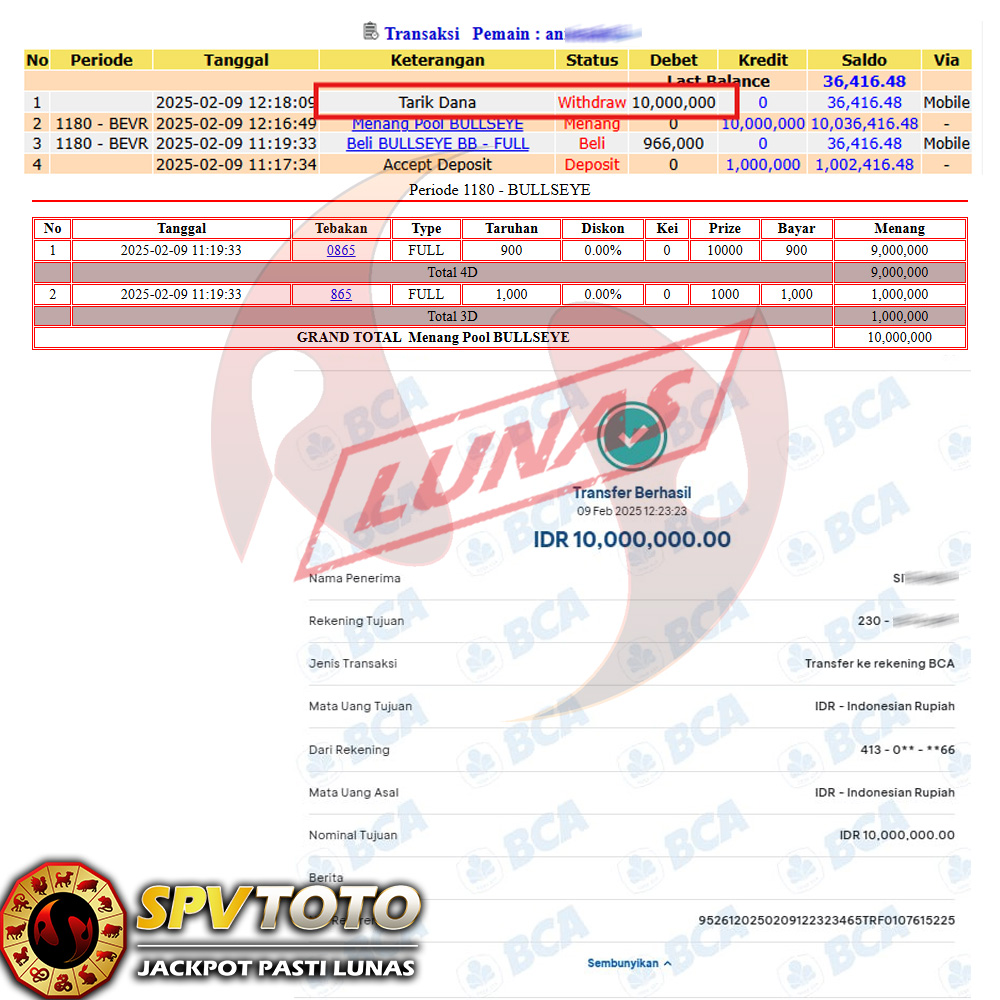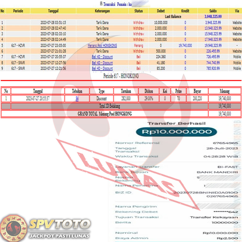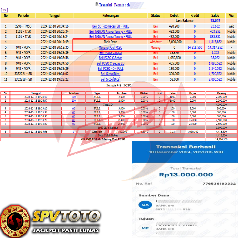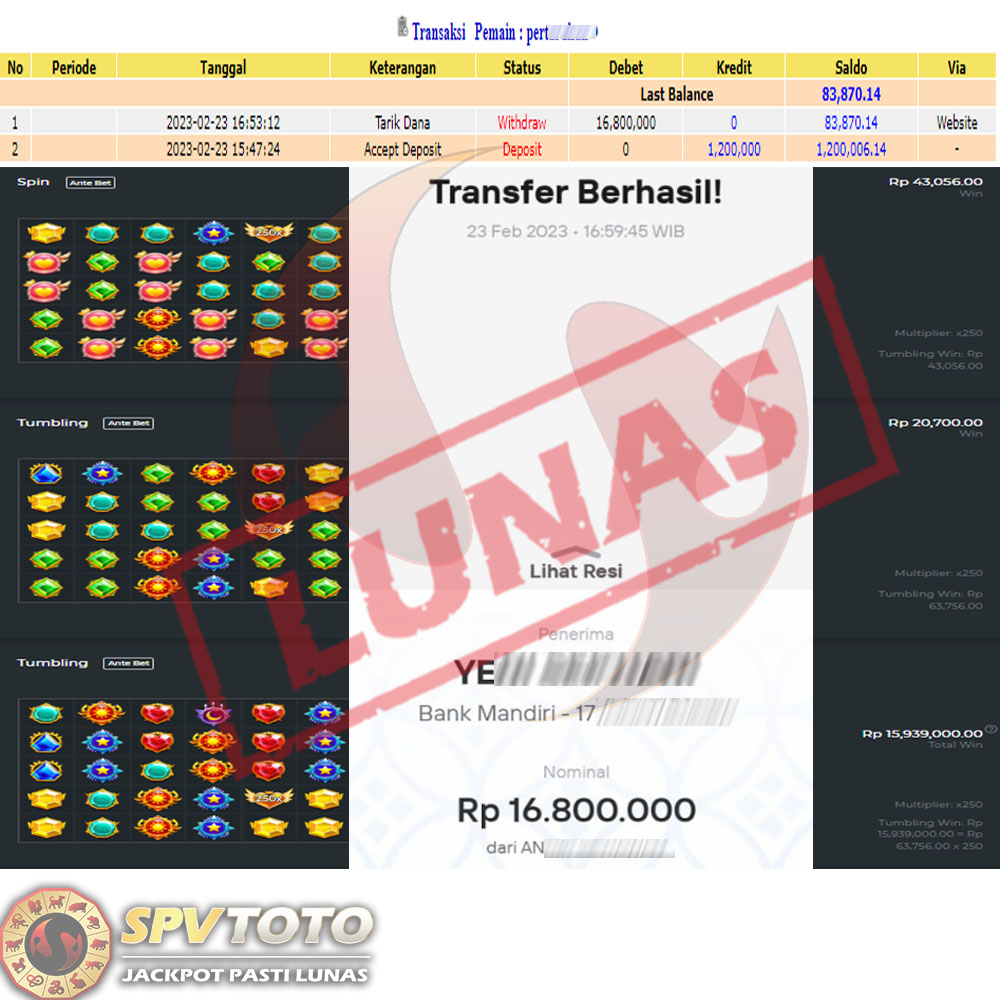 SELAMAT KEPADA MEMBER YANG MENDAPATKAN JACKPOT DI SPVTOTO