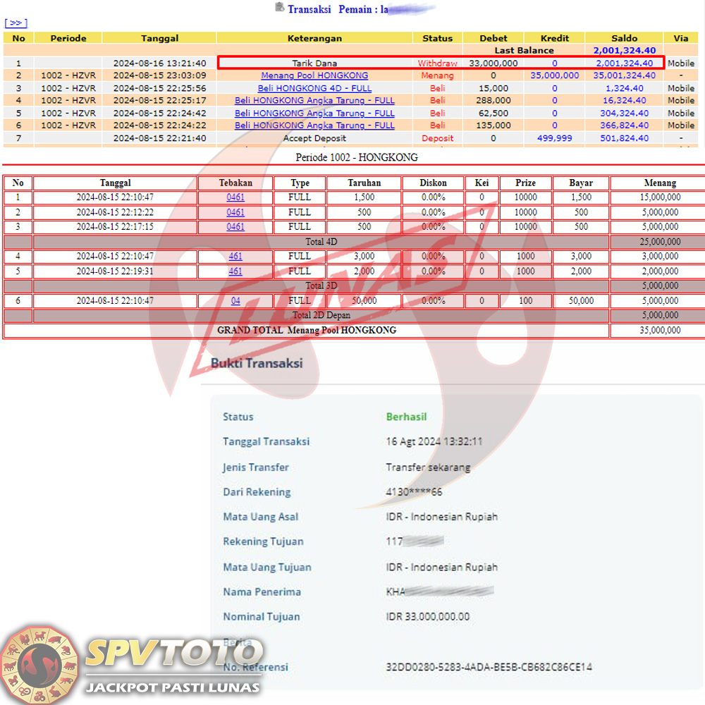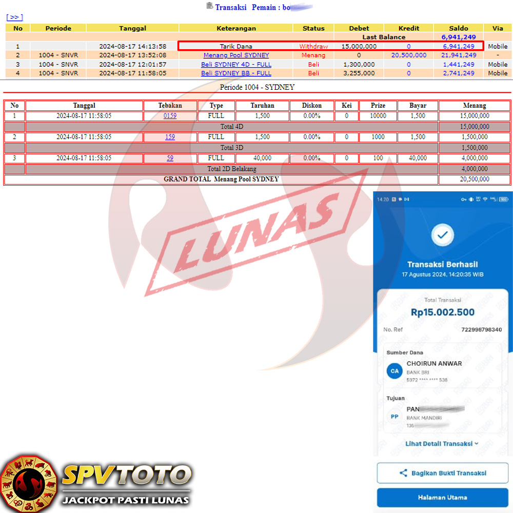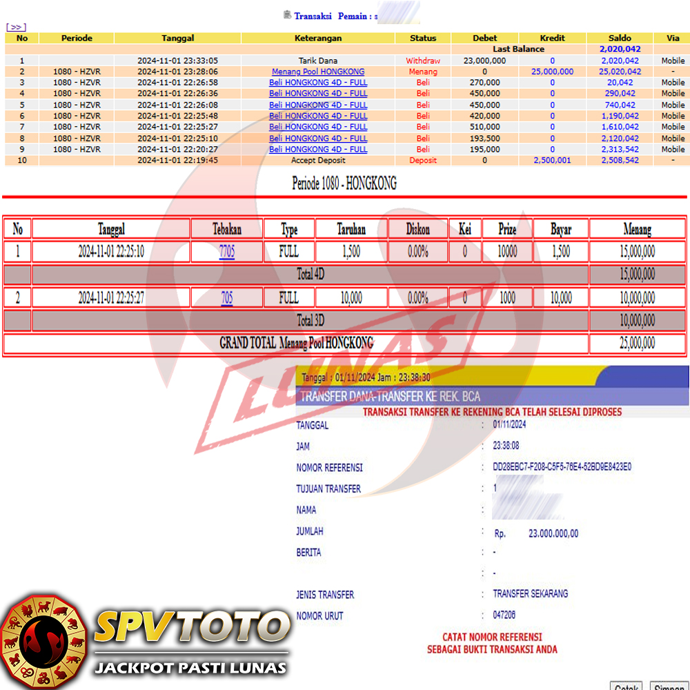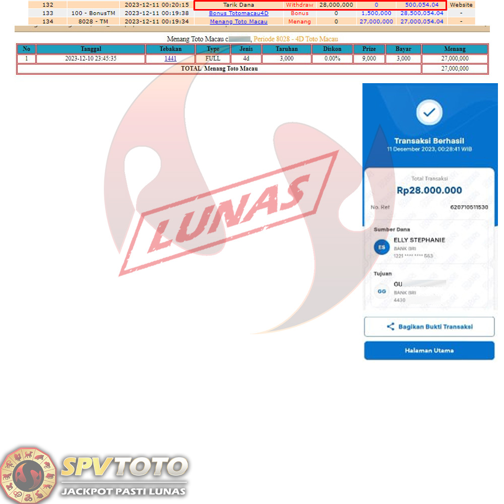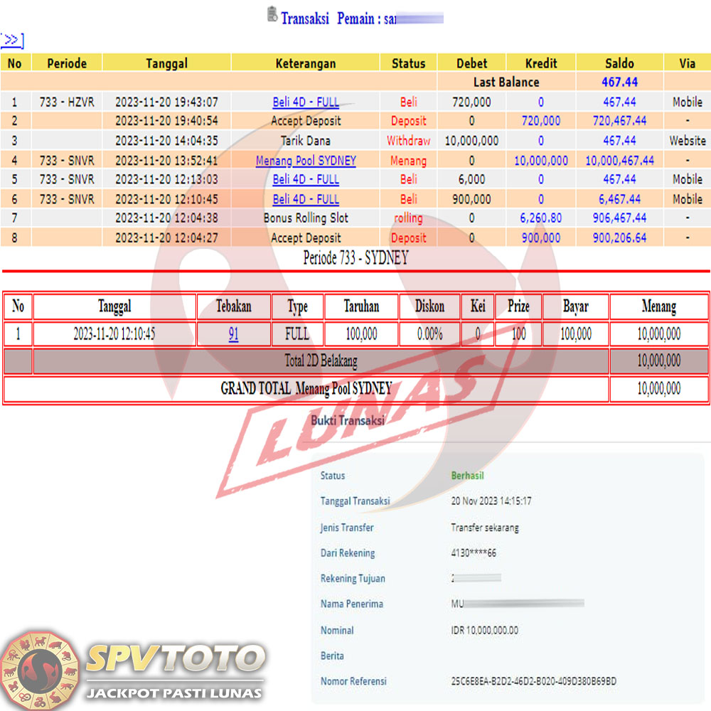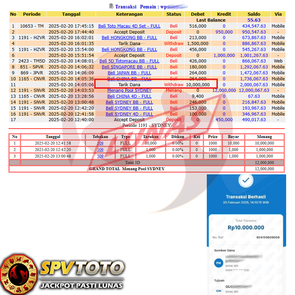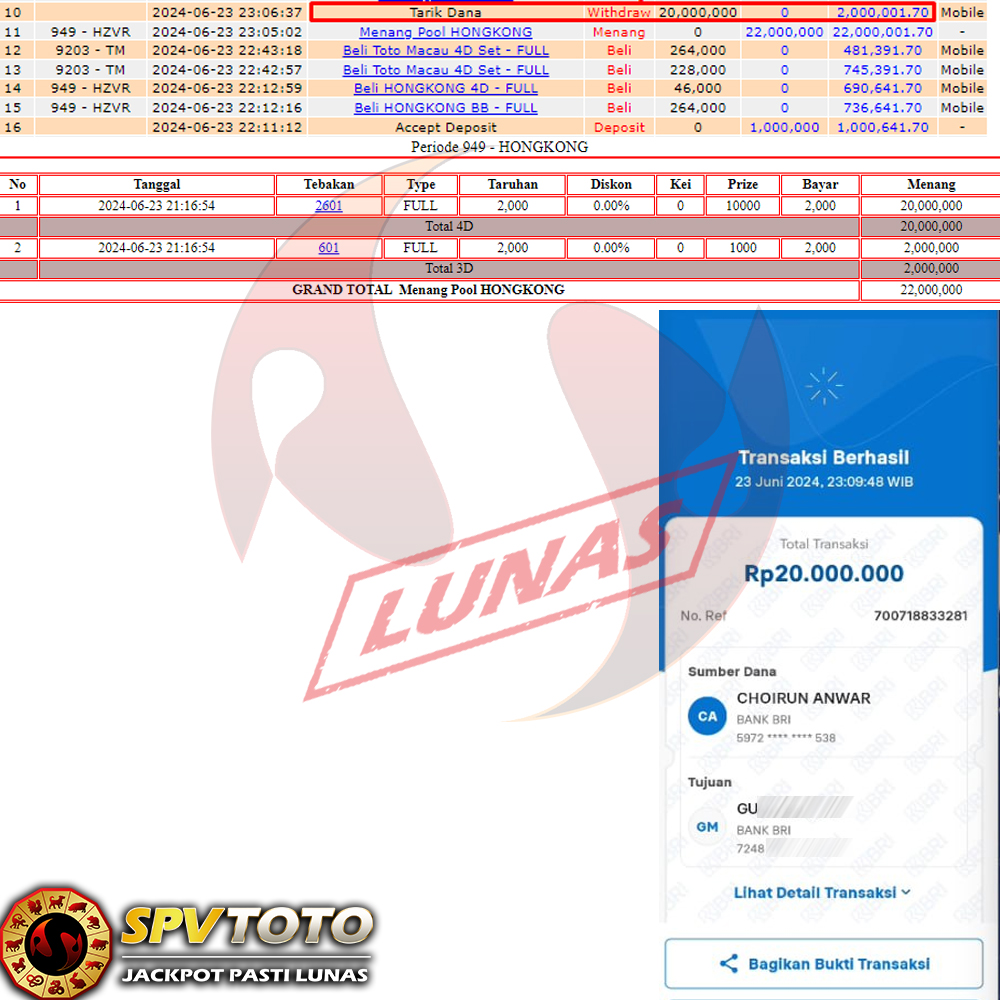 SELAMAT KEPADA MEMBER YANG MENDAPATKAN JACKPOT DI SPVTOTO