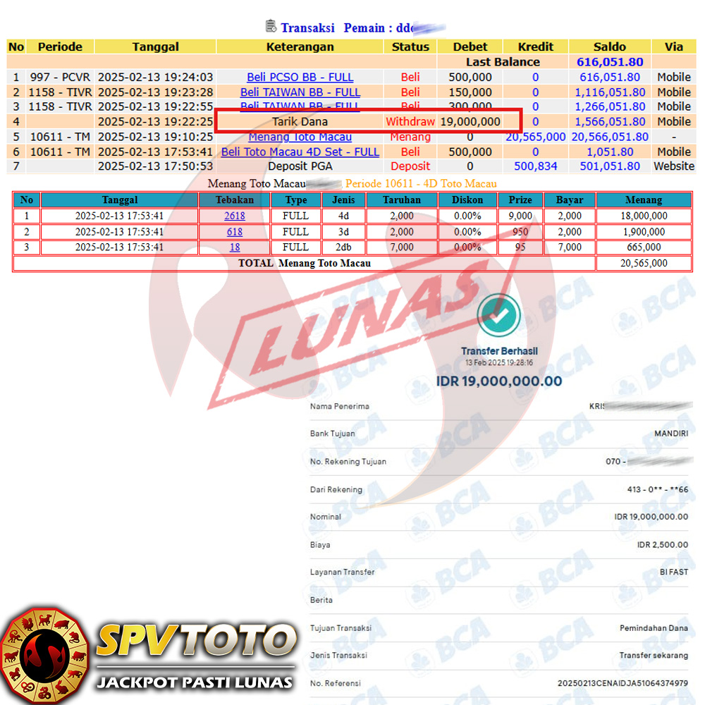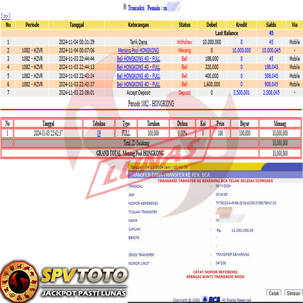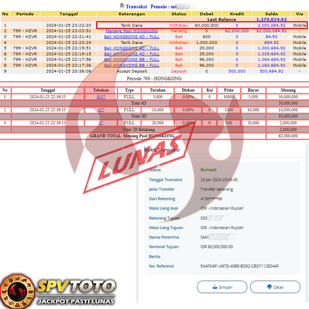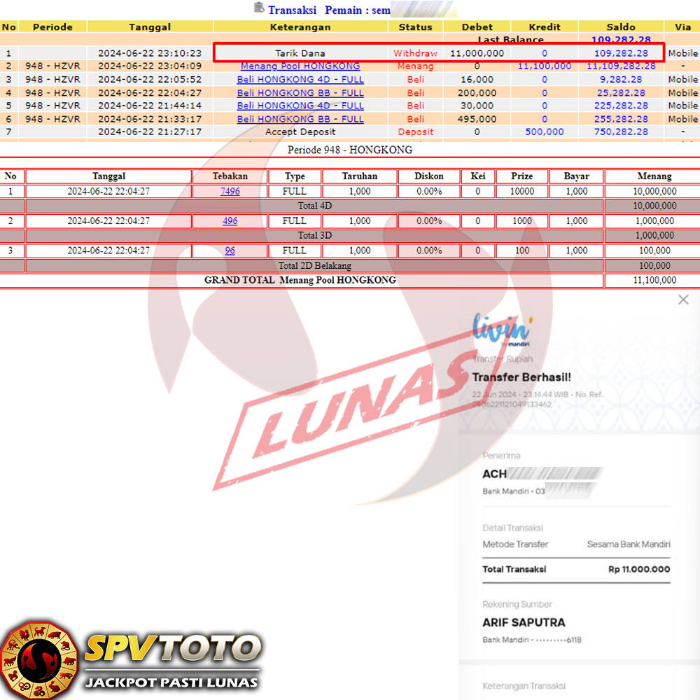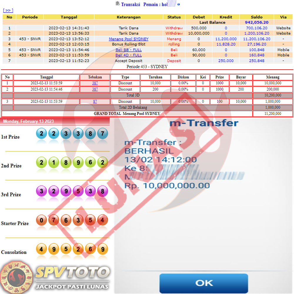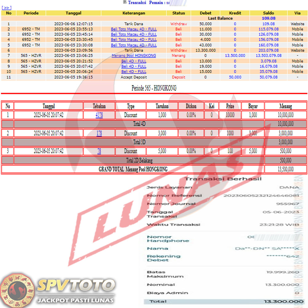 SELAMAT KEPADA MEMBER YANG MENDAPATKAN JACKPOT DI SPVTOTO