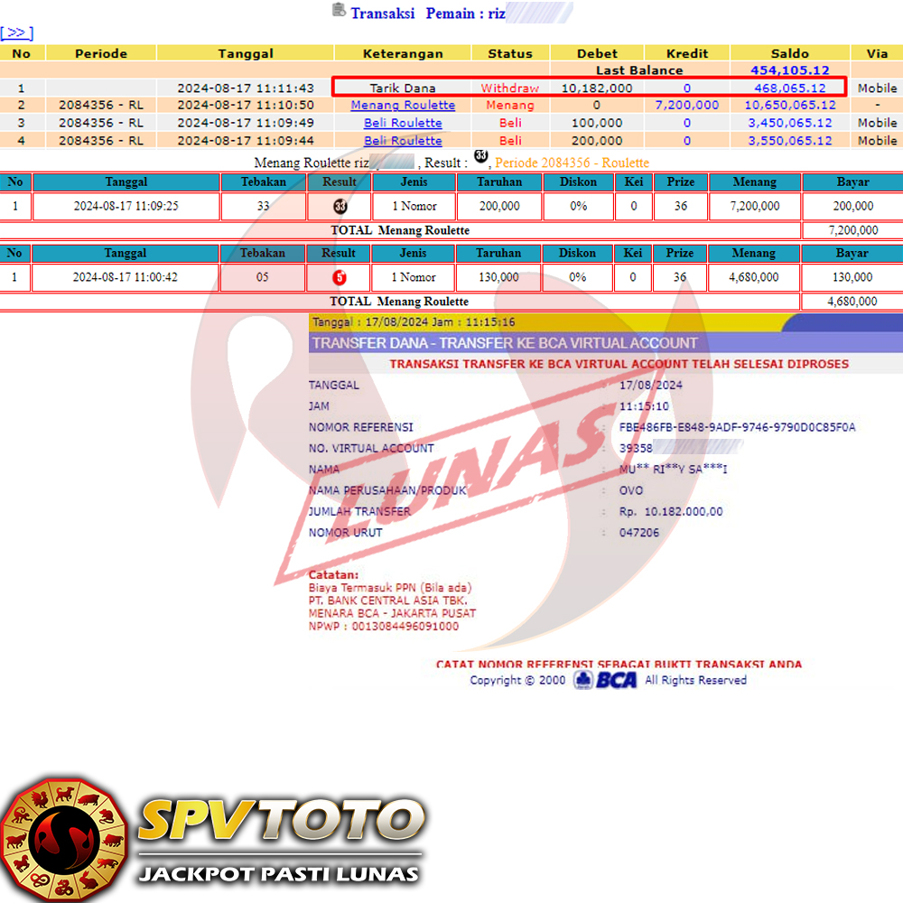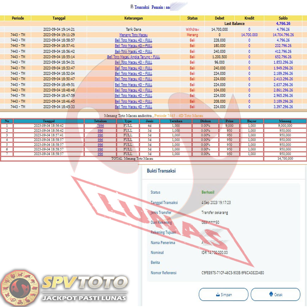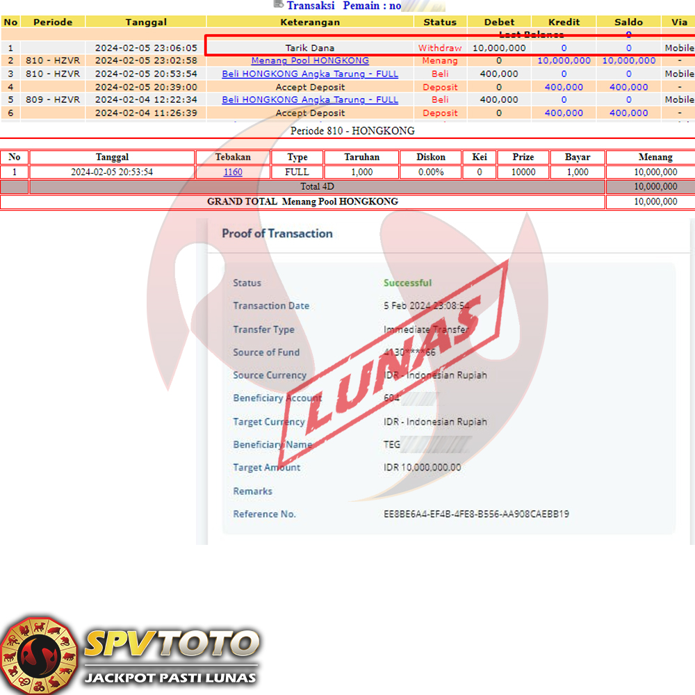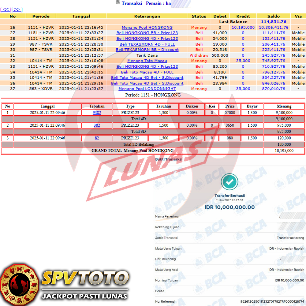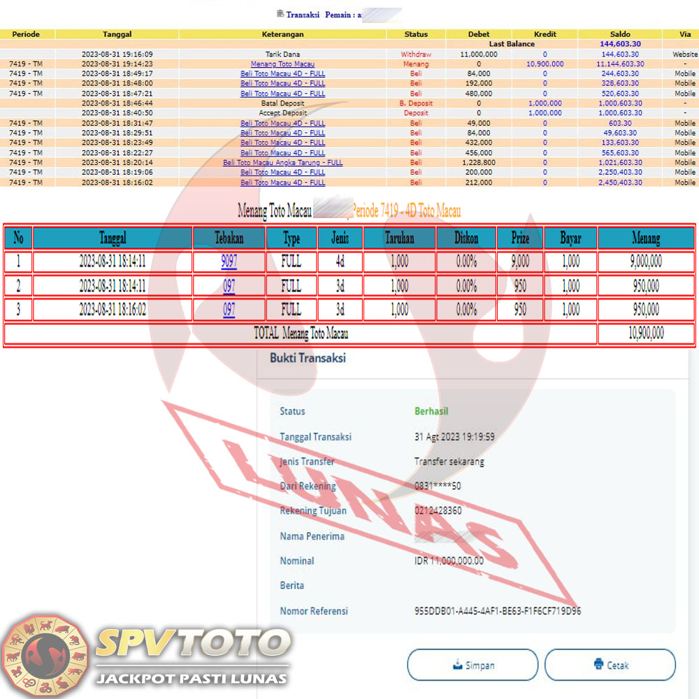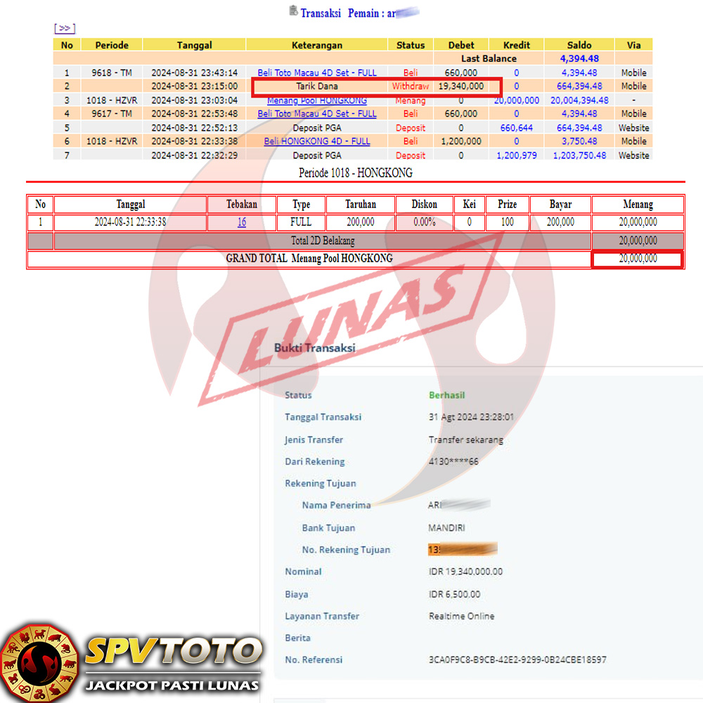 SELAMAT KEPADA MEMBER YANG MENDAPATKAN JACKPOT DI SPVTOTO