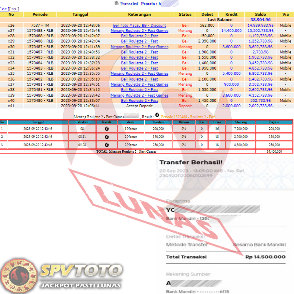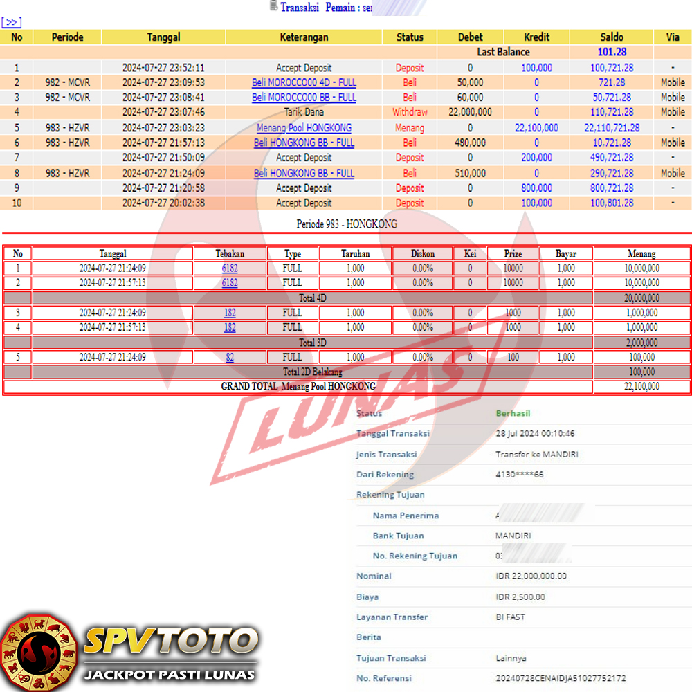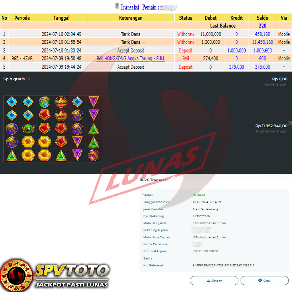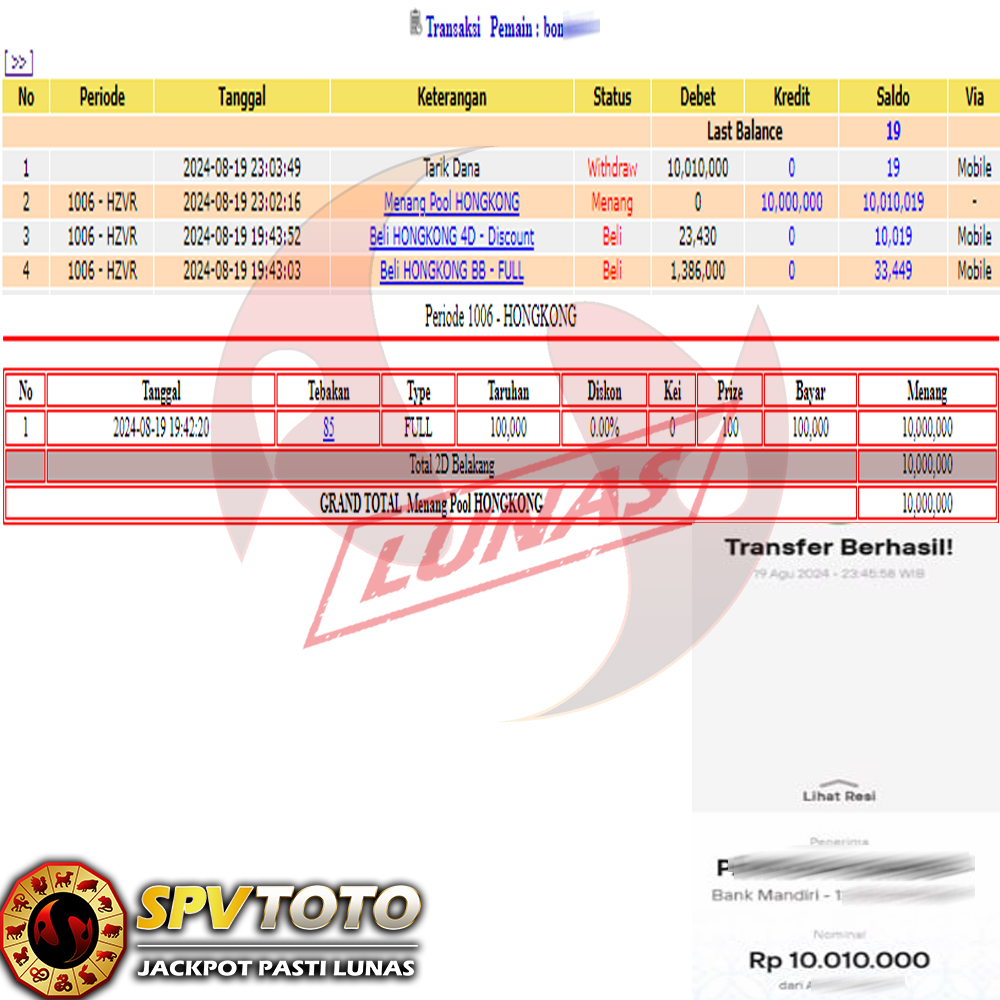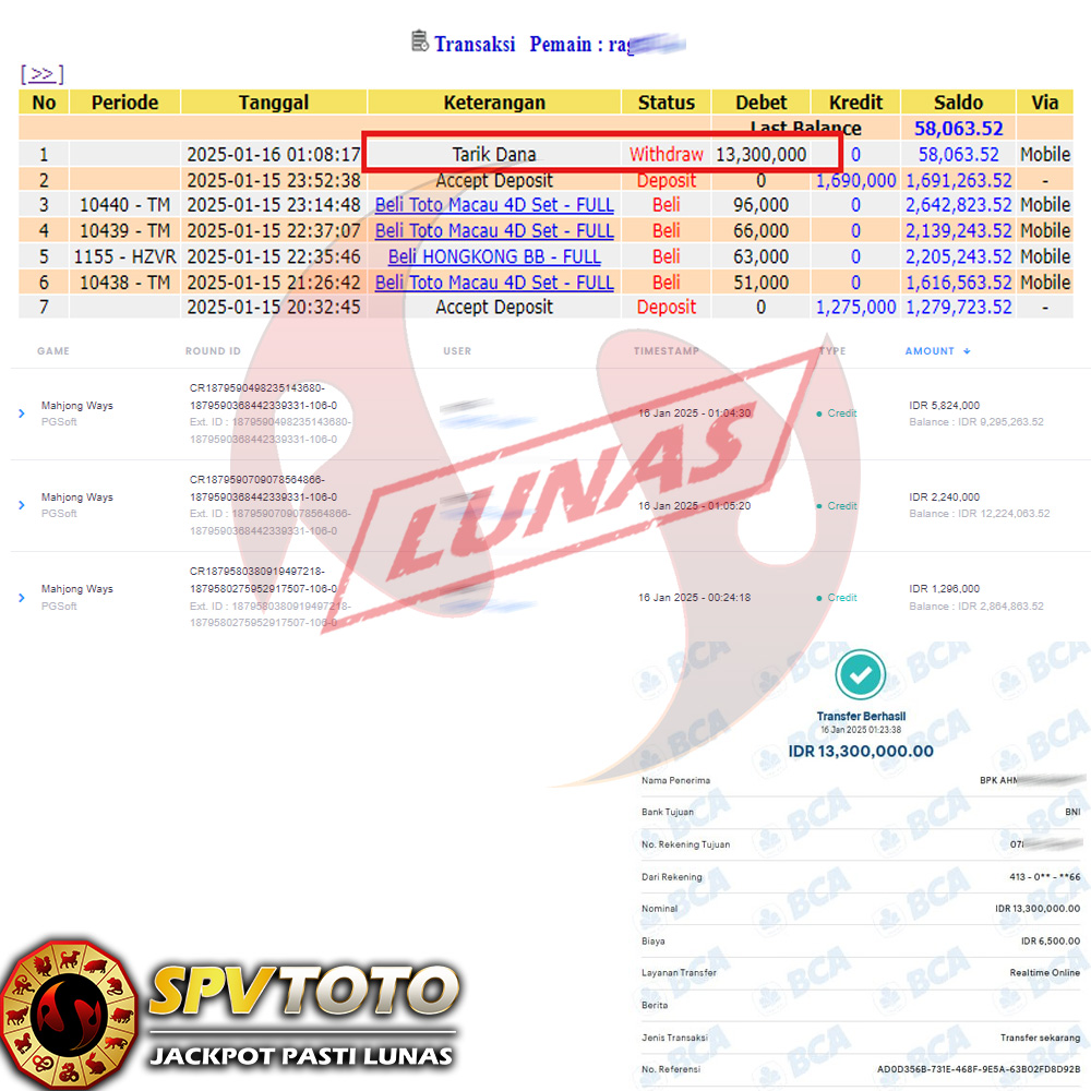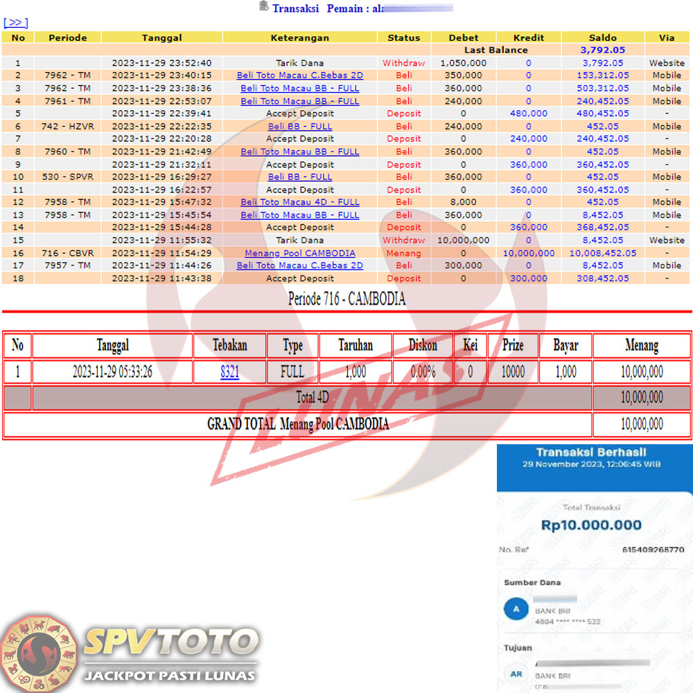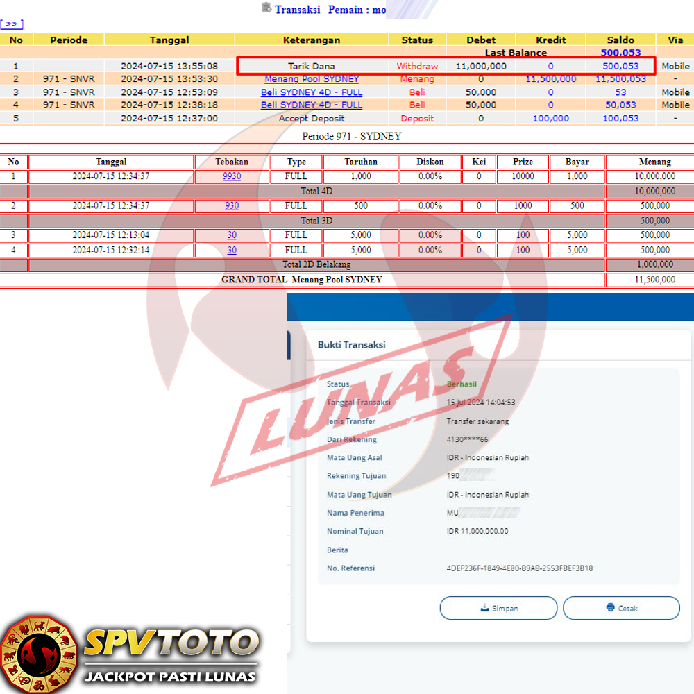 SELAMAT KEPADA MEMBER YANG MENDAPATKAN JACKPOT DI SPVTOTO