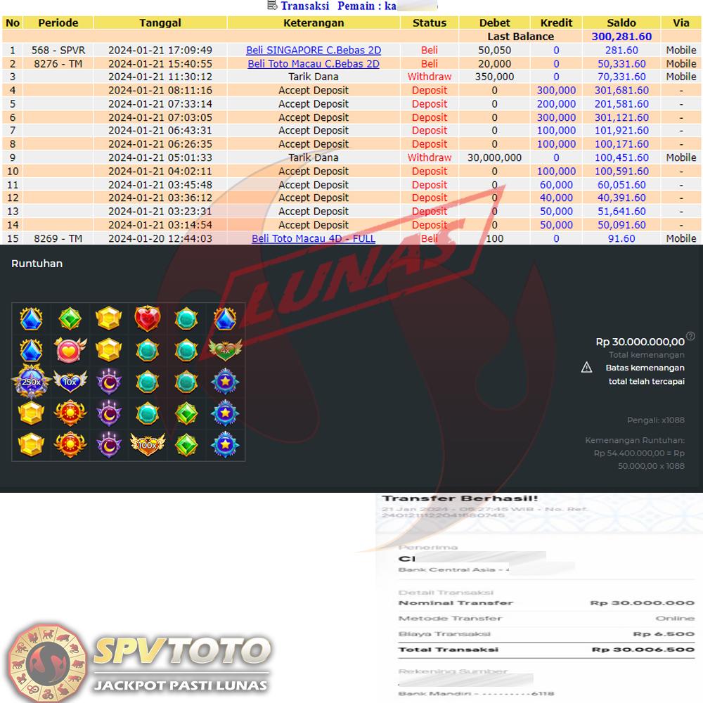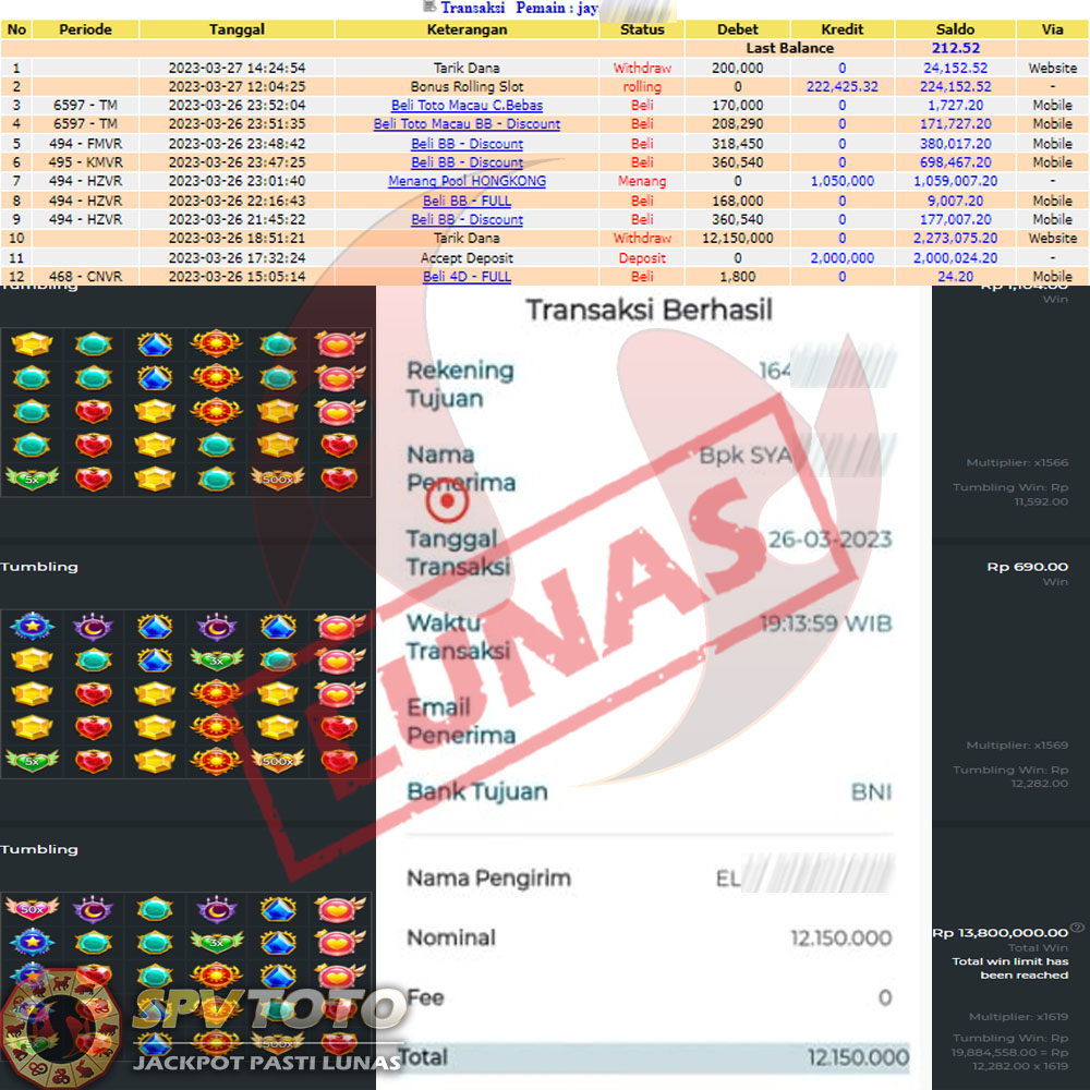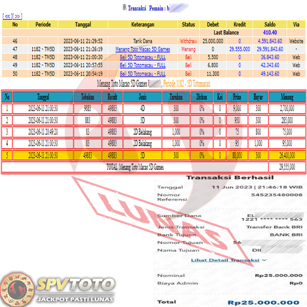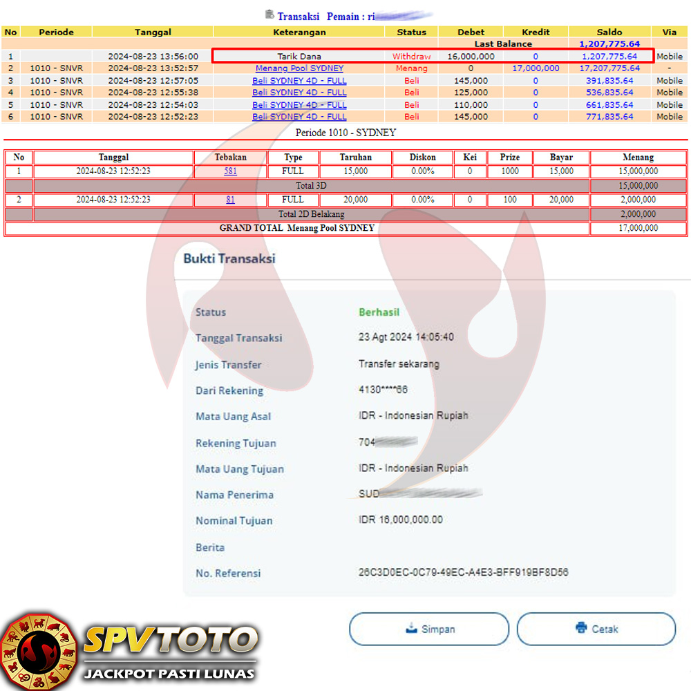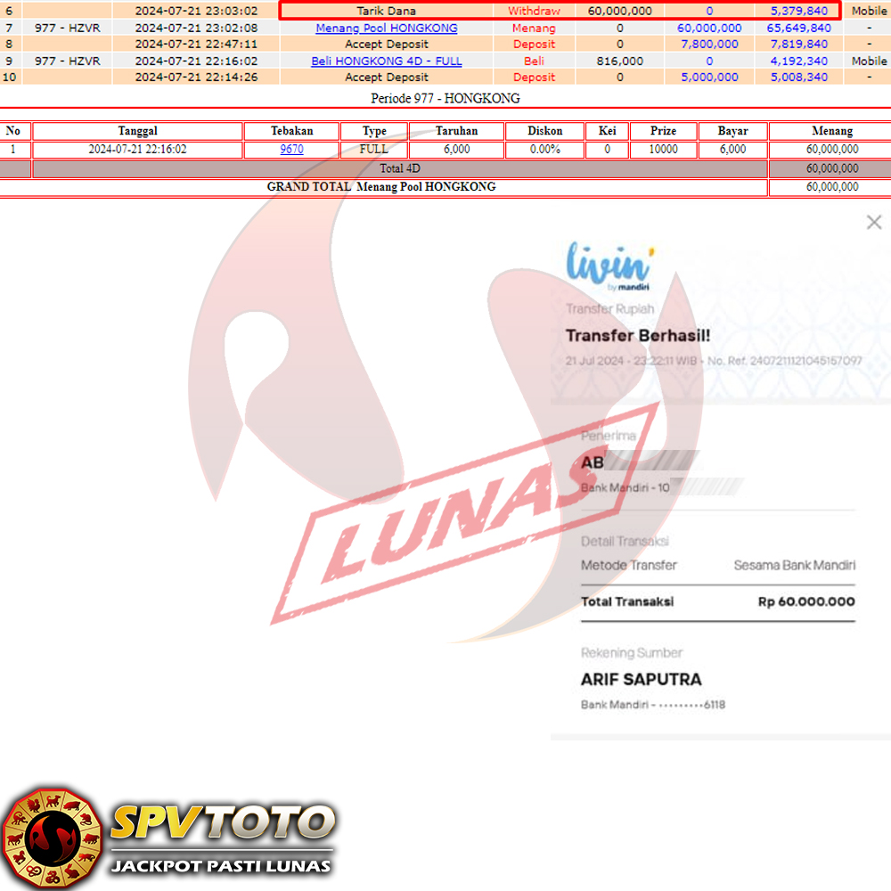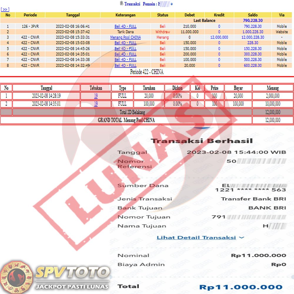 SELAMAT KEPADA MEMBER YANG MENDAPATKAN JACKPOT DI SPVTOTO
