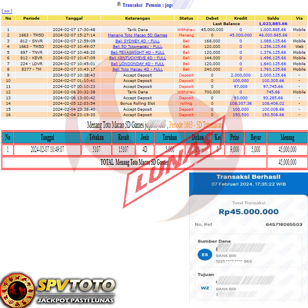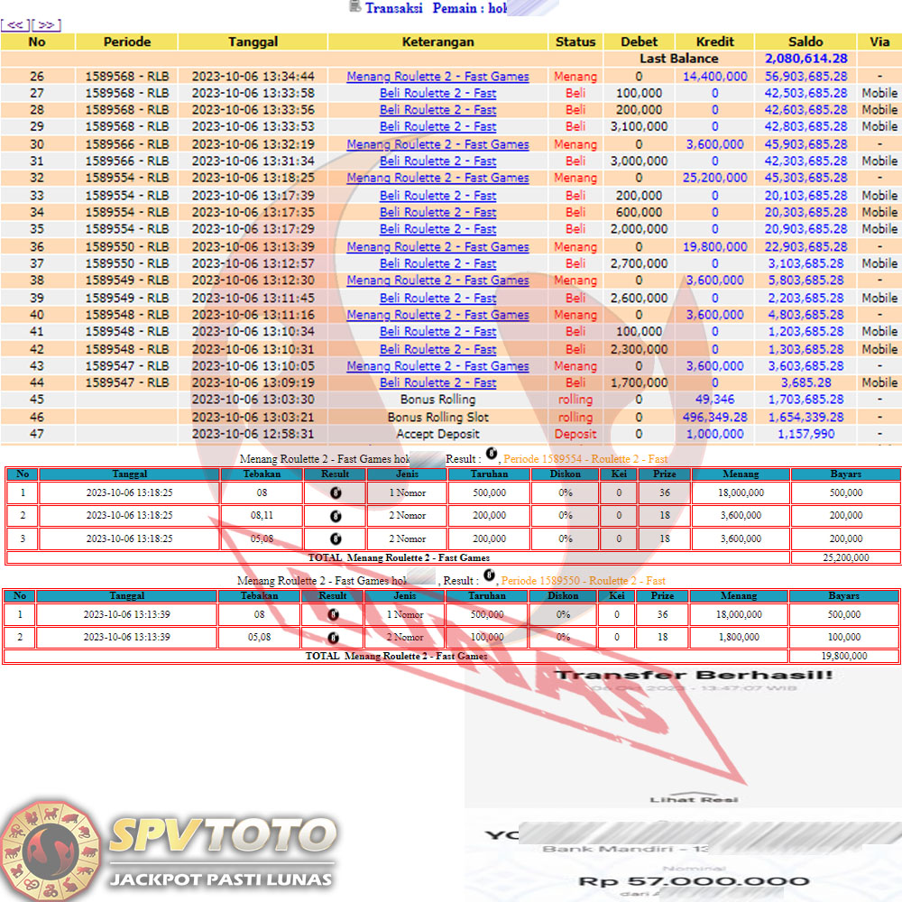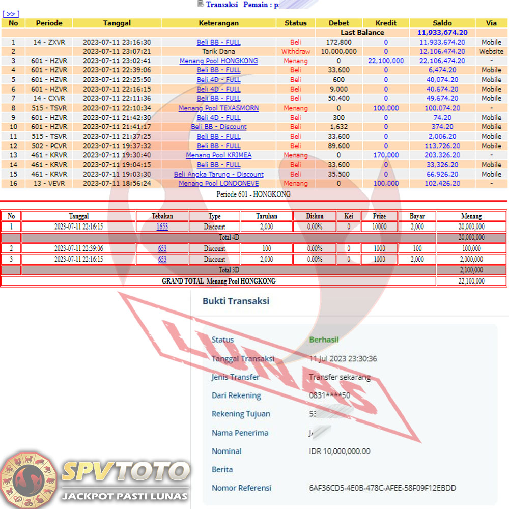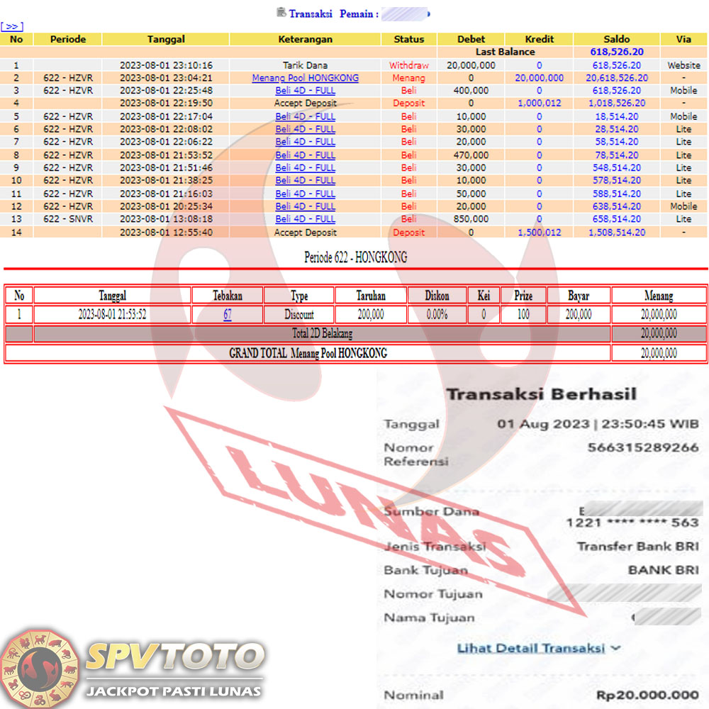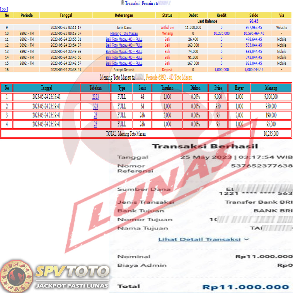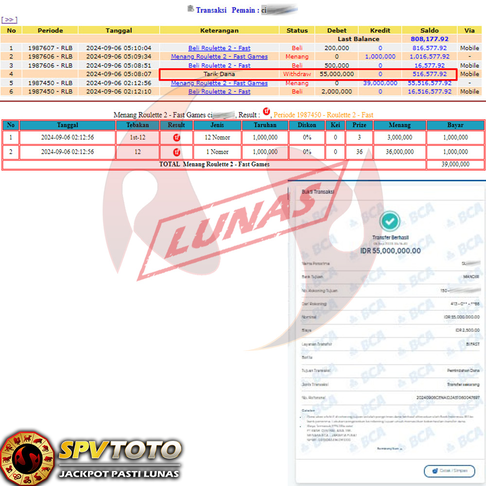 SELAMAT KEPADA MEMBER YANG MENDAPATKAN JACKPOT DI SPVTOTO